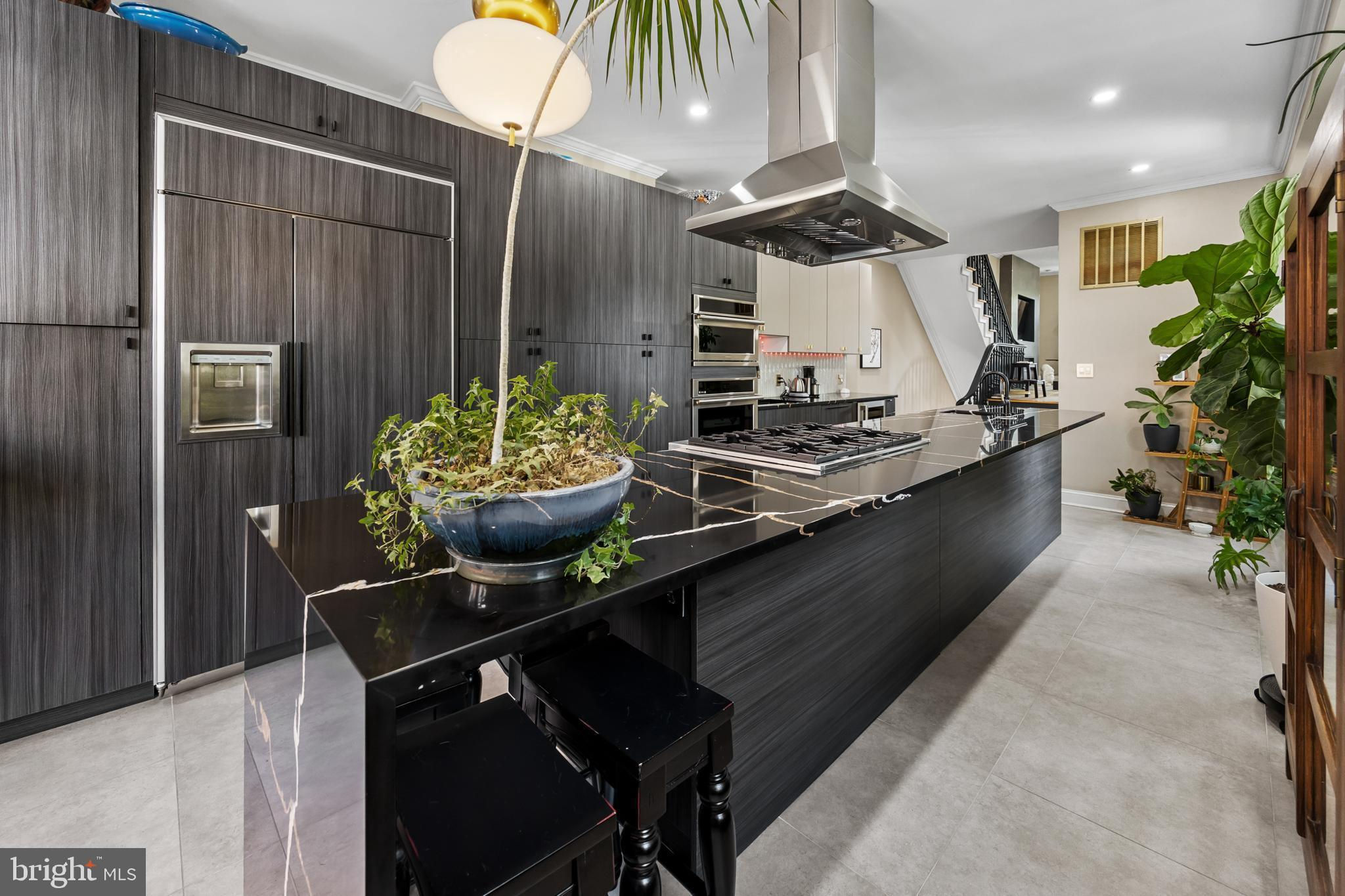 Nestled in the heart of Fairmount, this exquisite corner property at 18th and Brandywine seamlessly blends traditional charm with modern luxury. Built in 1920, the home boasts a timeless brick façade that welcomes you into a world of elegance and comfort. Inside, you'll find a warm and inviting interior featuring rich wood floors, 11-foot ceilings, and classic crown moldings that add to the sophisticated ambiance. The first floor offers incredible flexibility with an au pair or guest suite complete with a full kitchen, separate laundry, and a private entrance; ideal as a separate apartment. There's also a second bedroom on this level with a stylish en-suite bath. Upstairs, natural light floods the open main living space, perfect for entertaining. The gourmet kitchen is a chef’s dream, equipped with Monogram appliances including a six-burner stove, convection oven, and a paneled refrigerator. A striking 16-foot quartz island with waterfall edges anchors the room, complemented by ample custom cabinetry for storage and radiant floors. French doors open onto an expansive rear deck, adding approximately 500 square feet of outdoor living space, including a gas line, ideal for summer BBQs. The bright and spacious living room features a sleek electric fireplace and a wet bar, making it the perfect place to unwind or host guests for those holiday dinners. Retreat to the luxurious primary suite, complete with a spa-inspired en-suite bathroom featuring radiant heated floors, a soaking tub, and a frameless glass walk-in shower. The top floor also includes an additional walk-in closet, and another bedroom with its own well-appointed full bath, and a convenient secondary laundry area. The finished basement provides valuable flex space that can serve as a bedroom, media room, or gym. Enjoy the added bonus of an in-home IR sauna, perfect for post-workout recovery. There is also another full bath and the main laundry. A true rarity in city living, the home includes an attached two-car garage. The home is in the perfect location. The Philadelphia Museum of Art, the Rodin Museum, and the Barnes Foundation are just steps away. Spend sunny afternoons in Fairmount Park or take a scenic stroll along Kelly Drive past Boathouse Row. The neighborhood is also home to a variety of great restaurants, coffee shops, and shopping like Jack’s Firehouse, Cantina Feliz, Bishops Collar, and Whole Foods. With easy access to public transportation, the subway, and major highways (76 and 676), commuting is a breeze. Homes like 552 N 18th St rarely come on the market. Schedule your showing today and make this exceptional home yours.