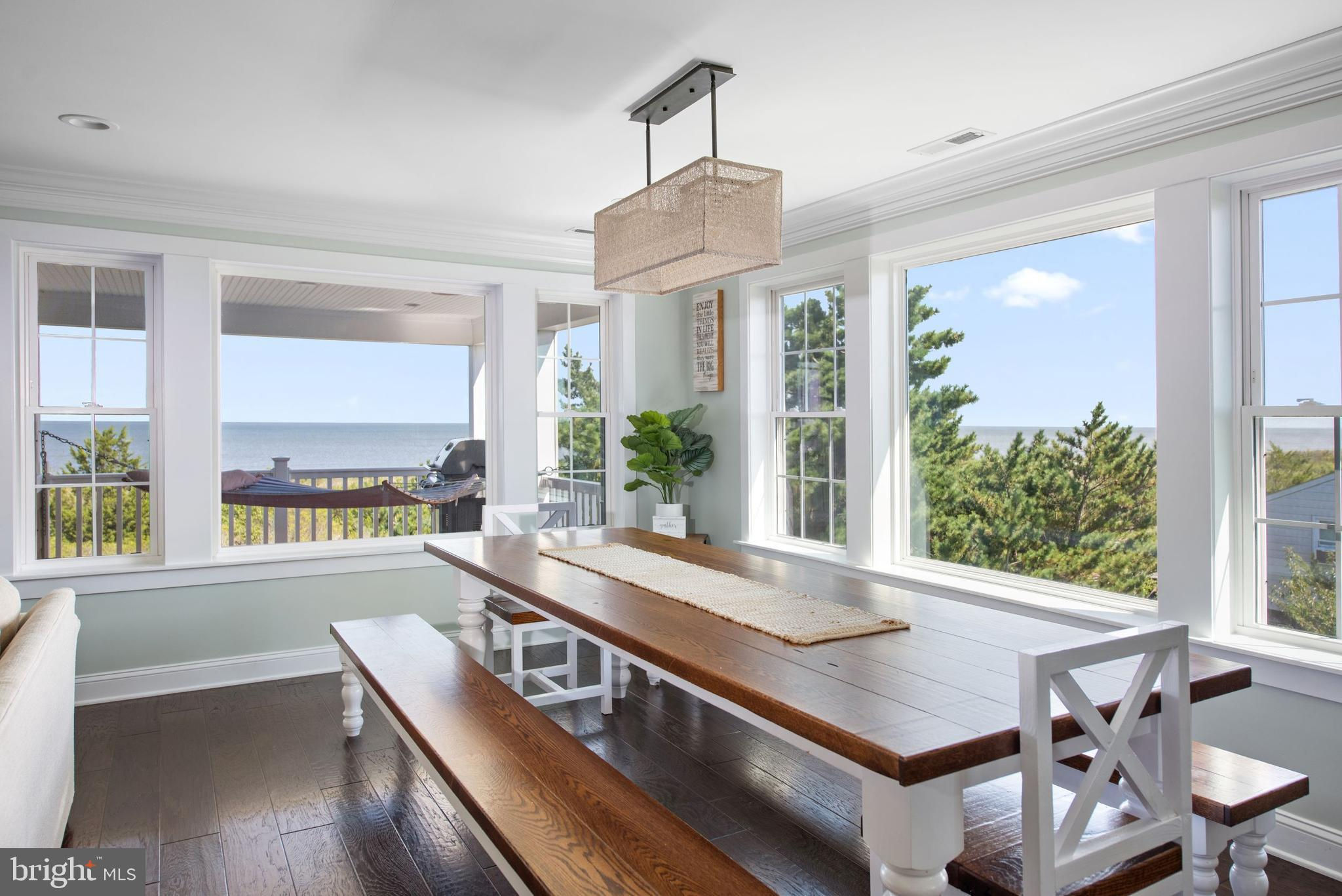 Waterfront living on the Delaware Bay where this custom, luxury built home takes advantage of the 360-degree views . Welcome to coastal living at its finest! Nestled along the shores of the stunning Delaware Bay, this custom-built 3,800 sq ft luxury home invites you to embrace a lifestyle of waterfront bliss. With panoramic views, this residence captures the magic of both sunrise and sunset over the bay and Sheppards Island, creating a canvas of natural beauty for you to enjoy. Boasting 5 bedrooms and additional bonus room that you can personalize as an office, media room, loft, or any space of your choosing, this home offers the perfect blend of comfort and versatility. With 4 bathrooms, an elevator, and large picture windows throughout. Every detail of this home has been carefully crafted to enhance your coastal living experience. Step into the heart of the home, where the gourmet kitchen awaits with quartz countertops, soft-close custom cabinetry, stainless steel appliances, a double oven, and a pantry. The living room is a haven of relaxation, featuring numerous windows overlooking the water and sand, double sliding doors opening to a screened-in porch, and an additional deck overlooking the beach. Picture cozy fall and winter nights by the stone fireplace, surrounded by the warmth of the breathtaking bay views or relax and unwind on the summer evenings from the roof top deck, or 2nd floor deck hammock to enjoy star lit nights without light pollution. Let the bay breezes sweep through the maintenance-free Trex decking on multiple levels, including balconies and screened porches. The 2-car garage under the home provides ample storage and workshop space, ensuring that every aspect of your coastal lifestyle is accommodated with storage for all your beach gear, kayaks and more. Enjoy being a comfortable 325’ to the shoreline with scenic views and the sound of waves lapping on the shore while elevation and thoughtful planning provide affordable protection of your asset with current flood insurance at only $680 annually! Enjoy peace and comfort with astounding views without excessive insurance cost. Immerse yourself in the tranquility of the surrounding wildlife and scenery, all while being just a short drive from shopping, restaurants, and health facilities. Outside, the expansive driveway provides convenient parking for multiple vehicles, including your beloved boat. Whether you prefer to store your vessel right at home or at the nearby marina, located less then 1 mile away, the choice is yours. Spend your days exploring the sparkling waters, fishing, or simply soaking up the sun from the comfort of your own backyard. Enjoy the convenience of being a short drive to Lewes and Rehoboth beaches yet perfectly settled outside of the hustle and bustle with your own waterfront view and beach access. Quick trips to quaint Milford allows you to enjoy bakeries, shops, medical facilities, hospitals and restaurants. Arrive at your beach house before the congestion of the larger beach communities and enjoy easy access in and out from Baltimore, DC, Philadelphia and north without the congestion. Take the first step towards the ultimate coastal living experience and fully appreciate all the beauty and tranquility of this home by scheduling your private tour today!