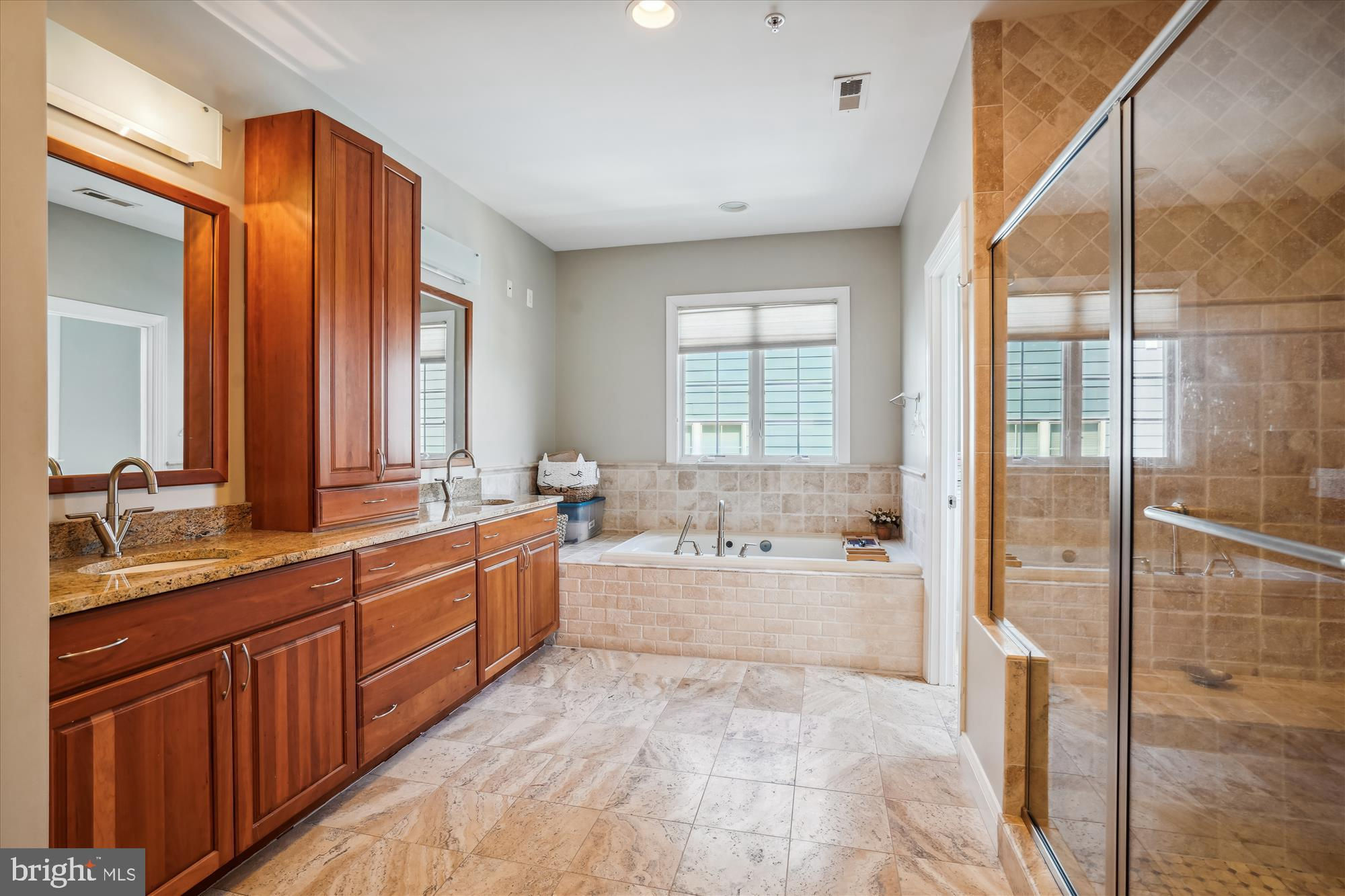 Timeless Elegance in Prime Location. Flagstone front porch greets you on this tree lined street just steps to the bus, minutes to Metro, NIH, Bethesda Naval Hospital and minutes to major highways. Shopping is just a 10 minute walk. Nestled in a sought-after Alta Vista neighborhood, this stunning 4-bedroom, 3.5-bathroom home built in 2006, offers timeless elegance and modern comfort. Boasting quality construction and meticulous attention to detail, this residence exudes warmth and sophistication. The main level features a versatile den/office, a spacious family room, and a separate living room adorned with a cozy gas fireplace, ideal for gatherings or quiet relaxation. Gourmet kitchen with gas stove and electric convection ovens, granite countertops, kitchen island with room for seating. Large 42" wood cabinets and attached to the family room with a gas fireplace. Family room is wired for speakers and surrounded by windows for great natural light. Upstairs, you'll find four generously sized bedrooms including a luxurious master suite with whirlpool tub, extra large shower, water closet and very spacious counter and storage. Two bedrooms have the hall bath, 4th bedroom has a private bath and walk-in closet. Outside, the expansive yard provides ample space for outdoor activities and entertaining with a stone patio and fenced in yard. Situated in the coveted zone of blue ribbon schools and complemented by a 2-car garage and an unfinished walk-out basement with french doors, rough in for full bath and master plans for 2 more bedrooms, theater area and more. This property presents an unparalleled opportunity for discerning buyers seeking the perfect blend of convenience, style, and functionality for modern family living.