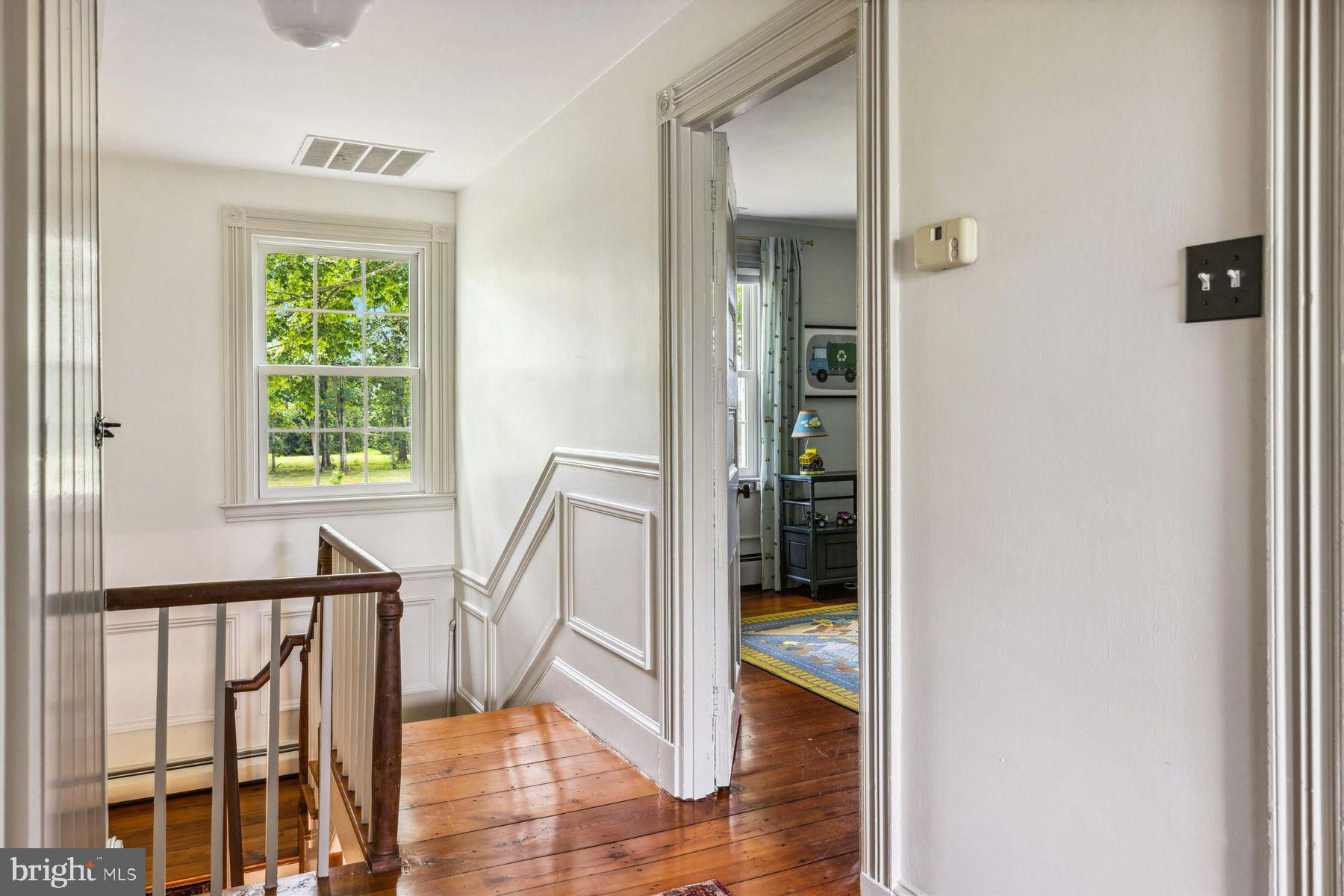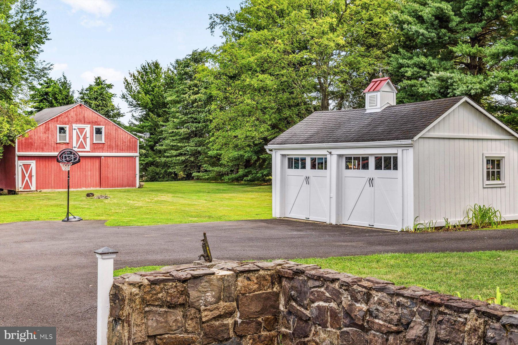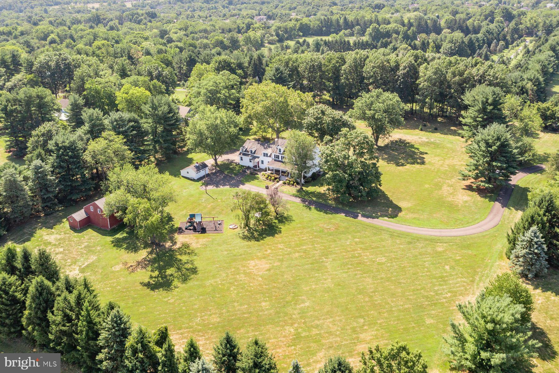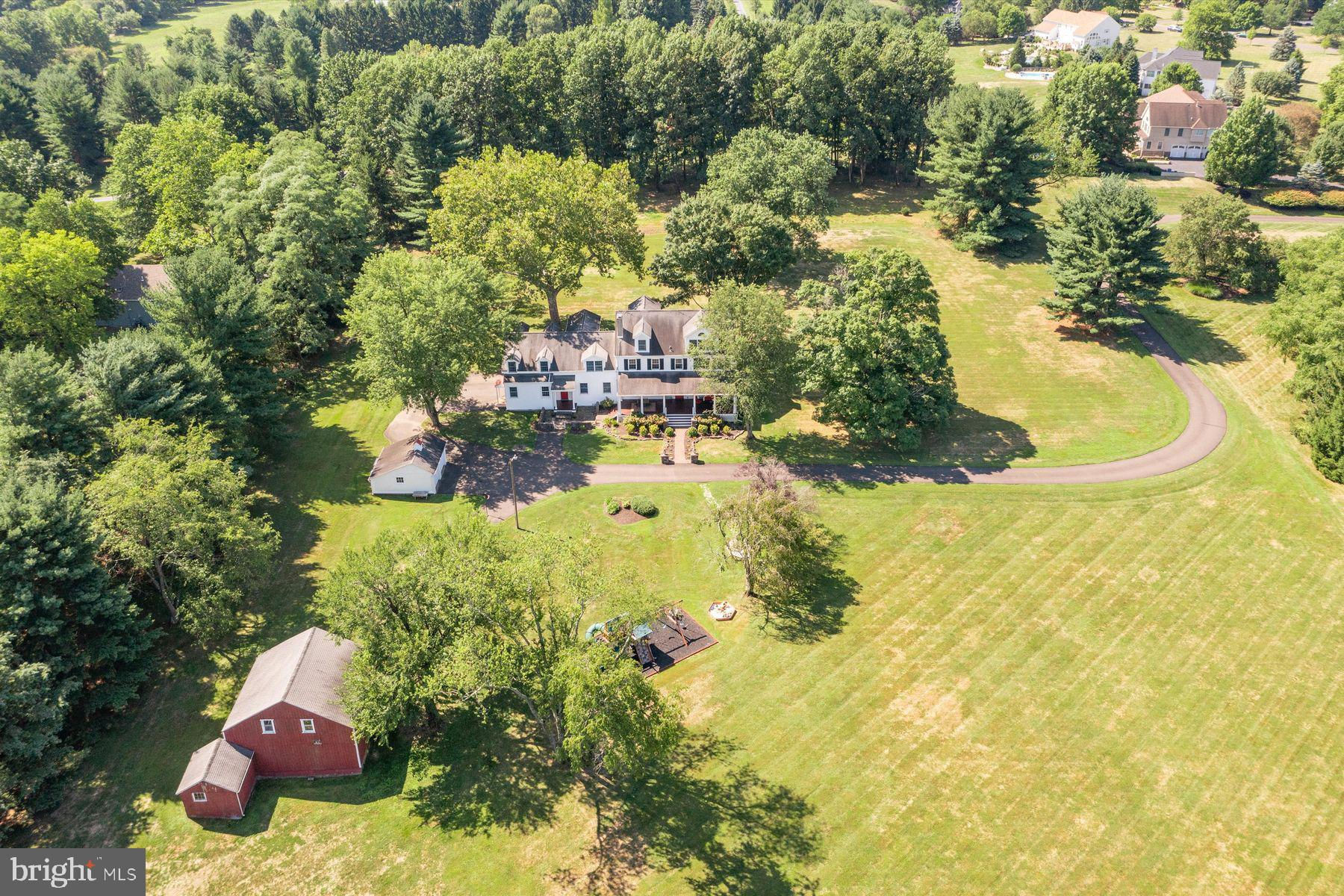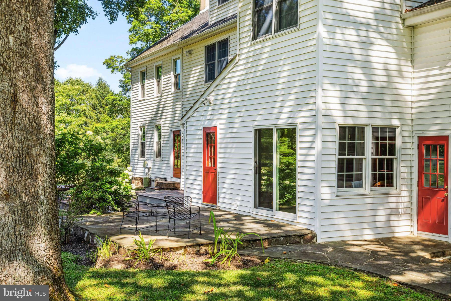 Welcome to the Captain Lambert Homestead (Circa 1780's and 1810), a picturesque retreat nestled at the end of a private cul-de-sac and enveloped by preserved land on three sides. Newer additions and renovations in 2002 and 2023 have further enhanced this special home. The captivating property, with its long private driveway approach, exudes charm from the moment you arrive. The inviting covered front porch, adorned with elegant mahogany floors, sets the tone for the warmth and character that awaits inside. It is difficult to describe the sheer enjoyment of entertaining on the porch in all seasons, while watching sports and fun activities on the sweeping lawn and taking in views of breathtaking sunsets from a very special perch! This exceptional residence offers a blend of classic charm and modern sophistication across a flexible floor plan with 5 bedrooms, 3.1 bathrooms, and a wealth of versatile spaces. The earlier section of the home features handsome old pine board flooring, original millwork, built-ins, and multiple decorative fireplaces, showcasing the beauty of yesteryear. The newer addition (2002) and significant renovation (2023) provide living space up and down, and a stunning kitchen with Italian Carrara marble countertops, a huge island with deep drawer storage, ship lap and barn wood detailing, and elegant DeVol brass lighting fixtures with push-button switches. The kitchen is complemented by a breakfast/TV room, with sliding doors to an inviting deck, a convenient mudroom entrance with handy storage, a large coat closet, and an adjacent laundry and powder room. Top-of-the-line stainless steel appliances include a Bertazzoni range with 6 induction burners, Bosch refrigerator, Bosch dishwasher, and a wine refrigerator. Numerous pantries, deep drawer storage, and even a child-friendly area have been well thought out. The center island with barn beam support has ample room for seating and invites everyone into the kitchen- a fabulous space to welcome all! And through the kitchen is access to the former attached 2-car garage- now converted into a home gym with specialty vinyl "wood" flooring, a split system HVAC, and oversized white board- a great home gym but offering a perfect space for a home office or potential additional living quarters. The second-floor houses generous bedrooms, many featuring handsome pine board floors. A spacious game/playroom with built-in shelving provides endless possibilities for any type of gathering, while a large, secluded room could serve as in-law quarters, a music room, or an art studio. The two hallway tile baths on this level, one with a tub, offer convenience and comfort. The third floor is dedicated to a luxurious main bedroom or guest suite, finished with cherry flooring, complete with a private office or potential dressing closet and a full bath featuring a footed tub and shower with frameless shower doors. A large picture window with window seat showcases views of the expansive property. Step outside to discover a sprawling lawn that ensures privacy and tranquility. The rear deck and front porch are ideal for entertaining, and there's ample space for a pool. The charming red barn with open beams and a floored second level, along with a detached 2-car garage, provide additional storage and functionality. Situated in prestigious Upper Makefield Township, this property offers access to the desirable Valley View neighborhood while maintaining a serene, bucolic lifestyle. And if you enjoy farming, this property is ideal for gardens or crops. Its excellent location provides easy access to Princeton, I-95, Philadelphia, airports, and shore points. With low taxes, zoned HVAC, great care, attention to detail, and unparalleled charm, this exceptional property is a once-in-a-lifetime opportunity to own the homestead of your dreams. Don't miss your chance to make this extraordinary property your forever home.