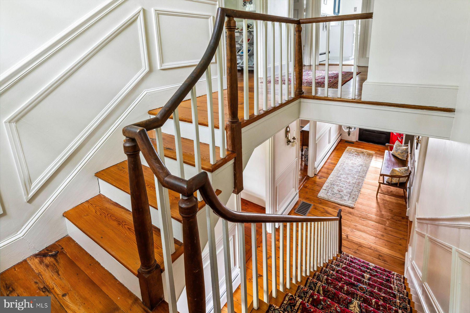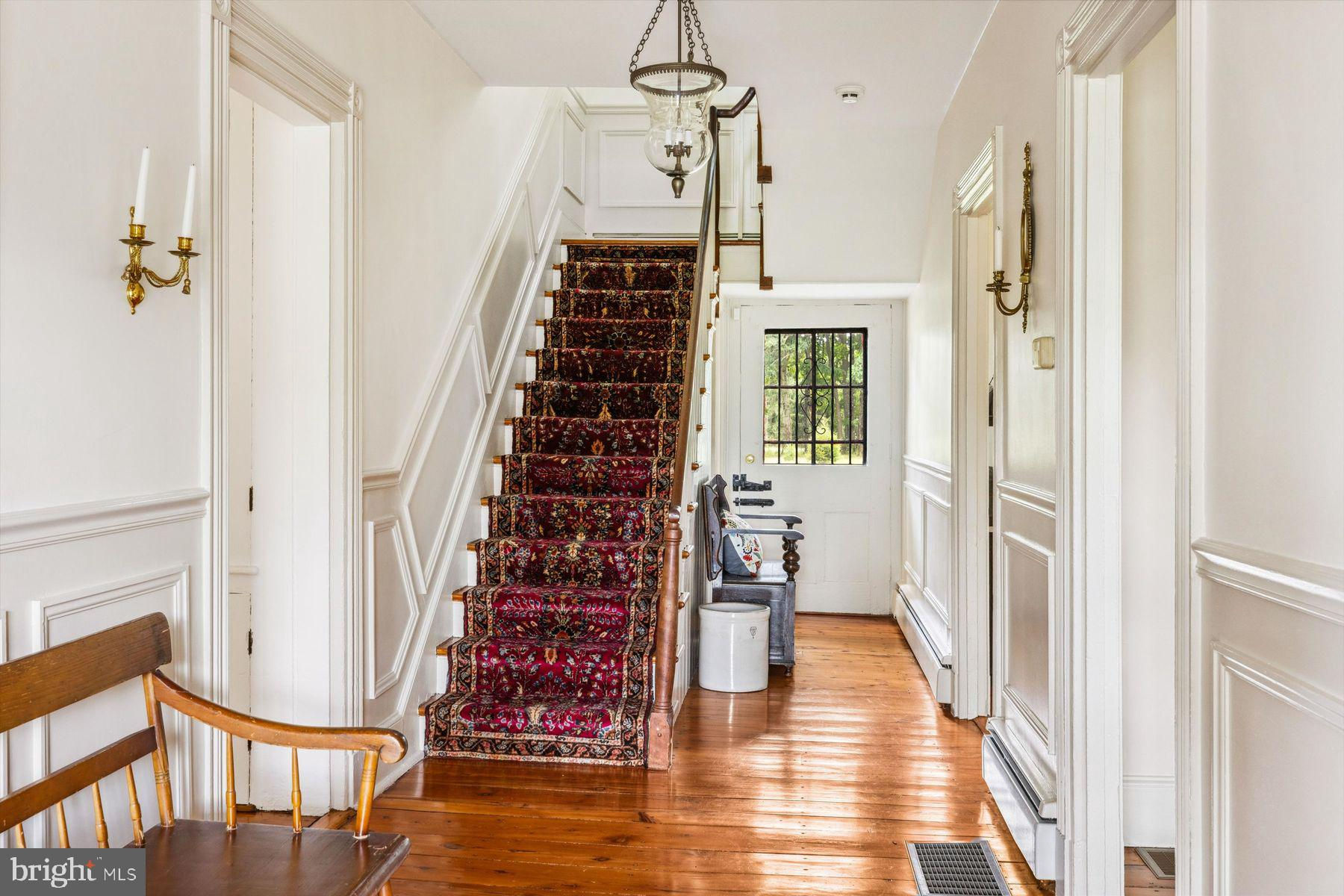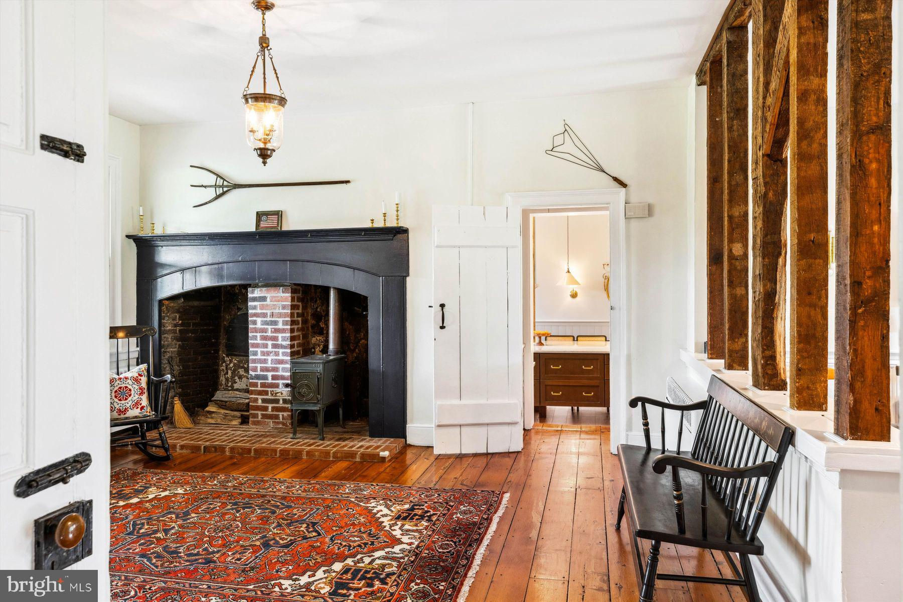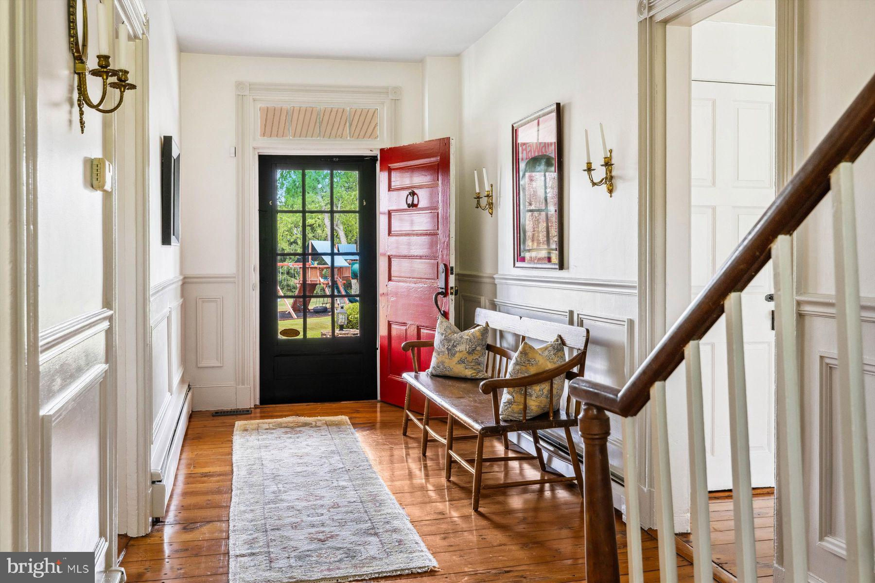 Welcome to the Captain Lambert Homestead (Circa 1780's and 1810), a picturesque retreat nestled at the end of a private cul-de-sac and enveloped by preserved land on three sides. Newer additions and renovations in 2002 and 2023 have further enhanced this special home. The captivating property, with its long private driveway approach, exudes charm from the moment you arrive. The inviting covered front porch, adorned with elegant mahogany floors, sets the tone for the warmth and character that awaits inside. It is difficult to describe the sheer enjoyment of entertaining on the porch in all seasons, while watching sports and fun activities on the sweeping lawn and taking in views of breathtaking sunsets from a very special perch! This exceptional residence offers a blend of classic charm and modern sophistication across a flexible floor plan with 5 bedrooms, 3.1 bathrooms, and a wealth of versatile spaces. The earlier section of the home features handsome old pine board flooring, original millwork, built-ins, and multiple decorative fireplaces, showcasing the beauty of yesteryear. The newer addition (2002) and significant renovation (2023) provide living space up and down, and a stunning kitchen with Italian Carrara marble countertops, a huge island with deep drawer storage, ship lap and barn wood detailing, and elegant DeVol brass lighting fixtures with push-button switches. The kitchen is complemented by a breakfast/TV room, with sliding doors to an inviting deck, a convenient mudroom entrance with handy storage, a large coat closet, and an adjacent laundry and powder room. Top-of-the-line stainless steel appliances include a Bertazzoni range with 6 induction burners, Bosch refrigerator, Bosch dishwasher, and a wine refrigerator. Numerous pantries, deep drawer storage, and even a child-friendly area have been well thought out. The center island with barn beam support has ample room for seating and invites everyone into the kitchen- a fabulous space to welcome all! And through the kitchen is access to the former attached 2-car garage- now converted into a home gym with specialty vinyl "wood" flooring, a split system HVAC, and oversized white board- a great home gym but offering a perfect space for a home office or potential additional living quarters. The second-floor houses generous bedrooms, many featuring handsome pine board floors. A spacious game/playroom with built-in shelving provides endless possibilities for any type of gathering, while a large, secluded room could serve as in-law quarters, a music room, or an art studio. The two hallway tile baths on this level, one with a tub, offer convenience and comfort. The third floor is dedicated to a luxurious main bedroom or guest suite, finished with cherry flooring, complete with a private office or potential dressing closet and a full bath featuring a footed tub and shower with frameless shower doors. A large picture window with window seat showcases views of the expansive property. Step outside to discover a sprawling lawn that ensures privacy and tranquility. The rear deck and front porch are ideal for entertaining, and there's ample space for a pool. The charming red barn with open beams and a floored second level, along with a detached 2-car garage, provide additional storage and functionality. Situated in prestigious Upper Makefield Township, this property offers access to the desirable Valley View neighborhood while maintaining a serene, bucolic lifestyle. And if you enjoy farming, this property is ideal for gardens or crops. Its excellent location provides easy access to Princeton, I-95, Philadelphia, airports, and shore points. With low taxes, zoned HVAC, great care, attention to detail, and unparalleled charm, this exceptional property is a once-in-a-lifetime opportunity to own the homestead of your dreams. Don't miss your chance to make this extraordinary property your forever home.