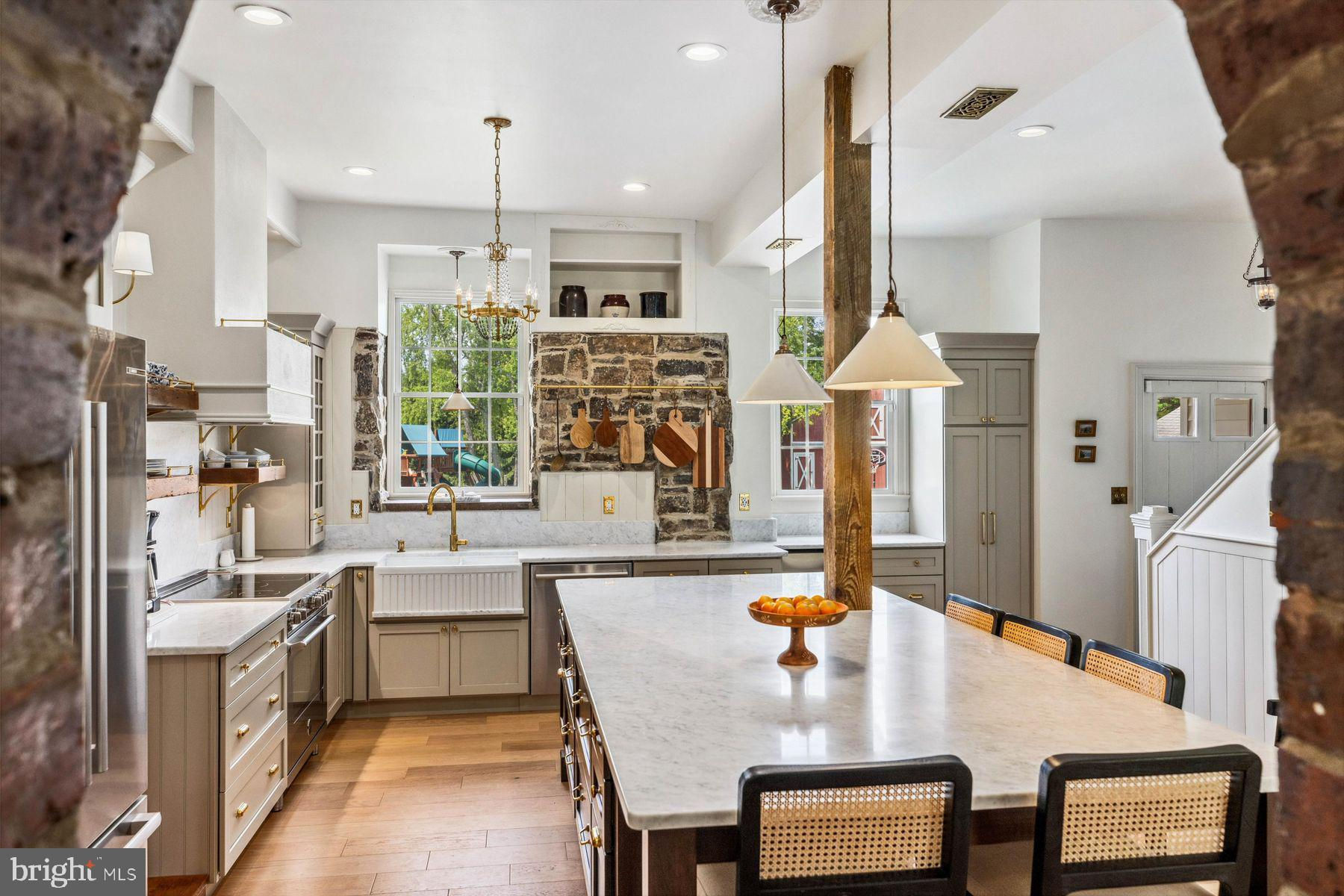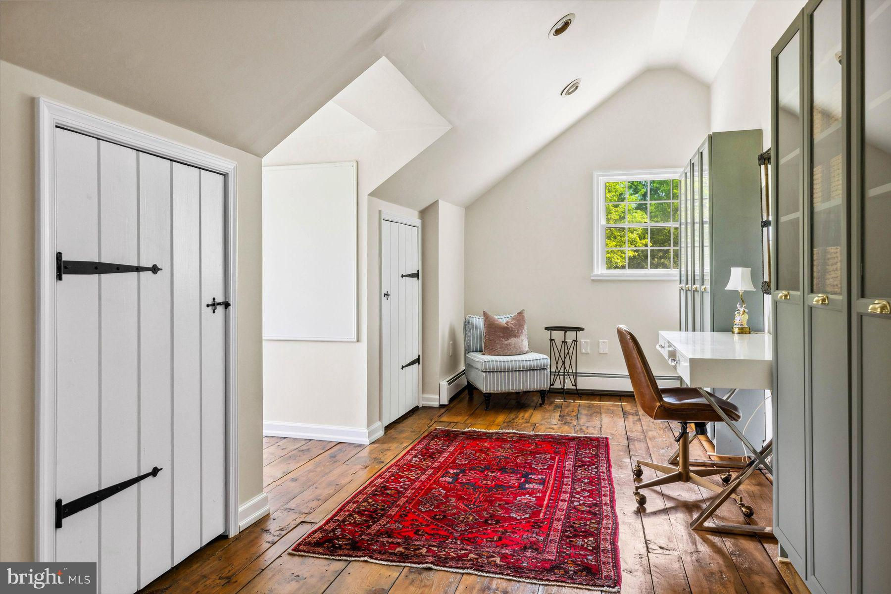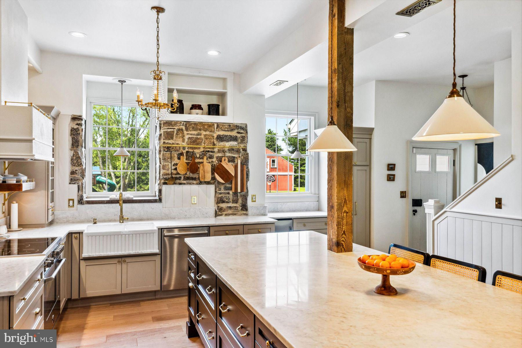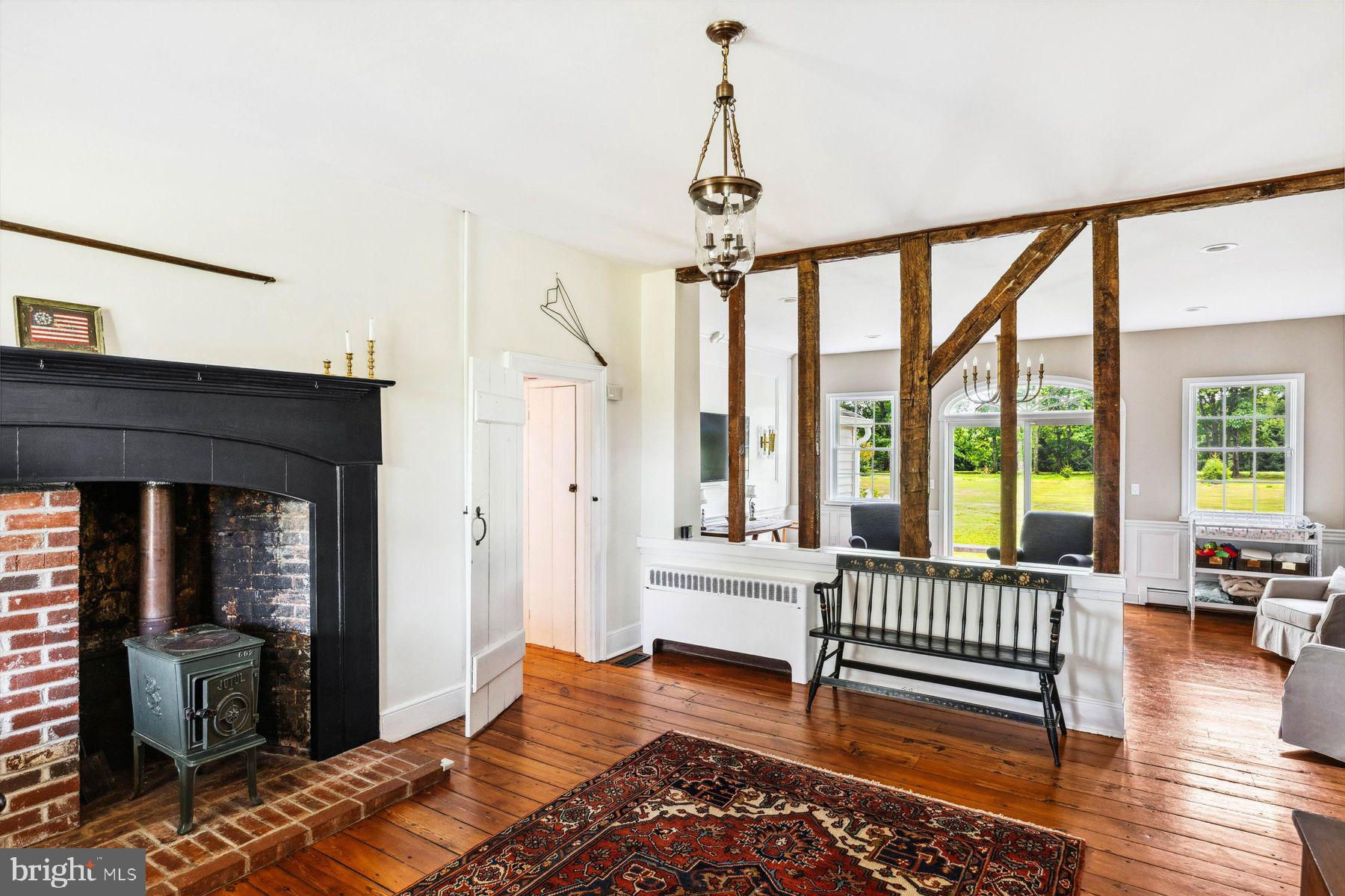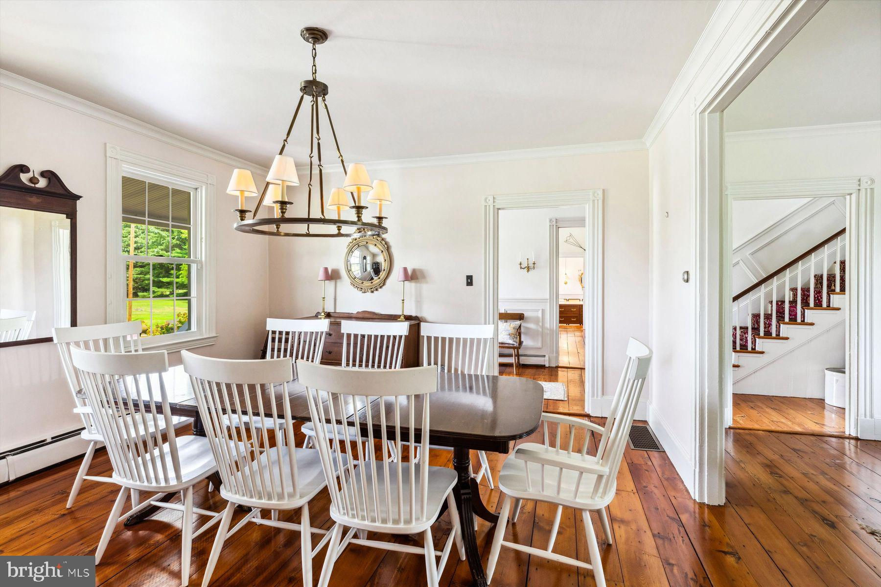 Welcome to the Captain Lambert Homestead (Circa 1780's and 1810), a picturesque retreat nestled at the end of a private cul-de-sac and enveloped by preserved land on three sides. Newer additions and renovations in 2002 and 2023 have further enhanced this special home. The captivating property, with its long private driveway approach, exudes charm from the moment you arrive. The inviting covered front porch, adorned with elegant mahogany floors, sets the tone for the warmth and character that awaits inside. It is difficult to describe the sheer enjoyment of entertaining on the porch in all seasons, while watching sports and fun activities on the sweeping lawn and taking in views of breathtaking sunsets from a very special perch! This exceptional residence offers a blend of classic charm and modern sophistication across a flexible floor plan with 5 bedrooms, 3.1 bathrooms, and a wealth of versatile spaces. The earlier section of the home features handsome old pine board flooring, original millwork, built-ins, and multiple decorative fireplaces, showcasing the beauty of yesteryear. The newer addition (2002) and significant renovation (2023) provide living space up and down, and a stunning kitchen with Italian Carrara marble countertops, a huge island with deep drawer storage, ship lap and barn wood detailing, and elegant DeVol brass lighting fixtures with push-button switches. The kitchen is complemented by a breakfast/TV room, with sliding doors to an inviting deck, a convenient mudroom entrance with handy storage, a large coat closet, and an adjacent laundry and powder room. Top-of-the-line stainless steel appliances include a Bertazzoni range with 6 induction burners, Bosch refrigerator, Bosch dishwasher, and a wine refrigerator. Numerous pantries, deep drawer storage, and even a child-friendly area have been well thought out. The center island with barn beam support has ample room for seating and invites everyone into the kitchen- a fabulous space to welcome all! And through the kitchen is access to the former attached 2-car garage- now converted into a home gym with specialty vinyl "wood" flooring, a split system HVAC, and oversized white board- a great home gym but offering a perfect space for a home office or potential additional living quarters. The second-floor houses generous bedrooms, many featuring handsome pine board floors. A spacious game/playroom with built-in shelving provides endless possibilities for any type of gathering, while a large, secluded room could serve as in-law quarters, a music room, or an art studio. The two hallway tile baths on this level, one with a tub, offer convenience and comfort. The third floor is dedicated to a luxurious main bedroom or guest suite, finished with cherry flooring, complete with a private office or potential dressing closet and a full bath featuring a footed tub and shower with frameless shower doors. A large picture window with window seat showcases views of the expansive property. Step outside to discover a sprawling lawn that ensures privacy and tranquility. The rear deck and front porch are ideal for entertaining, and there's ample space for a pool. The charming red barn with open beams and a floored second level, along with a detached 2-car garage, provide additional storage and functionality. Situated in prestigious Upper Makefield Township, this property offers access to the desirable Valley View neighborhood while maintaining a serene, bucolic lifestyle. And if you enjoy farming, this property is ideal for gardens or crops. Its excellent location provides easy access to Princeton, I-95, Philadelphia, airports, and shore points. With low taxes, zoned HVAC, great care, attention to detail, and unparalleled charm, this exceptional property is a once-in-a-lifetime opportunity to own the homestead of your dreams. Don't miss your chance to make this extraordinary property your forever home.