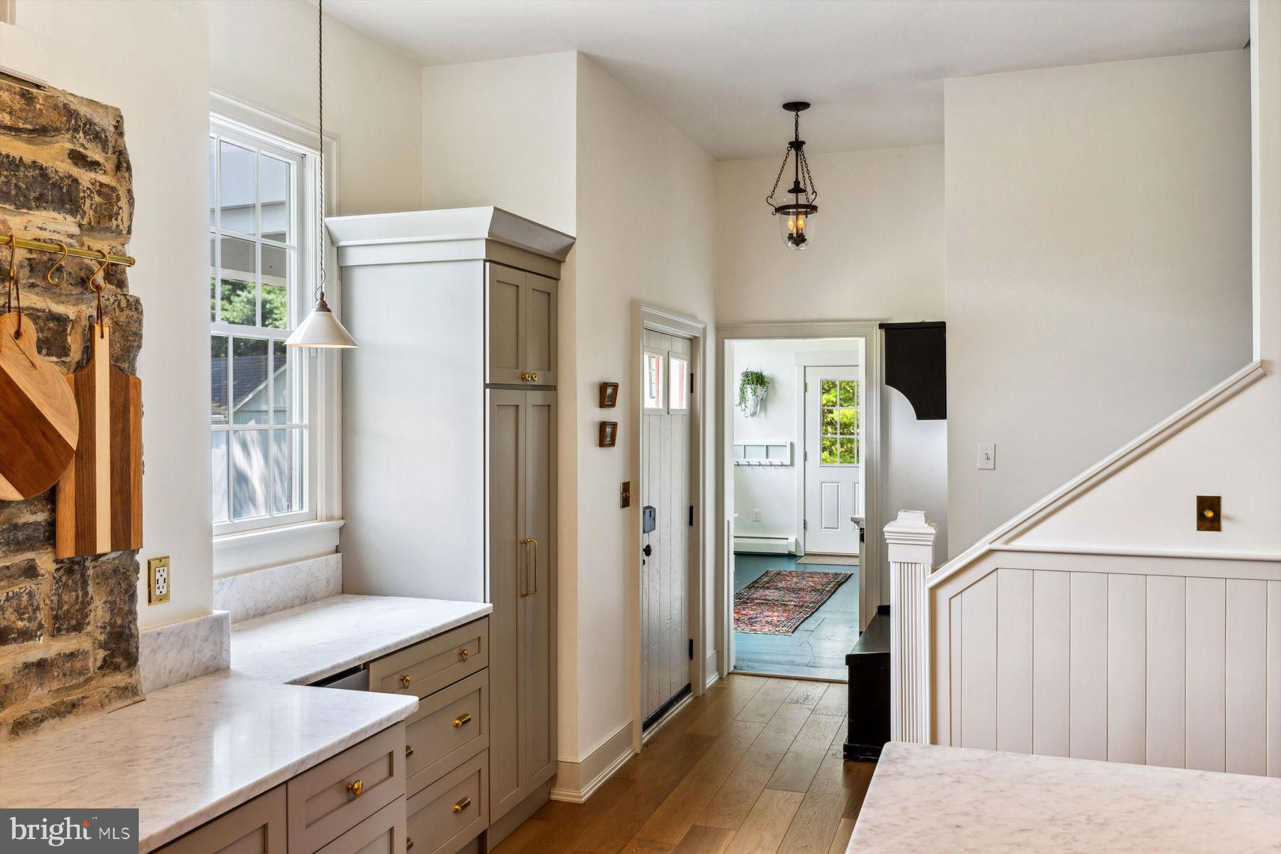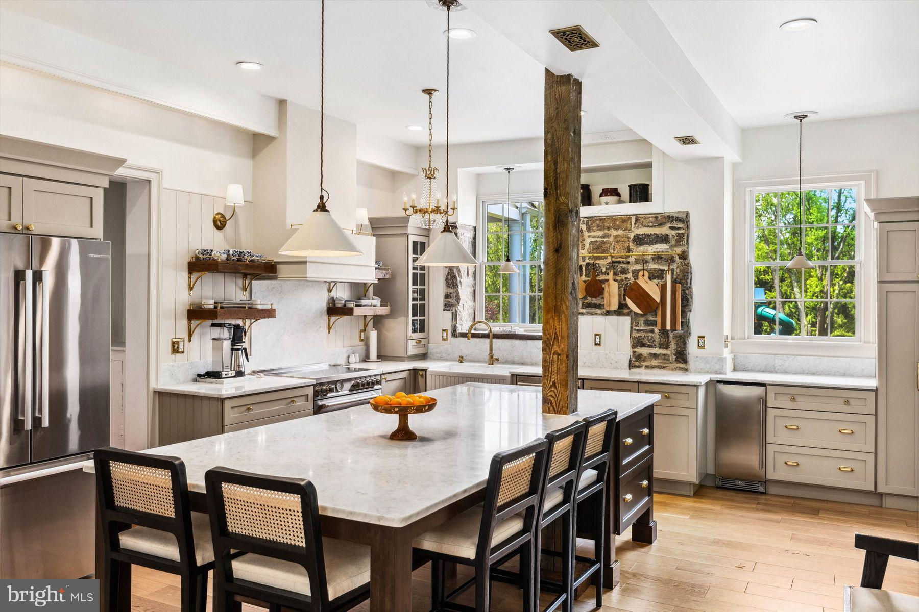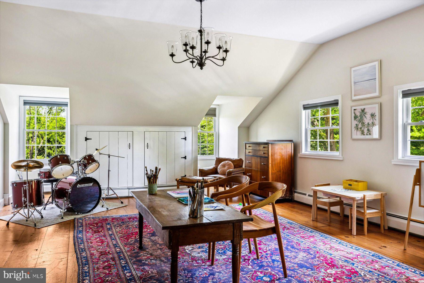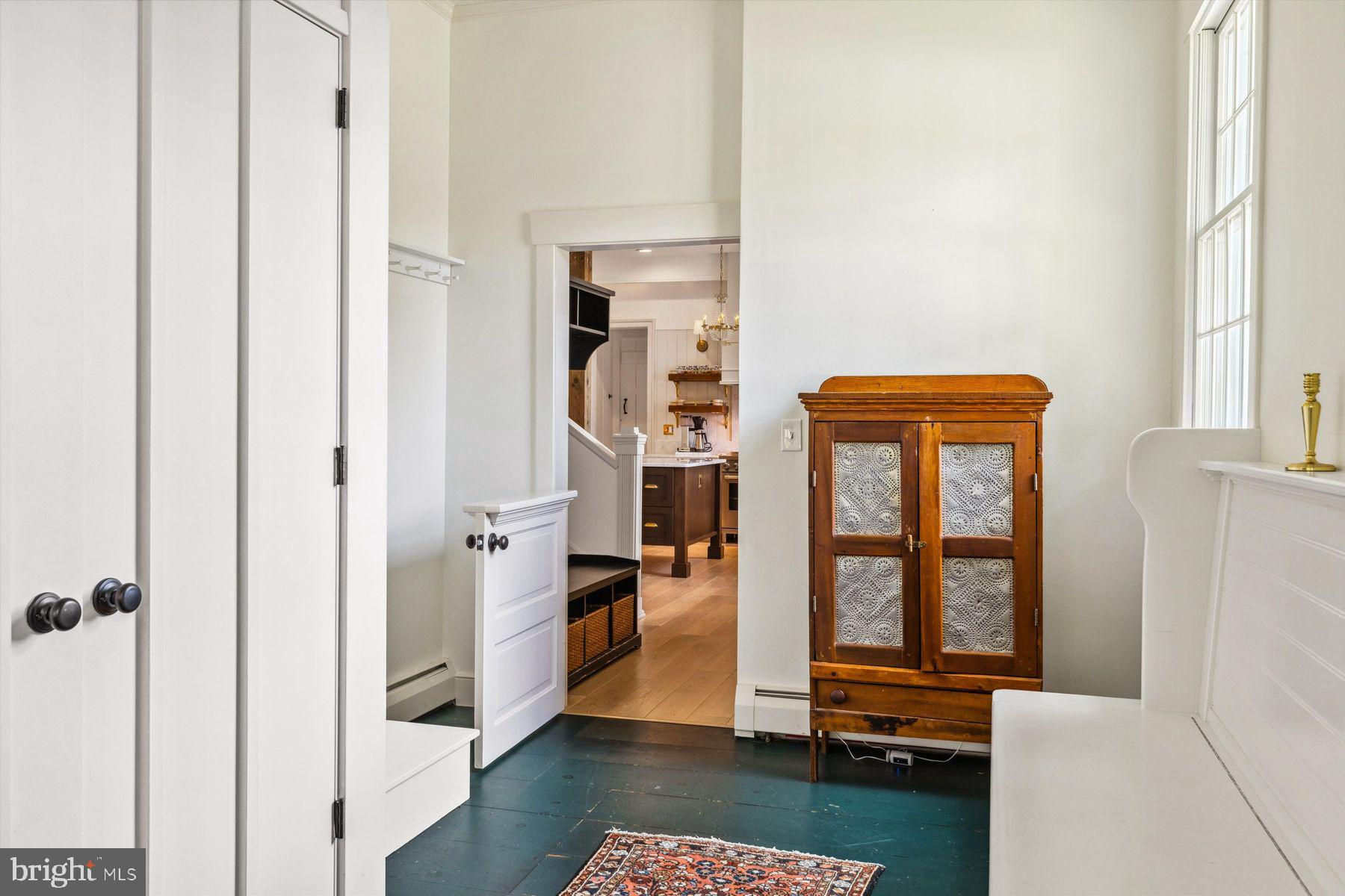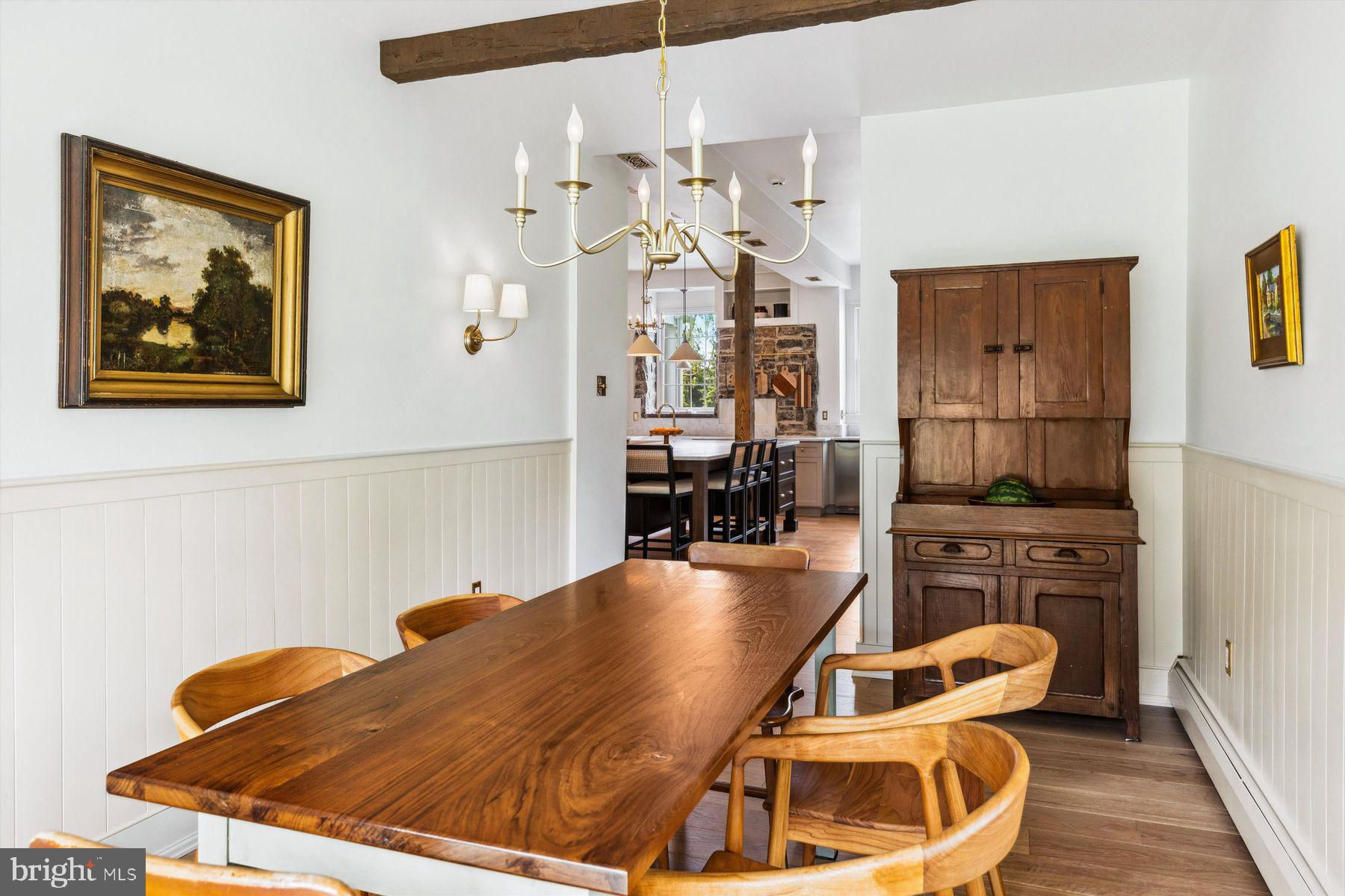 Welcome to the Captain Lambert Homestead (Circa 1780's and 1810), a picturesque retreat nestled at the end of a private cul-de-sac and enveloped by preserved land on three sides. Newer additions and renovations in 2002 and 2023 have further enhanced this special home. The captivating property, with its long private driveway approach, exudes charm from the moment you arrive. The inviting covered front porch, adorned with elegant mahogany floors, sets the tone for the warmth and character that awaits inside. It is difficult to describe the sheer enjoyment of entertaining on the porch in all seasons, while watching sports and fun activities on the sweeping lawn and taking in views of breathtaking sunsets from a very special perch! This exceptional residence offers a blend of classic charm and modern sophistication across a flexible floor plan with 5 bedrooms, 3.1 bathrooms, and a wealth of versatile spaces. The earlier section of the home features handsome old pine board flooring, original millwork, built-ins, and multiple decorative fireplaces, showcasing the beauty of yesteryear. The newer addition (2002) and significant renovation (2023) provide living space up and down, and a stunning kitchen with Italian Carrara marble countertops, a huge island with deep drawer storage, ship lap and barn wood detailing, and elegant DeVol brass lighting fixtures with push-button switches. The kitchen is complemented by a breakfast/TV room, with sliding doors to an inviting deck, a convenient mudroom entrance with handy storage, a large coat closet, and an adjacent laundry and powder room. Top-of-the-line stainless steel appliances include a Bertazzoni range with 6 induction burners, Bosch refrigerator, Bosch dishwasher, and a wine refrigerator. Numerous pantries, deep drawer storage, and even a child-friendly area have been well thought out. The center island with barn beam support has ample room for seating and invites everyone into the kitchen- a fabulous space to welcome all! And through the kitchen is access to the former attached 2-car garage- now converted into a home gym with specialty vinyl "wood" flooring, a split system HVAC, and oversized white board- a great home gym but offering a perfect space for a home office or potential additional living quarters. The second-floor houses generous bedrooms, many featuring handsome pine board floors. A spacious game/playroom with built-in shelving provides endless possibilities for any type of gathering, while a large, secluded room could serve as in-law quarters, a music room, or an art studio. The two hallway tile baths on this level, one with a tub, offer convenience and comfort. The third floor is dedicated to a luxurious main bedroom or guest suite, finished with cherry flooring, complete with a private office or potential dressing closet and a full bath featuring a footed tub and shower with frameless shower doors. A large picture window with window seat showcases views of the expansive property. Step outside to discover a sprawling lawn that ensures privacy and tranquility. The rear deck and front porch are ideal for entertaining, and there's ample space for a pool. The charming red barn with open beams and a floored second level, along with a detached 2-car garage, provide additional storage and functionality. Situated in prestigious Upper Makefield Township, this property offers access to the desirable Valley View neighborhood while maintaining a serene, bucolic lifestyle. And if you enjoy farming, this property is ideal for gardens or crops. Its excellent location provides easy access to Princeton, I-95, Philadelphia, airports, and shore points. With low taxes, zoned HVAC, great care, attention to detail, and unparalleled charm, this exceptional property is a once-in-a-lifetime opportunity to own the homestead of your dreams. Don't miss your chance to make this extraordinary property your forever home.