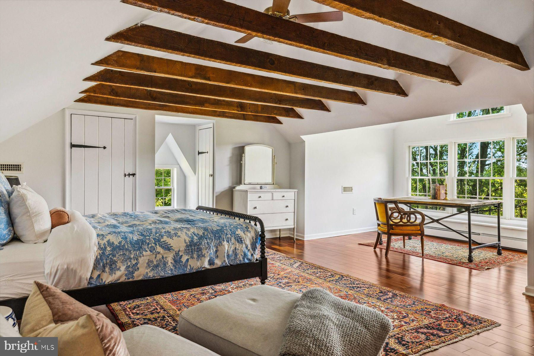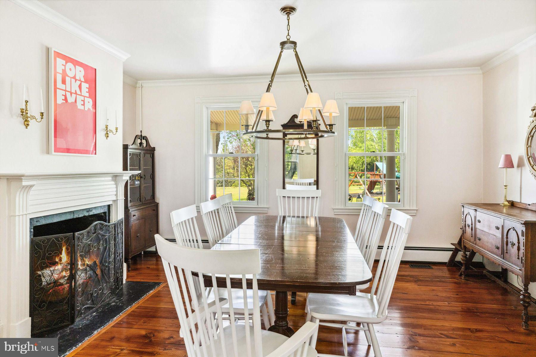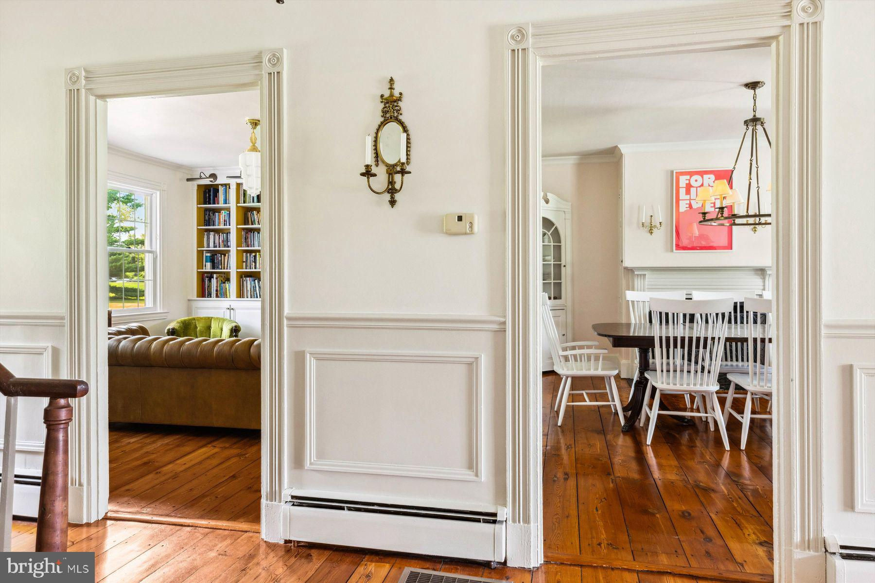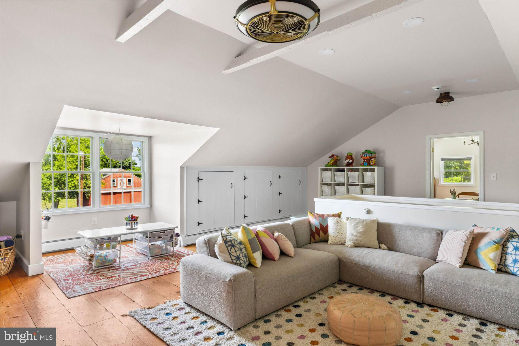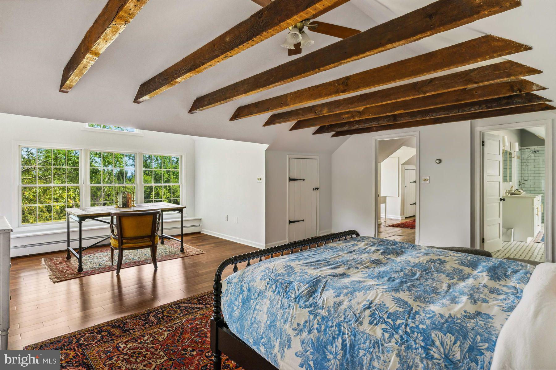 Welcome to the Captain Lambert Homestead (Circa 1780's and 1810), a picturesque retreat nestled at the end of a private cul-de-sac and enveloped by preserved land on three sides. Newer additions and renovations in 2002 and 2023 have further enhanced this special home. The captivating property, with its long private driveway approach, exudes charm from the moment you arrive. The inviting covered front porch, adorned with elegant mahogany floors, sets the tone for the warmth and character that awaits inside. It is difficult to describe the sheer enjoyment of entertaining on the porch in all seasons, while watching sports and fun activities on the sweeping lawn and taking in views of breathtaking sunsets from a very special perch! This exceptional residence offers a blend of classic charm and modern sophistication across a flexible floor plan with 5 bedrooms, 3.1 bathrooms, and a wealth of versatile spaces. The earlier section of the home features handsome old pine board flooring, original millwork, built-ins, and multiple decorative fireplaces, showcasing the beauty of yesteryear. The newer addition (2002) and significant renovation (2023) provide living space up and down, and a stunning kitchen with Italian Carrara marble countertops, a huge island with deep drawer storage, ship lap and barn wood detailing, and elegant DeVol brass lighting fixtures with push-button switches. The kitchen is complemented by a breakfast/TV room, with sliding doors to an inviting deck, a convenient mudroom entrance with handy storage, a large coat closet, and an adjacent laundry and powder room. Top-of-the-line stainless steel appliances include a Bertazzoni range with 6 induction burners, Bosch refrigerator, Bosch dishwasher, and a wine refrigerator. Numerous pantries, deep drawer storage, and even a child-friendly area have been well thought out. The center island with barn beam support has ample room for seating and invites everyone into the kitchen- a fabulous space to welcome all! And through the kitchen is access to the former attached 2-car garage- now converted into a home gym with specialty vinyl "wood" flooring, a split system HVAC, and oversized white board- a great home gym but offering a perfect space for a home office or potential additional living quarters. The second-floor houses generous bedrooms, many featuring handsome pine board floors. A spacious game/playroom with built-in shelving provides endless possibilities for any type of gathering, while a large, secluded room could serve as in-law quarters, a music room, or an art studio. The two hallway tile baths on this level, one with a tub, offer convenience and comfort. The third floor is dedicated to a luxurious main bedroom or guest suite, finished with cherry flooring, complete with a private office or potential dressing closet and a full bath featuring a footed tub and shower with frameless shower doors. A large picture window with window seat showcases views of the expansive property. Step outside to discover a sprawling lawn that ensures privacy and tranquility. The rear deck and front porch are ideal for entertaining, and there's ample space for a pool. The charming red barn with open beams and a floored second level, along with a detached 2-car garage, provide additional storage and functionality. Situated in prestigious Upper Makefield Township, this property offers access to the desirable Valley View neighborhood while maintaining a serene, bucolic lifestyle. And if you enjoy farming, this property is ideal for gardens or crops. Its excellent location provides easy access to Princeton, I-95, Philadelphia, airports, and shore points. With low taxes, zoned HVAC, great care, attention to detail, and unparalleled charm, this exceptional property is a once-in-a-lifetime opportunity to own the homestead of your dreams. Don't miss your chance to make this extraordinary property your forever home.