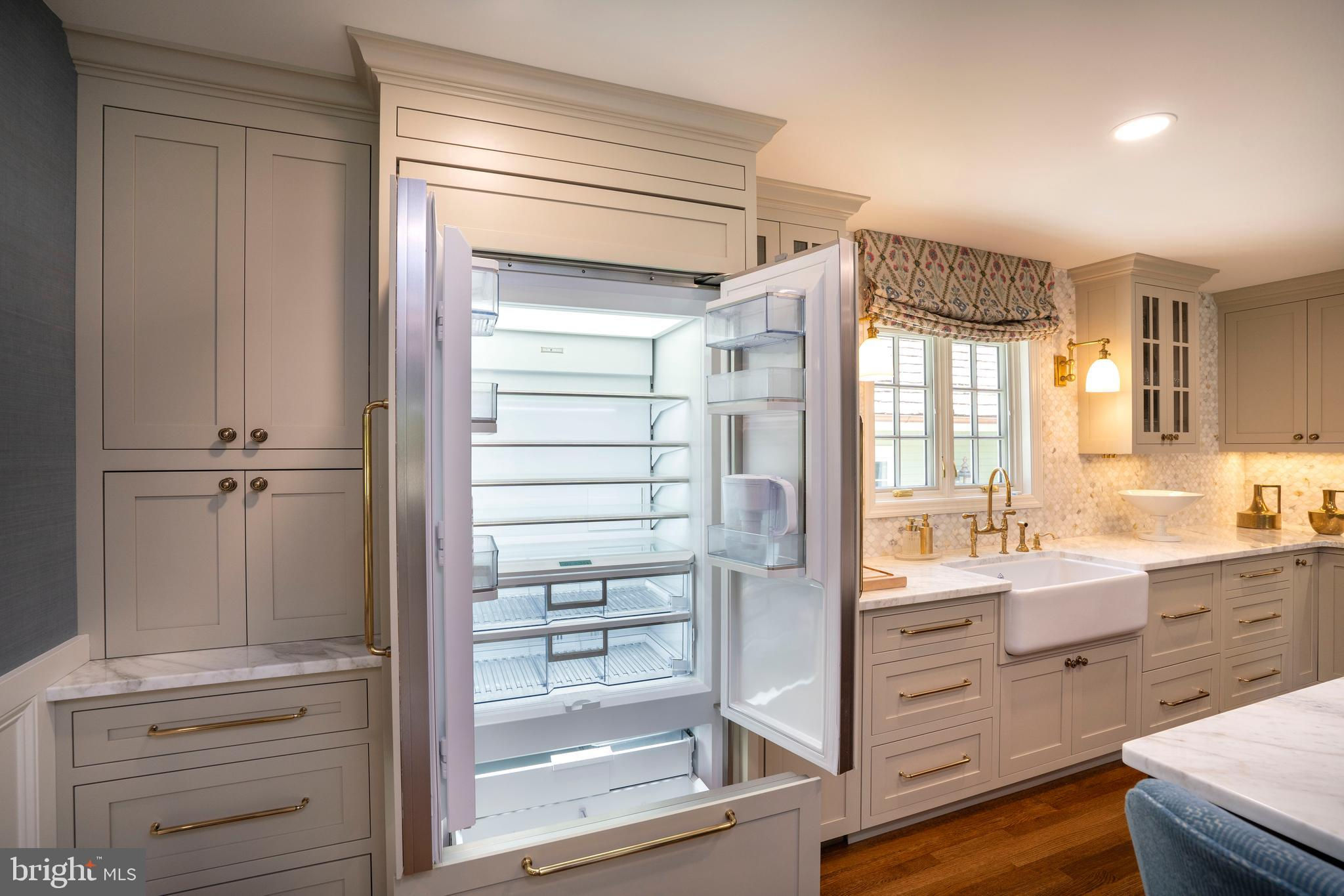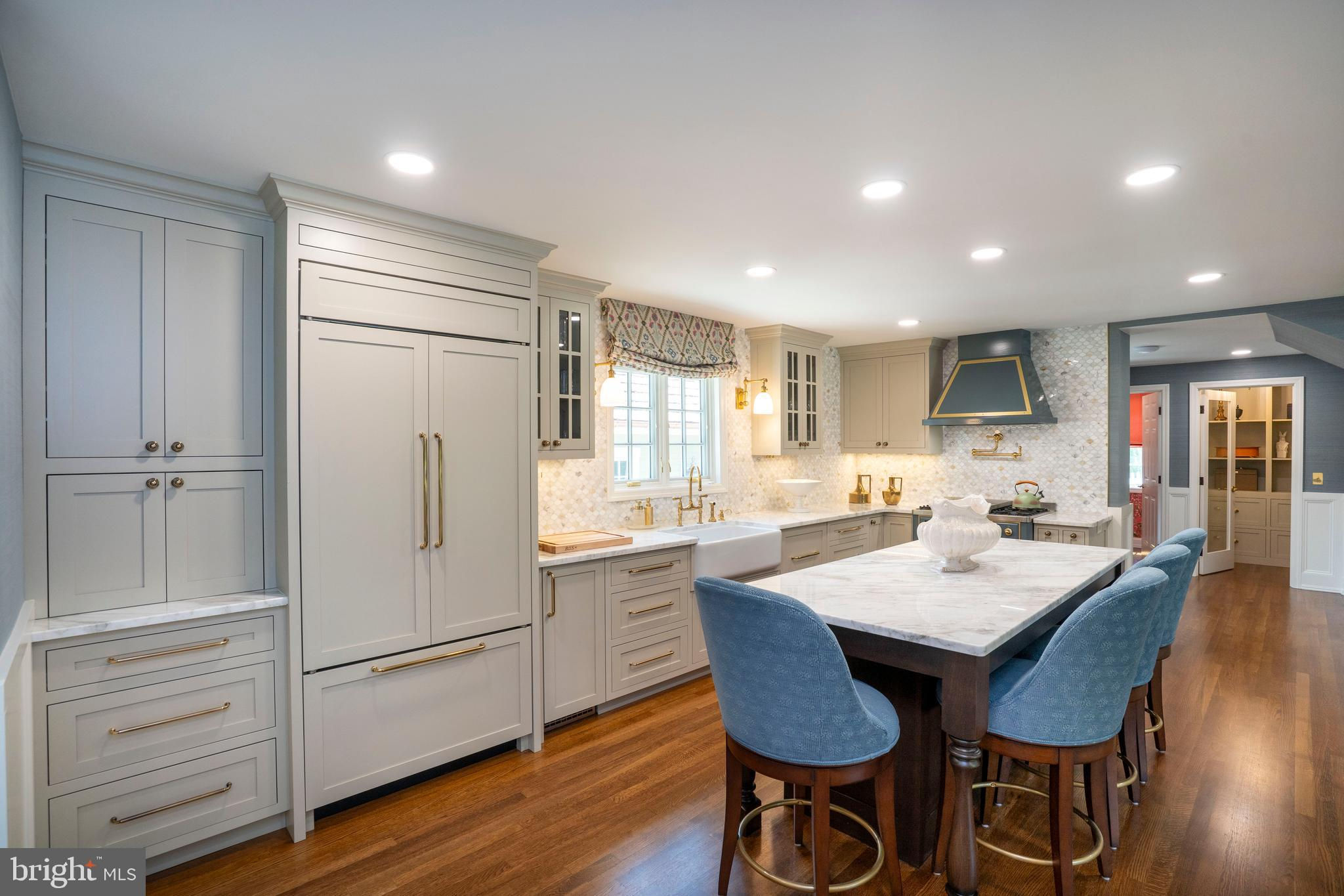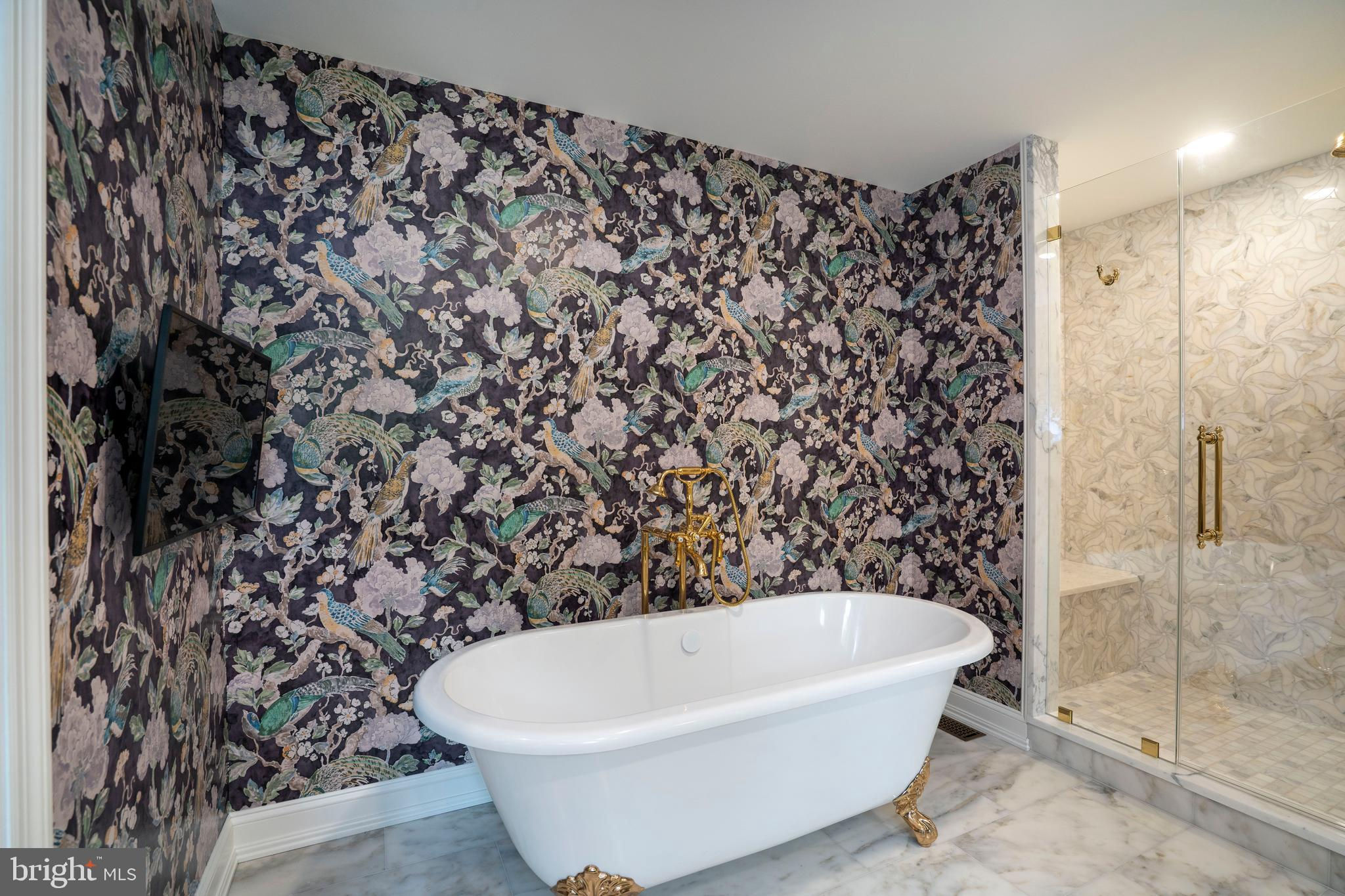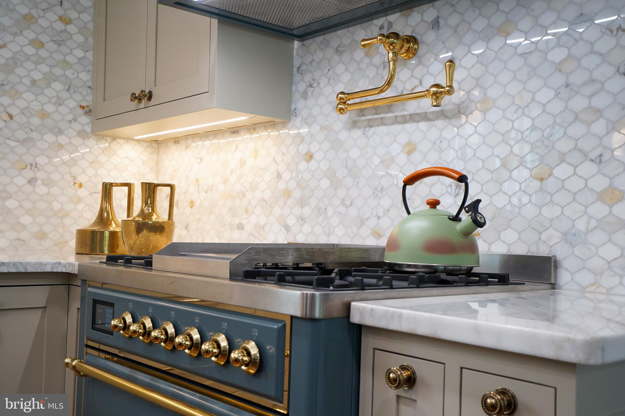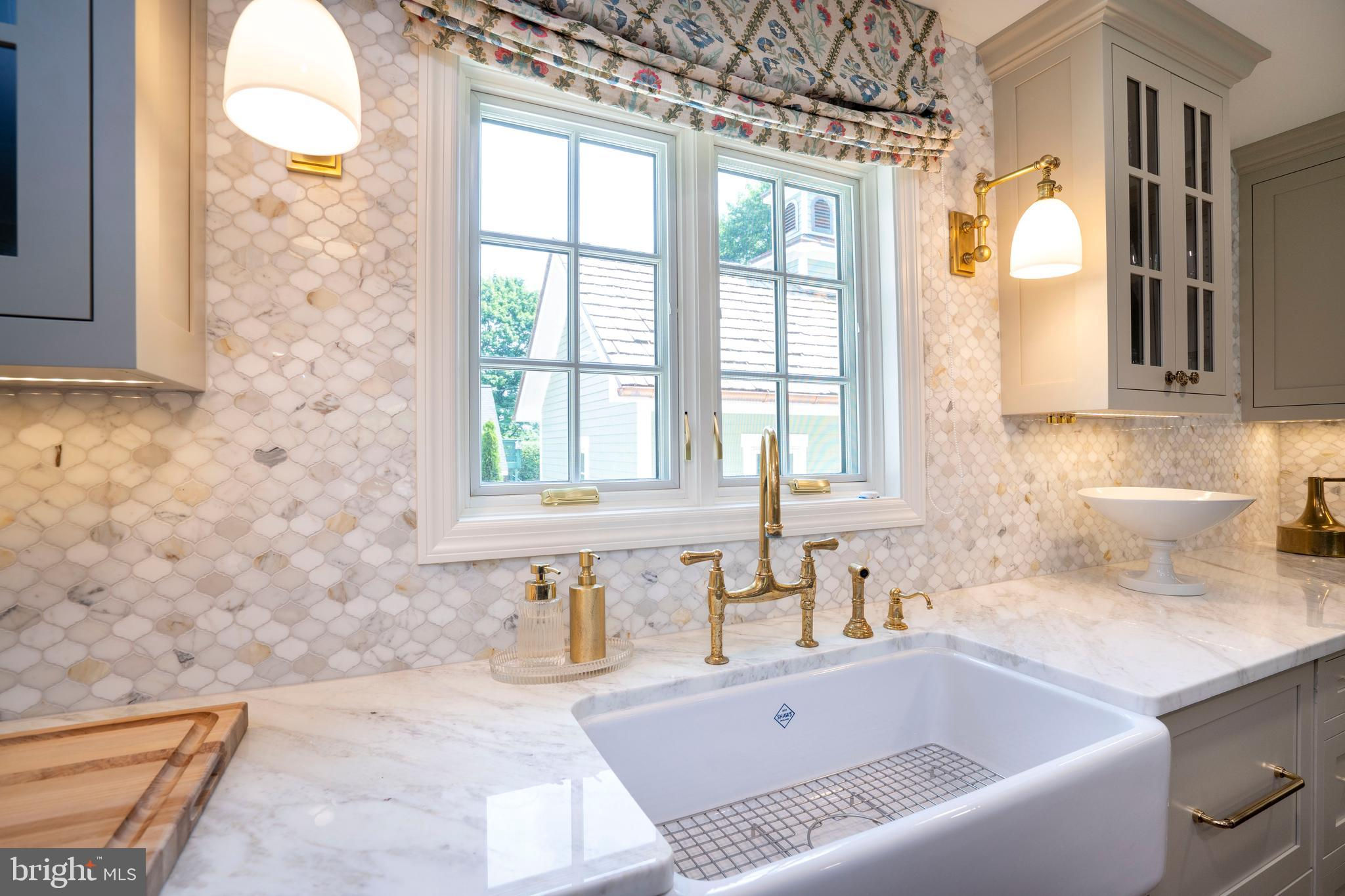 Located in the highly desired historical district of College Heights, steps away from Penn State University, 619 McKee Street is a showstopper! From the moment you step inside, this home tells a story of craftsmanship and quiet luxury. The kitchen stuns with dramatic Italian Calacatta Gold marble, a handcrafted ILVE Majestic II range with brass accents, and fully paneled Sub-Zero and Wolf appliances, all framed by custom inset cabinetry and a sunlit breakfast banquette. Site-finished white oak floors run throughout the main level, met by curated lighting and a stairwell wrapped in gallery-style wallpaper. Each of the three full baths is elegantly dressed in waterjet-cut marble, furniture-style vanities, and a mix of polished nickel and unlacquered brass. In the primary suite, a clawfoot tub rests beneath Chinoiserie wallpaper, offering indulgent, spa-like charm with a sense of old-world romance. A Tripp Lite tech closet ensures seamless smart home connectivity, while the lower level adds wide-plank LVP, built-ins, and flexible living space. Outside, enjoy thoughtful hardscaping, a fenced yard, and a detached garage—all beneath a cedar shake roof and copper gutters designed to age gracefully, built to grow only more stunning with time.