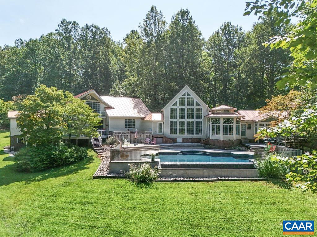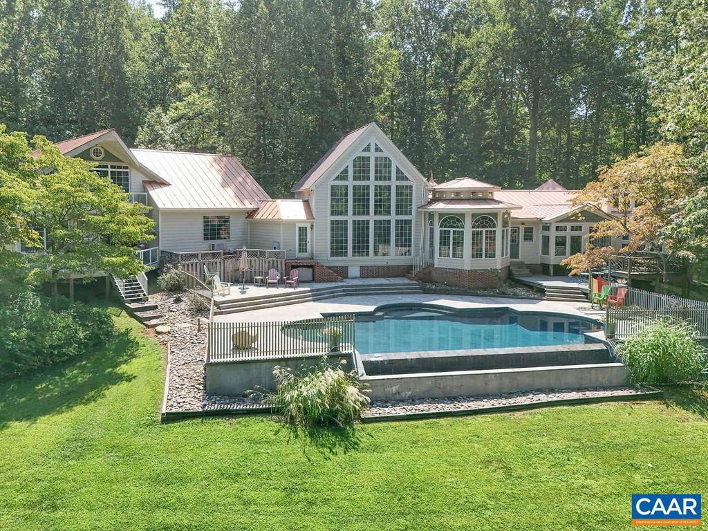 Nestled beautifully amongst the surrounding oak trees, this magnificent home is formal in scale and proportion, yet charmingly fun, warm and welcoming. Boasting 6 total bedrooms, 7.5 baths and 3 fully equipped kitchens, natural light pours in from every angle, making this gem shine! There are dramatic and tasteful stone & tile selections throughout, as well as gorgeous hardwoods, amongst so many other can't-miss features. All three kitchens are beyond modern standards and offer stunning counters and more than ample prep and cabinet space. The primary suite is stately and elegant, with beautifully etched French doors extending to the ceiling. Inside you'll find an extremely unique granite wall with museum uplighting. In the "train room" you'll find extremely unique lava flooring that moves when stood upon. The main living area seconds as a library that looks out onto the infinity pool, manicured lawn and fully stocked pond and gazebo. In the wing next to the main home, the fully independent pair of enormous in-law suites can be just that or easily transformed into a B&B opportunity, as the property is minutes away from hiking, vineyards, breweries, boutiques and world-class dining in Culpeper, yet still offers serenity!,Granite Counter,Fireplace in Great Room,Fireplace in Study/Library