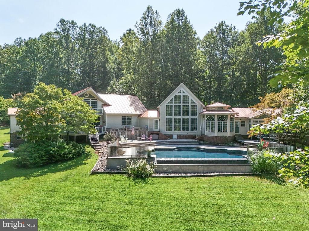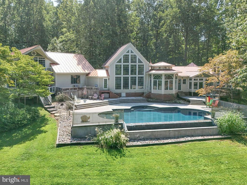 Nestled beautifully amongst the surrounding oak trees, this magnificent home is formal in scale and proportion, yet charmingly fun, warm and welcoming. Boasting 6 total bedrooms, 7.5 baths and 3 fully equipped kitchens, natural light pours in from every angle, making this gem shine!There are dramatic and tasteful stone & tile selections throughout, as well as gorgeous hardwoods, amongst so many other can't-miss features. All three kitchens are beyond modern standards and offer stunning counters and more than ample prep and cabinet space. The primary suite is stately and elegant, with beautifully etched French doors extending to the ceiling. Inside you'll find an extremely unique granite wall with museum uplighting. In the "train room" you'll find extremely unique lava flooring that moves when stood upon. The main living area seconds as a library that looks out onto the infinity pool, manicured lawn and fully stocked pond and gazebo. In the wing next to the main home, the fully independent pair of enormous in-law suites can be just that or easily transformed into a B&B opportunity, as the property is minutes away from hiking, vineyards, breweries, boutiques and world-class dining in Culpeper, yet still offers serenity!