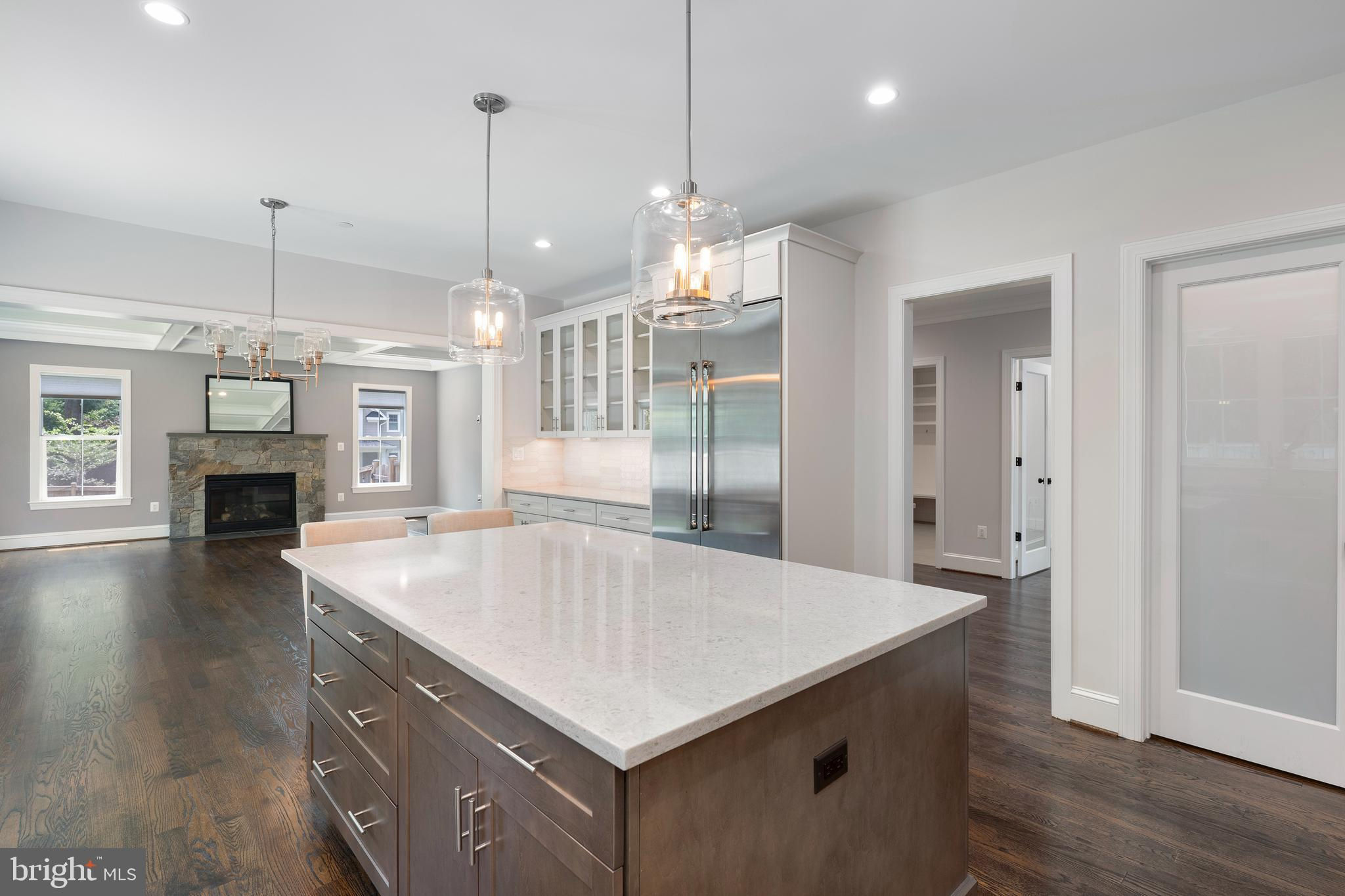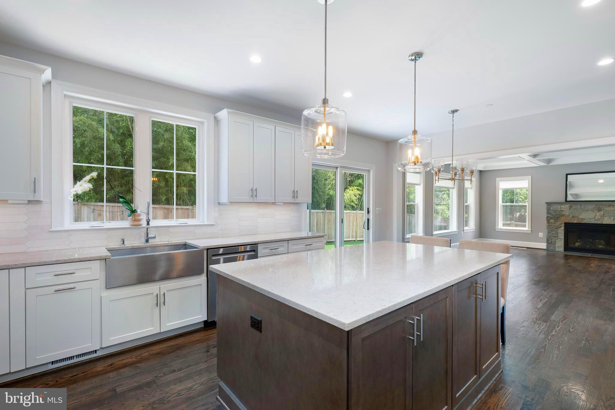 Welcome to 6405 Wilmett Road — a stunning new construction by Meridian Homes, ideally nestled in the heart of Wyngate, one of Bethesda’s most beloved neighborhoods. This beautifully crafted modern farmhouse offers over 5,600 square feet of refined living space, perfectly blending timeless charm with today’s lifestyle. Step inside to sun-drenched, open-concept living spaces with solid hardwood floors throughout the main level — warm, durable, and made for real life. The gourmet kitchen is a showstopper, complete with a large center island, quartz countertops, designer cabinetry, stainless steel apron-front sink, a walk-in pantry, and top-tier appliances. The adjoining family room is filled with natural light and features custom coffered ceilings and a stone-accented gas fireplace — the perfect gathering space for cozy evenings or elegant entertaining. Also on the main level: a spacious dining room, a stylish powder room, a home office or study, and a welcoming foyer with custom millwork. The mudroom leads to an oversized two-car garage and offers built-in lockers, a storage closet, and access to a second family foyer with cabinetry, a beverage fridge, and a walk-in closet. Upstairs, the expansive primary suite feels like a private retreat with a tray ceiling, dual walk-in closets with custom built-ins, a mirrored dressing area, and gleaming hardwood floors. The spa-inspired bath is beautifully appointed with a freestanding soaking tub, an oversized shower with bench, dual vanities with quartz counters, and elegant chrome fixtures. Three additional upper-level bedrooms are generously sized and feature upgraded carpeting, built-out closets, and access to two full bathrooms with porcelain tile, custom mirrors, and quartz or quartzite countertops. A well-equipped laundry room with cabinetry completes the upper floor. The finished lower level is bright and versatile, with a large recreation room, a fifth bedroom, full bathroom, bonus storage, and flexible space perfect for a gym, media room, or second office. Set on a generous 9,167 square-foot lot, the home features fully fenced rear and side yards, professional landscaping, and a flagstone patio just off the kitchen — ideal for outdoor entertaining or quiet evening relaxation. Sidewalk-lined streets invite daily strolls through the community. Located just minutes from downtown Bethesda, Wildwood Shopping Center, Montgomery Mall, I-495, and top-rated public and private schools — this home truly has it all. Come, see, and move right in.