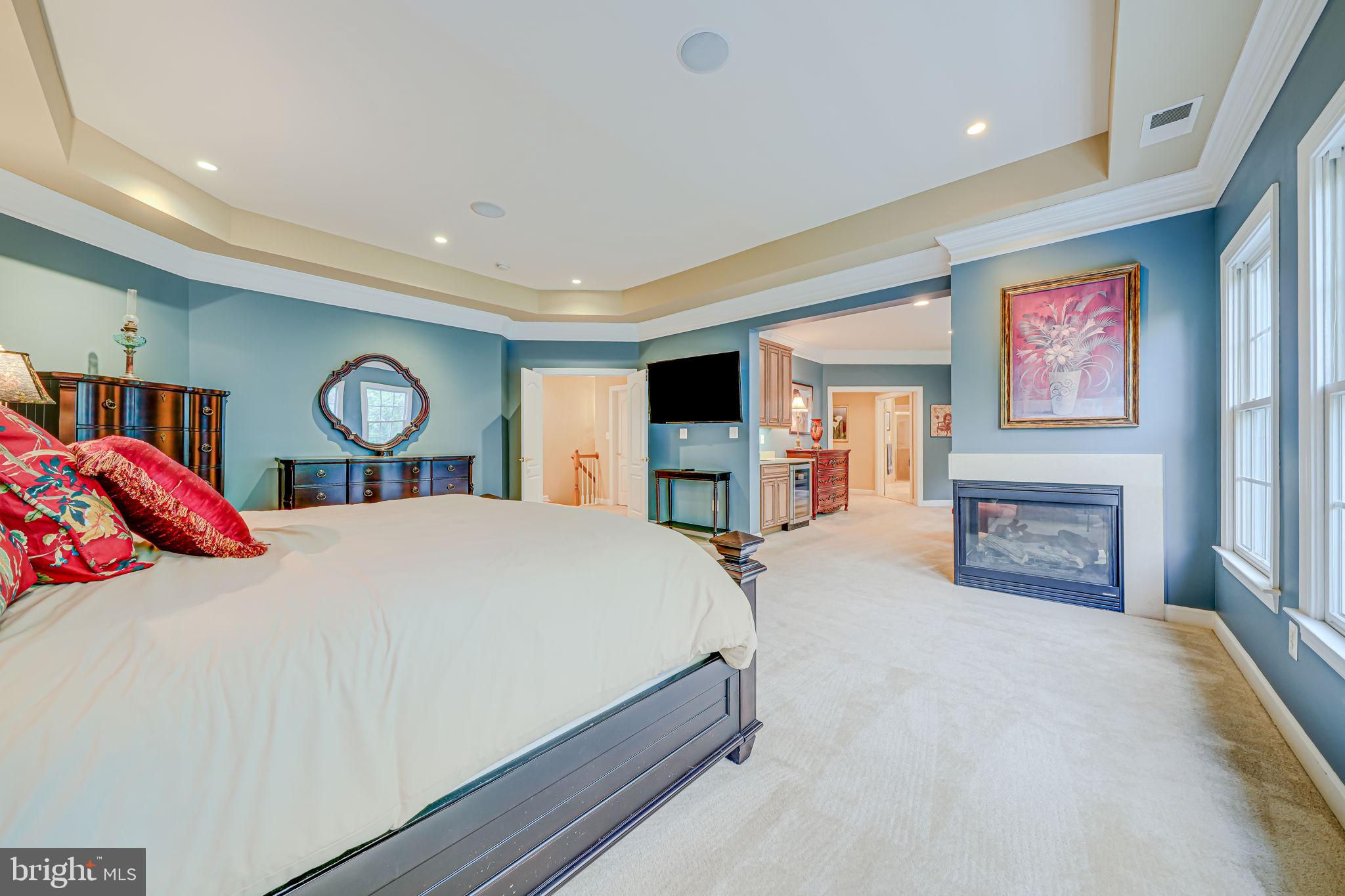 Here is your chance to join the exclusive Lake Barcroft community, with its 131 acre lake with 5 private beaches inviting residents to swim, fish, boat, play volleyball or spend lazy afternoons grilling and floating. Step into the grand, marble-floored foyer of this stunning home, located in the prestigious Lake Barcroft community and be immediately captivated by its impressive scale! The main level has been recently painted and features a formal dining room, elegant living room, and an open kitchen that flows into the dining and family room, all centered around a double-sided fireplace. A game room complete with a pool table and accessories adds a touch of fun, while the spacious office and two half bathrooms complete this level. Gorgeous hardwood floors, soaring ceilings, house speaker system and recessed lighting throughout enhance the home's inviting ambiance. Take your pick of two staircases leading upstairs (with freshly painted hallways) to find four spacious bedrooms, each with its own full bathroom and recessed lighting. The primary suite offers a luxurious retreat, featuring a large main bedroom, a cozy sitting area, two expansive walk-in closets, and a spa-like bathroom with a separate jetted tub, dual vanities, and two private commode rooms. A fireplace, wet bar, and wine fridge make this space feel even more special. The lower level impresses with 9ft ceilings, LVP flooring, and recessed lighting. It includes a bedroom with a full bath, a double-sided fireplace, and two additional bonus spaces perfect for entertaining. A full-sized bar, with wine fridge, completes this entertainment haven. Outside, a large rear deck offers stunning views of the .66-acre lot, while the two-car garage adds convenience. Enjoy 5 private community beaches with swimming, boating, fishing, volleyball and more. Lake Barcroft Beach #2 is just a five-minute walk down a scenic path, making it easy to enjoy the best of Lake Barcroft living.