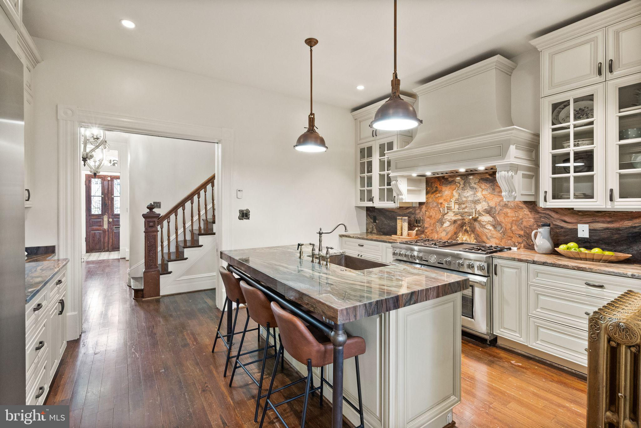 Welcome to 653 Maryland Avenue NE, a beautifully restored 4-bedroom, 4.5-bath home that blends historic charm with modern upgrades. Located in the prestigious Capitol Hill neighborhood, this 3,068 sq. ft. residence features Federal, Queen Anne, and Italian Villa architecture, and retains its 19th-century character with exposed brick, hardwood floors, high ceilings, and the front door features antique knobs, carefully selected from The Brass Knob, adding a touch of historic authenticity. Experience culinary luxury with high-end Thermador appliances including a column refrigerator and freezer in the remodeled chef's kitchen boasting stunning Fusion Natural Stone Quartzite countertops, Kingston Brass faucet, and a solid hammered copper sink. These high-end finishes complement the space, making the kitchen both functional and elegant. The spacious primary suite offers a private retreat with a charming fireplace, a custom walk-in closet, and a spa-like bathroom. The lower level, complete with a bedroom, living area, kitchen, and private entrances, provides flexibility for guests or potential rental income. Outside, enjoy entertaining on the deck and barbecue area. The front steps feature an electric snow melting system, ensuring winter season convenience. The home’s prime location places you just steps from the U.S. Capitol, Supreme Court, and Library of Congress, with easy access to dining, shopping, and cultural landmarks. This meticulously renovated home combines the best of historic architecture and contemporary luxury. Don’t miss the opportunity to own this remarkable Capitol Hill residence!