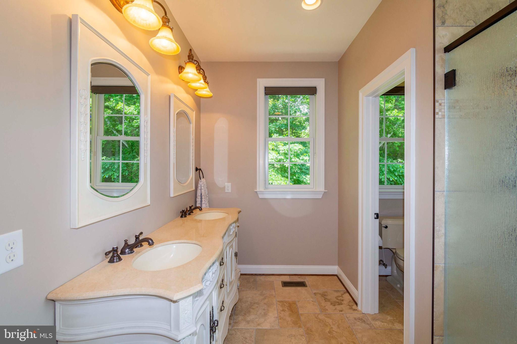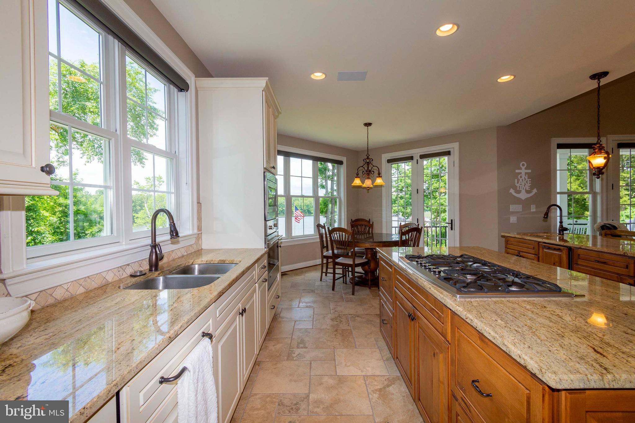 This custom-built waterfront home on Lake Anna offers an exceptional blend of luxury, functionality, and stunning design elements. Boasting 5 bedrooms and 4.5 bathrooms, this residence provides ample space for family and guests. Situated on 204 feet of deep waterfront (15 ft at end of dock), this property offers breathtaking, unobstructed views of the lake, creating a serene and picturesque setting that can be enjoyed from multiple vantage points within the home. The open floor plan enhances the spaciousness of the main living areas, seamlessly connecting the kitchen, dining room and Great Room. The gourmet kitchen is a chef’s dream, equipped with top-of-the-line appliances, ample counter space and custom cabinetry. The kitchen flows effortlessly into the dining room, which is perfect for both intimate dinners and large gatherings. The Great Room is the heart of the home, featuring a stunning stone fireplace that serves as a focal point, creating a warm and inviting atmosphere. Large windows provide panoramic views of Lake Anna, allowing natural light to flood the space and accentuate the beauty of the surroundings. The main level also includes a luxurious primary suite designed for comfort and tranquility. The primary suite features tray ceilings that add an elegant touch, along with large windows that offer amazing views of the lake. The exterior of the home is defined by extensive stonework, including stone columns at the driveway entrance, flagstone porches, walkways, patio and retaining wall. These elements add a touch of elegance and sophistication while seamlessly blending with the natural beauty of the surroundings. The outdoor living spaces are perfect for entertaining, with a built-in grill island, an outdoor fireplace on the rear patio and a separate firepit and patio in the backyard. These areas are designed to maximize the enjoyment of the waterfront views, providing tranquil spots to relax and take in the scenery. A unique feature of the property is the 200-foot matching natural stone bulkhead/sea wall, which not only enhances the aesthetic appeal but also offers robust shoreline protection. This distinctive feature sets the property apart as one of a kind on Lake Anna. The expansive waterfrontage allows for various water activities, from swimming and fishing to boating and jet skiing. The large dock is a standout feature, offering a covered area and sunpad, two boat slips with boat lifts, Gorilla deck composite decking, a storage area with electricity, running water, hard-wired internet, and a Sonos music system with eight speakers. The dock also includes four floating jet ski docks, ensuring ample space for all your watercraft needs. The dock's design emphasizes functionality and convenience while allowing you to fully appreciate the beauty of the lake. The garage is expanded and oversized, measuring 28x28, and provides ample space for two cars and additional storage. The paved driveway offers easy access and additional parking space, ensuring convenience for residents and guests alike. Inside, the home features a full finished walkout basement, adding extra living space perfect for entertainment or relaxation. Large windows throughout the home allow natural light to flood the interior, highlighting the stunning lake views. An integrated home audio system runs throughout the house, providing high-quality sound in every room. The central vacuum system ensures convenient cleaning and maintenance, and most of the furniture conveys with the home, making it move-in ready. This Lake Anna custom-built waterfront home is a rare find, offering unparalleled luxury and convenience. With its unique stonework, extensive outdoor living spaces, and well-appointed dock, it caters to those seeking a high-end lakefront lifestyle. The combination of modern amenities and thoughtful design ensures a comfortable and enjoyable living experience, whether as a primary residence or a vacation home.