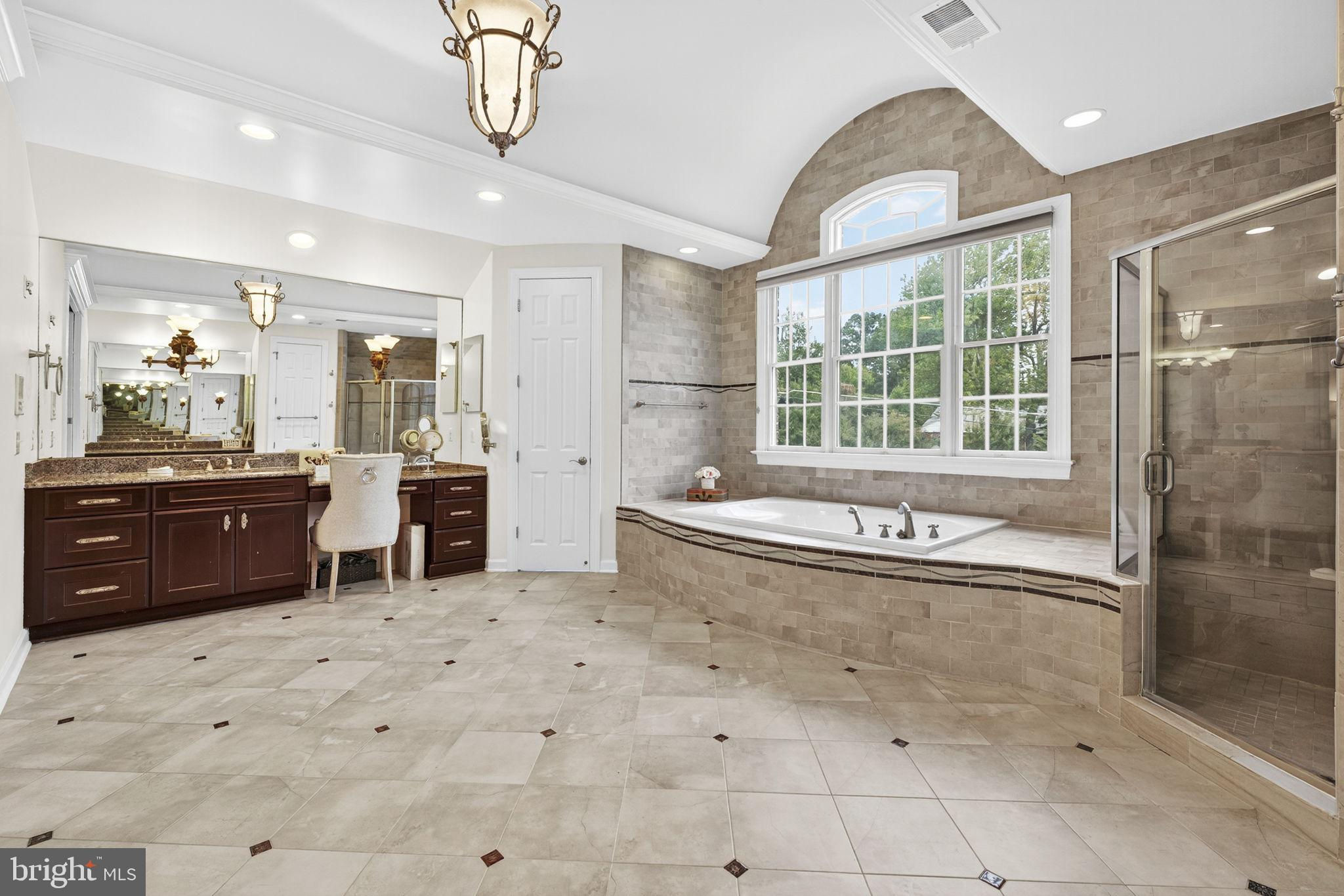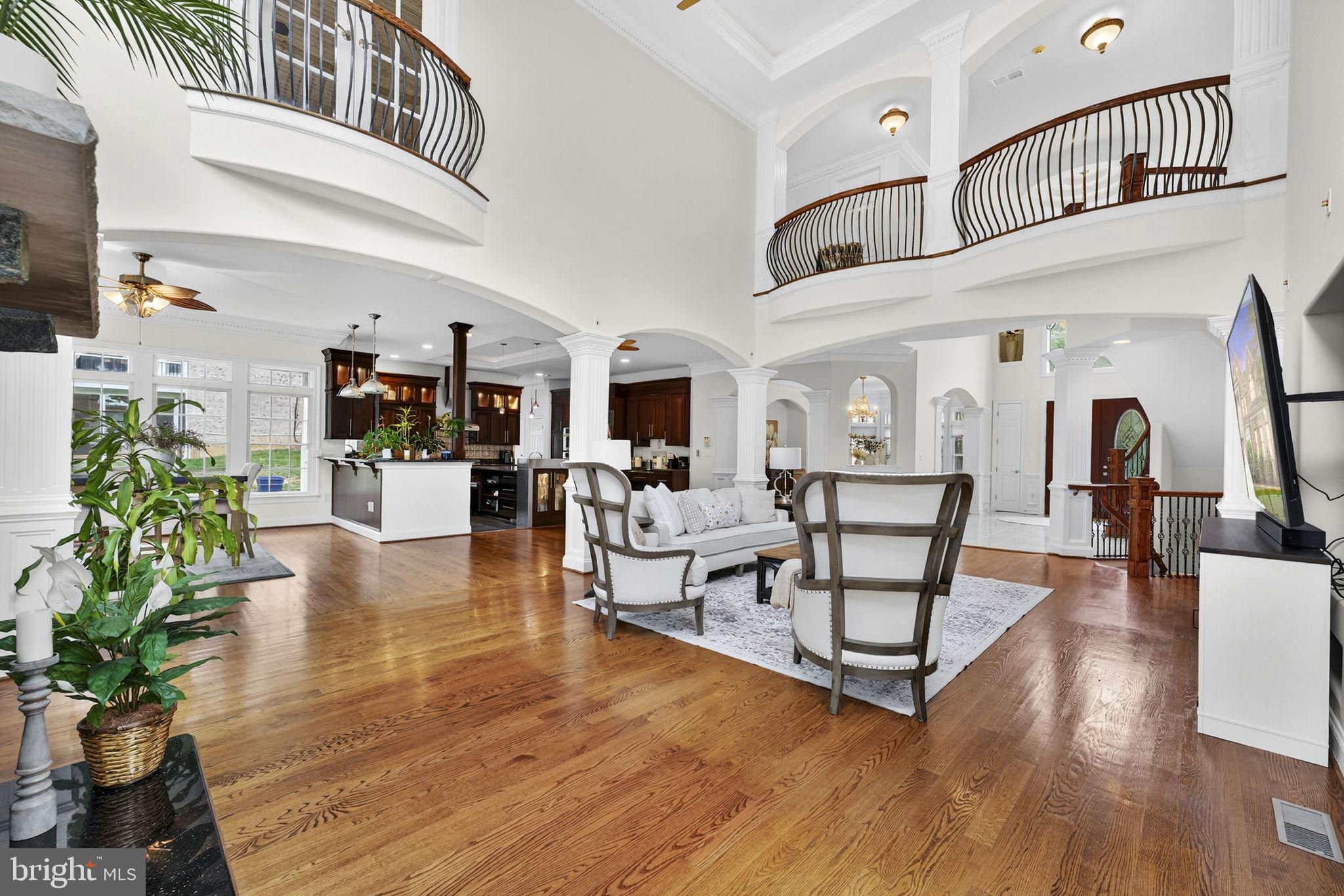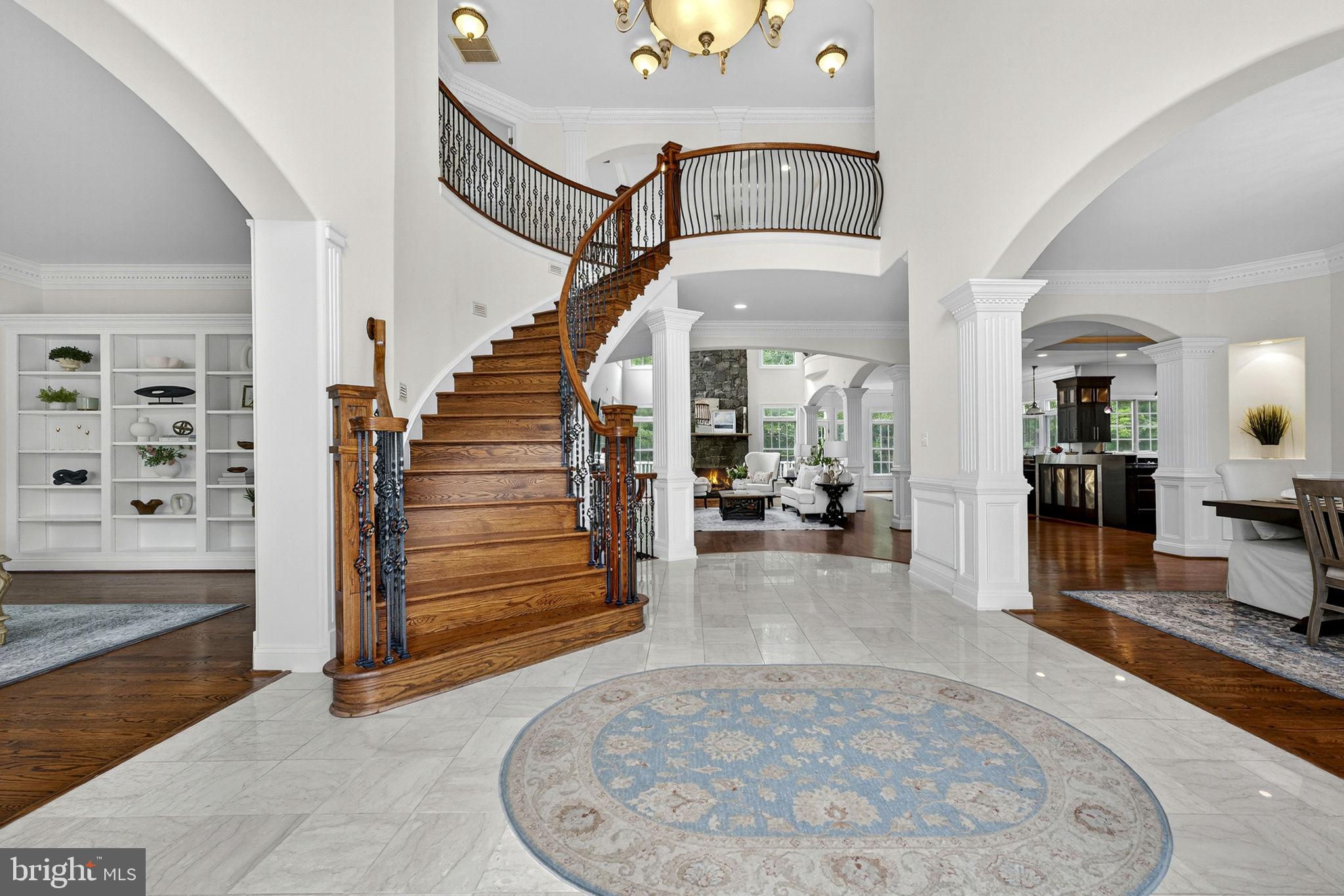 Welcome to your new home where attention to detail meets luxury and elegance! This stunning custom build has so many great features including an all-brick elevation, 28-foot ceiling in the family room area, enormous primary suite, main level bedroom and full bathroom and much more! Location is key in this highly desired neighborhood! In close proximity to Braddock Road, 495 Beltway, route 66, route 50, and minutes away from Washington D.C. As you enter the main foyer you will notice pristine tile flooring, a circular staircase with iron rod spindles, high ceilings, and custom wood accent trim! To your left you will see the sun-soaked living room with custom built-in's and to your right you will find the elegant dining room with shadow box accent walls, 9" crown molding, and an expanded bay window. Past the foyer into the family room area the open floor plan really shines as you notice the two-story high ceilings, rounded archways, pristine hardwood floors, and gorgeous columns. Any chef would love to operate in this huge gourmet kitchen featuring a spacious island, granite counter tops, tons of cabinet space, stainless steel appliances, two ovens, an extra-large refrigerator, industrial vent system and breakfast nook surrounded by windows bringing in natural light. Enjoy evenings with guests on the spacious deck overlooking the large-flat backyard. The main level also features a main level guest suite with one full bathroom, and one powders room for guests. As you make your way to the upstairs area you will notice hardwood floors and the custom balconies overlooking the lower level. Relax and unwind in the massive owner's suite that includes a sitting room with cedar wood ceiling and Shakespearean balcony overlooking the family room, a clothes lover's dream walk-in closet, a spa-like primary bathroom that has a large soaking tub, dual vanities, glass shower, and private wash closet. The fully finished walk-out basement offers two more bedrooms, a full bath, and a half bath. Entertain friends and family at the basement full bar with glass cabinets, granite counters, updated pendant lighting, mini-fridge, dishwasher, built-in microwave, and tile flooring. Other features of this home include: three car garage, mud room, rounded drywall edges, updated light fixtures, storage shed, and fully functional intercom system. Don't miss this incredible opportunity!!!
