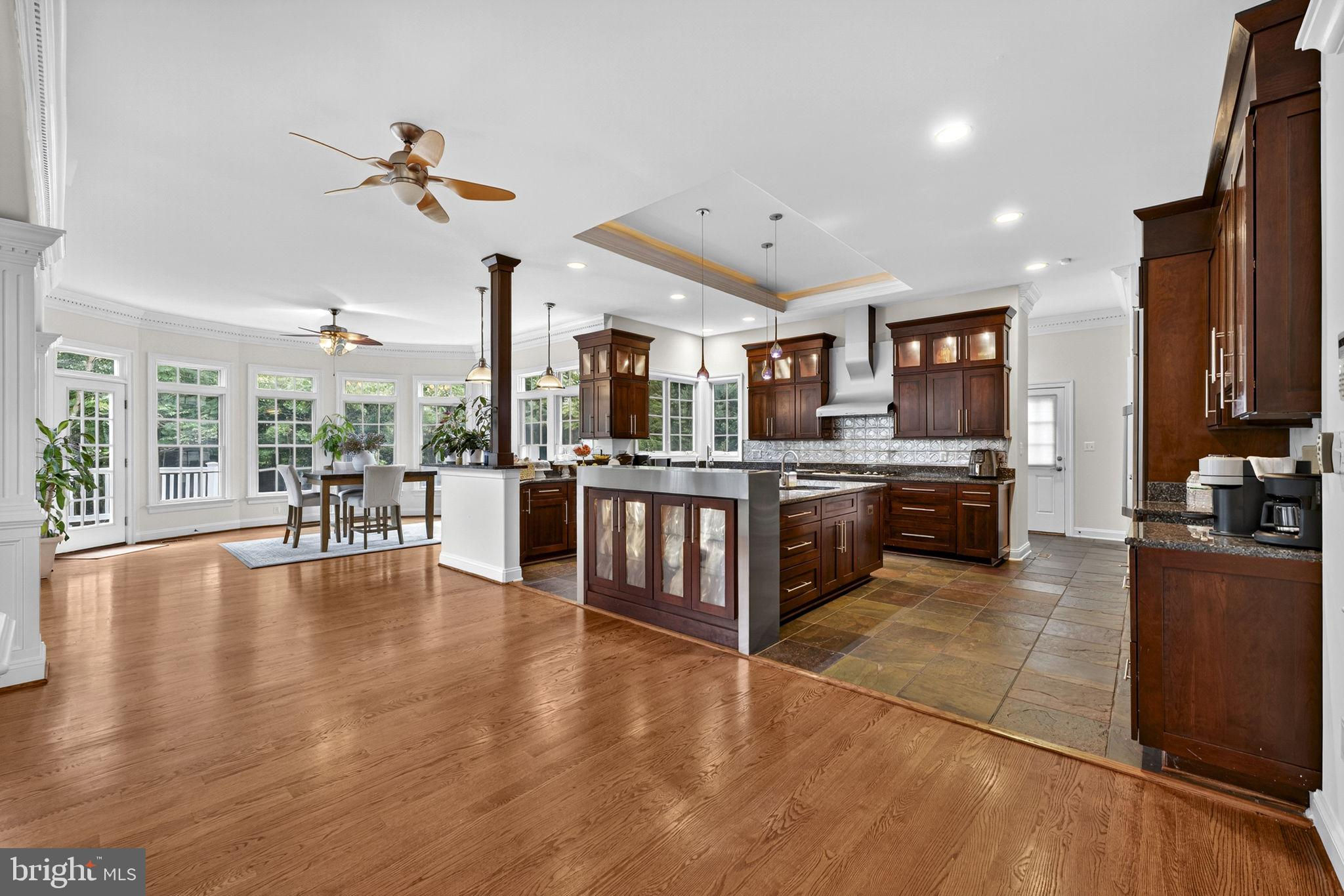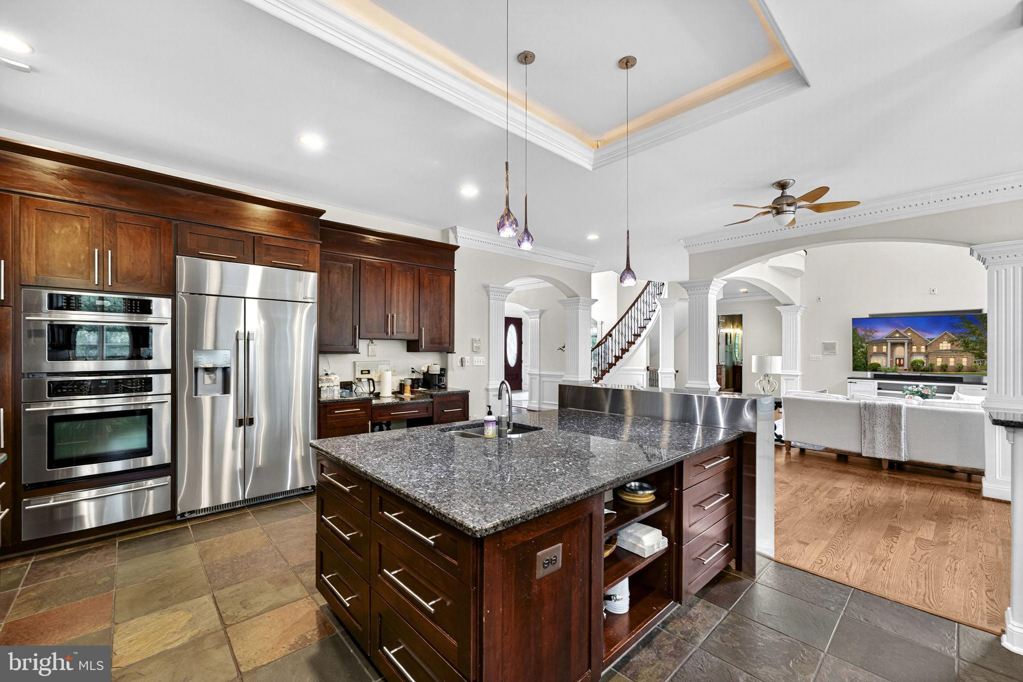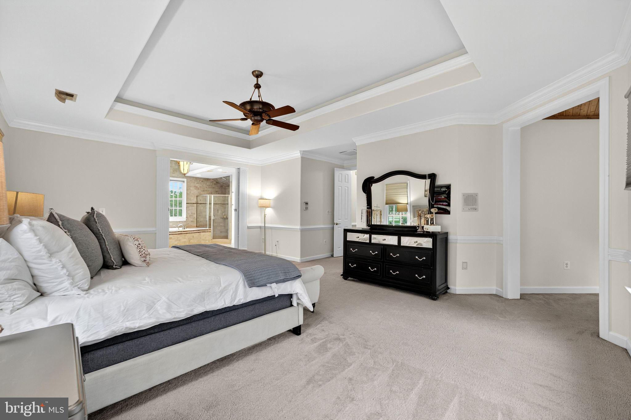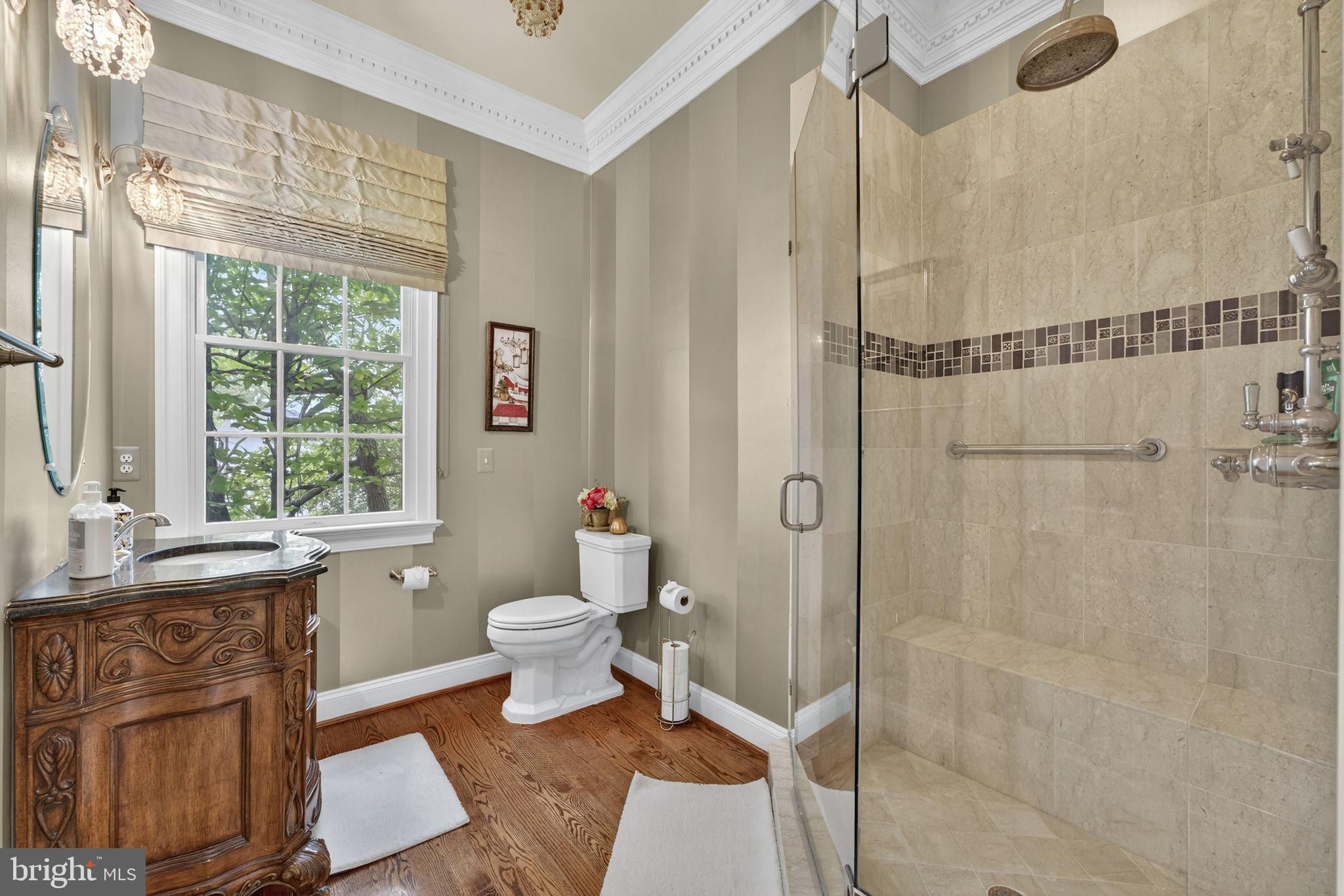 Welcome to your new home where attention to detail meets luxury and elegance! This stunning custom build has so many great features including an all-brick elevation, 28-foot ceiling in the family room area, enormous primary suite, main level bedroom and full bathroom and much more! Location is key in this highly desired neighborhood! In close proximity to Braddock Road, 495 Beltway, route 66, route 50, and minutes away from Washington D.C. As you enter the main foyer you will notice pristine tile flooring, a circular staircase with iron rod spindles, high ceilings, and custom wood accent trim! To your left you will see the sun-soaked living room with custom built-in's and to your right you will find the elegant dining room with shadow box accent walls, 9" crown molding, and an expanded bay window. Past the foyer into the family room area the open floor plan really shines as you notice the two-story high ceilings, rounded archways, pristine hardwood floors, and gorgeous columns. Any chef would love to operate in this huge gourmet kitchen featuring a spacious island, granite counter tops, tons of cabinet space, stainless steel appliances, two ovens, an extra-large refrigerator, industrial vent system and breakfast nook surrounded by windows bringing in natural light. Enjoy evenings with guests on the spacious deck overlooking the large-flat backyard. The main level also features a main level guest suite with one full bathroom, and one powders room for guests. As you make your way to the upstairs area you will notice hardwood floors and the custom balconies overlooking the lower level. Relax and unwind in the massive owner's suite that includes a sitting room with cedar wood ceiling and Shakespearean balcony overlooking the family room, a clothes lover's dream walk-in closet, a spa-like primary bathroom that has a large soaking tub, dual vanities, glass shower, and private wash closet. The fully finished walk-out basement offers two more bedrooms, a full bath, and a half bath. Entertain friends and family at the basement full bar with glass cabinets, granite counters, updated pendant lighting, mini-fridge, dishwasher, built-in microwave, and tile flooring. Other features of this home include: three car garage, mud room, rounded drywall edges, updated light fixtures, storage shed, and fully functional intercom system. Don't miss this incredible opportunity!!!