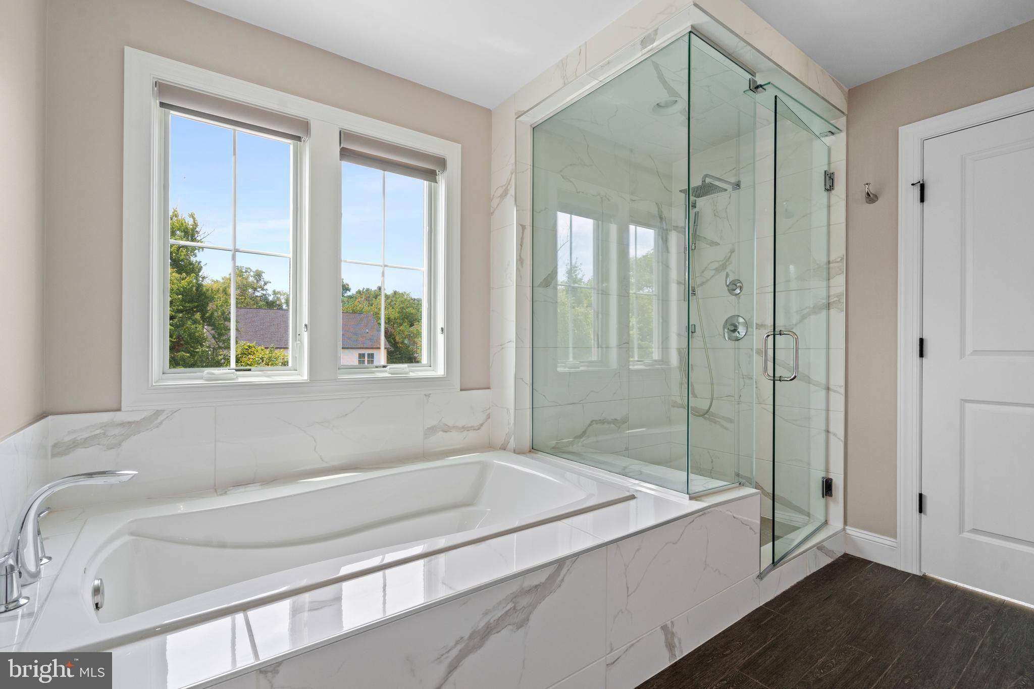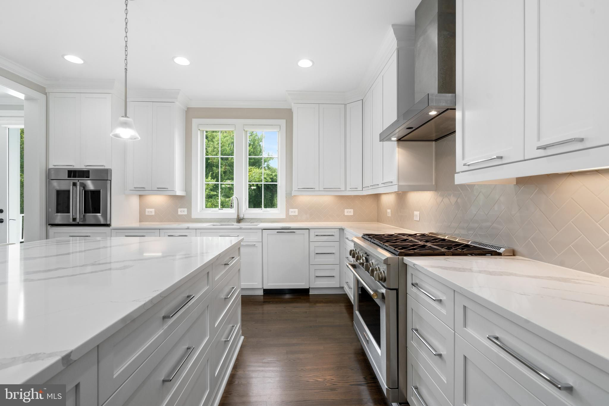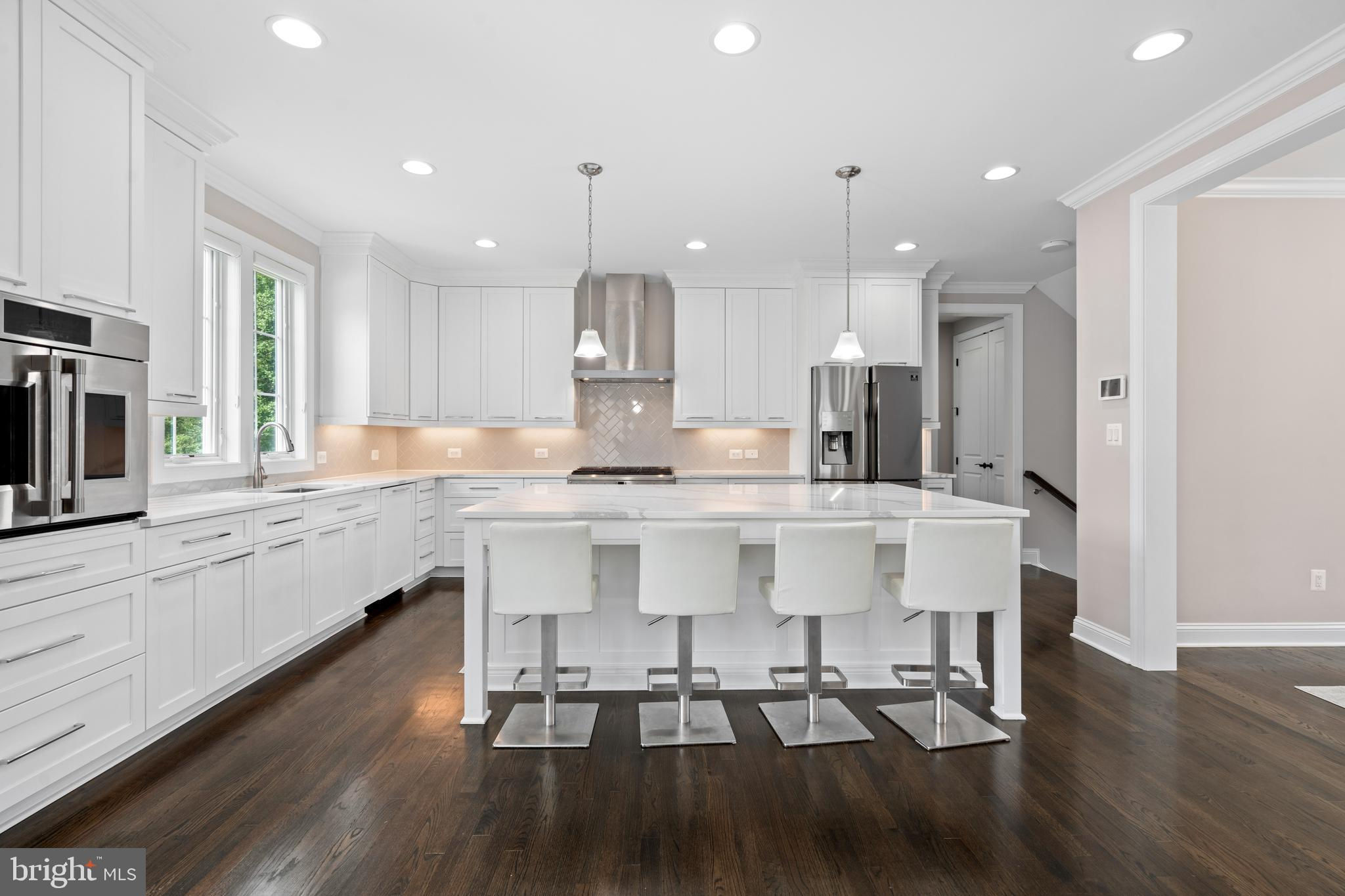 Experience luxury living at its finest in this exquisite 6-bedroom, 5.5-bath home in the prestigious Chesterbrook Gardens neighborhood, built by award-winning Paramount Construction in 2021. This nearly new residence is situated in the highly sought-after Kent Gardens Elementary, Longfellow Middle School, and McLean High School district. Spanning three levels above grade and bathed in natural light, the home showcases exceptional design and craftsmanship throughout. Upon entering, you're greeted by beautiful hardwood floors that flow throughout the main level, a formal dining room, a powder room, and a gourmet kitchen that opens into a spacious family room The chef's kitchen boasts a large island, Monogram stainless steel appliances, including a secondary oven with French doors, extra tall custom white cabinetry, recessed lighting, a tile backsplash, quartz countertops, and a generous pantry with custom shelving. The adjoining family room is perfect for gatherings, with its coffered ceilings, marble gas fireplace, and access to a low-maintenance Trex deck ideal for entertaining. The main level also offers a versatile en-suite bedroom, perfect for guests, a home office, or an in-law suite. Upstairs, you'll find four bedrooms, including two en-suites, a Jack and Jill bathroom with a double vanity, and a conveniently located laundry room. The primary suite is a true retreat, featuring a double vanity with quartz countertops, a soaking tub, a steam shower, and a spacious walk-in closet. The lower level provides additional living space with two double-door walkout to the backyard, a sixth bedroom, a full bath, and access to a two-car garage. Situated in a prime location, this home is just minutes from major shopping destinations like Tysons Corner Mall, key highways, including the Dulles Toll Road, I-495, I-66, and multiple Silver Line metro stations, offering easy access to downtown DC. Don't miss the chance to make this exceptional property your new home!