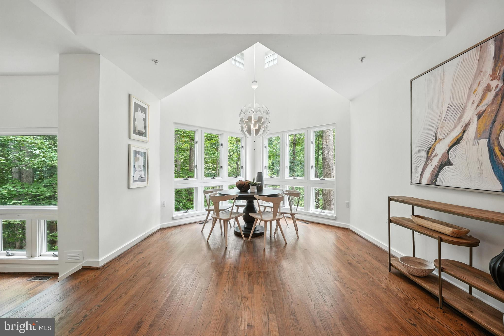 GORGEOUS POST MODERN HOME - Luxury in residential architecture had been traditionally expressed in the classical language. Nowhere is this more evident than in Washington, D.C.’s most established neighborhoods. This 5-bedroom and 4.5-bathroom home tucked away in Chevy Chase DC with park views is an expression of luxury in an entirely different idiom. Private driveway leads to an enclave of 4 residences designed by architect Thomas S. Shiner. His works known for intersecting at architecture and industrial design, exemplify that good design is essential and fundamental. Shiner’s contributions to architecture is amongst those that have given new, wider dimensions to the terrain in which people interact with design. Postmodernism evolved through the 1960s but achieved its apotheosis in the early 1980s. It was a synthesis of forms and proportions borrowed from antiquity and revealed itself most typically in large-scale building typologies. These forms found a new medium in the hands of many celebrated American architects, some of whom were chiefly identified with this style over others. Floor to ceiling windows at the rear of the home provide a direct view to Rock Creek Park (Pinehurst). Nearly 5,300 square feet of interior living space includes a solarium, loft, screened-in art studio/porch, game room, gym/office, second kitchen, 4 fireplaces, and 2-car garage. The floor plan and interior details, including multiple levels and clerestory windows, are the progeny of the work of Paul Rudolph. The sensibility of both architects is clear in the way the spaces are articulated and the judicious use of decorative details. Open kitchen with stainless steel appliances, double oven, and bar seating facilitates guests and entertaining. Adjacent dining room open on four sides allowing for direct tree views of the park. Each of the 4 fireplaces offer a cozy and serene gathering spot through the various spaces of the home. Exterior wrap around deck faces the wooded Pinehurst Trail and offers a peaceful reprieve from the hustle and bustle of the city. Primary suite with 15-foot cathedral ceilings, wall of windows, loft, double closets, and spa-like primary bathroom. Three additional over-sized bedrooms, one with ensuite and a hall-bathroom with double sinks. Expansive lower-level includes sitting area, entertainment room, large screened-in porch, a fifth bedroom, an additional full bathroom as well as a second kitchen. Easy access to downtown DC and points north and south via Rock Creek Parkway and points west via Western Ave.