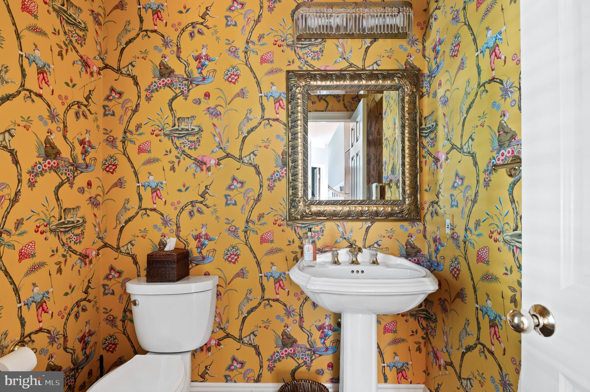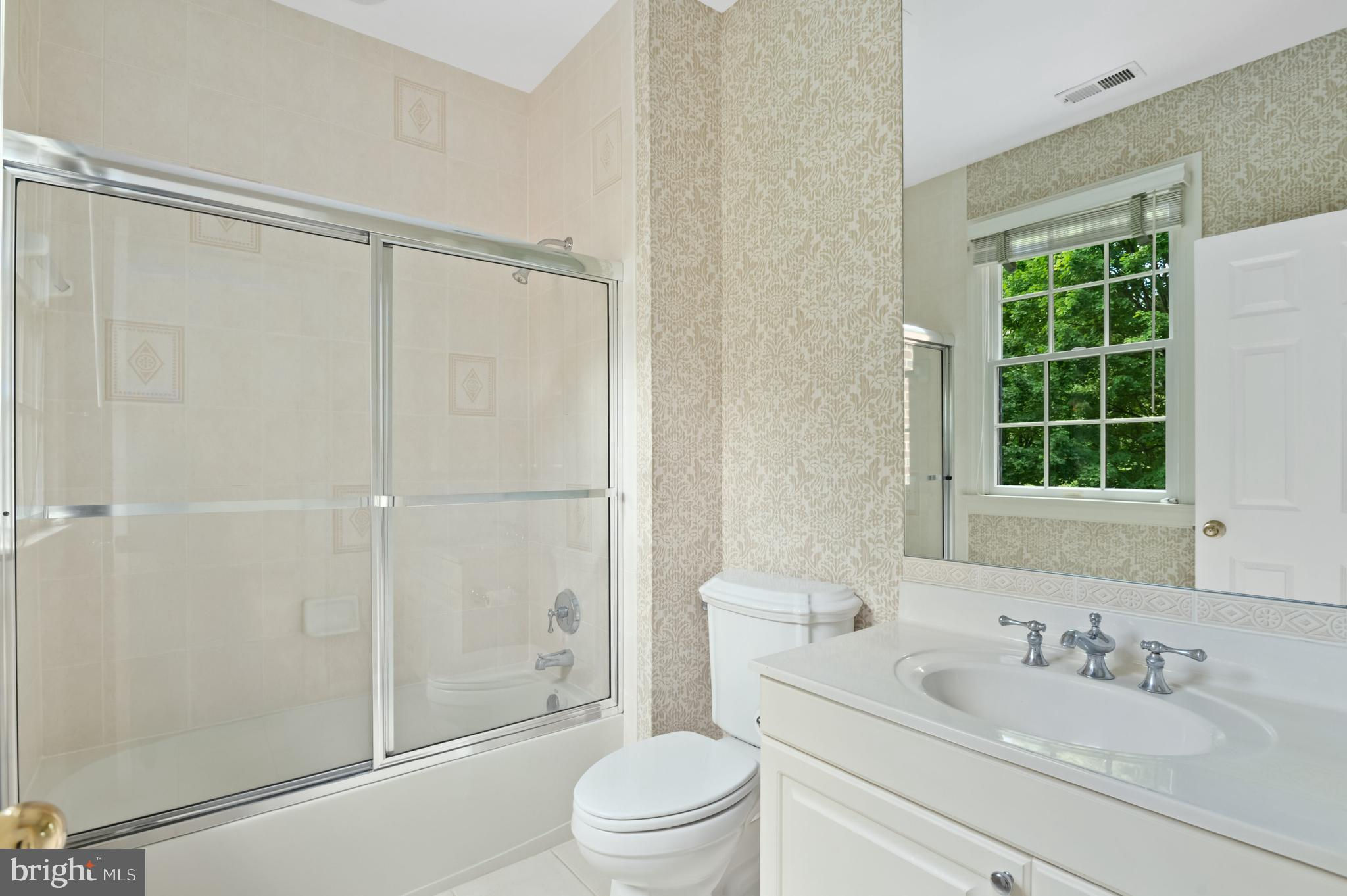 Set within one of Bethesda’s most coveted neighborhoods, this distinguished residence, offering nearly 6,500 square feet of beautifully finished space, gives the home an excellent flow for entertaining and everyday living. Designed for both intimate family moments and grand-scale entertaining, the home rests on a professionally landscaped .42-acre lot, where stone walls and lush plantings create a private sanctuary. A soaring two-story foyer, graced with gleaming hardwood floors and a sweeping curved staircase, introduces the main level. The formal living room, crowned with 19-foot ceilings and a striking oversized window, flows seamlessly into a refined formal dining room framed by bay windows and a charming window seat. The heart of the home, the expansive kitchen, is outfitted with custom wood cabinetry, a center island with seating, and a generous informal dining area that opens to the deck terrace and gardens. Adjoining this space, the family room offers built-ins, a stone hearth gas fireplace, and direct access outdoors. Completing the main level is a distinguished library, powder room, and oversized two-car garage. Upstairs, four spacious bedrooms include an exceptional primary suite. Walls of windows overlook the verdant rear grounds, while tray ceilings, a serene sitting area, and a custom walk-in dressing room elevate the sense of luxury. The primary ensuite features dual vanities, a jetted soaking tub, and a glass-enclosed shower with dual showerheads. The fully finished lower level offers a recreation room, mirrored gym, home theatre with projection system and luxury seating, plus a guest suite with full bath—perfect for hosting extended family, an au pair, or overnight visitors. The rear exterior offers an expansive deck, yard space and play house. Beyond its interiors, this home’s prime Bethesda location places it within close proximity to Walt Whitman High School, the Capital Crescent Trail, and the boutiques and dining of downtown Bethesda, with easy access to the Beltway.