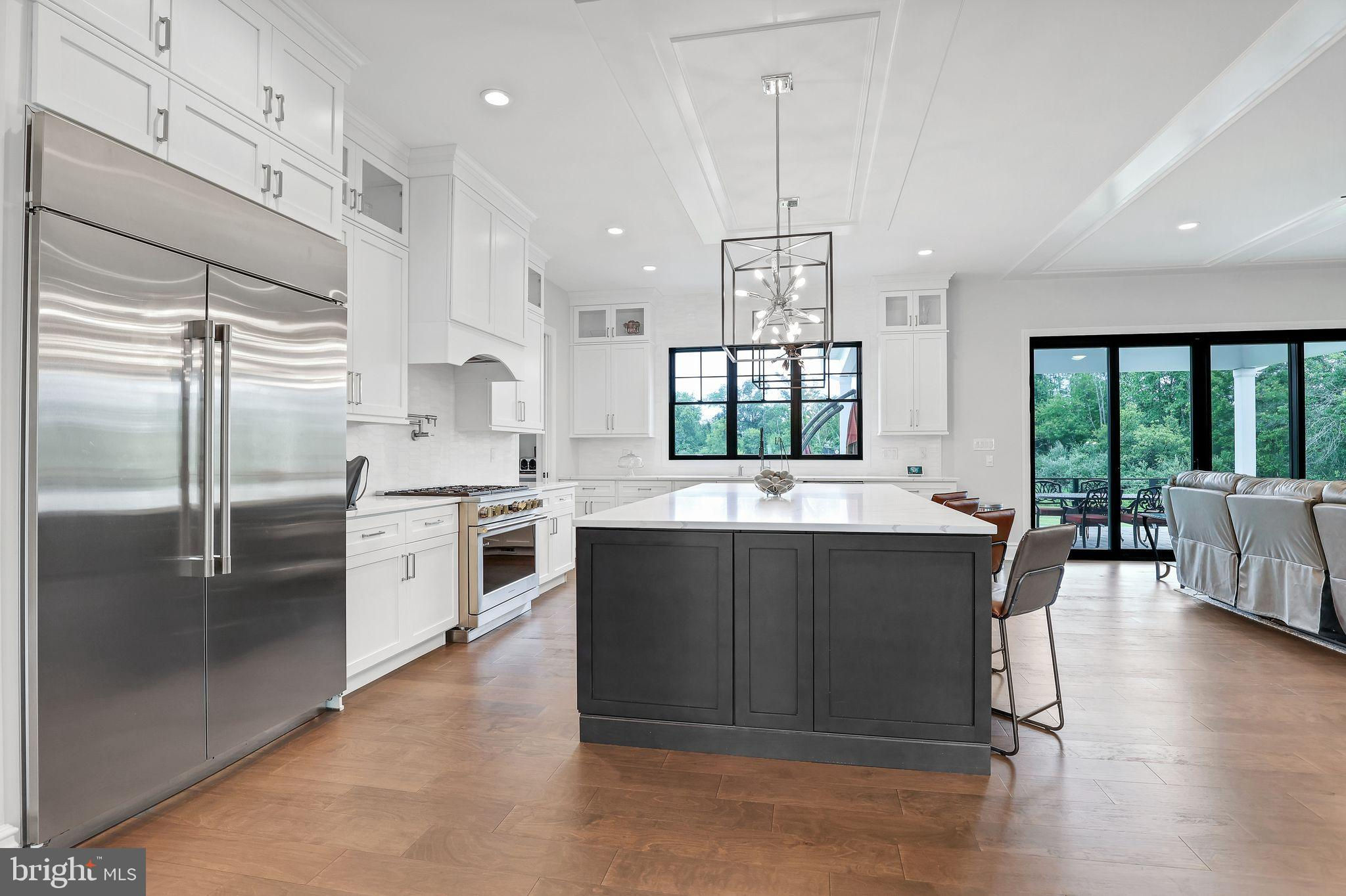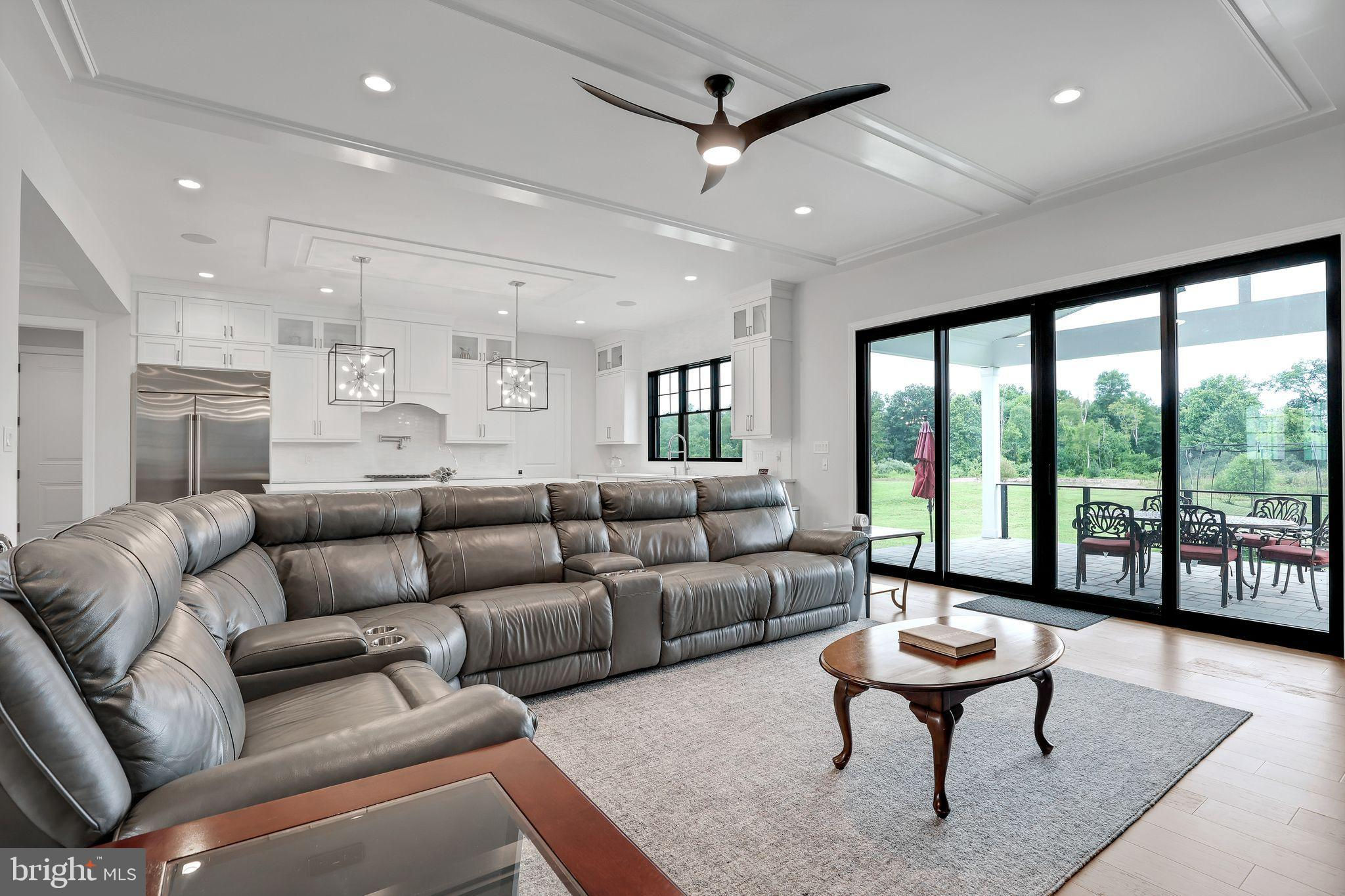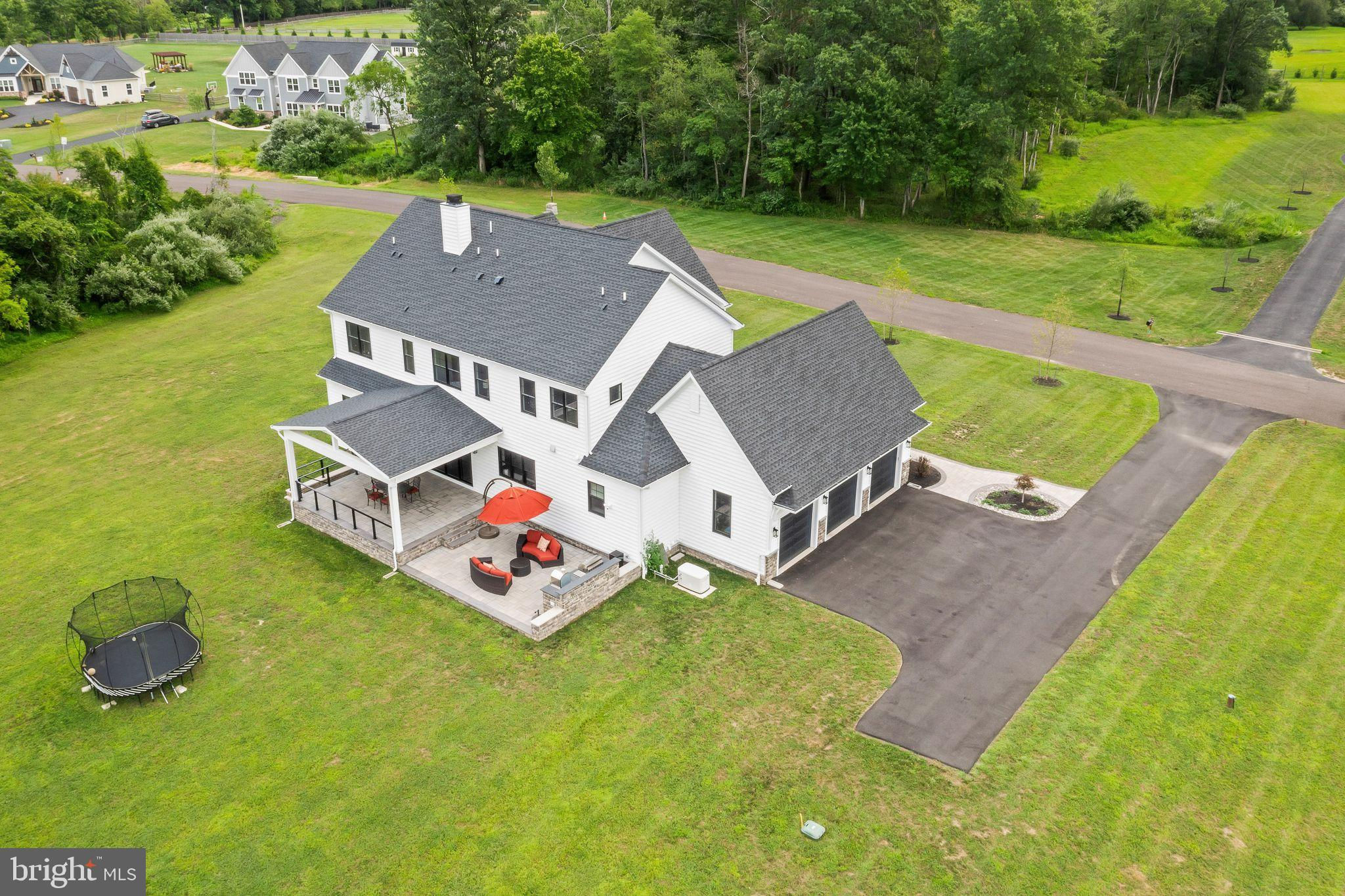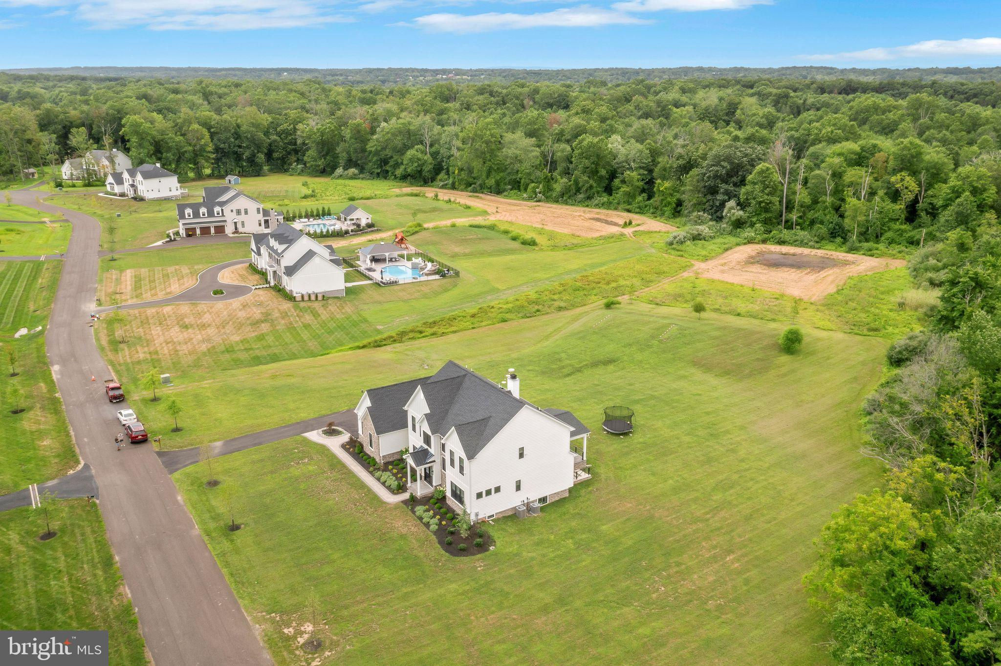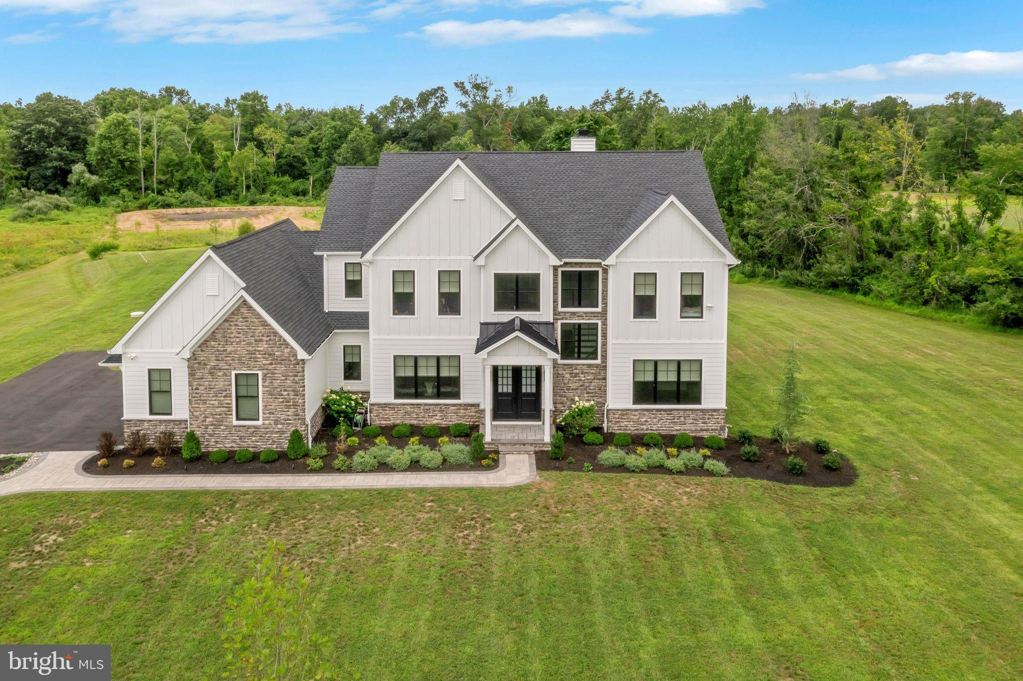 Welcome to 6934 Greene Meadow Lane, a stunning custom-built residence on over four acres in the heart of Bucks County, PA. Just one year old, this exceptional home offers five bedrooms and five and a half bathrooms in 4,000 square feet of luxury living space, blending modern design with timeless elegance. Additionally, the basement retreat boasts another 1,500 square feet of relaxation space that provides endless opportunities for any imagination. Step inside to discover ten-foot ceilings, abundant natural light, and an open-concept floor plan that seamlessly connects each living space. The gourmet kitchen is a chef’s dream, featuring state-of-the-art Monogram appliances, custom cabinetry, and a spacious island perfect for entertaining. The walk-in pantry built just off the kitchen provides accessibility ideal for any chef. The ground floor features a guest bedroom with full en suite bath, home office with stunning built in book shelves, and half bath. The mudroom with floor-to-ceiling storage is located just off the garage entrance and is perfect for the busy household! Located on the second floor, the primary bedroom is an ample retreat featuring a cozy sitting area, dual walk-in closets, and an expansive bathroom complete with walk-in shower and soaker tub. The second floor area also accommodates three other bedrooms: one bedroom with en suite bath and two bedrooms with Jack and Jill bath. The laundry room is also located on the second floor, making laundry convenient and easy. Retreat to the sweeping finished basement, complete with expansive bar and full bathroom, ideal for hosting any gathering or enjoying cozy evenings at home. This additional 1,500 square feet is ideal for a potential home theater or game room. The possibilities are endless. Included in the basement is a large flex space room, located just off the main space, ideal for a game room, home office, or whatever you need. Additional, unfinished storage space is located in the basement. The basement also includes a walk out feature leading to the back yard, perfect for future homeowners who may want to install a pool. Outdoor living has been elevated with a professionally designed outdoor kitchen, including a built-in pizza oven, creating the perfect space for dining al fresco and entertaining year-round. Other features include a whole house Bose sound system extending into the basement and patio area along with professionally installed and monitored Ring alarm and camera surveillance system. This home is also appointed with three fireplaces and a whole house generator. These modern, elegant upgrades throughout—from designer fixtures and finishes to thoughtfully curated details that define true luxury - are truly exquisite and waiting for you. Don’t miss your opportunity to own this remarkable property, combining contemporary style, comfort, and sophistication in one of New Hope’s most desirable neighborhoods.