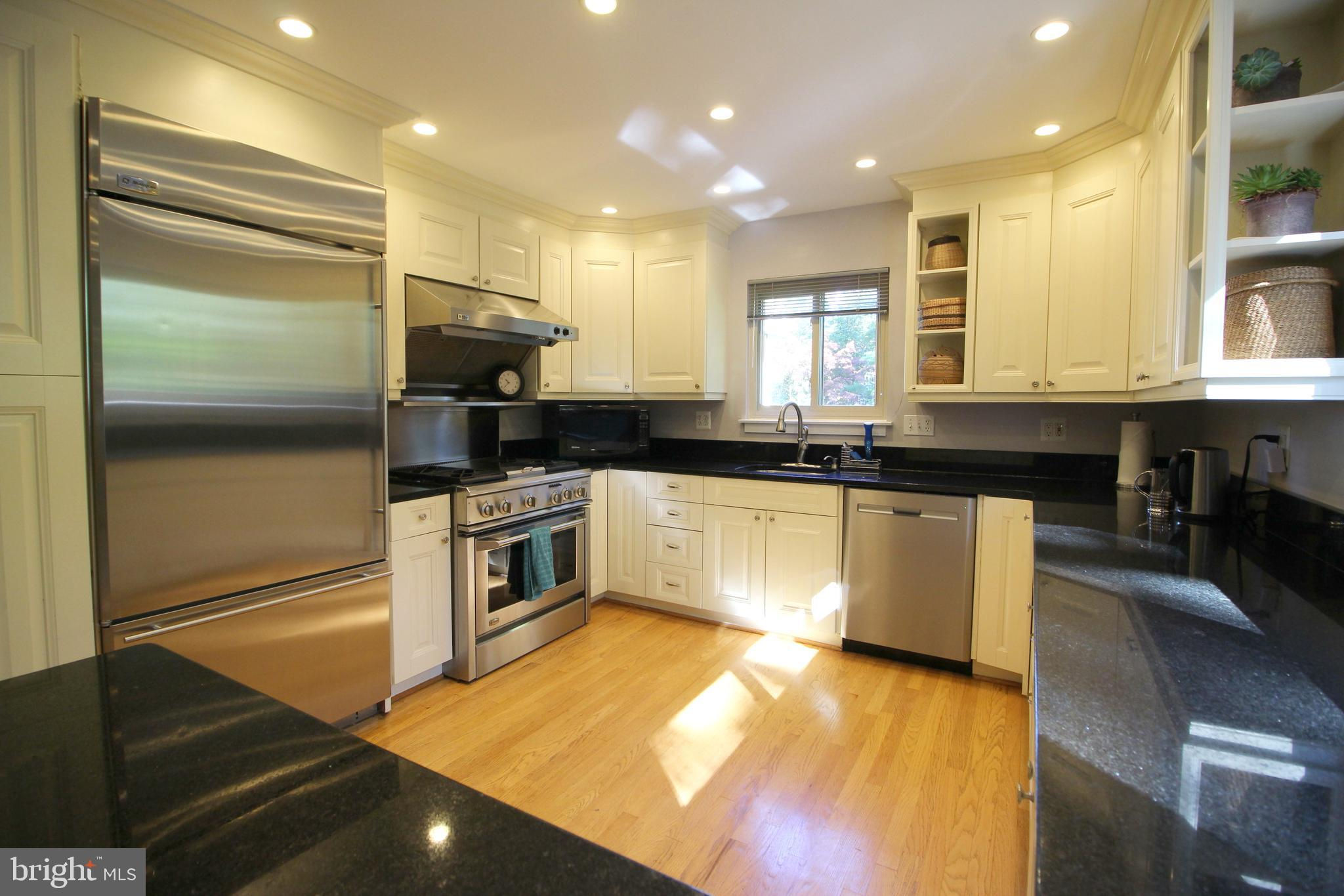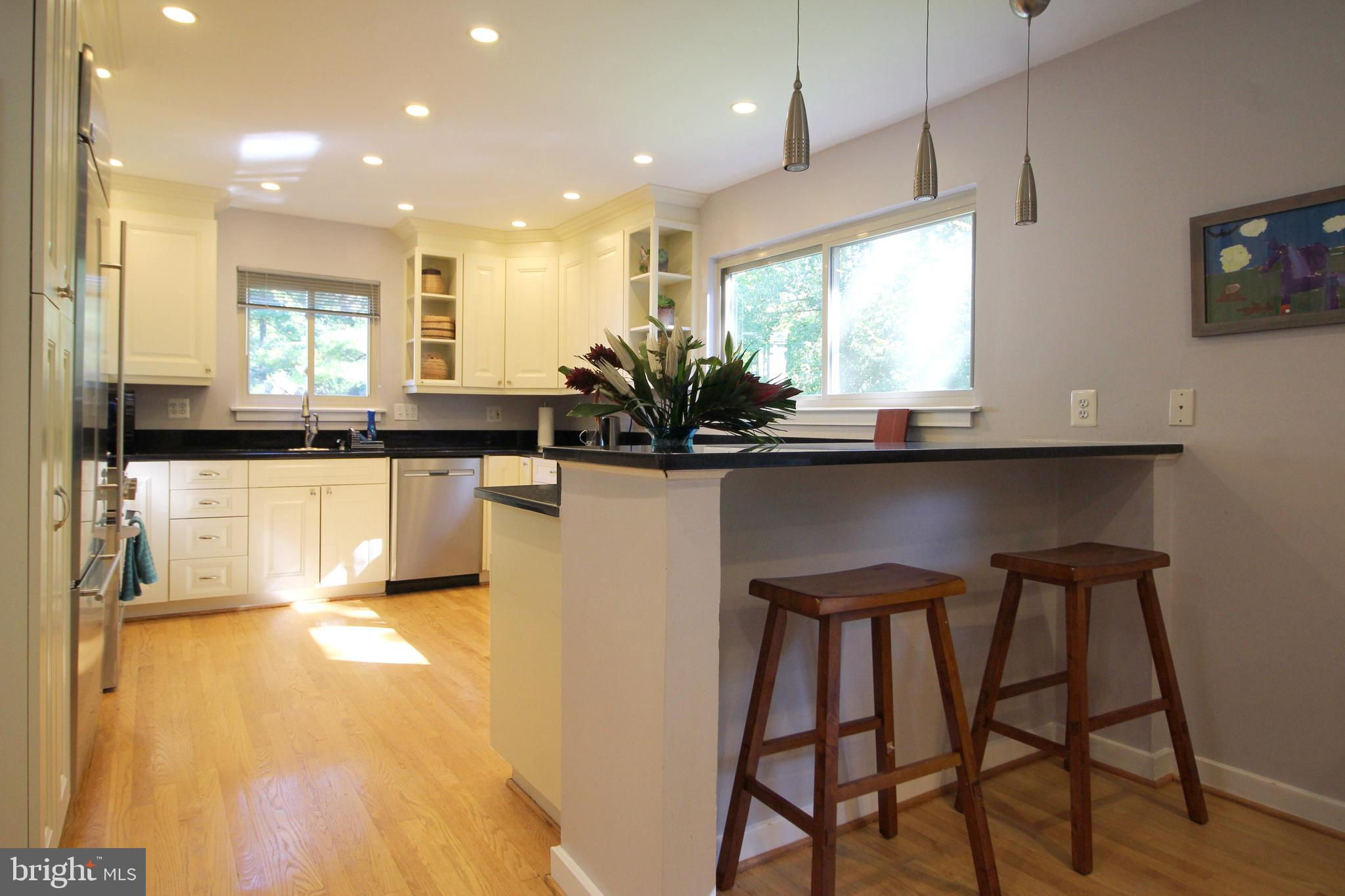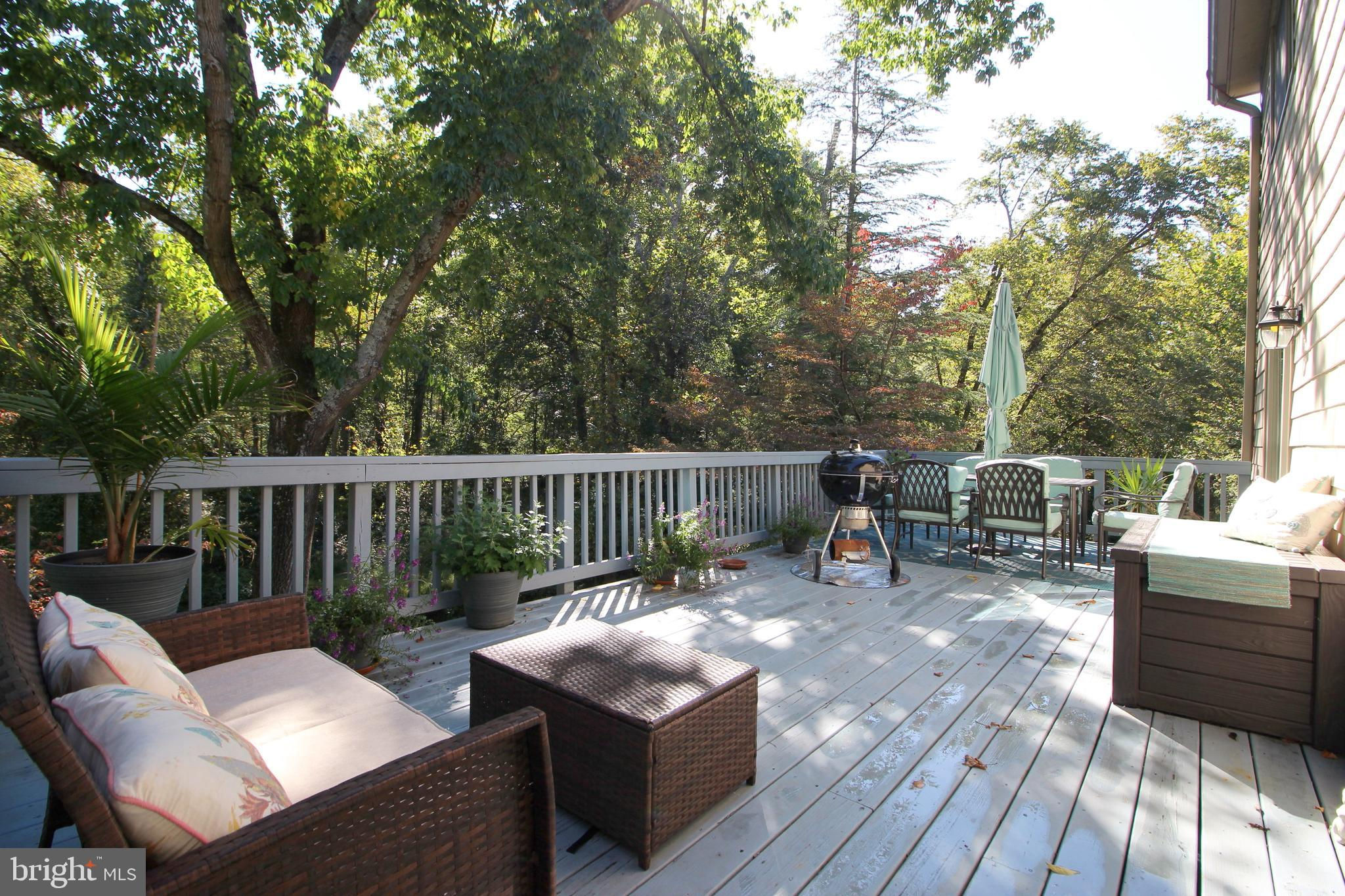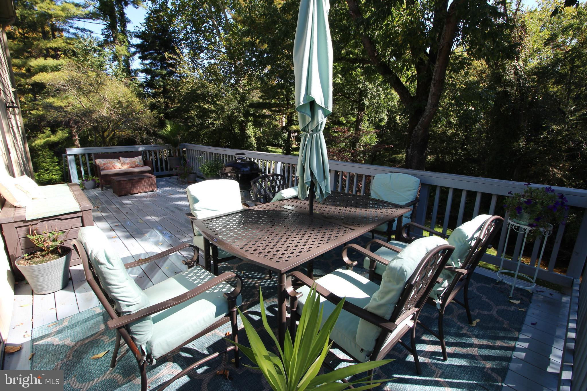 Contemporary Colonial style 4 BR, 3.5 BATH settled at the end of a cul-de-sac on a picturesque lot! Features include wood floors, a gourmet kitchen with upgraded stainless-steel appliances, gas range with grill, granite countertops, and a breakfast bar. Family Room with fireplace and Formal Dining Room both open to a large deck with private wooded views. The Rec Room with fireplace opens to the patio and large backyard. The Master Bedroom has 3 closets plus a dressing area with oversized sink vanity and jacuzzi tub in the Master Bathroom. The shaded backyard effortlessly slopes into a quiet pebbled brook, making it the perfect space for an afternoon of relaxing!