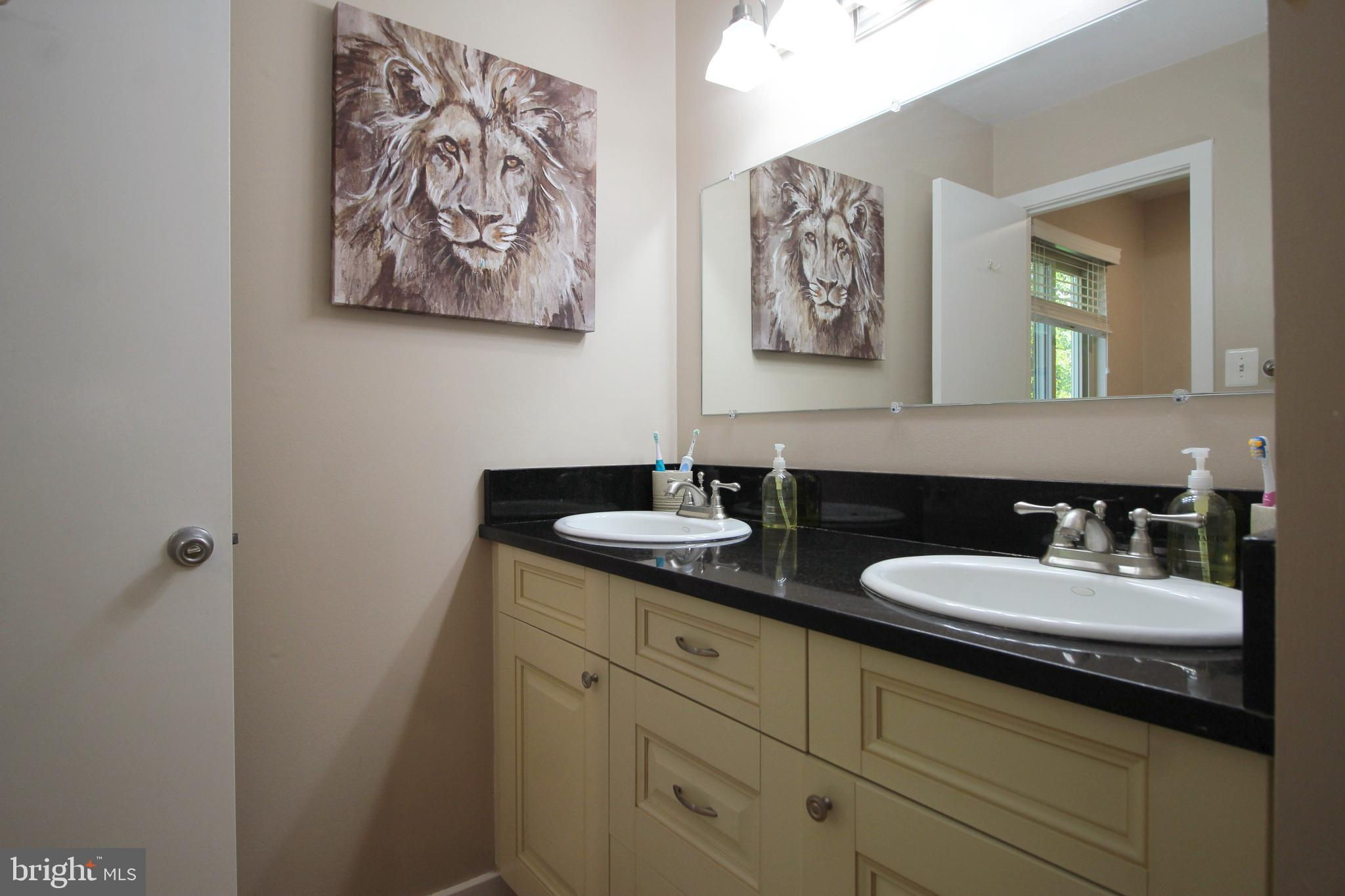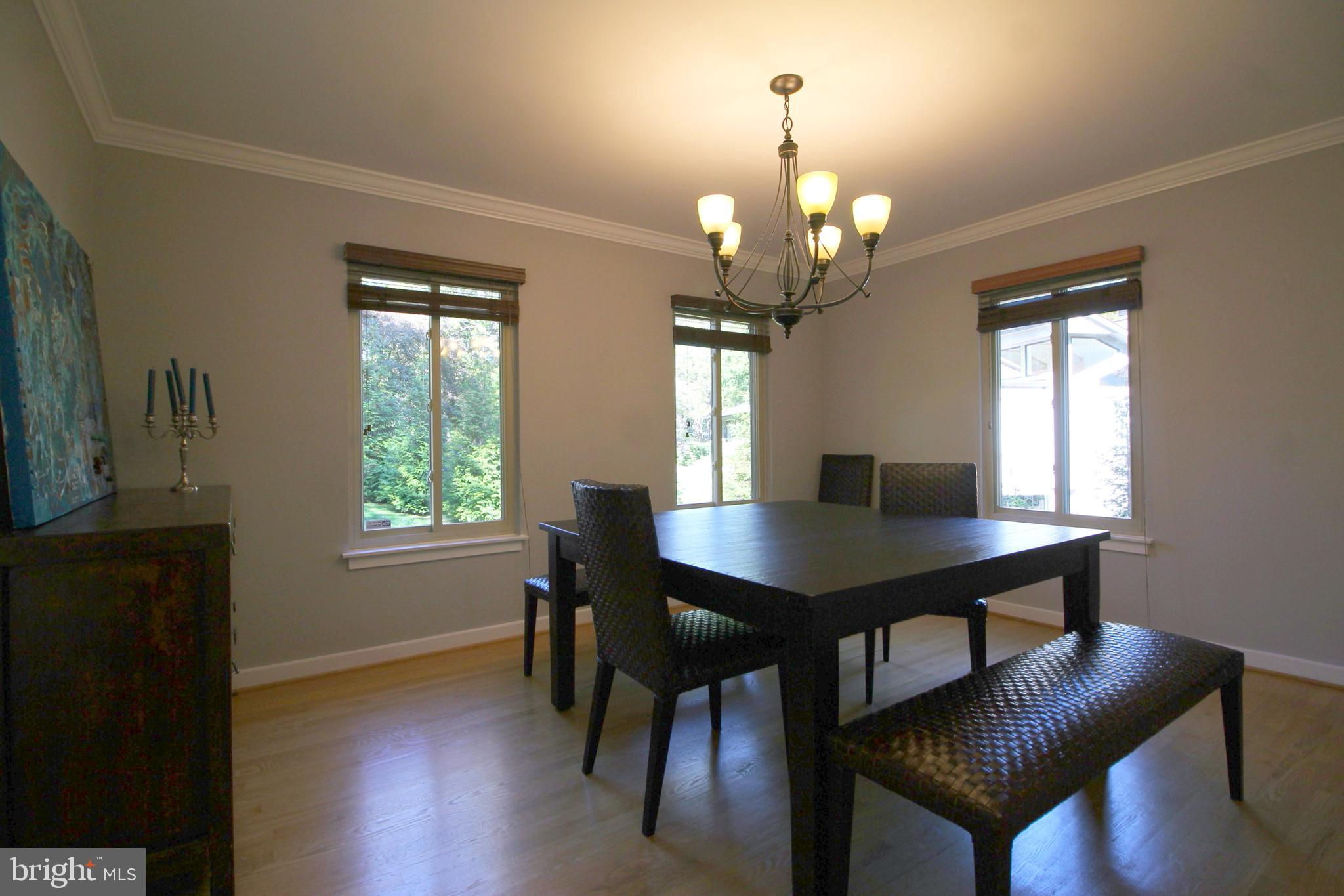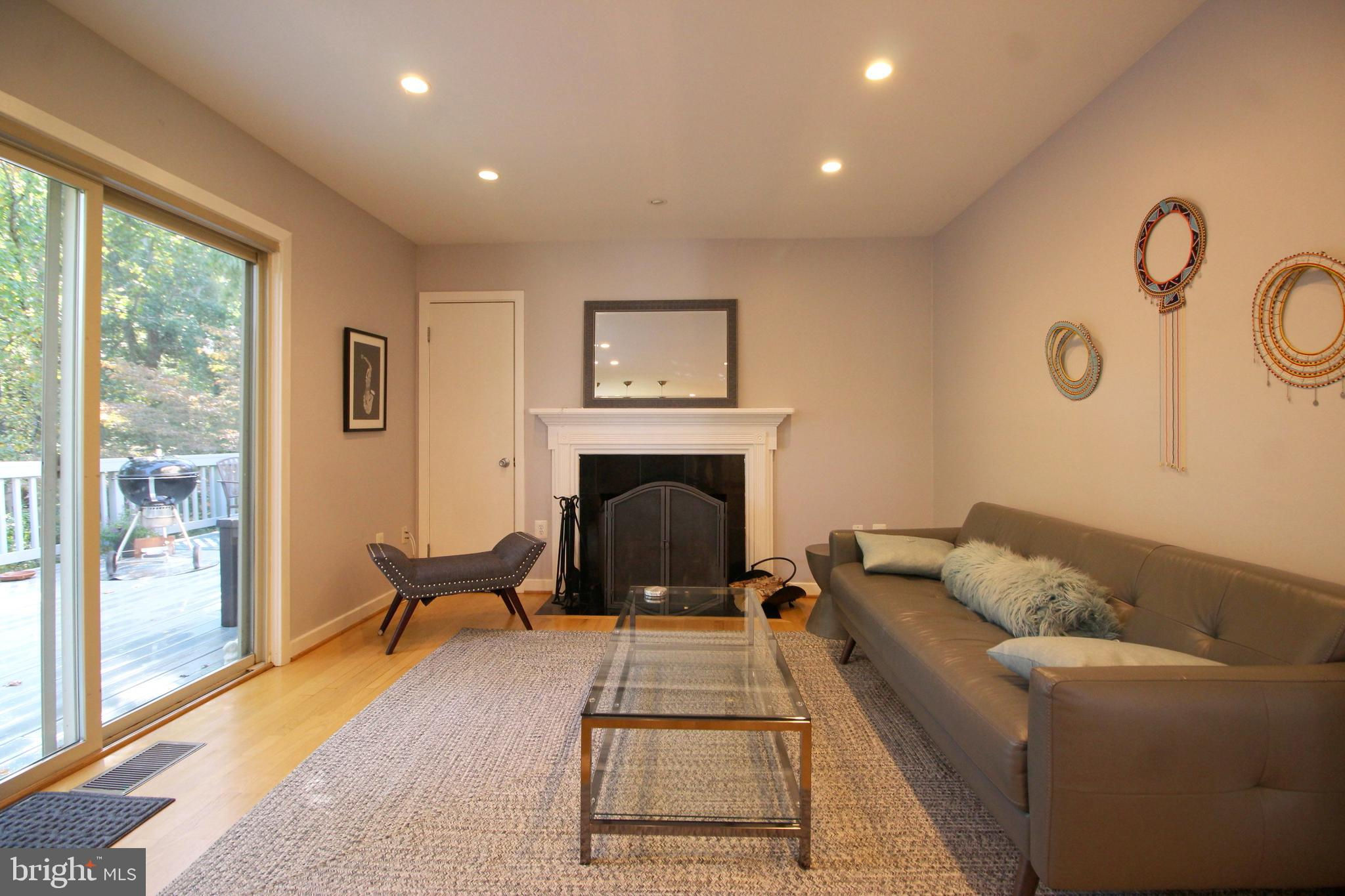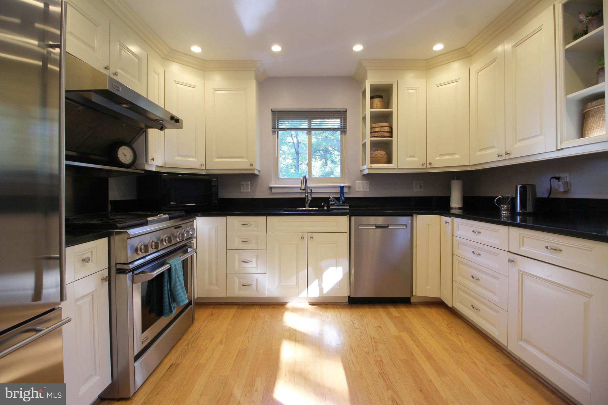 Contemporary Colonial style 4 BR, 3.5 BATH settled at the end of a cul-de-sac on a picturesque lot! Features include wood floors, a gourmet kitchen with upgraded stainless-steel appliances, gas range with grill, granite countertops, and a breakfast bar. Family Room with fireplace and Formal Dining Room both open to a large deck with private wooded views. The Rec Room with fireplace opens to the patio and large backyard. The Master Bedroom has 3 closets plus a dressing area with oversized sink vanity and jacuzzi tub in the Master Bathroom. The shaded backyard effortlessly slopes into a quiet pebbled brook, making it the perfect space for an afternoon of relaxing!