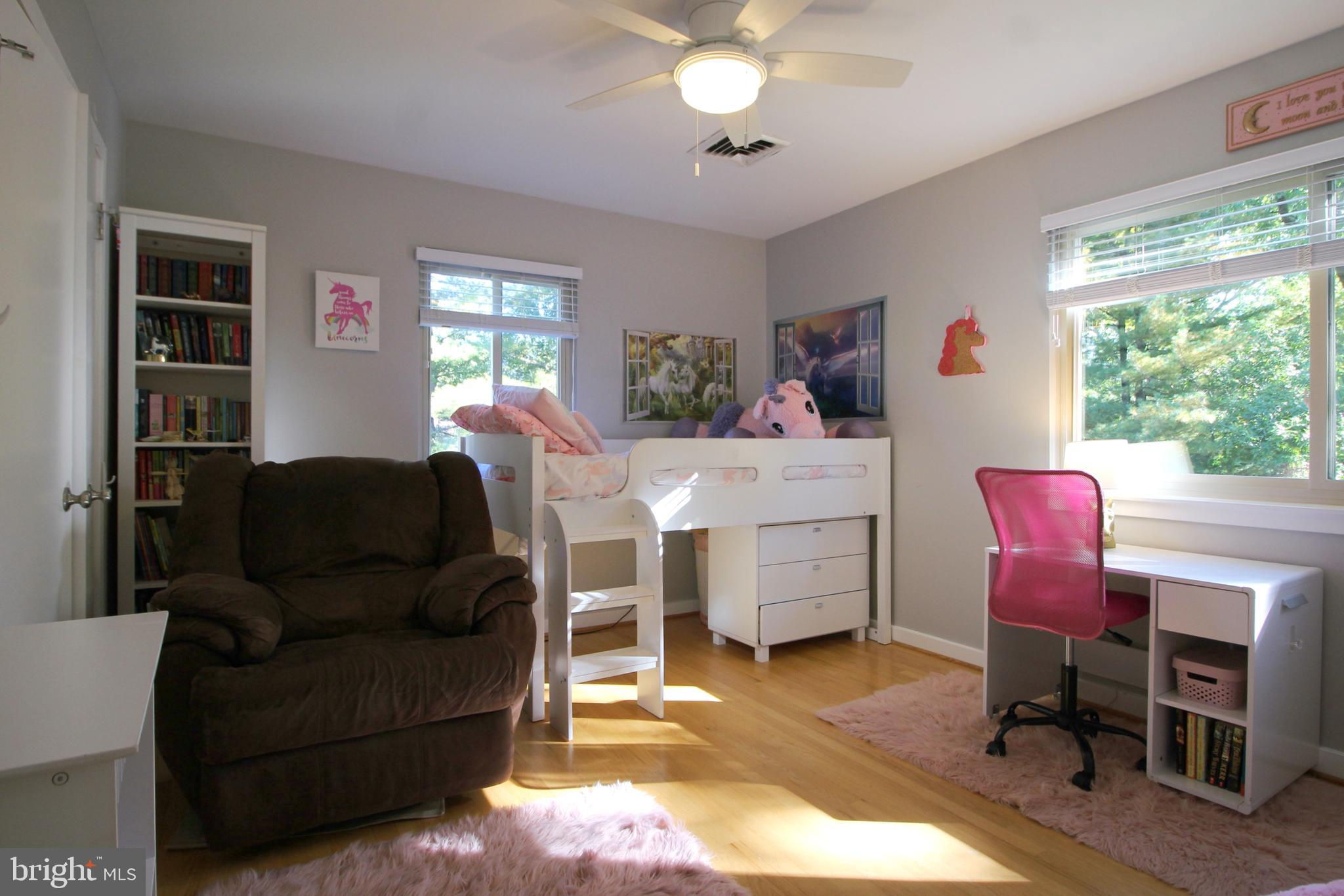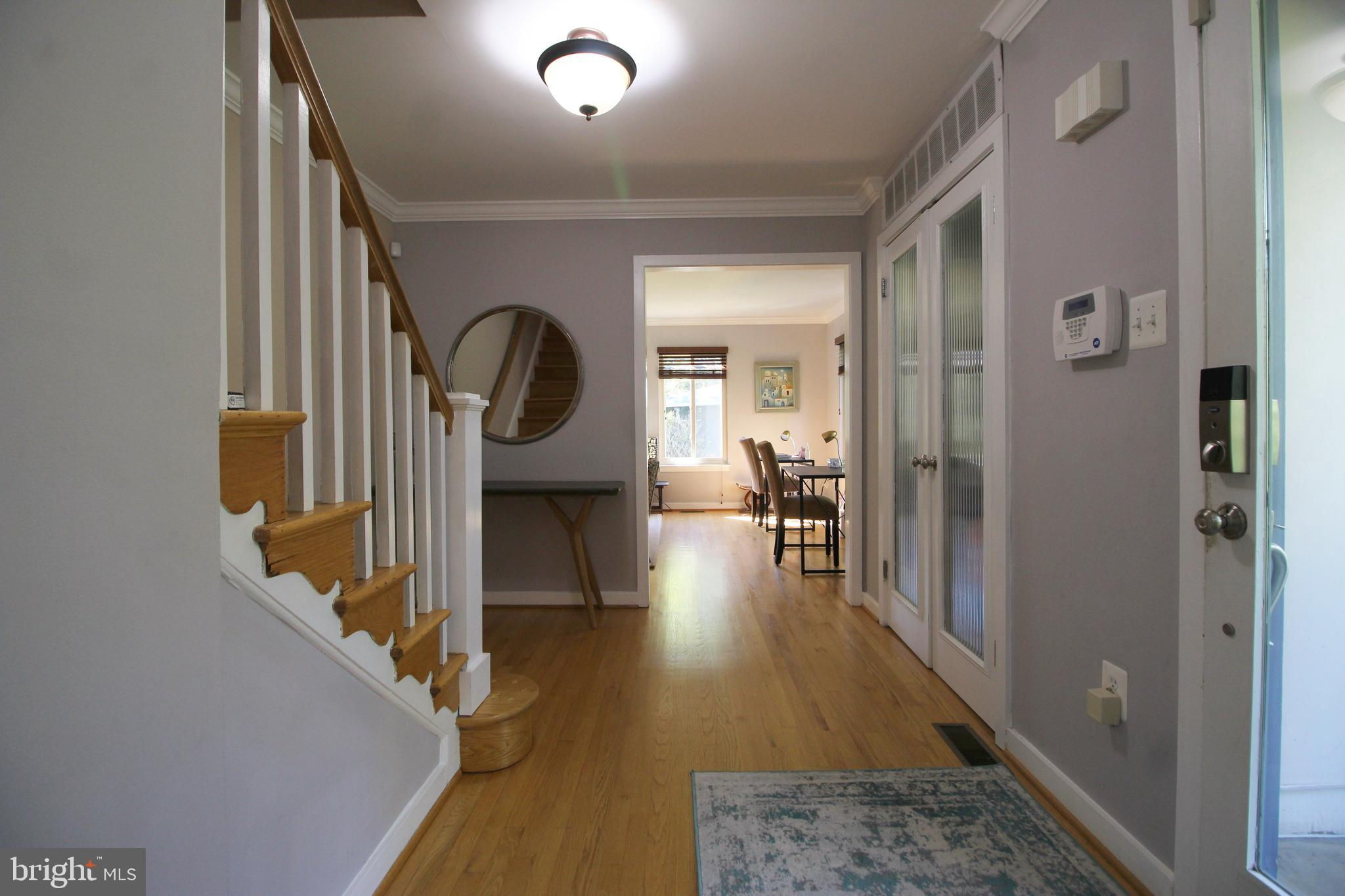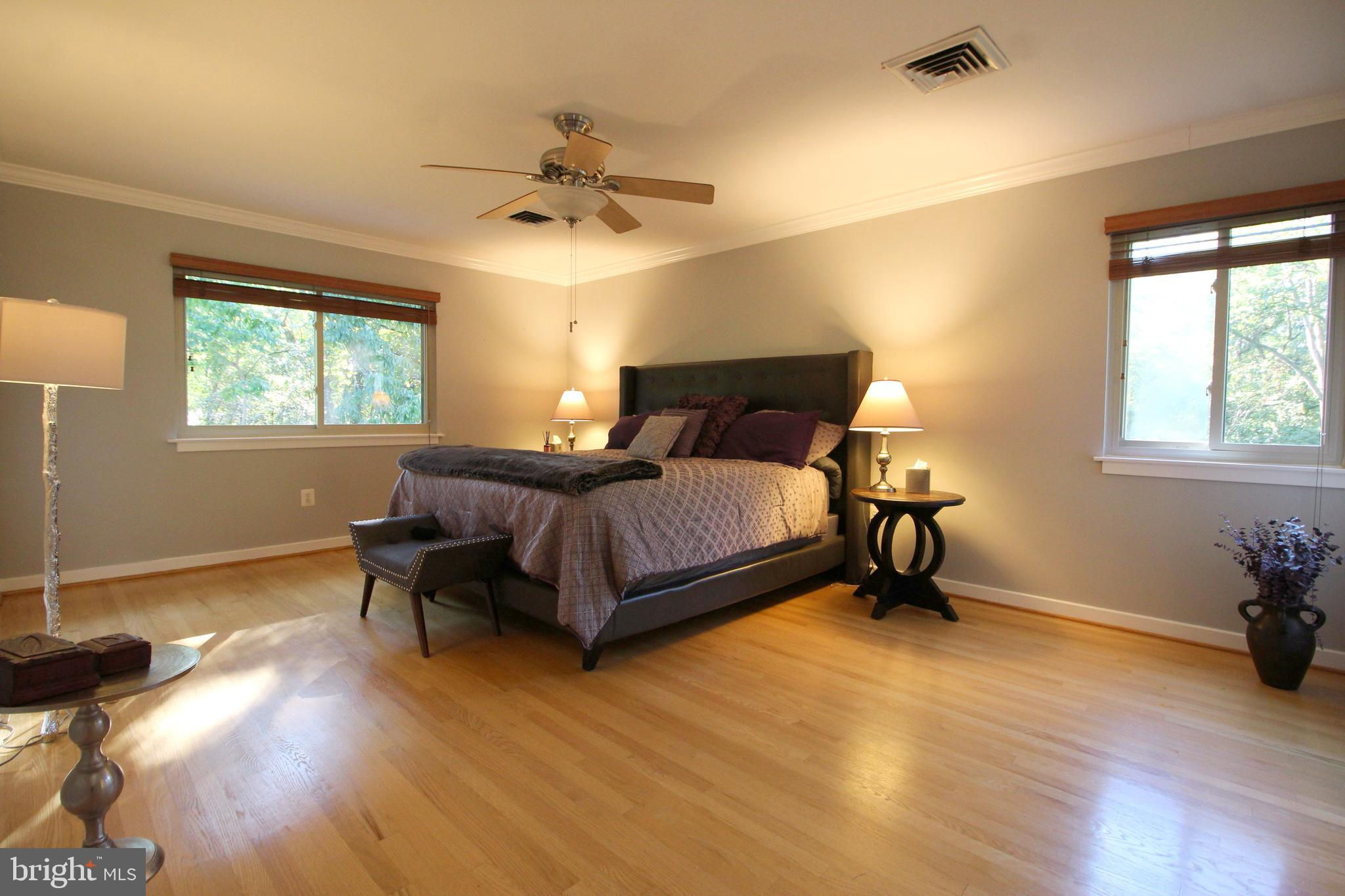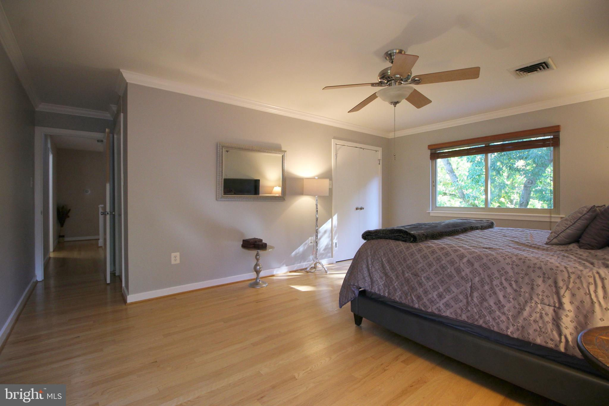 Contemporary Colonial style 4 BR, 3.5 BATH settled at the end of a cul-de-sac on a picturesque lot! Features include wood floors, a gourmet kitchen with upgraded stainless-steel appliances, gas range with grill, granite countertops, and a breakfast bar. Family Room with fireplace and Formal Dining Room both open to a large deck with private wooded views. The Rec Room with fireplace opens to the patio and large backyard. The Master Bedroom has 3 closets plus a dressing area with oversized sink vanity and jacuzzi tub in the Master Bathroom. The shaded backyard effortlessly slopes into a quiet pebbled brook, making it the perfect space for an afternoon of relaxing!