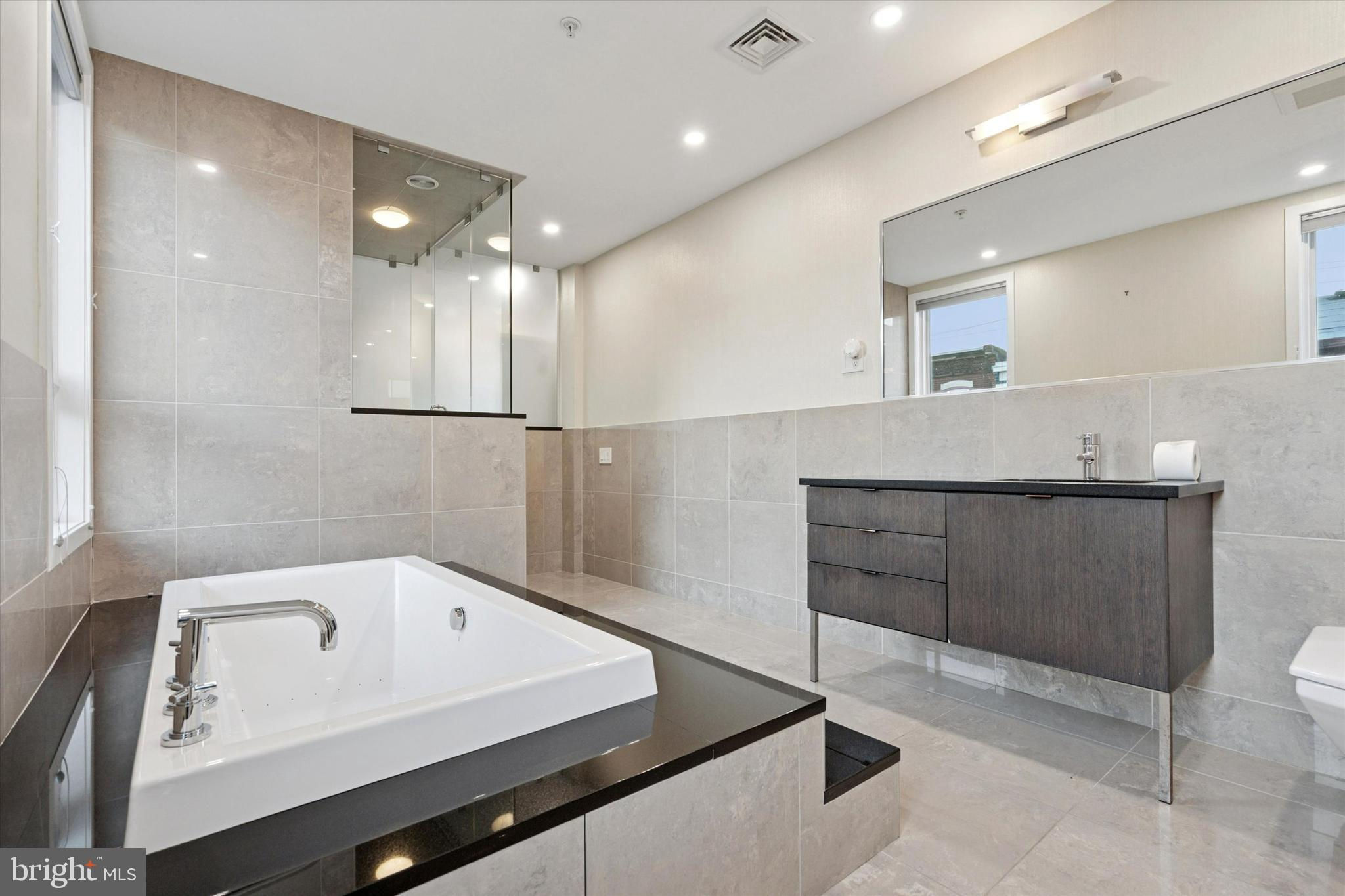 ***Striking 4-Story Contemporary Home with Designer Finishes*** Discover an extraordinary extra-wide residence that seamlessly combines modern architecture with luxury living. Built in 2013 by a premier builder for personal use, this one-of-a-kind home is filled with thoughtful upgrades and custom details at every turn. With three exposures flooding each floor with natural light, the interior feels bright, open, and inviting—delivering a rare lifestyle opportunity in one of Philadelphia’s most desirable neighborhoods. The second floor serves as the centerpiece of the home, showcasing an expansive open-concept living area with dramatic Italian marble flooring, a sleek corner gas fireplace, and elegant French doors opening to a private deck. The adjoining chef’s kitchen is equally impressive, outfitted with high-end Italian cabinetry and top-tier appliances from Wolf, Miele, and Sub-Zero. Built-in espresso and steam ovens, an induction cooktop, and a wine refrigerator elevate both entertaining and everyday living. Three spacious en-suite bedrooms include a versatile first-floor suite—ideal for guests, in-laws, or a private office. The primary suite offers a serene retreat with a spa-inspired bath featuring a deep soaking tub, oversized steam shower, wall-mounted Toto toilets, quartz countertops, and custom tilework. Throughout the home, luxury details abound: rich mocha hardwoods, heated tile flooring, custom California Closets, and recessed LED lighting. Additional highlights include an oversized two-car garage, rooftop deck with sweeping Center City views, and modern smart-home amenities—multi-zone HVAC, full intercom/security system, energy-efficient Pella windows and doors, and an EV charger. Practicality meets style with a full-size laundry room on the upper level and a fully finished lower level, ideal for a gym, media room, or play space, complete with ample storage. Perfectly situated in Graduate Hospital, this home is just moments from Rittenhouse Square, Center City, and Philadelphia’s finest dining, shopping, and cultural destinations. Showing will begin this Friday, September 5th after 4pm.