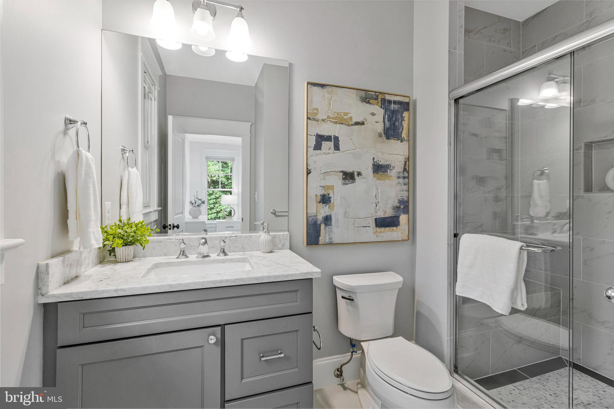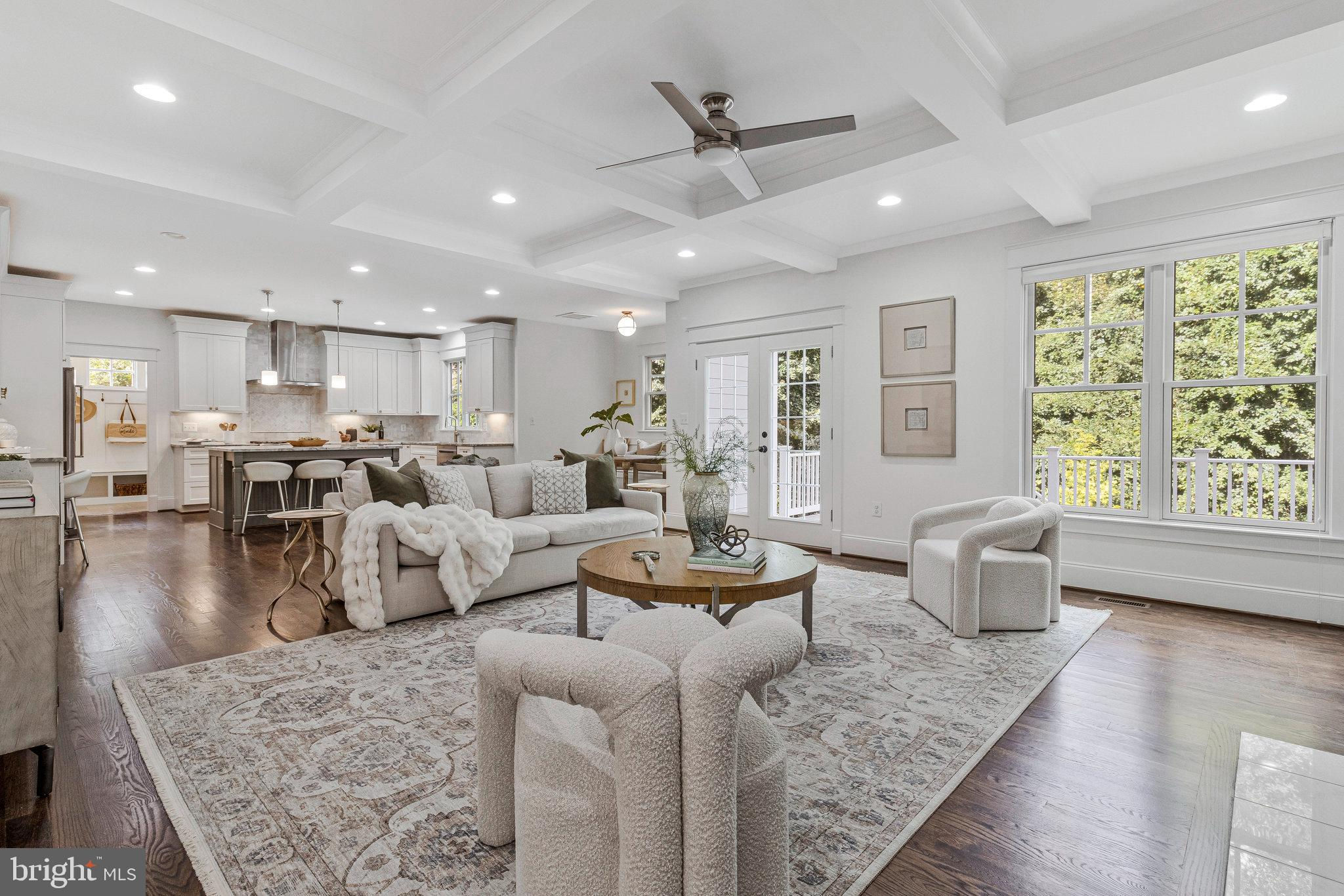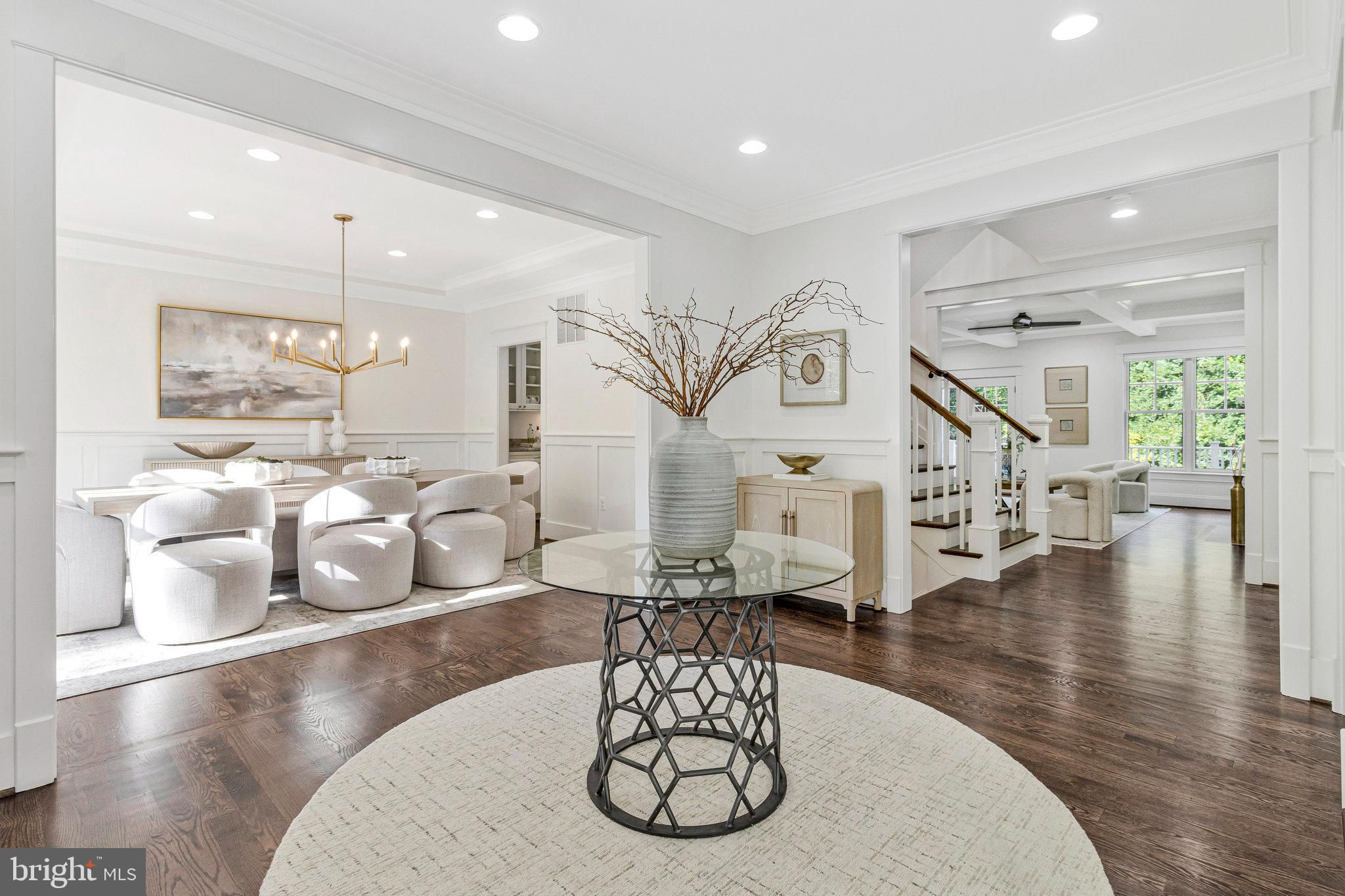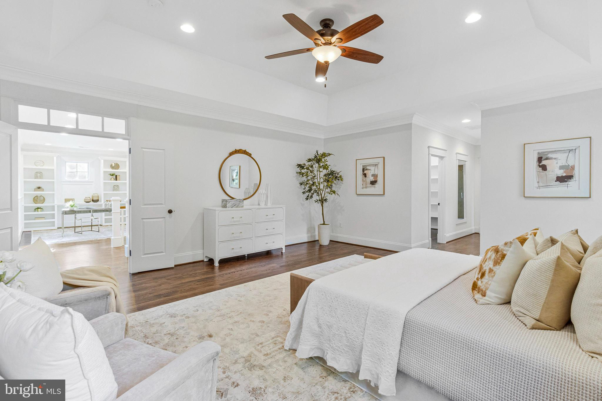 This stunning home offers 6400 sqft of living space featuring 6 bedrooms, 5 and a half baths, with a guest bedroom and bath on the main level. The gourmet kitchen with island and eat in space opens to family room with coffered ceiling and gas fireplace, built in shelves for all your books and art pieces, leading out to a deck overlooking the private backyard. Formal living and dining areas offer spaces for special occasions. The spacious master bedroom and bath with his and hers closets, a study/0ffice area with built in shelves, 3 additional bedrooms and large laundry room complete the upper level. The finished walk out basement is bright and cheerful with an au pair suite, media room, the main recreation area and bonus arts/crafts or exercise room. Located on a quiet cul de sac street, steps from the W&OD trail, and walkable to shops and restaurants in Falls Church city.