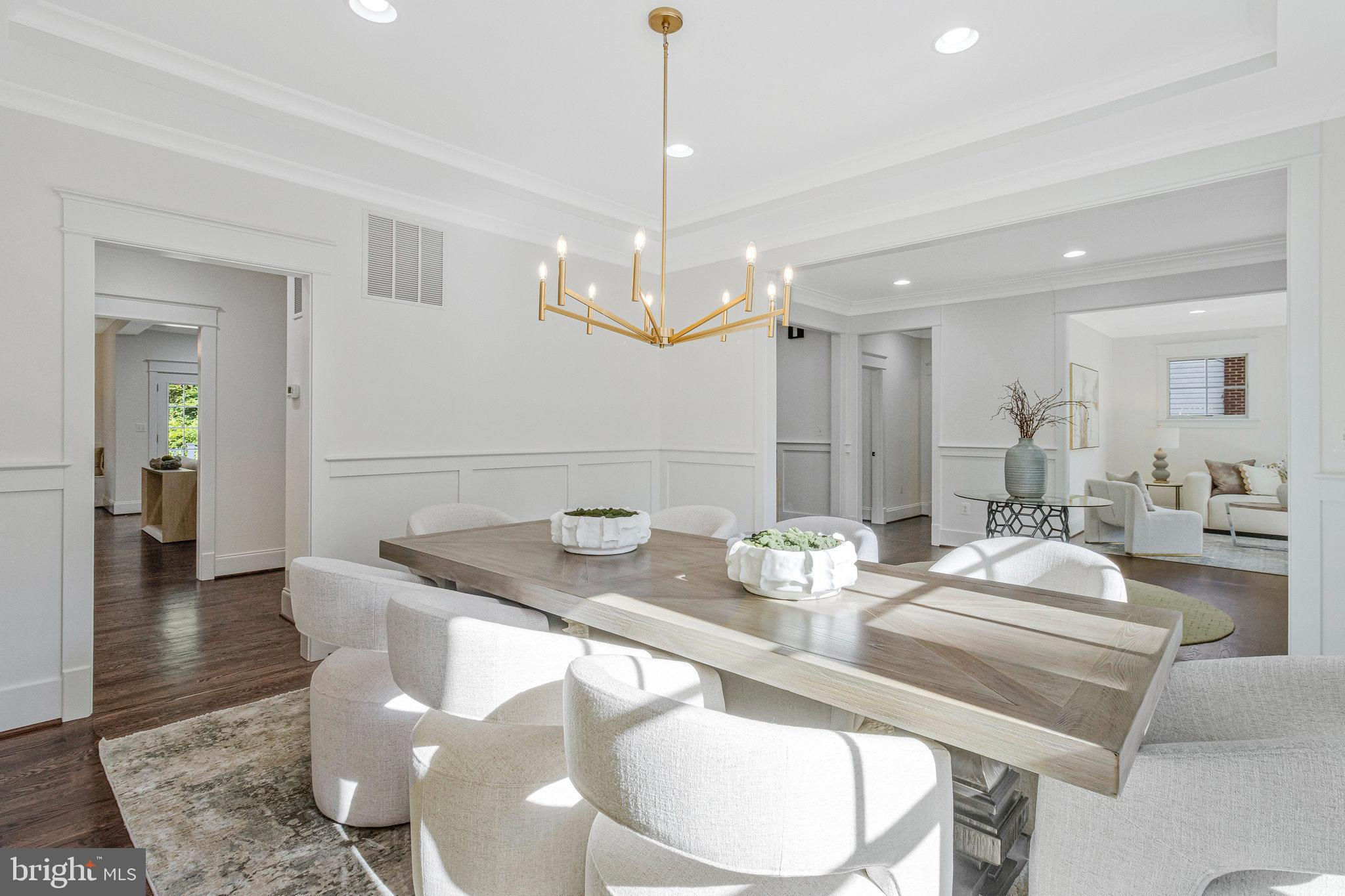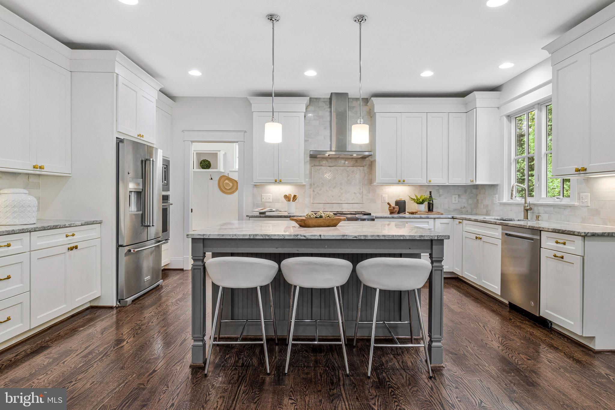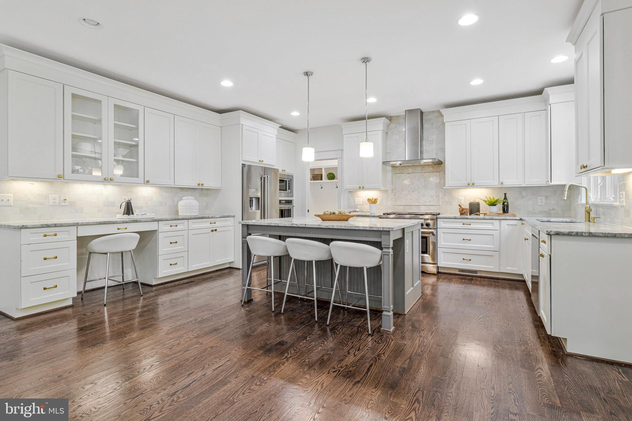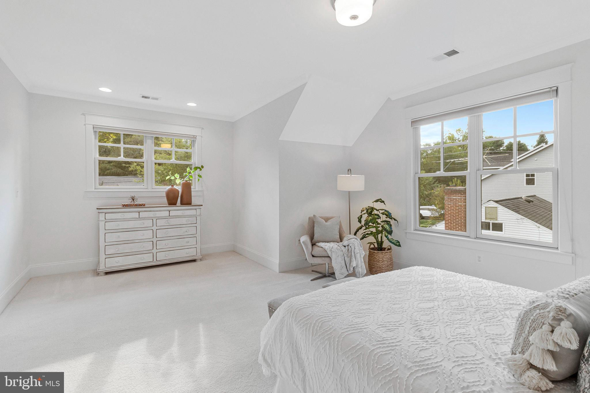 This stunning home offers 6400 sqft of living space featuring 6 bedrooms, 5 and a half baths, with a guest bedroom and bath on the main level. The gourmet kitchen with island and eat in space opens to family room with coffered ceiling and gas fireplace, built in shelves for all your books and art pieces, leading out to a deck overlooking the private backyard. Formal living and dining areas offer spaces for special occasions. The spacious master bedroom and bath with his and hers closets, a study/0ffice area with built in shelves, 3 additional bedrooms and large laundry room complete the upper level. The finished walk out basement is bright and cheerful with an au pair suite, media room, the main recreation area and bonus arts/crafts or exercise room. Located on a quiet cul de sac street, steps from the W&OD trail, and walkable to shops and restaurants in Falls Church city.