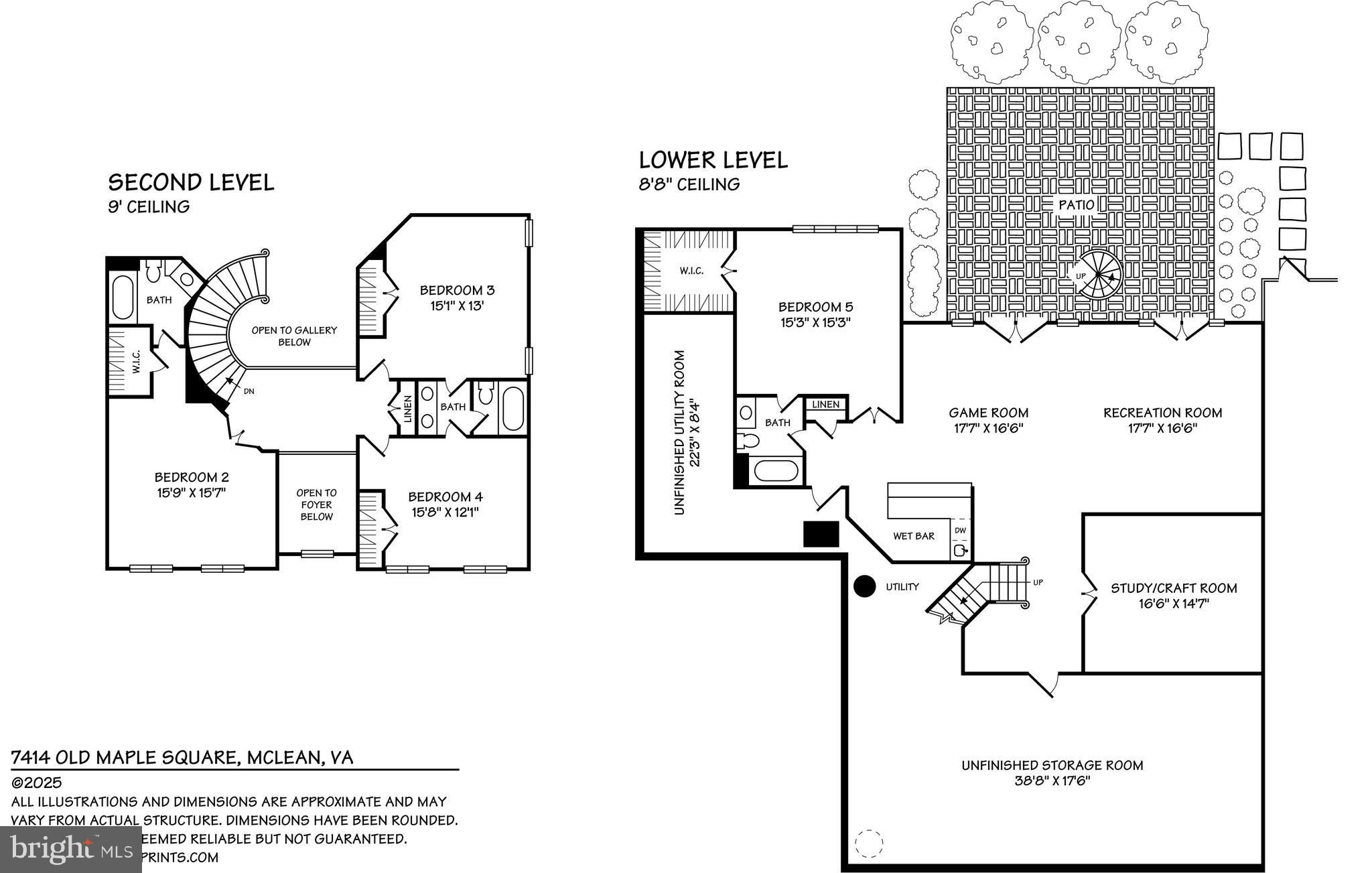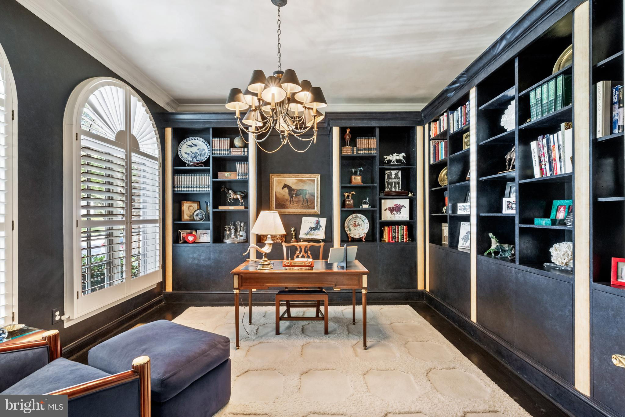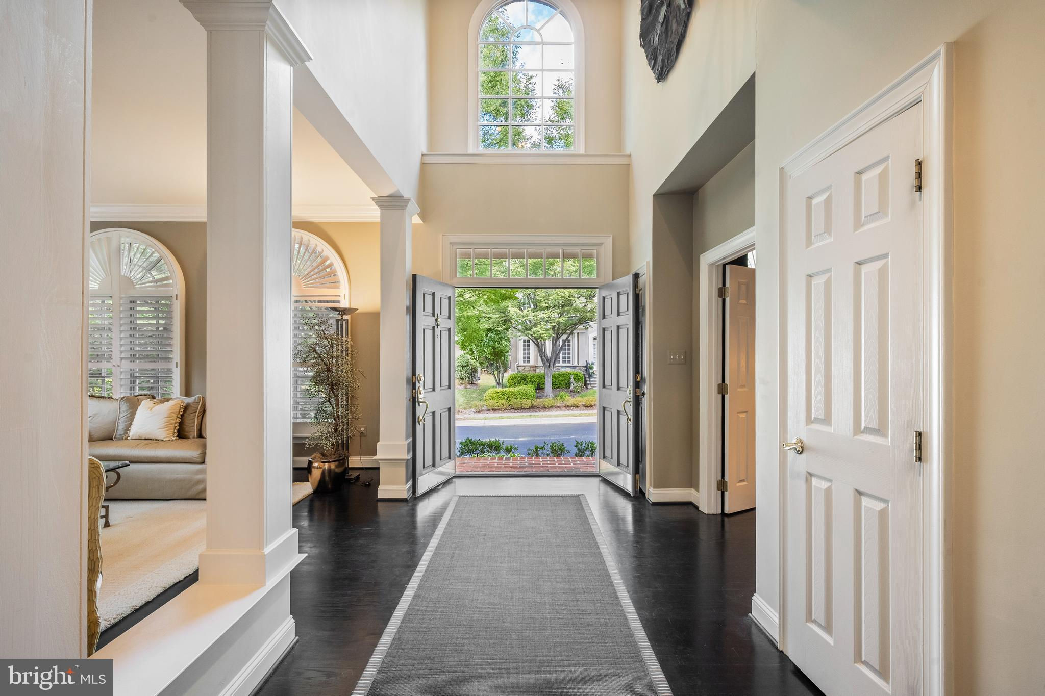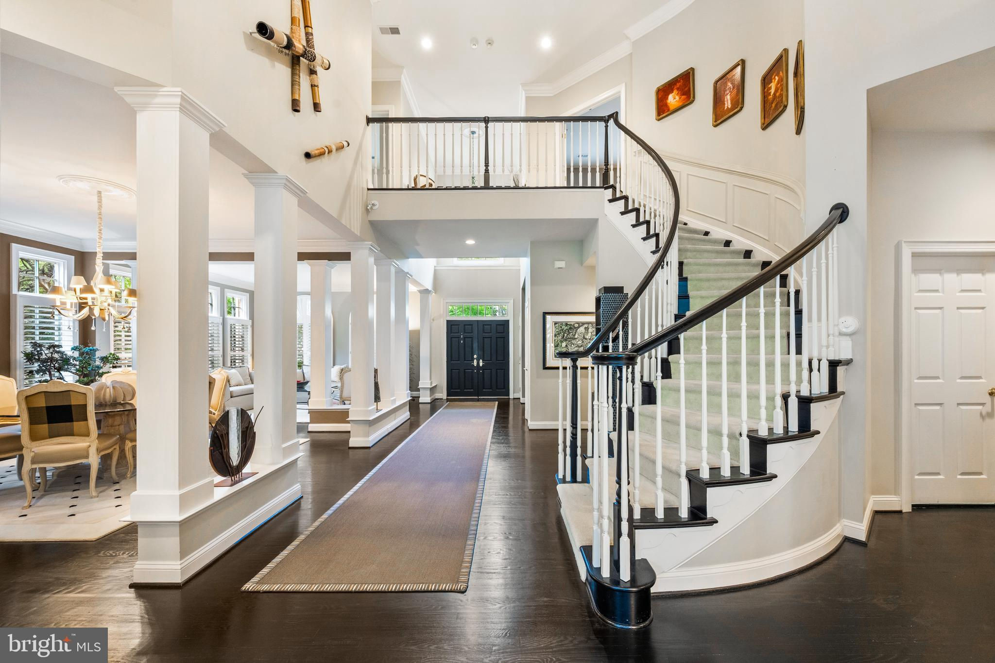 NEW PRICE - Nestled within the prestigious, gated enclave of Maplewood, this exquisite all-brick Colonial residence offers the perfect blend of elegance and functionality. A rare gem, this home features a main-level primary suite, offering the ultimate in one-level living. Built by Yeonas & Ellis, now the renowned Artisan Builders, this Baldwin model is a truly exceptional find. Upon entry, a dramatic two-story foyer with a gracefully curved staircase sets the tone for the home’s timeless design. Ebonized oak hardwood floors and soaring 10-foot ceilings create an air of grandeur throughout the main level. Double doors lead to a refined front office/library, beautifully appointed with designer touches, including a stunning chandelier and built-in bookcases with ivory trim. The formal living room, with arched transom windows and plantation shutters, flows into the formal dining room, adorned with crown molding and a designer chandelier. With an impressive 15-foot ceiling, the expansive family room is bathed in natural light from floor-to-ceiling windows, with French doors opening to a private balcony. A gas fireplace with a black marble surround, built-in bookcases, and art display alcoves complete this inviting, light-filled gathering space. The updated gourmet kitchen is a chef’s dream, boasting sleek gray lacquered-style cabinetry, white quartz countertops with subtle gray veining, and a striking backsplash. A waterfall-edge quartz island with breakfast bar seating anchors the space, complemented by stainless steel appliances, and walk-in pantry. The open flow to the family and breakfast rooms creates a seamless living experience. The serene main-level primary suite offers a double-door entry, sitting area, and two walk-in closets with custom built-ins. The spa-like en-suite bath showcases white tile, a soaking tub, a walk-in shower, a separate water closet, and a refreshed vanity with gray-glazed cabinetry and new mirrors. A laundry room with a utility sink, and a powder room complete the main level. The striking curved staircase leads to upper level Bedroom 2, with a private en-suite bath and walk-in closet. Bedrooms 3 and 4 share an updated buddy bath, featuring a new shaker-style white double vanity, marble-style quartz countertops, and chrome fixtures. The walk-out lower level is designed for light-filled entertaining, with two pairs of French doors opening to a serene paver patio. A spacious recreation room, game area with a full bar, and Bedroom 5 with walk-in closet & en-suite bath offer abundant space. A versatile den/craft room completes the finished space, while two expansive, unfinished storage rooms provide limitless potential for a home gym, media room, wine cellar, and more. A striking black metal balcony overlooks the beautifully landscaped rear yard, while a spiral staircase leads to the patio below. Enclosed by a brick wall and iron-style fencing, the property offers privacy and tranquility. Ideally located near Tysons' world-class shopping and dining, this home is less than a mile from the Silver Line Metro at Tysons and McLean, with easy access to I-495, I-66, the Dulles Toll Road, and Dulles International Airport—offering unparalleled convenience for both local and international commuters. Replaced Roof & HVAC. Churchill Road Elementary, Cooper Middle, and Langley High Schools. Front yard maintenance provided by HOA.