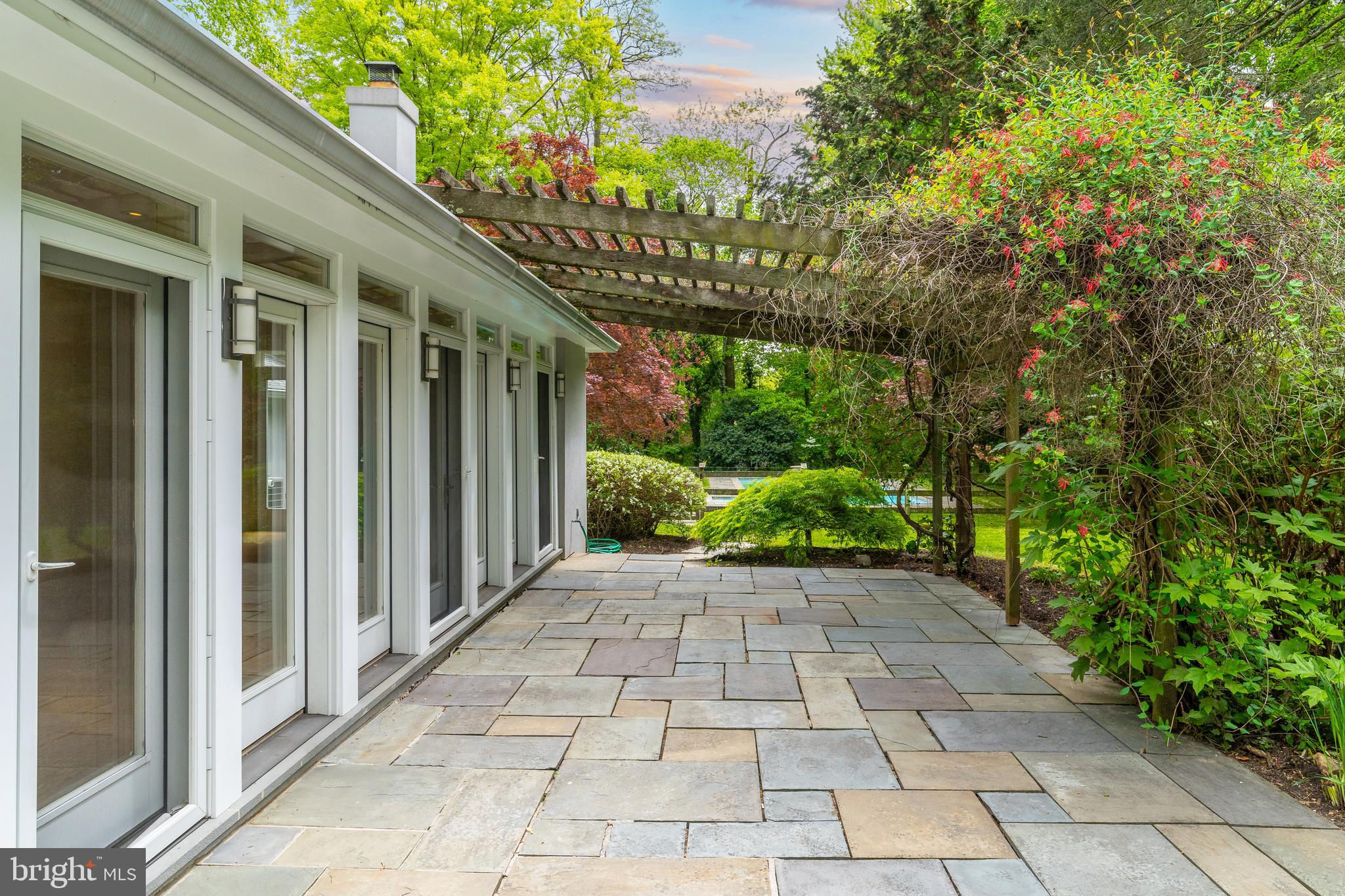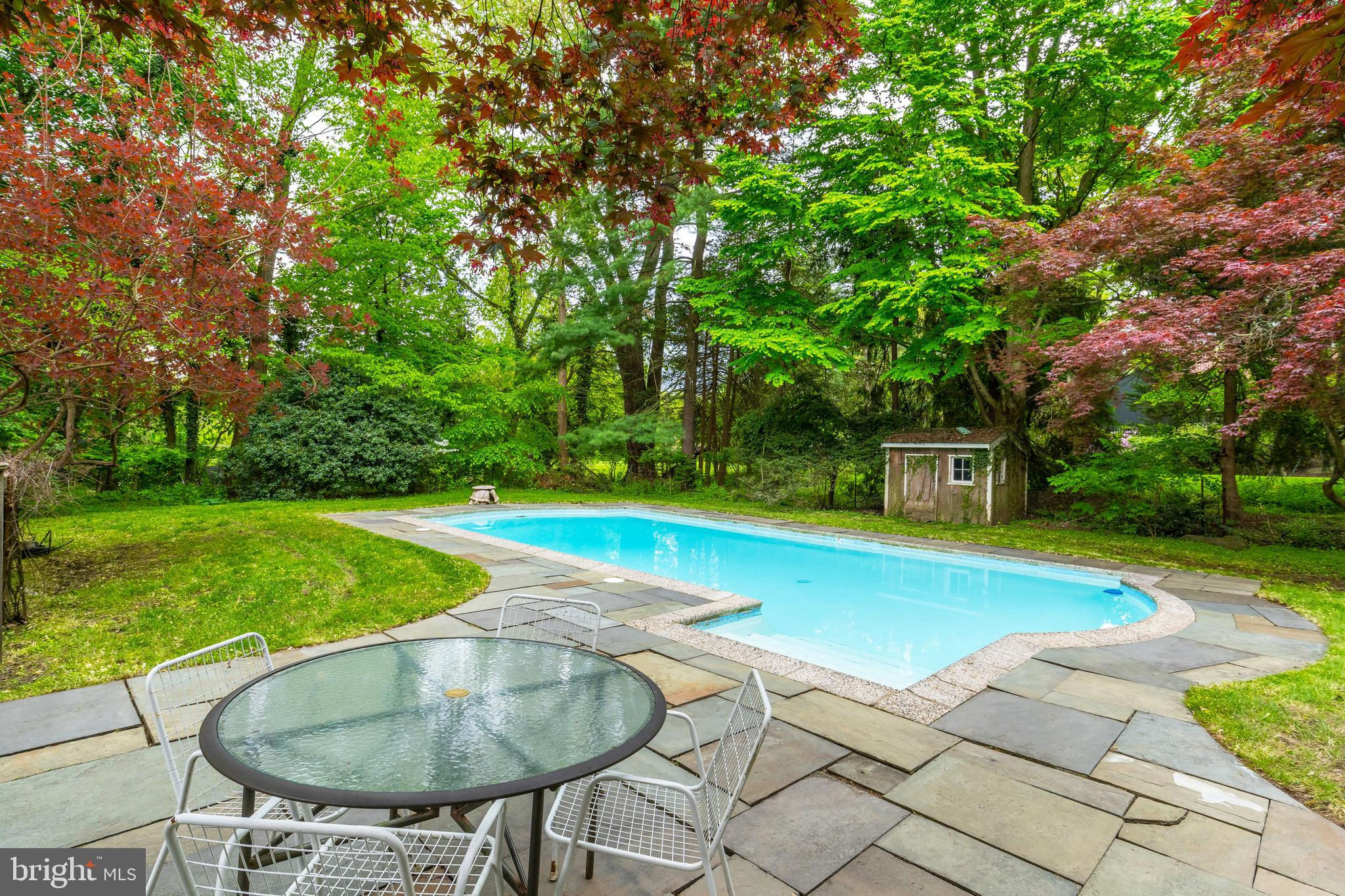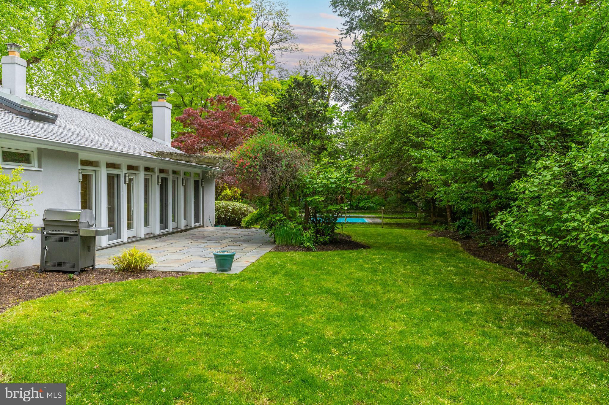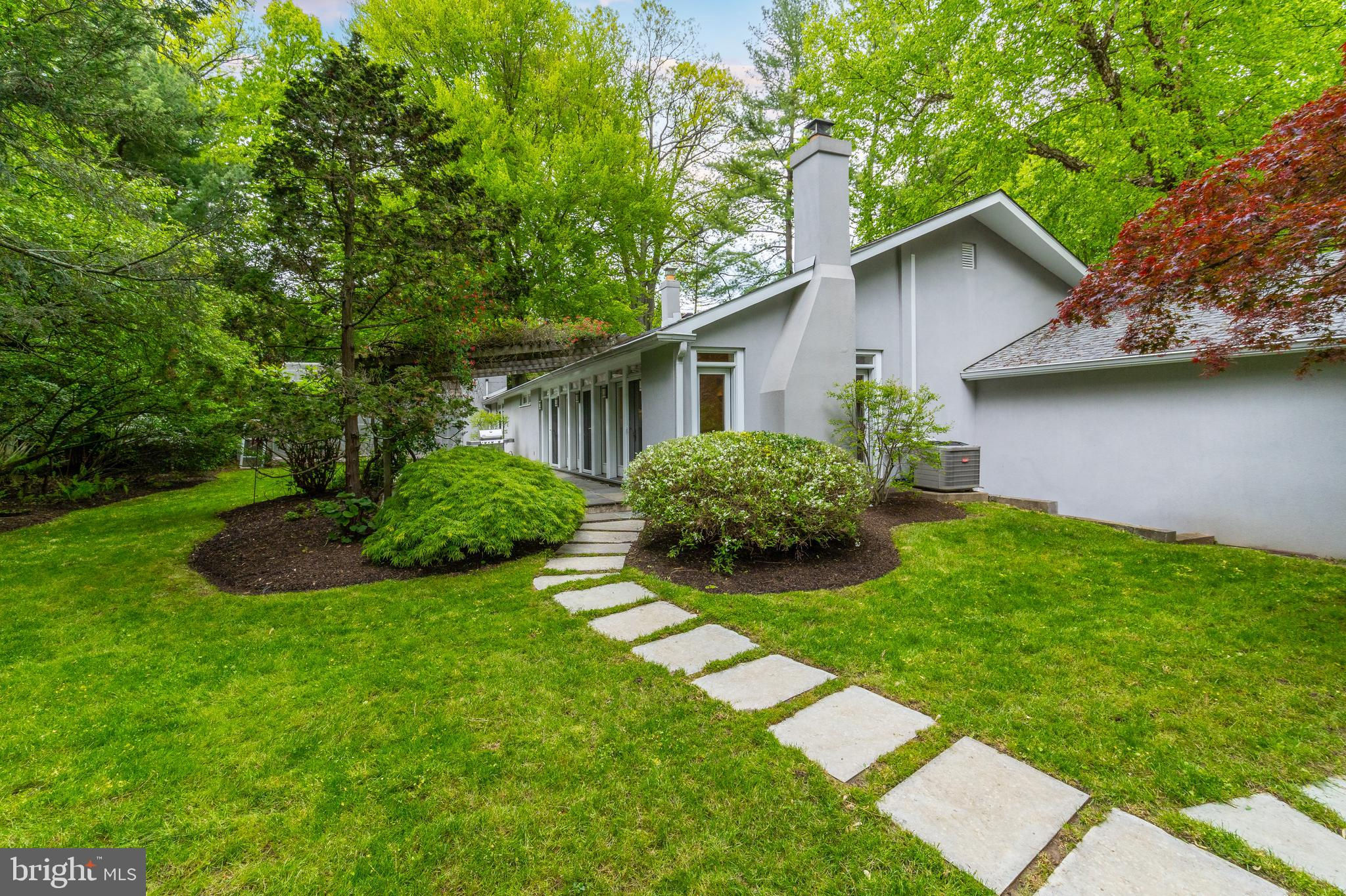 Welcome to 7616 Huron Street, an architecturally thoughtful and very functional one level home, beautifully situated on a lovely private lot in a very desirable Chestnut Hill location. This home was completely renovated in 2004, transforming this space into a home with incredible light filled rooms and modern design elements throughout. Welcoming entry foyer leads to an open and bright living and dining area with a gas fireplace plus dramatic vaulted ceilings, skylights, walls of windows and doors overlooking the tranquil patio and garden. This space is open to the Chef’s kitchen which includes custom cabinets, butcher block and granite counter tops, Dacor wall oven plus a microwave/convection oven, Wolf gas cooktop, Sub-Zero refrigerator and a breakfast bar. Just down the hall you will find an expansive Primary suite oasis including a large bedroom plus a sitting area or office area. This lovely room has wonderful garden views through the many windows and doors. 2 walk-in closets with custom closet built-ins. Each closet has its own entry into a separate vanity toilet area and is connected by an oversized double sided shower. A 2nd bedroom suite with dressing area, great closet spaces and its own bathroom make this the perfect room for guests. The two rooms at the front of the home could serve as a 3rd bedroom and sitting area or office space. Property can be restored into a four bedroom by converting current sitting room next to bedroom 3. Continuing on to the basement and the garage, you will find an open pantry/storage area, built-in cabinetry and a mudroom. The basement includes a full bathroom and exterior access. This could be a great space for a media room/play room/home gym/home office. Light hardwood floors plus first floor laundry and powder room, generator, a greenhouse, 2 car garage with interior access and skylights throughout. The garden is very private with a pool. Entertain and enjoy the lovely Pergola covered flagstone patio with a gas grill connected to a gas line. Easy walk to Germantown Avenue commercial corridor, train station, Wissahickon trails and so convenient to Center City