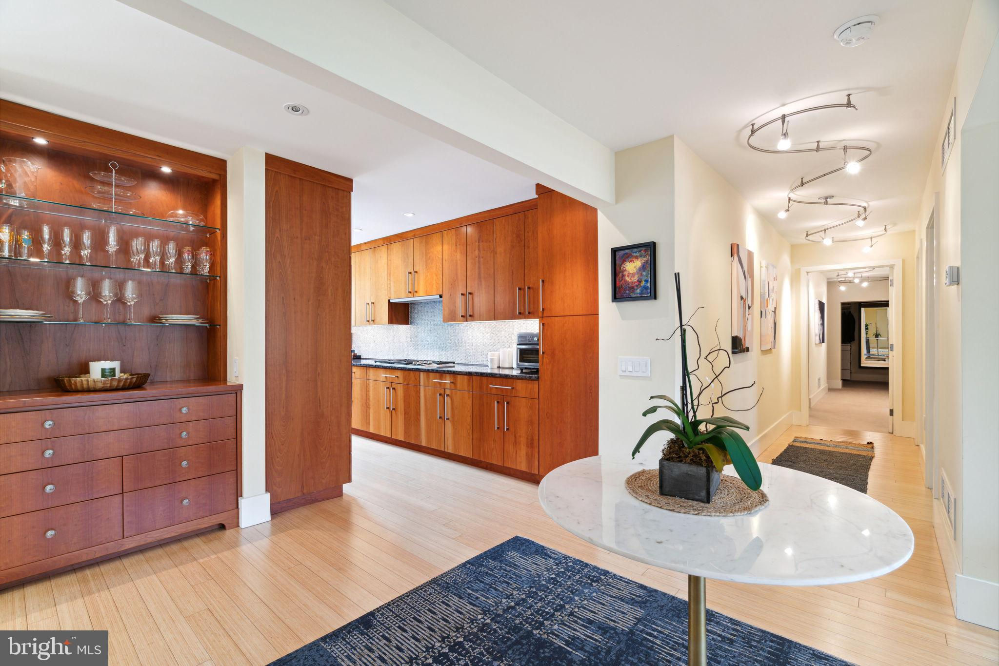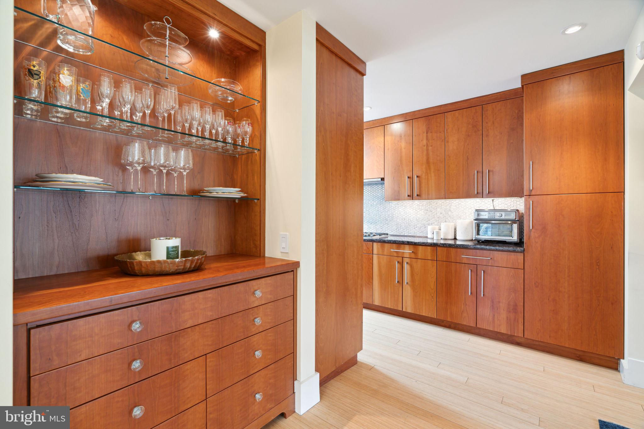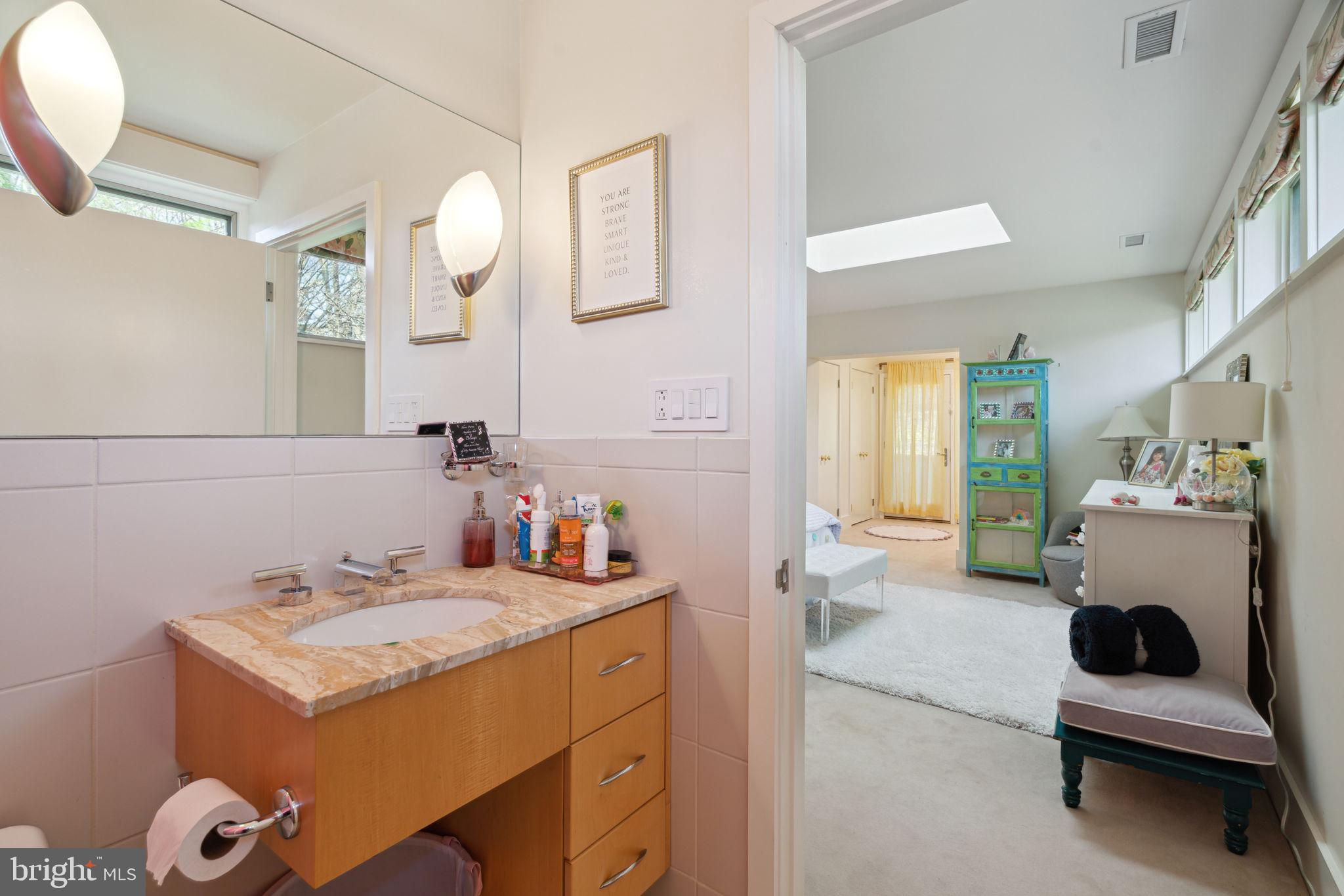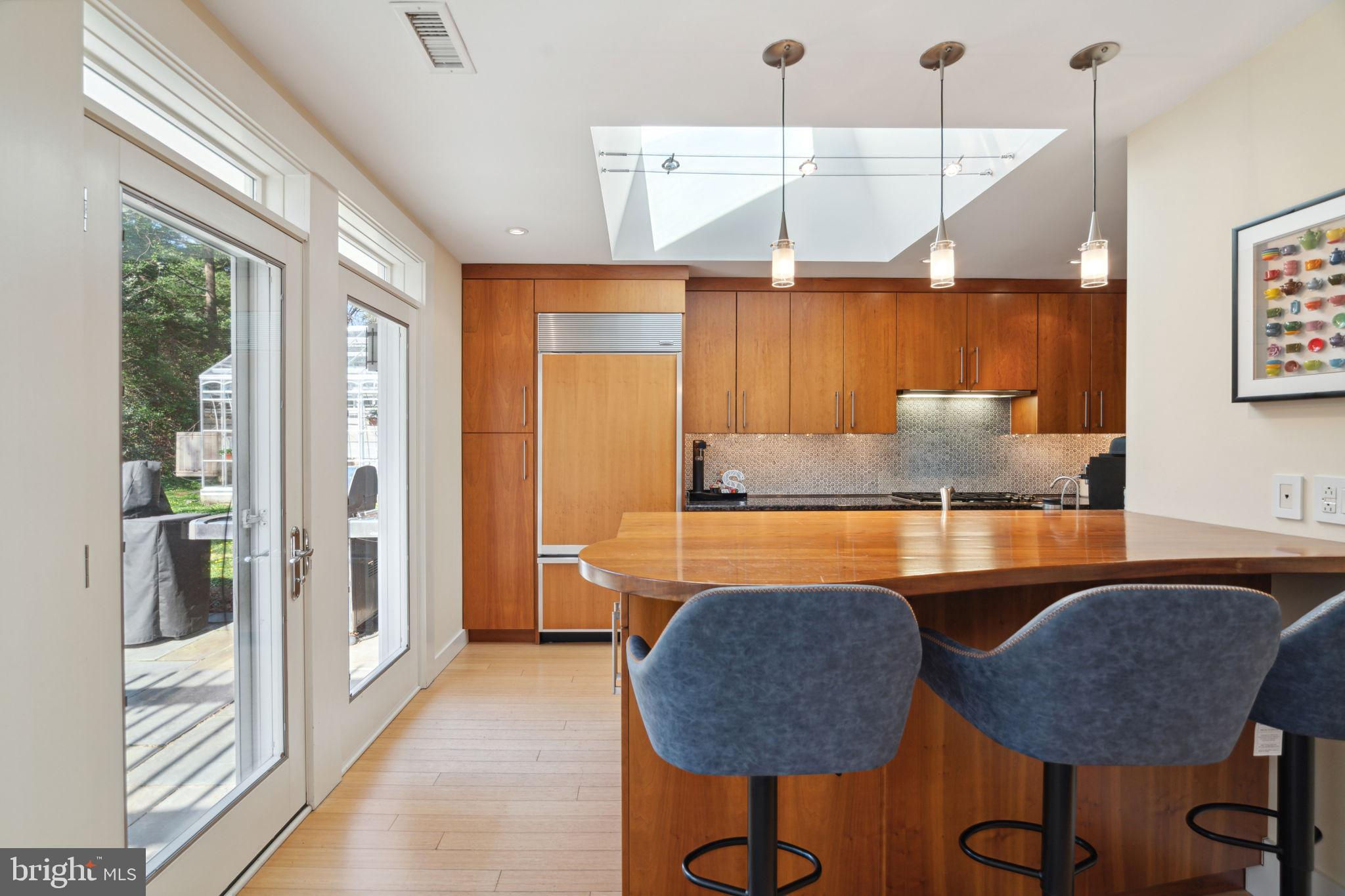 Welcome to 7616 Huron Street, an architecturally thoughtful and very functional one level home, beautifully situated on a lovely private lot in a very desirable Chestnut Hill location. This home was completely renovated in 2004, transforming this space into a home with incredible light filled rooms and modern design elements throughout. Welcoming entry foyer leads to an open and bright living and dining area with a gas fireplace plus dramatic vaulted ceilings, skylights, walls of windows and doors overlooking the tranquil patio and garden. This space is open to the Chef’s kitchen which includes custom cabinets, butcher block and granite counter tops, Dacor wall oven plus a microwave/convection oven, Wolf gas cooktop, Sub-Zero refrigerator and a breakfast bar. Just down the hall you will find an expansive Primary suite oasis including a large bedroom plus a sitting area or office area. This lovely room has wonderful garden views through the many windows and doors. 2 walk-in closets with custom closet built-ins. Each closet has its own entry into a separate vanity toilet area and is connected by an oversized double sided shower. A 2nd bedroom suite with dressing area, great closet spaces and its own bathroom make this the perfect room for guests. The two rooms at the front of the home could serve as a 3rd bedroom and sitting area or office space. Property can be restored into a four bedroom by converting current sitting room next to bedroom 3. Continuing on to the basement and the garage, you will find an open pantry/storage area, built-in cabinetry and a mudroom. The basement includes a full bathroom and exterior access. This could be a great space for a media room/play room/home gym/home office. Light hardwood floors plus first floor laundry and powder room, generator, a greenhouse, 2 car garage with interior access and skylights throughout. The garden is very private with a pool. Entertain and enjoy the lovely Pergola covered flagstone patio with a gas grill connected to a gas line. Easy walk to Germantown Avenue commercial corridor, train station, Wissahickon trails and so convenient to Center City