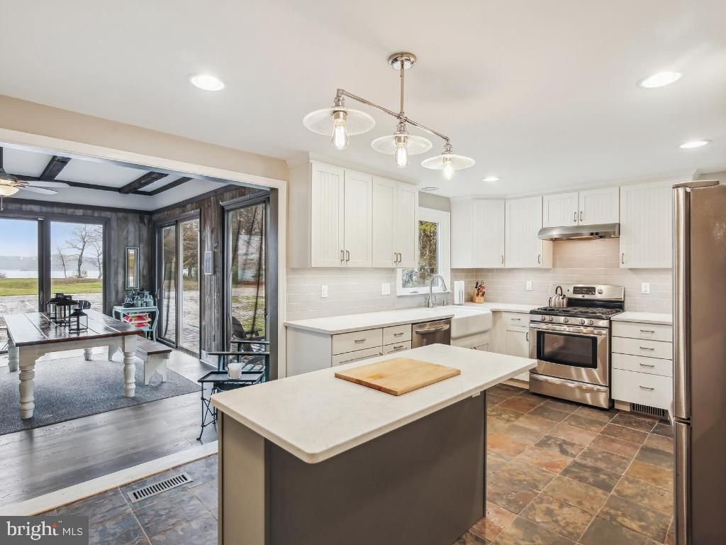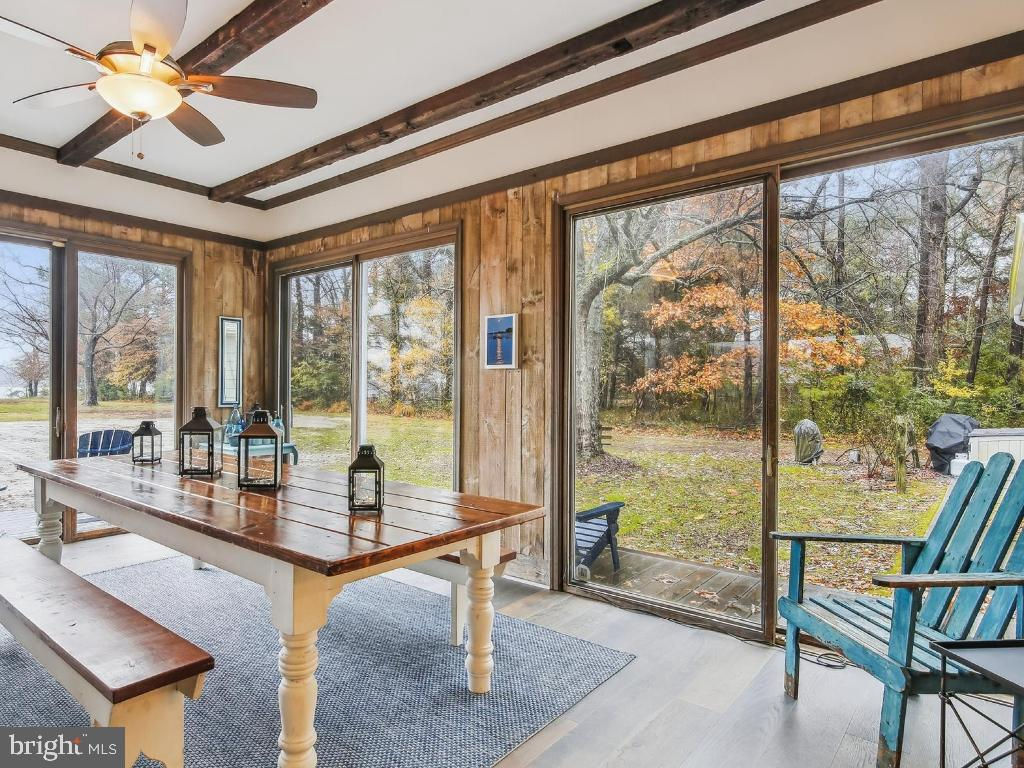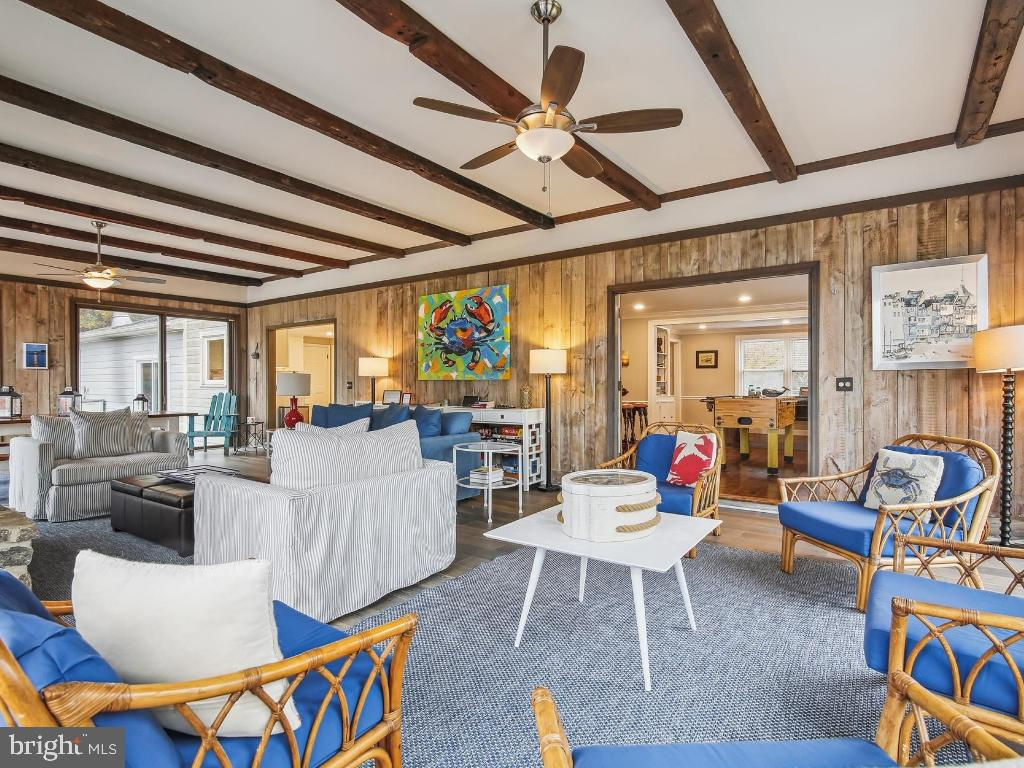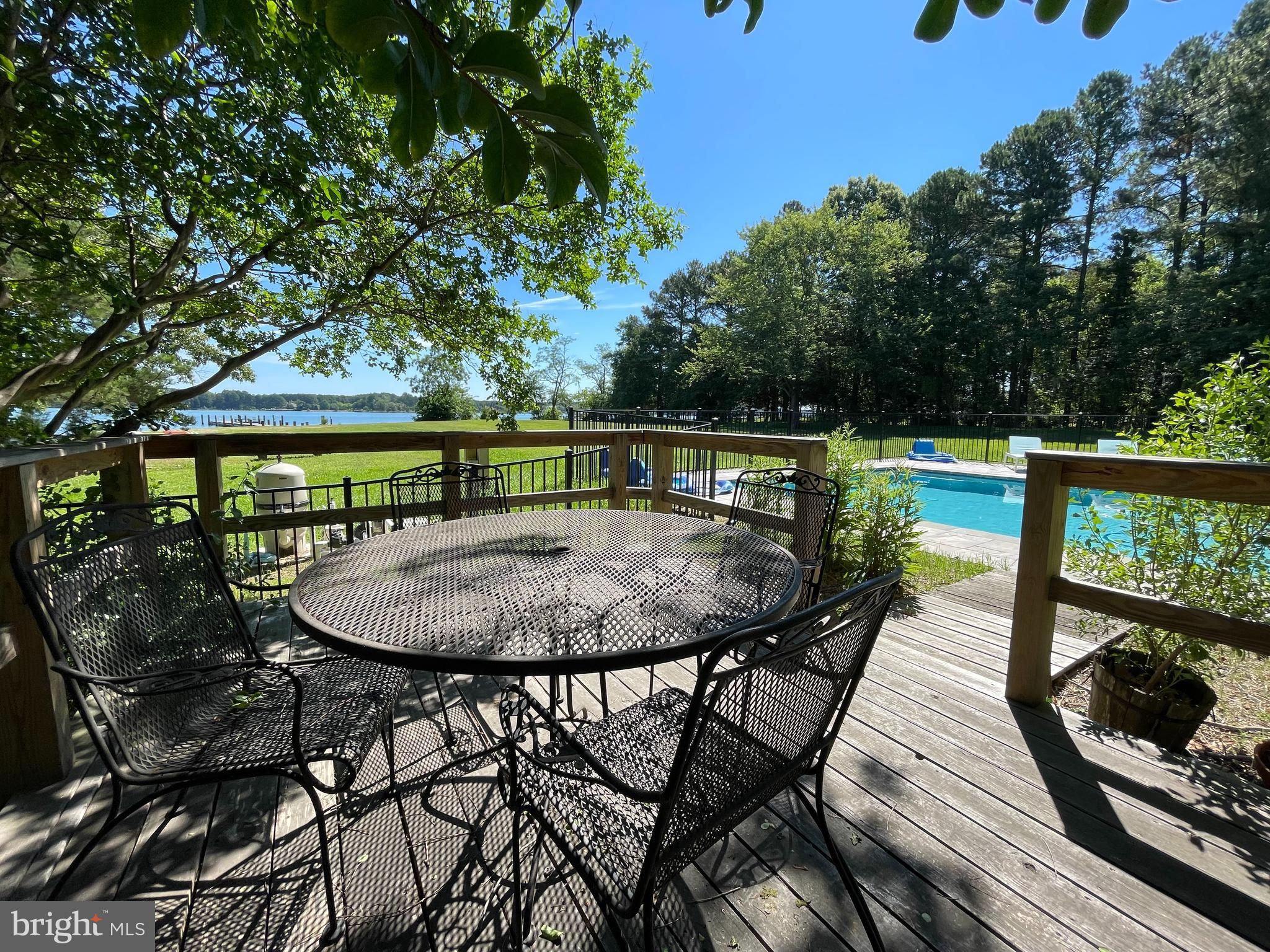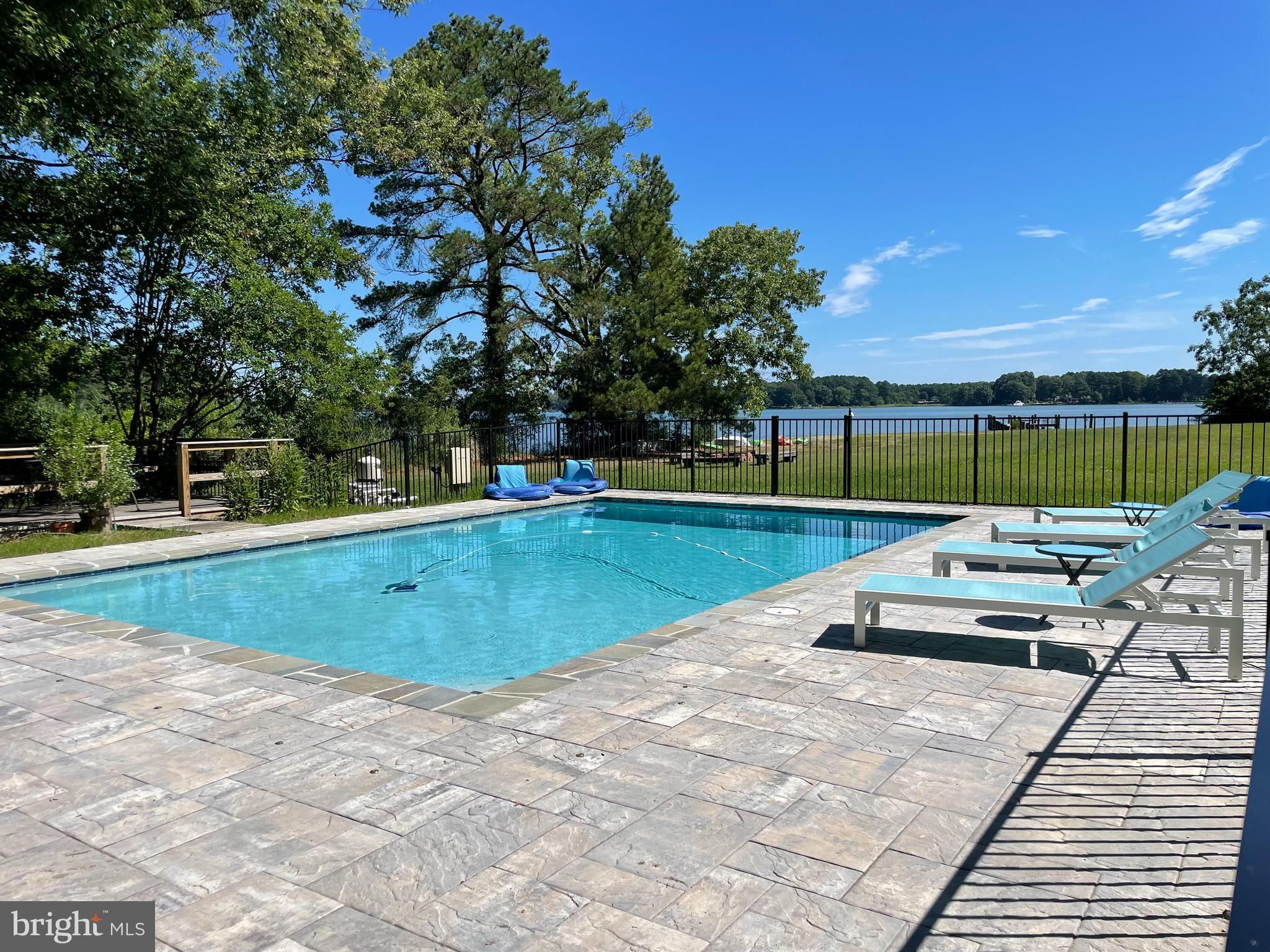 Waterfront Retreat near St. Michaels – “Thorntonwood” is a turnkey 3,400+/- sq ft Colonial that has been tastefully updated with all of the features you’re looking for in a vacation or primary home! Recent upgrades include new pool in 2023, new pier 2020, new septic 2023 and new roof 2016. Home features a traditional floorplan with 4 bedrooms, 2.5 Baths, large family room, River Room with huge wood burning stone fireplace, beautiful kitchen with white cabinets, quartz tops and SS appliances, dining/foosball room/Billiards room, den. Private setting with long driveway, deck, fenced pool, private pier with 3’+/- MLW (new electric and water) on 5.4+/-acres. Property has been used as a vacation rental with good rental income and is offered fully furnished!