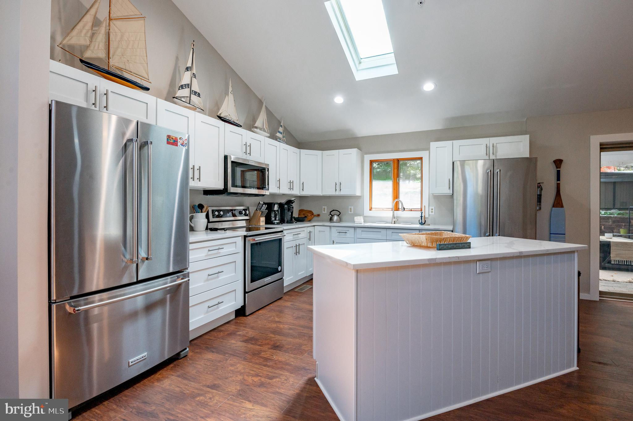 Fully Renovated Lake Front Lodge with Private Type-A Dock – This 8 Bedroom, 6.5 Bath Lake Front property has been completely re-imagined with 2700 sq ft of newly added living space, indoor pool, and home theatre! Fully finished lower level with a primary suite and living room equipped with an island bar and stone fireplace. Bright and shiny new kitchen with stainless appliances, wine chiller, 2nd refrigerator, and quartz tops. Gorgeous modern bathrooms, with updated vanities, tiled showers, and multiple standing tubs. Sold “turn-key” fully furnished with updated fixtures and furniture throughout! “Great Hall” style dining room with its a stone fireplace. Sprawling front deck overlooking Deep Creek Lake. Decked-out covered back patio with abundant outdoor seating. Lakeside fire-pit with perfect level lake access. Right across the street from Deep Creek Lake State Park, and minutes from local restaurants and Wisp Resort. Offering the perfect blend of comfort, style, and convenience, “Blue Anchor” makes an excellent lake home, or a perfect vacation rental too. Call today to set up your private showing!