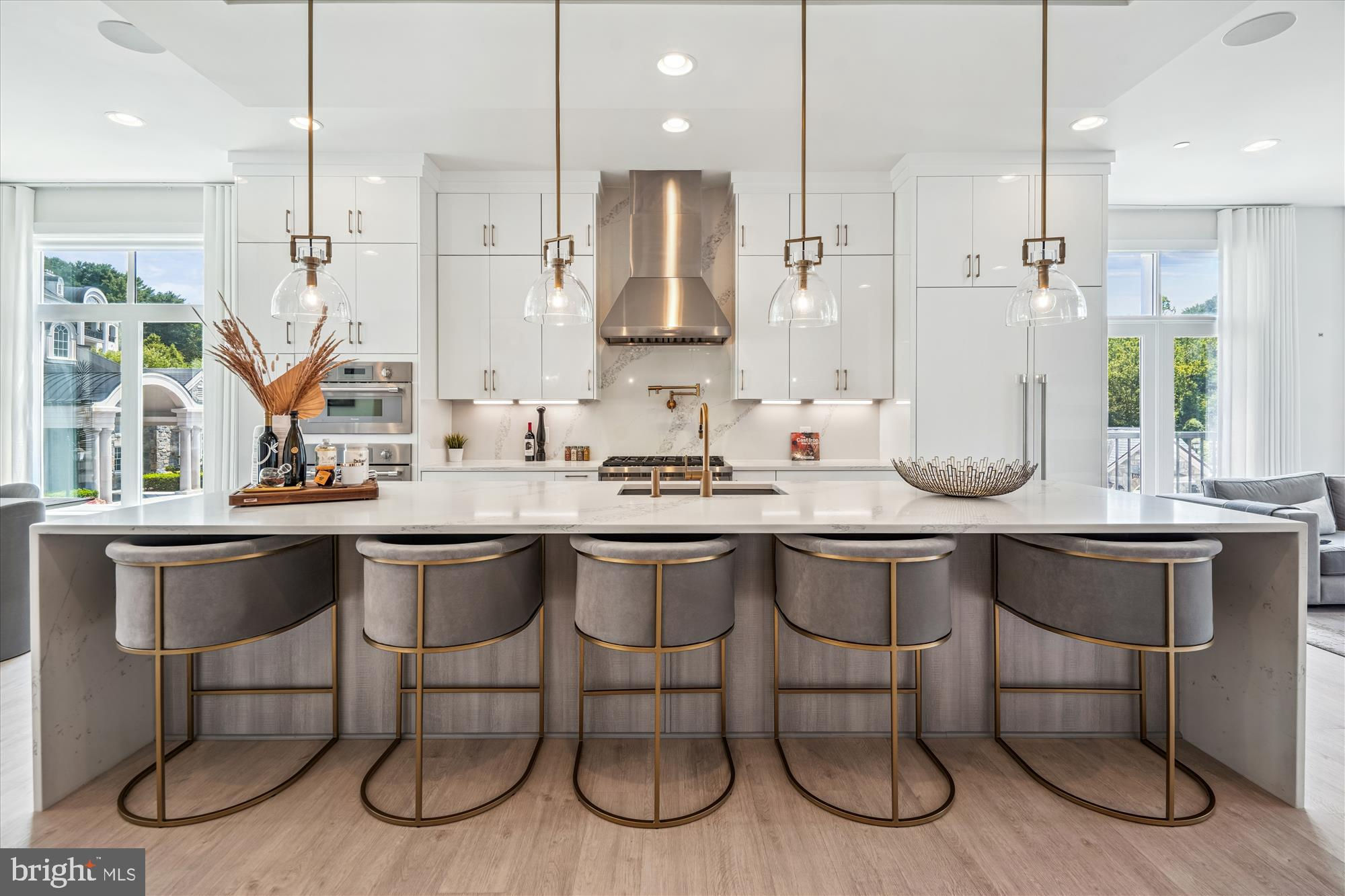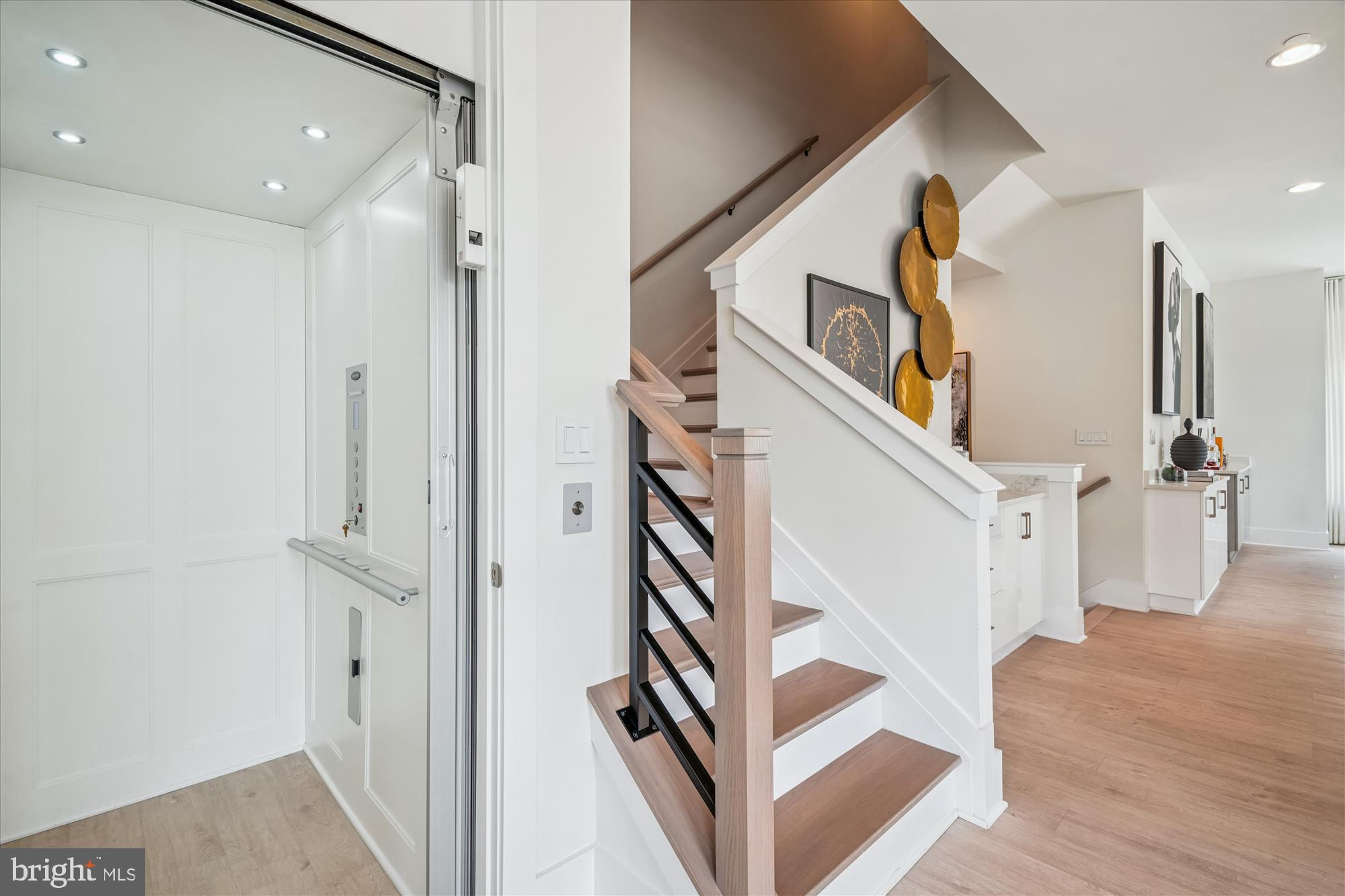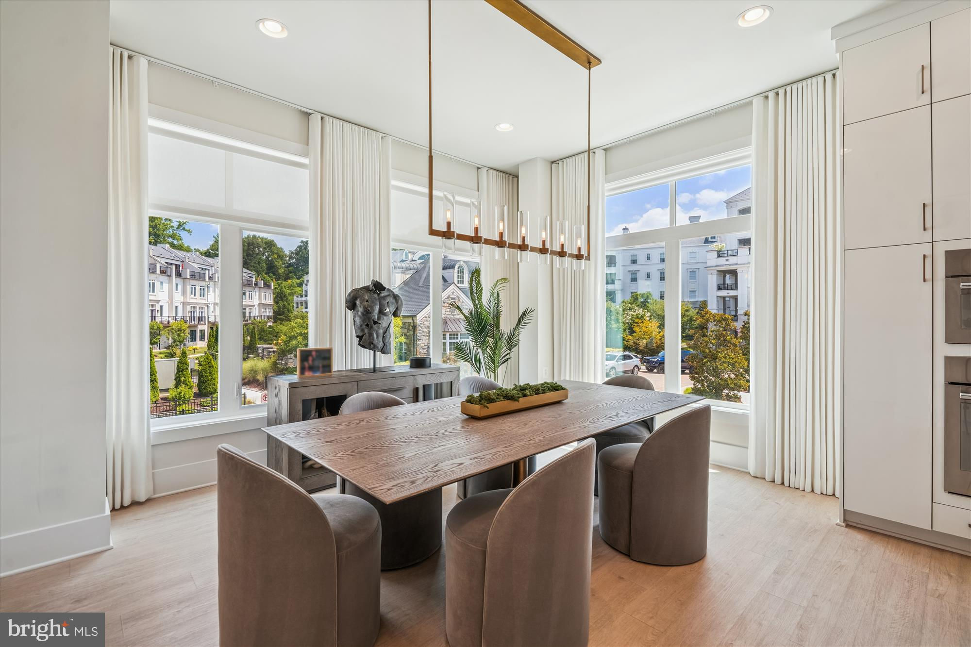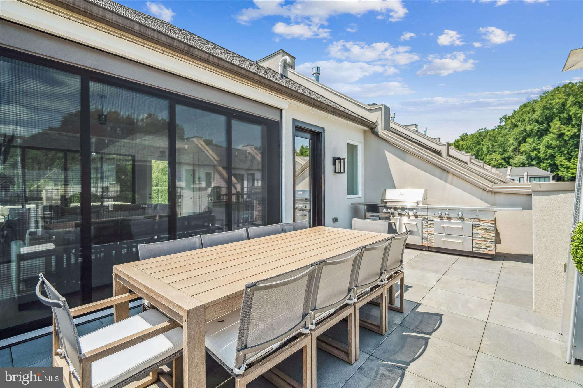 Welcome home to this exquisite end-unit rowhome in coveted Quarry Springs! Thoughtfully and graciously upgraded, this sun-soaked beauty showcases top-of-the-line improvements that include Restoration Hardware light fixtures, custom window panels and drapes, additional built-ins, plantation shutters, sliding glass panels that open the upper level family room to two roof terraces. Enjoy electric screens and electric shades that allow you to fully open or screen in the top floor, complemented by an outdoor kitchen and grill area. The entry foyer greets guests with a custom-painted ceiling, lacquered doors, and dual RH chandeliers. The office includes a discreet "inner office" designed to house printers and office equipment while maintaining the beauty of the main corner office. An elevator provides convenient access to all four floors. On the next level, you'll find the centerpiece of the home: the kitchen. Boasting a 12-ft island and gourmet appliances, it's flanked on each end with the generously sized dining and living rooms, bar/coffee counters, and dual walk-in pantries. Two gas fireplaces add warmth and charm to the space. The third level owner's suite features an elegant entry foyer, an expansive walk-in closet with custom built-ins, and a spa-like bath. Additionally, there are two more bedrooms and a full bath, as well as a spacious laundry room complete with cabinetry. The top-level family room features includes beverage/bar area, a coffered ceiling, and walls of retractable glass that open onto dual terraces. From the front terrace, enjoy serene, treetop views, while many rooms offer spectacular views of the fountain - particularly striking at night! Quarry Springs offers a host of amenities, including a sparkling outdoor pool, fitness center, party and entertaining rooms, walking paths, a waterfall, gardens, and even a dog park! This corner lot offers a premium view of the entrance fountain and gardens, as well as unobstructed treetop views from the front roof terrace, enhancing your enjoyment of the foliage. With 24-hour security and a gated entrance, peace of mind is paramount. This location offers convenient access to 495/270 for easy commuting to DC and Tysons, along with proximity to two airports and the shopping and dining options of Potomac Village and Bethesda. Don’t miss the opportunity to make this stunning property your new home!