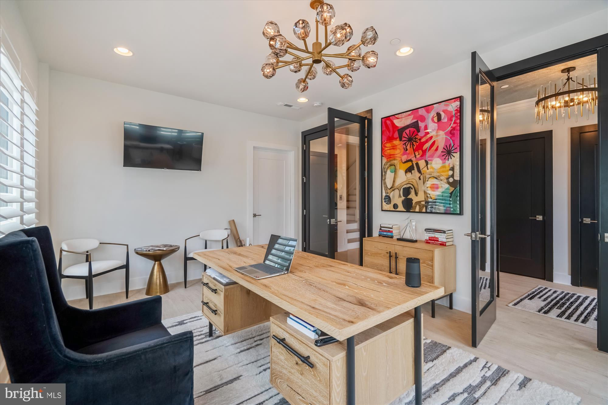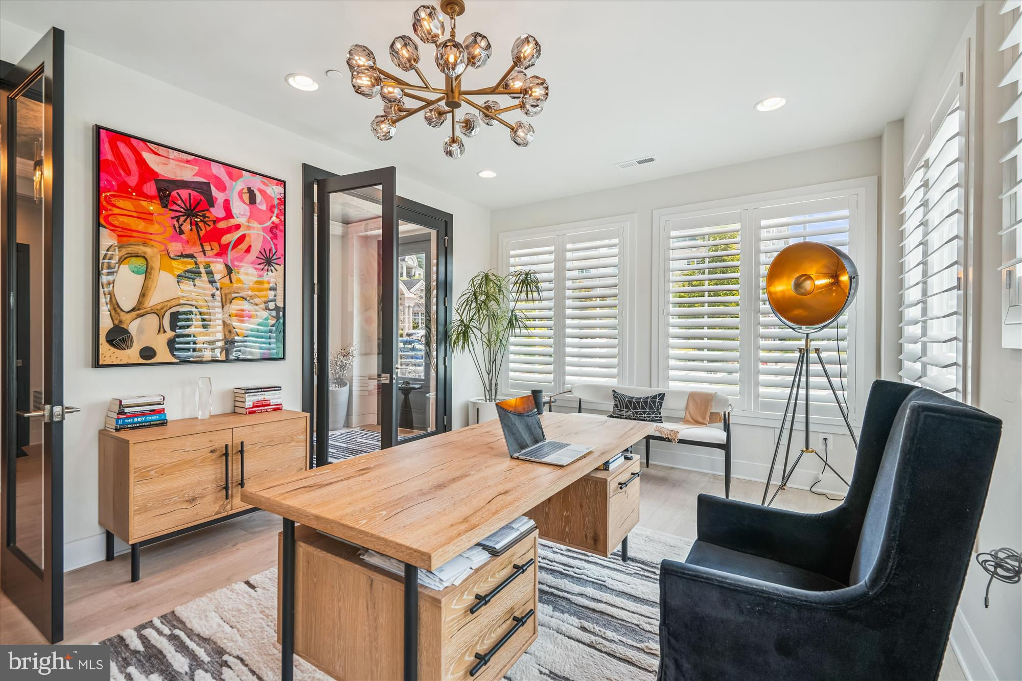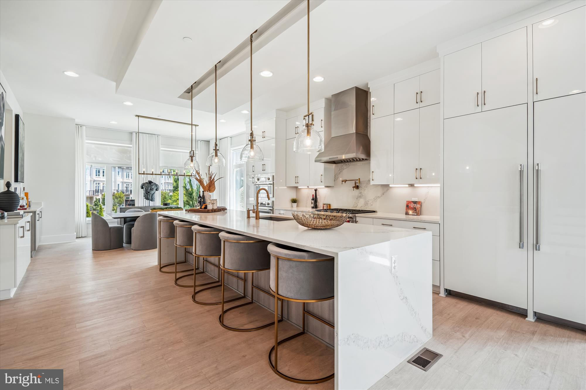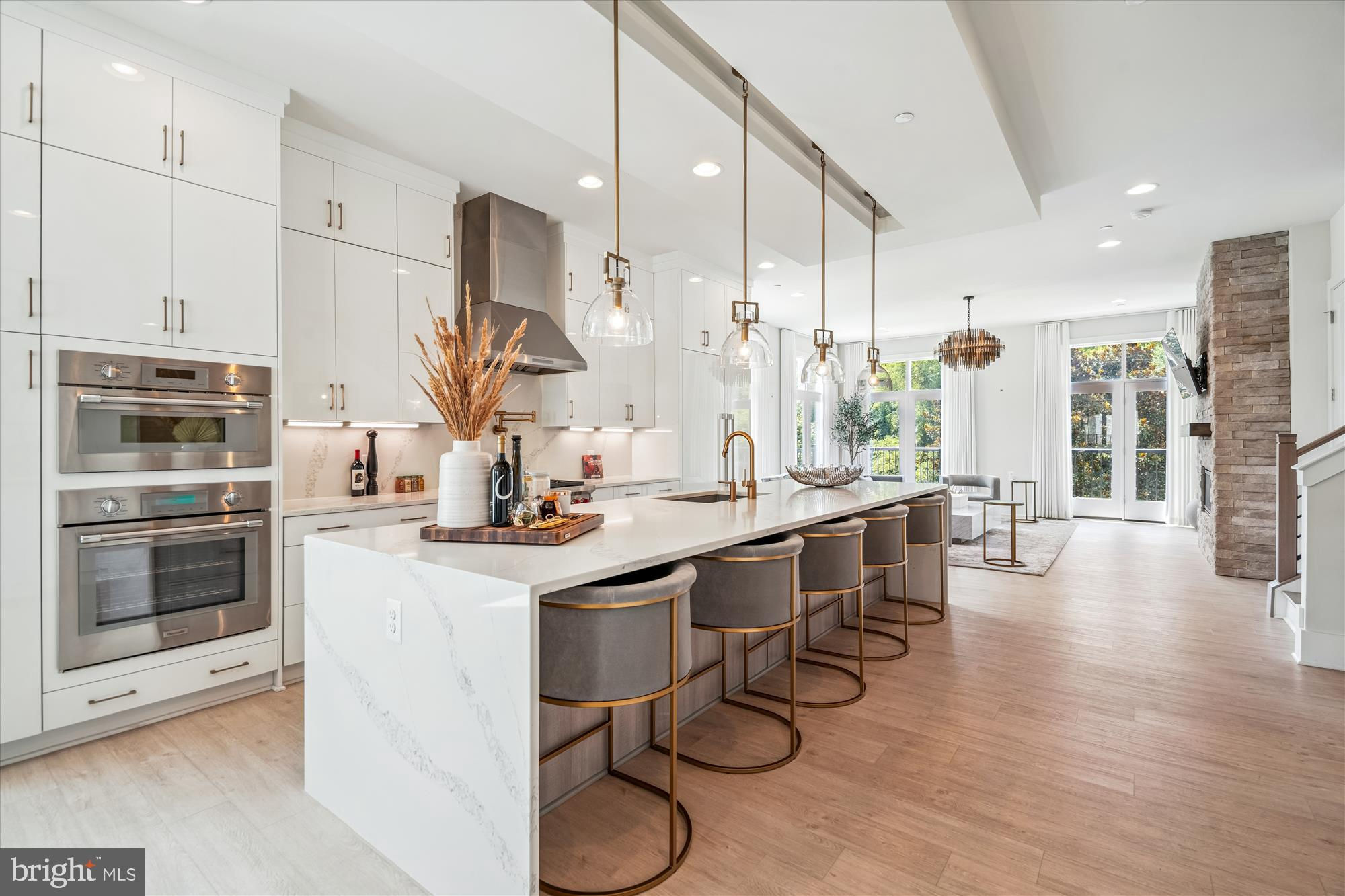 Welcome home to this exquisite end-unit rowhome in coveted Quarry Springs! Thoughtfully and graciously upgraded, this sun-soaked beauty showcases top-of-the-line improvements that include Restoration Hardware light fixtures, custom window panels and drapes, additional built-ins, plantation shutters, sliding glass panels that open the upper level family room to two roof terraces. Enjoy electric screens and electric shades that allow you to fully open or screen in the top floor, complemented by an outdoor kitchen and grill area. The entry foyer greets guests with a custom-painted ceiling, lacquered doors, and dual RH chandeliers. The office includes a discreet "inner office" designed to house printers and office equipment while maintaining the beauty of the main corner office. An elevator provides convenient access to all four floors. On the next level, you'll find the centerpiece of the home: the kitchen. Boasting a 12-ft island and gourmet appliances, it's flanked on each end with the generously sized dining and living rooms, bar/coffee counters, and dual walk-in pantries. Two gas fireplaces add warmth and charm to the space. The third level owner's suite features an elegant entry foyer, an expansive walk-in closet with custom built-ins, and a spa-like bath. Additionally, there are two more bedrooms and a full bath, as well as a spacious laundry room complete with cabinetry. The top-level family room features includes beverage/bar area, a coffered ceiling, and walls of retractable glass that open onto dual terraces. From the front terrace, enjoy serene, treetop views, while many rooms offer spectacular views of the fountain - particularly striking at night! Quarry Springs offers a host of amenities, including a sparkling outdoor pool, fitness center, party and entertaining rooms, walking paths, a waterfall, gardens, and even a dog park! This corner lot offers a premium view of the entrance fountain and gardens, as well as unobstructed treetop views from the front roof terrace, enhancing your enjoyment of the foliage. With 24-hour security and a gated entrance, peace of mind is paramount. This location offers convenient access to 495/270 for easy commuting to DC and Tysons, along with proximity to two airports and the shopping and dining options of Potomac Village and Bethesda. Don’t miss the opportunity to make this stunning property your new home!