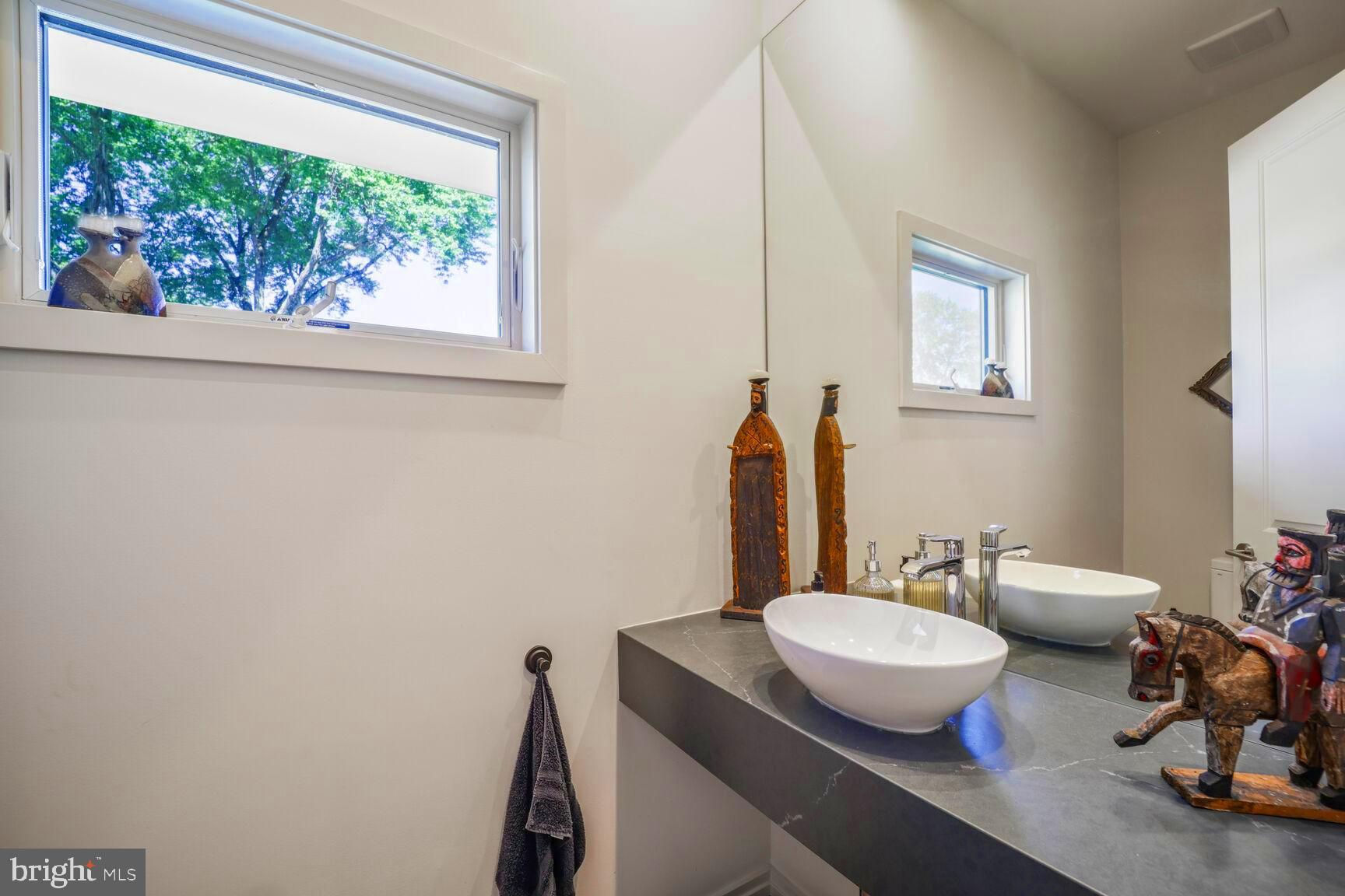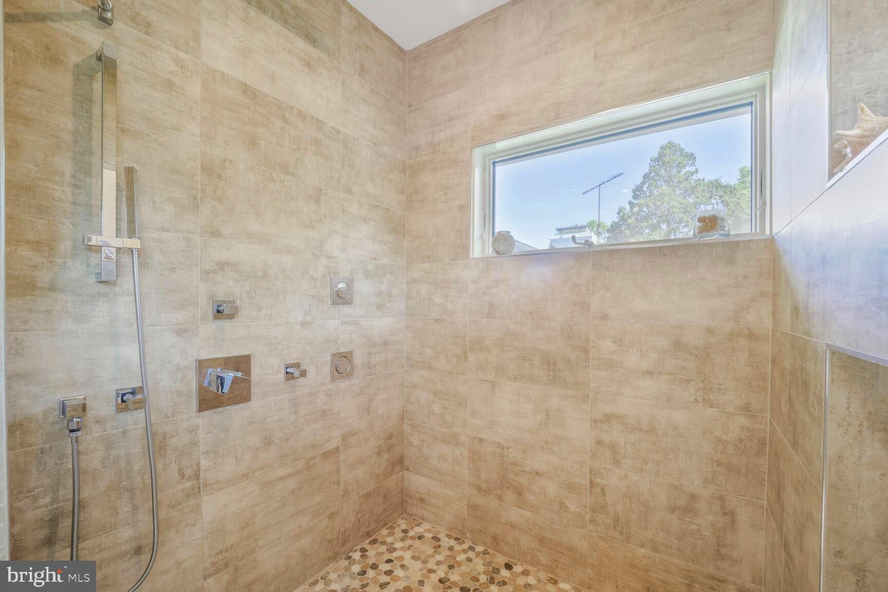 WELCOME to this sundrenched masterpiece built in 2019. This property has been thoughtfully constructed with flowing space for entertaining, Bosch appliances, soaring ceilings, first floor bedroom and en suite bathroom (in fact, ALL of the bedrooms have en suite bathrooms!), fireplaces in the living room and primary bedroom, lower level potential for in-law unit complete with separate entrance and rough-in for kitchen and spa sauna with shower. Outside features complement the lovely interior including solar panels (look at the Utilities Disclosure, you won't believe it!), submeter for garden watering, deck overlooking the level yard and a stucco finish that creates a modern twist amidst that fits beautifully in the Bradmoor neighborhood!