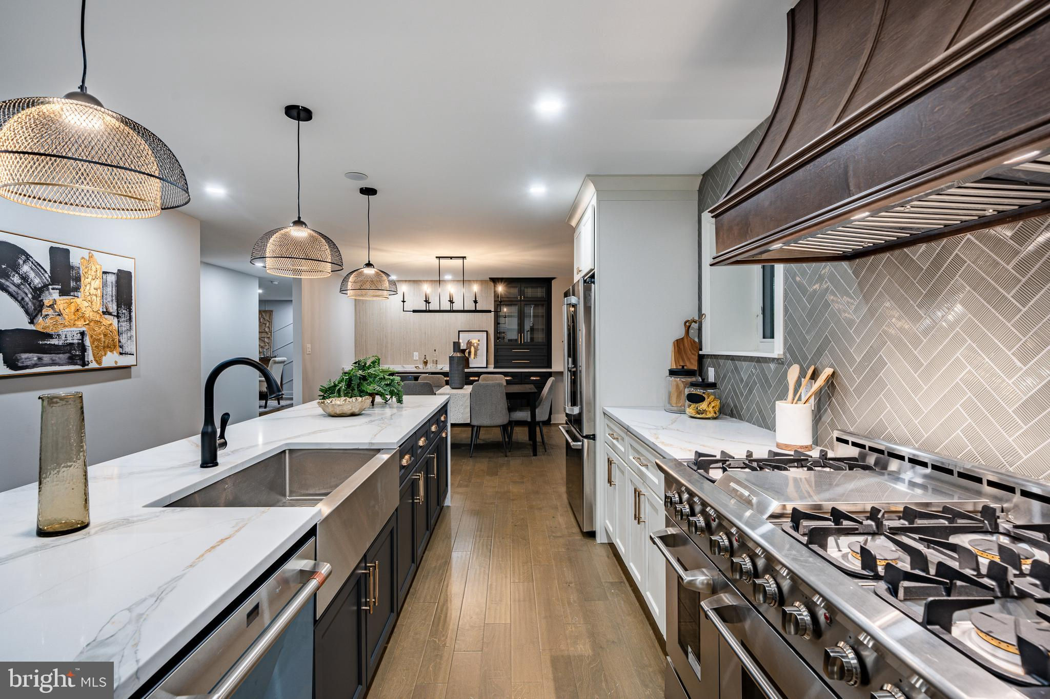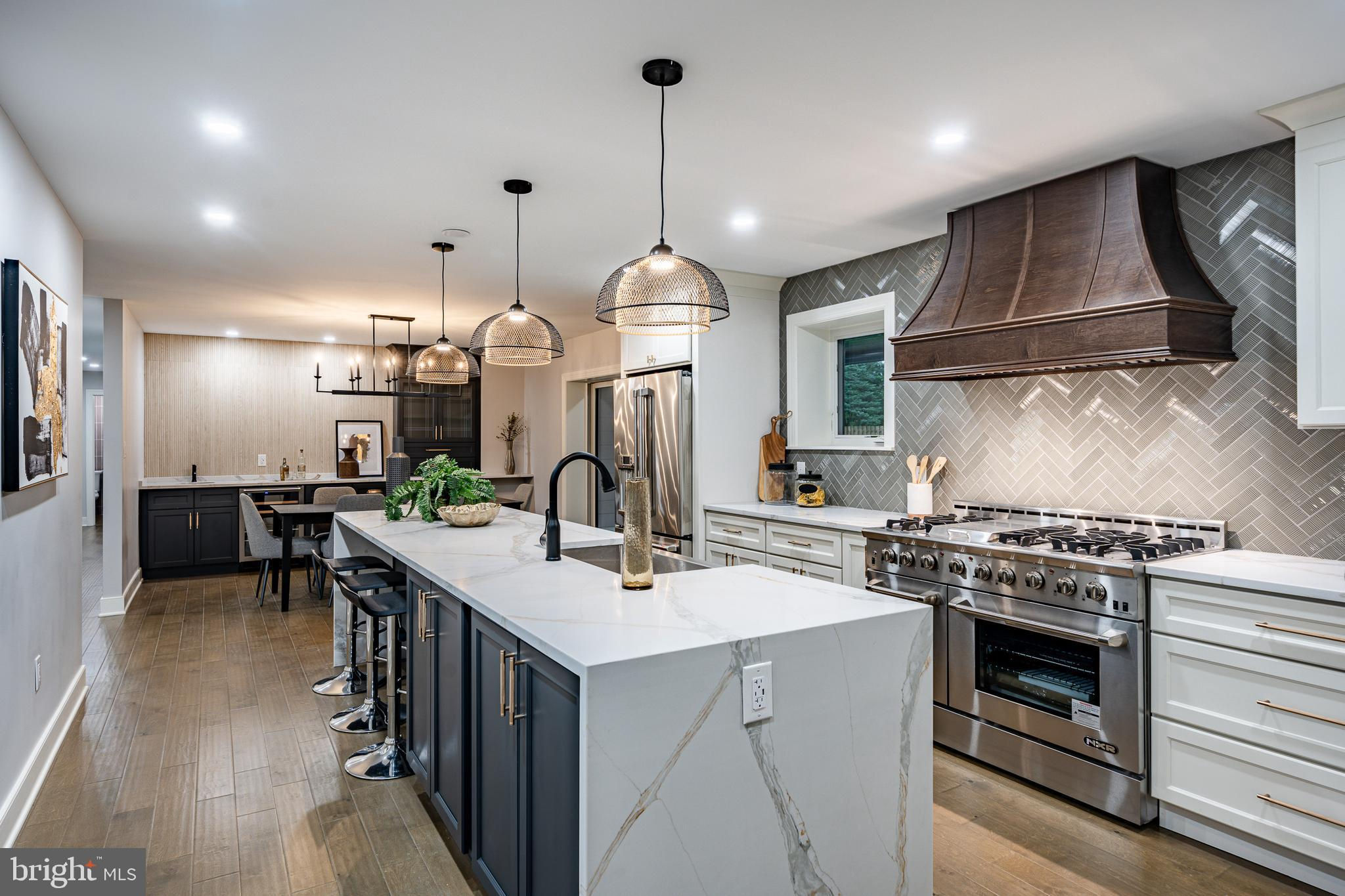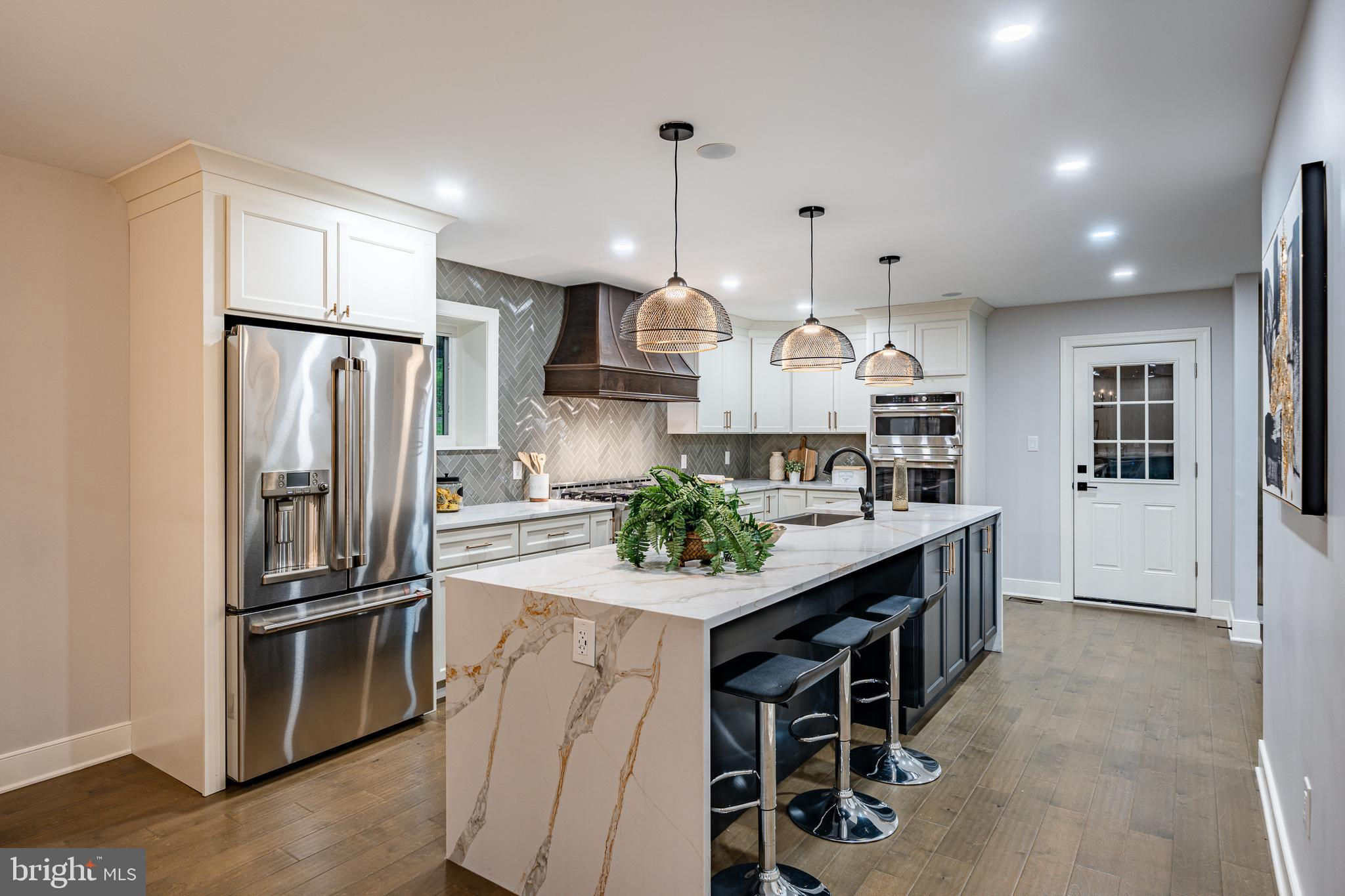 Welcome to 861 Bryn Mawr Avenue, a meticulously renovated Mainline residence that was entirely remodeled and expanded in 2023. Spanning 5,885 square feet, this home offers 5 bedrooms, an office room, gym, 4 full baths, and 2 half-baths. The open-concept floor plan featuring hardwood flooring and a neutral color palette, centers around a formal living room boasting a gas fireplace and ample natural light. The custom kitchen is a chef's dream, featuring top-tier appliances, a wet bar and access to the covered patio. The main level also includes a bedroom suite, library/office, and half bath. Upstairs, the newly constructed second floor hosts the primary suite with a luxurious spa-like bathroom and oversized balcony with serene views of the lush backyard. This level has an additional en-suite bedroom and two generously sized bedrooms share a hall bath. Laundry room is conveniently on this floor. The expansive walk-up lower level has direct access to the outside, with a home theater room, family room, flex spaces, additional laundry, and half bath. Among the premium features are Hardie siding, Andersen windows, whole house generator, custom closets, and a multi-zone speaker system. Located in the award winning Radnor Township School District. This home is conveniently located near Route 476 and the PA Turnpike, just a short distance from Center City Philadelphia. Easy access to SEPTA regional rail service to New York. Only an 8-minute drive to SAP Headquarters. Plus, enjoy quick access to the finest shopping, dining, and entertainment options the Main Line has to offer.