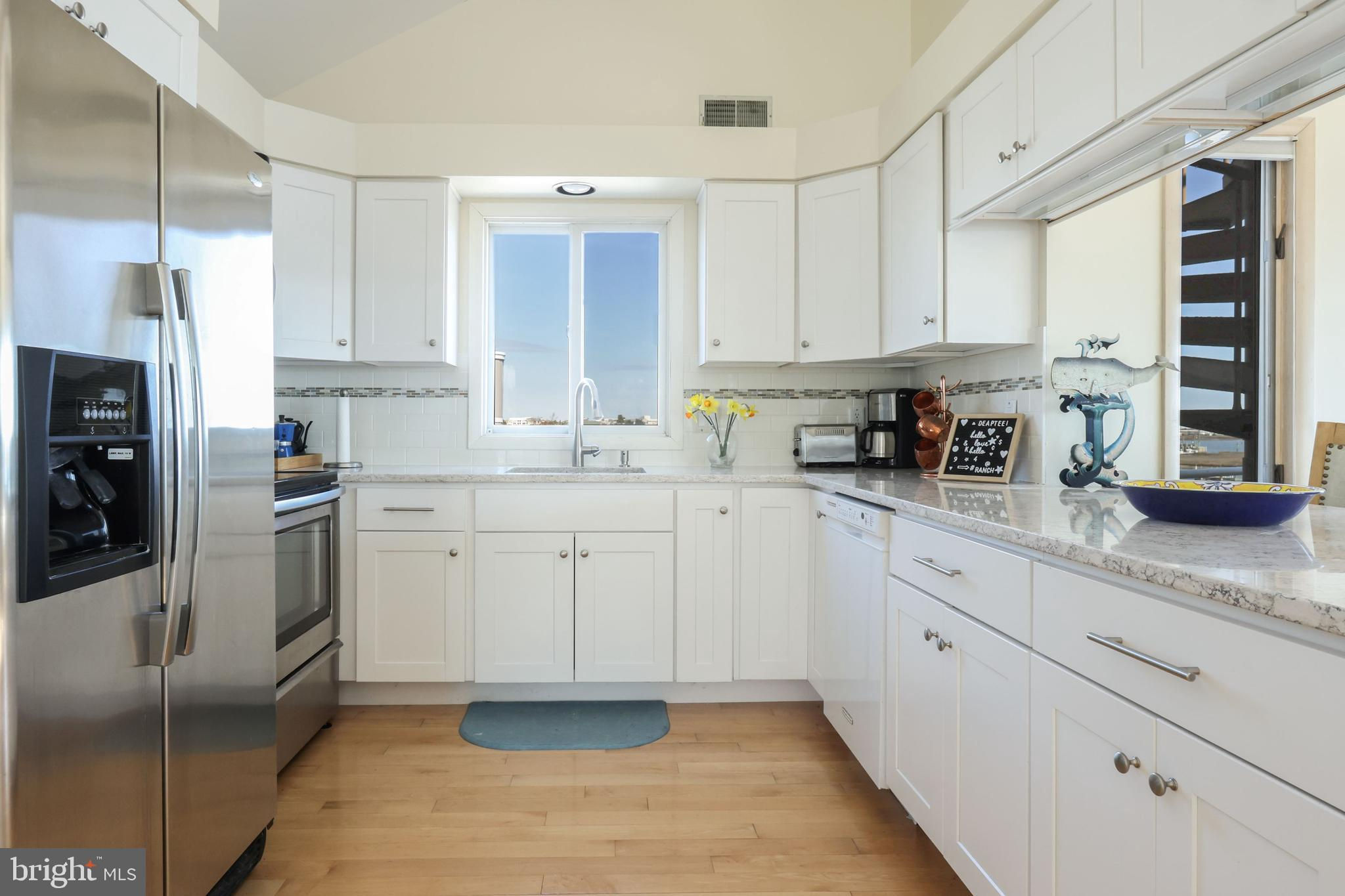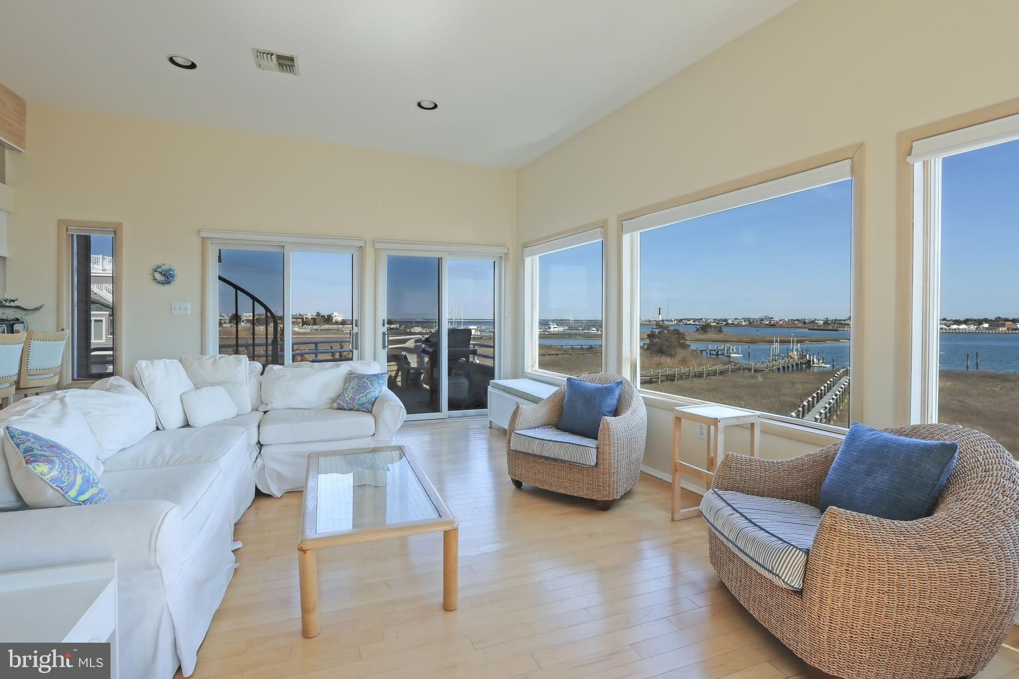 BLUE HERON COVE, Bayfront, High Bar Harbor: Breath taking views await you when you step inside this 4 bedroom, 3.5 bath bay front home with its many appealing features. The approx. 250’ pier with lighting & water service, stretches out over preserved wetlands to the open bay. A floating dock allows one to tie-up a 25’ boat. Enjoy all the watersports right at your door step: boating, swimming, kayaking, fishing, crabbing, bird watching and more. The panoramic landscape of Old Barney, the Barnegat Light fishing fleet and colorful sun rises lend to ever changing views. A reversed living home, the 1st floor features 3 bedrooms, one en suite, another full bath shared by 2 bedrooms, family room with an adjoining deck and a separate laundry room. Ascend to the 2nd floor and be embraced by the open and light feel of the main living area, updated kitchen and dining area with a wall of windows and decks. The primary bedroom, en suite, has views to the East and North. There is a ½ bath as well. Climb the spiral stair case to the Sky deck for 365 degree views and star gazing. Viking Village with its quaint shops, vegetable and fish markets add to local flavor. The beautiful beaches of Barnegat Light are an easy bike ride away. Relax after a day at the beach or fishing for dinner in the backyard sitting area with a hot tub. This home has an extra bonus with rental income for the 2024 Summer.