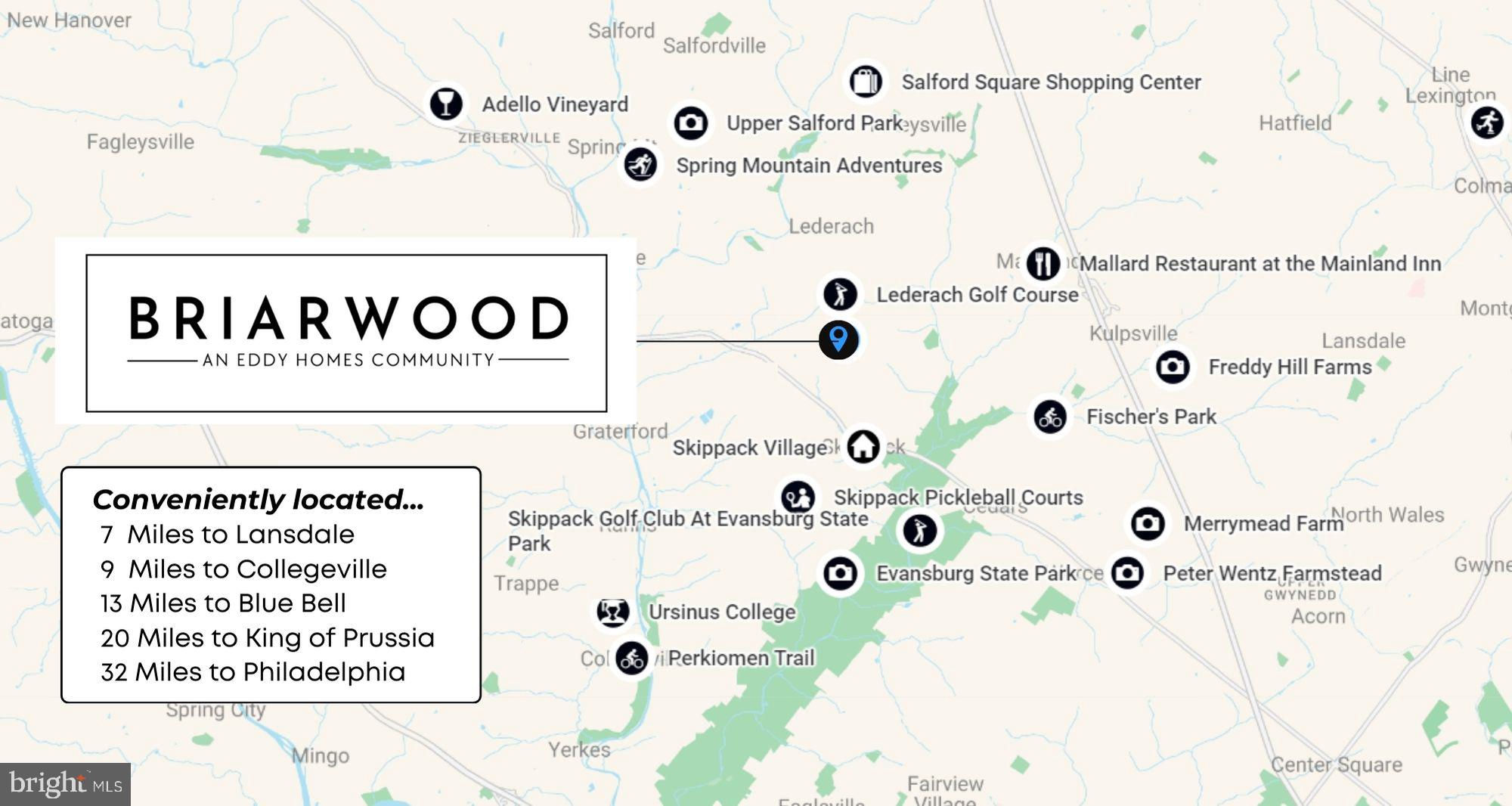 LAST CHANCE! Only 1 homesite remains. Briarwood is an exclusive enclave of four sprawling estate homes on private homesites, each over two acres. Design your dream home from one of our spacious floor plans offering modern must have features like main level guest suites, dramatic two story spaces, spacious mudrooms, second floor laundry rooms and expansive windows. With the Eddy Homes Design Advantage experience offering custom-curated design options with a complete selection of high-end finishes, these homes will truly make a statement. Nestled just a mile away, is Skippack Village with its array of boutique shopping, top-tier dining options, and lively activities, including popular First Fridays and Signature Skippack Days. The community's prime location ensures easy accessibility to major highways for easy access to Collegeville and Blue Bell. Even Center City Philadelphia is only 30 miles away. Enjoy the perfect blend of serene countryside living, sophistication and convenience. Enter this luxurious, custom European style floor plan through a grand two-story foyer. The immense kitchen boasts two 10’ islands and opens up to a breakfast room filled with windows. The two-story great room complete with a window wall & floor-to-ceiling stone fireplace beams with natural light. The first floor is finished off by a study featuring a fireplace & built-ins, a spacious dining room & a guest suite. An oversized mudroom, conveniently situated off the 4-car split garage, features built-ins and a walk-in pantry. The second floor offers an enormous owner’s suite including a luxury spa-like bath boasting dual sinks, a free-standing soaking tub, and a massive shower. This suite also includes two giant walk-in closets, a secluded sitting room, and a balcony overlooking the backyard. Three more bedrooms finish off the second floor each adorned with it's own private bath. ** Pictures are of a previously built Eddy Homes Property.