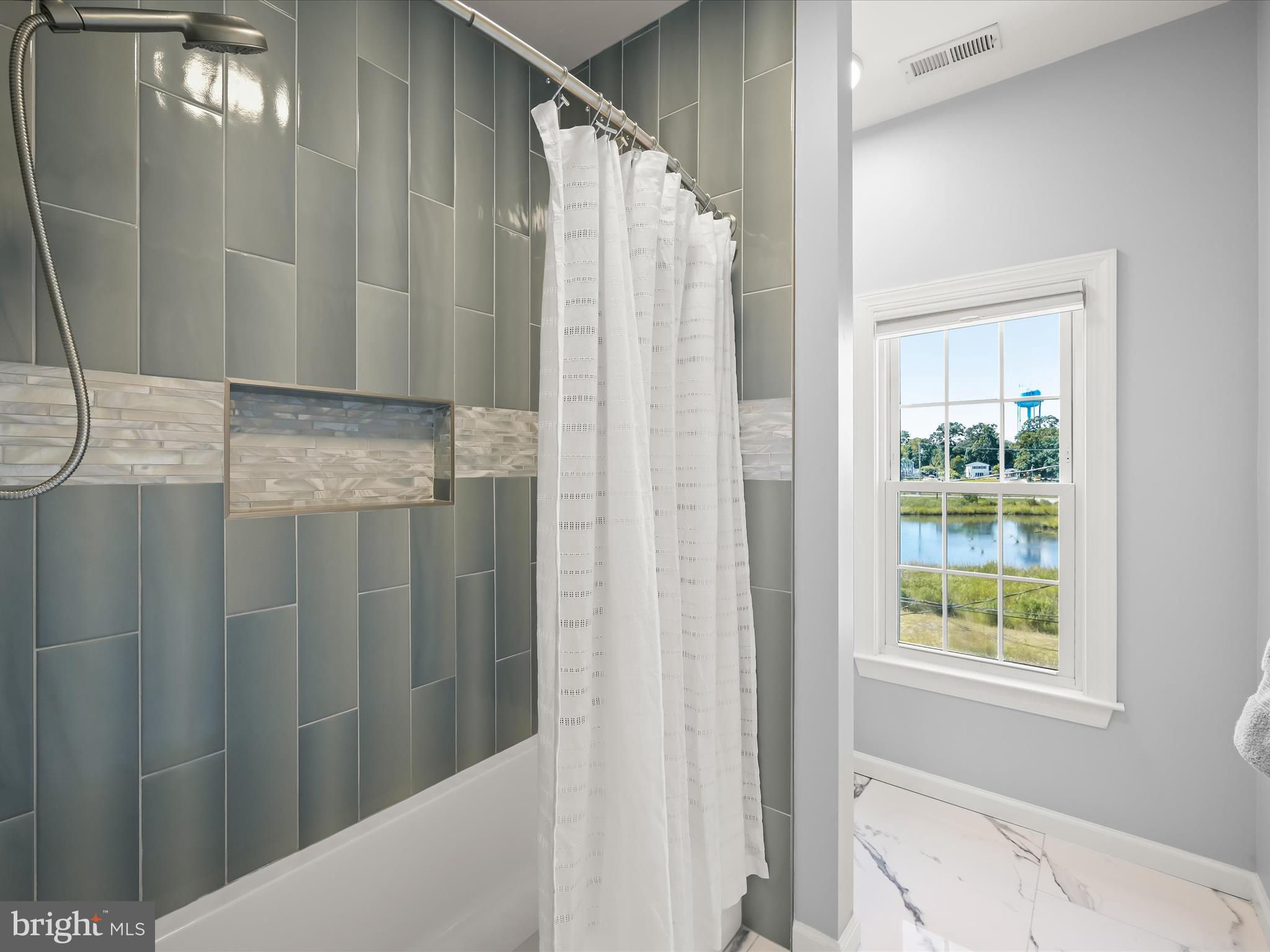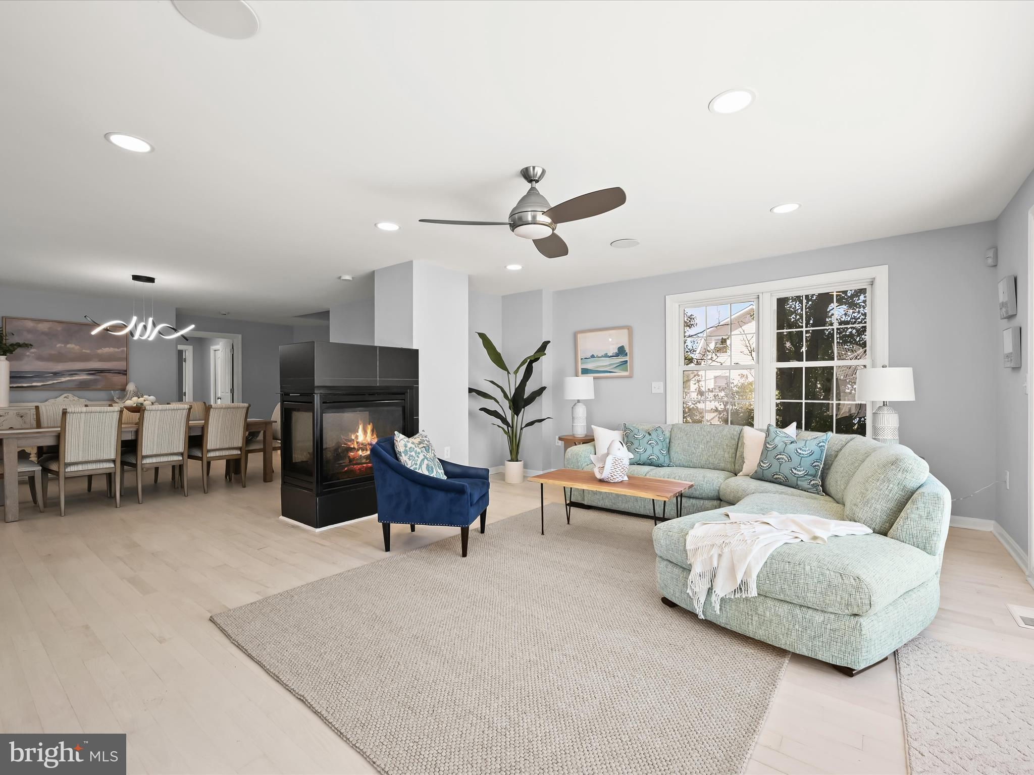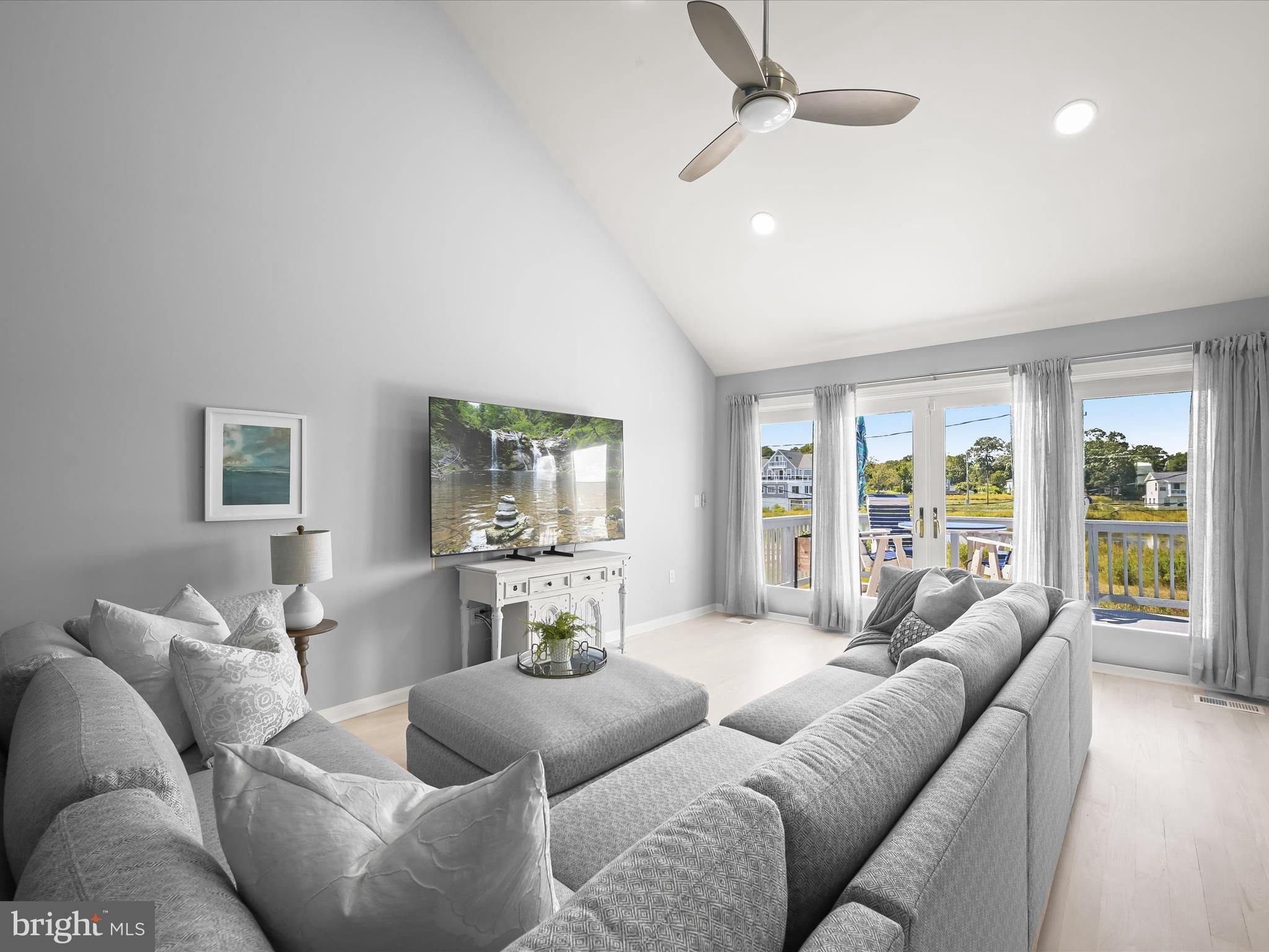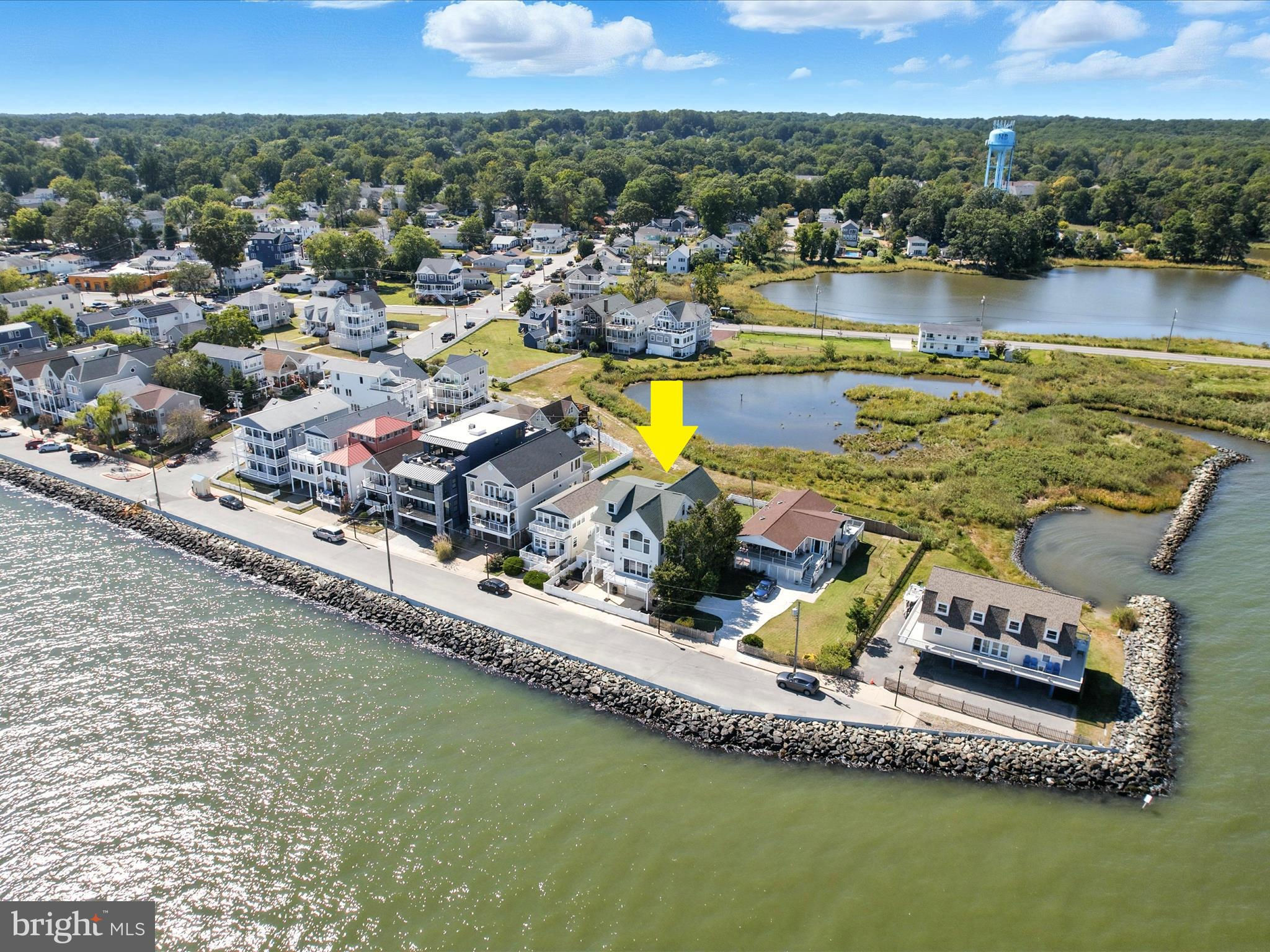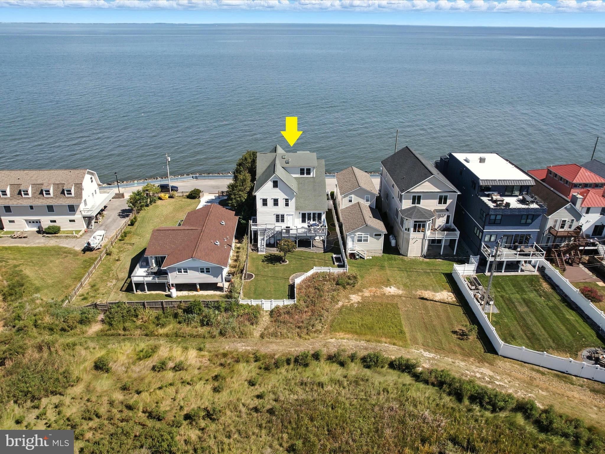Perched on three expansive lots with prime frontage, this North Beach home offers breathtaking water views from nearly every window and multiple decks overlooking the Chesapeake Bay. Refinished hardwood floors in a light tone with both warm and cool graining complement the freshly painted interiors, while design-inspired tile and finishes elevate every renovated bathroom. Modern updates include recessed lighting throughout, new ceiling fans in all bedrooms, replaced light fixtures, a refaced fireplace, and a new heat pump, alongside thoughtful structural improvements such as the removal of a wall to open the staircases on the second and third floors. Recently featured in the Washingtonian June 2024 "Water's Edge" article, this home radiates sophistication and coastal charm. The recently updated kitchen shines with quartz countertops, a glass tile backsplash, stainless steel appliances, a gas range, and built-in speakers. The open-concept main level flows effortlessly, with a large kitchen bar providing additional seating ideal for entertaining. In the living room, expansive Chesapeake Bay vistas lead to a deck perfect for enjoying the water views and the soothing sound of waves lapping against the rocks, while the dining area enjoys the same scenery, anchored by an elevated peninsula gas fireplace shared with the living room and kitchen. Step outside from the spacious family room, where vaulted ceilings and walls of glass-paneled doors with sidelights fill the space with abundant natural light and lead to a deck with views over the wetlands, complete with surround sound speakers. The main level also includes a generously sized laundry room with coordinated floor and wall tile, and a versatile space that can serve as a water-view office or bedroom, featuring a full bath, and walk-in closet. Upstairs, the primary suite impresses with a cathedral ceiling, panoramic water views, a walk-in closet, and a private balcony. The en suite bath offers a soaking tub, double vanity, and a tiled shower, with water views appreciated from the bathroom itself. Two additional bedrooms with walk-in closets share a full bath with a double sink vanity. On the third floor, a spacious bedroom enjoys water views from every window and a window seat, accompanied by another dual-entry full bath and a sixth bedroom overlooking the wetlands. Outside, a generous fenced yard with a back gate provides direct access to kayak launching spots. Parking is abundant, with a four-car tandem garage and a concrete fenced driveway accommodating two more vehicles for a total of six spaces. Located in the heart of North Beach, residents have easy access to shops, restaurants, and community events, including farmer’s markets and concerts, as well as the boardwalk, pier, and sandy beach just steps from home. Whether seeking a year-round residence or a coastal getaway, this retreat, only 45 minutes from DC, offers the perfect blend of comfort and convenience. Park your boat at Herrington Harbor Marina or Rod & Reel Resort. Experience a vibrant coastal lifestyle with a charming boardwalk, seasonal farmers market, Bayside History Museum, parks and nature preserves, a brand-new library, cultural events, and welcoming gathering spaces. This North Beach home captures the essence of small-town charm while offering the modern comforts and breathtaking views of the Chesapeake Bay.