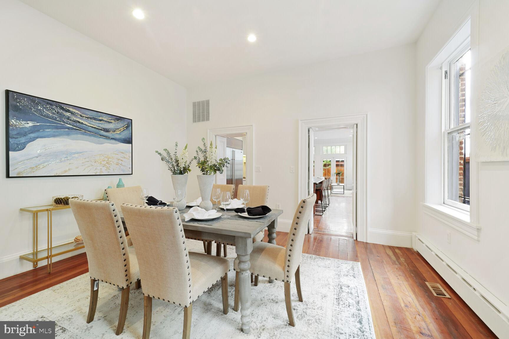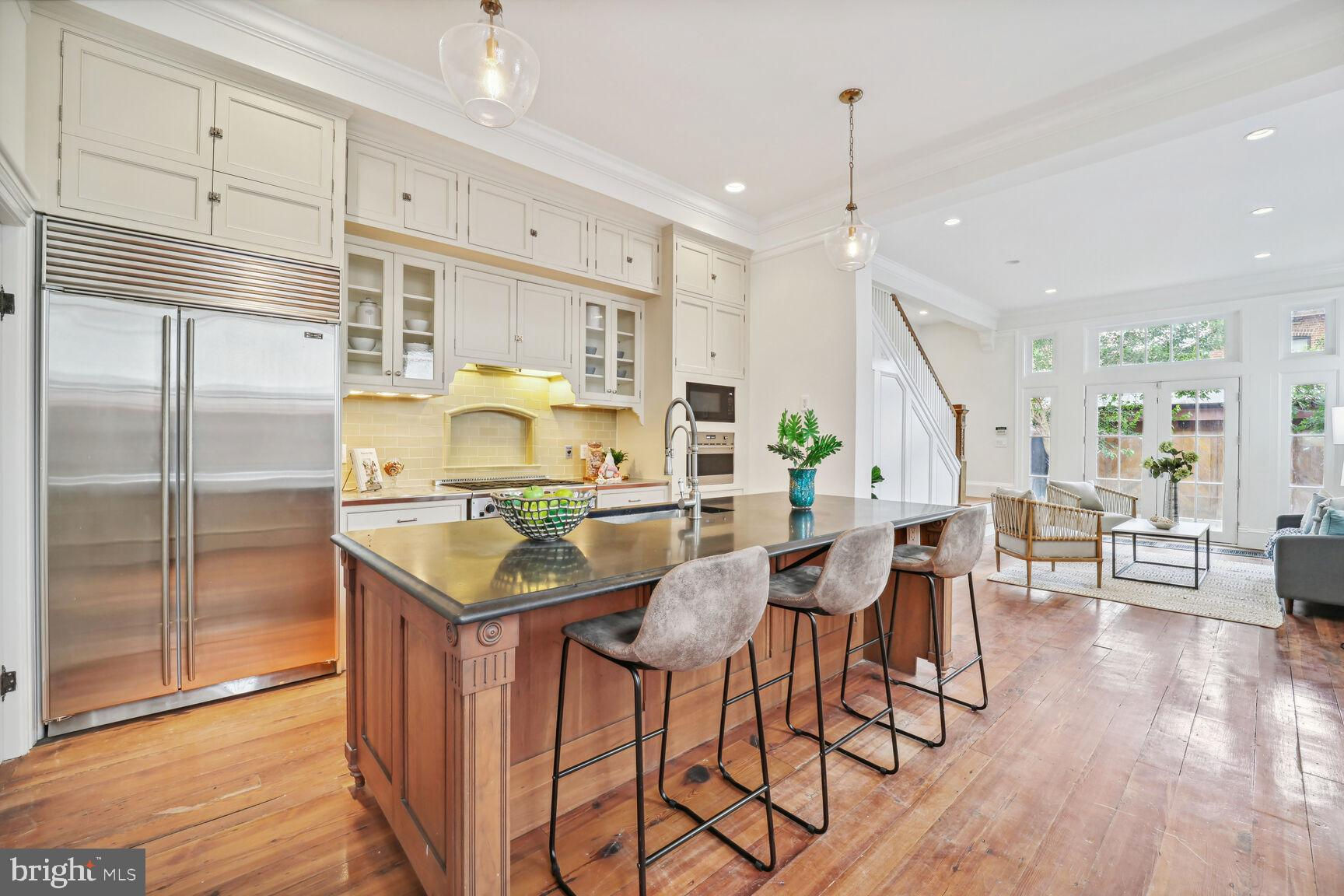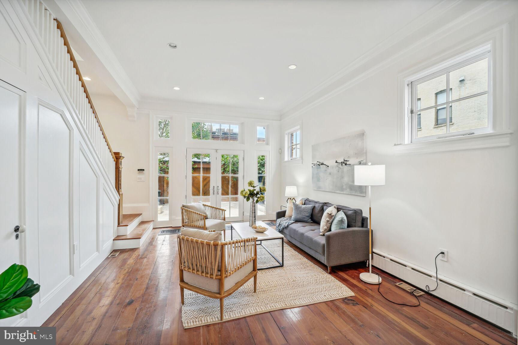 Discover the perfect blend of historic allure and contemporary comfort in this exceptional Second Empire-style gem, now available for sale. This home exudes the unique character of the Victorian era, captured in its high ceilings, spacious formal rooms, deep-set windows, and elegant heart pine flooring. On N St, with rear backing to Naylor Court. Inside, French doors open onto a large, private garden that also serves as additional parking, secured by remote-controlled mahogany doors. At the heart of the home is a spacious gourmet kitchen, equipped with top-of-the-line Subzero and Smeg appliances. This culinary haven flows seamlessly into an expansive open family room, providing an ideal space for relaxed entertaining. Added contemporary comforts include heating and cooling systems managed by smart Nest thermostats. The rear staircase ascends to the generous living quarters. The primary suite, offering ample space and privacy, features two walk-in closets, providing an opulent retreat. A luxurious en-suite guest room boasts its own balcony, providing an extra touch of elegance to the modern amenities. The third level unfolds into a versatile space, perfect for additional bedrooms or offices, while an exterior-accessed, unfinished basement offers potential for customization – envision an in-law suite, a wine cellar, or a spacious storage area. Situated on a generous 2940 SF lot on the coveted Naylor Court, this semi-detached row house offers a remarkable balance of indoor and outdoor living space. Recent enhancements include new systems, professional landscaping, and various necessary repairs and replacements, ensuring the home is in exceptional condition. With nearly 3200 SF of living space, plus a basement, this rental home provides excellent value. For those seeking a distinctive residence that harmoniously melds the charm of Victorian architecture with modern conveniences and spacious living, this property stands as an extraordinary opportunity.