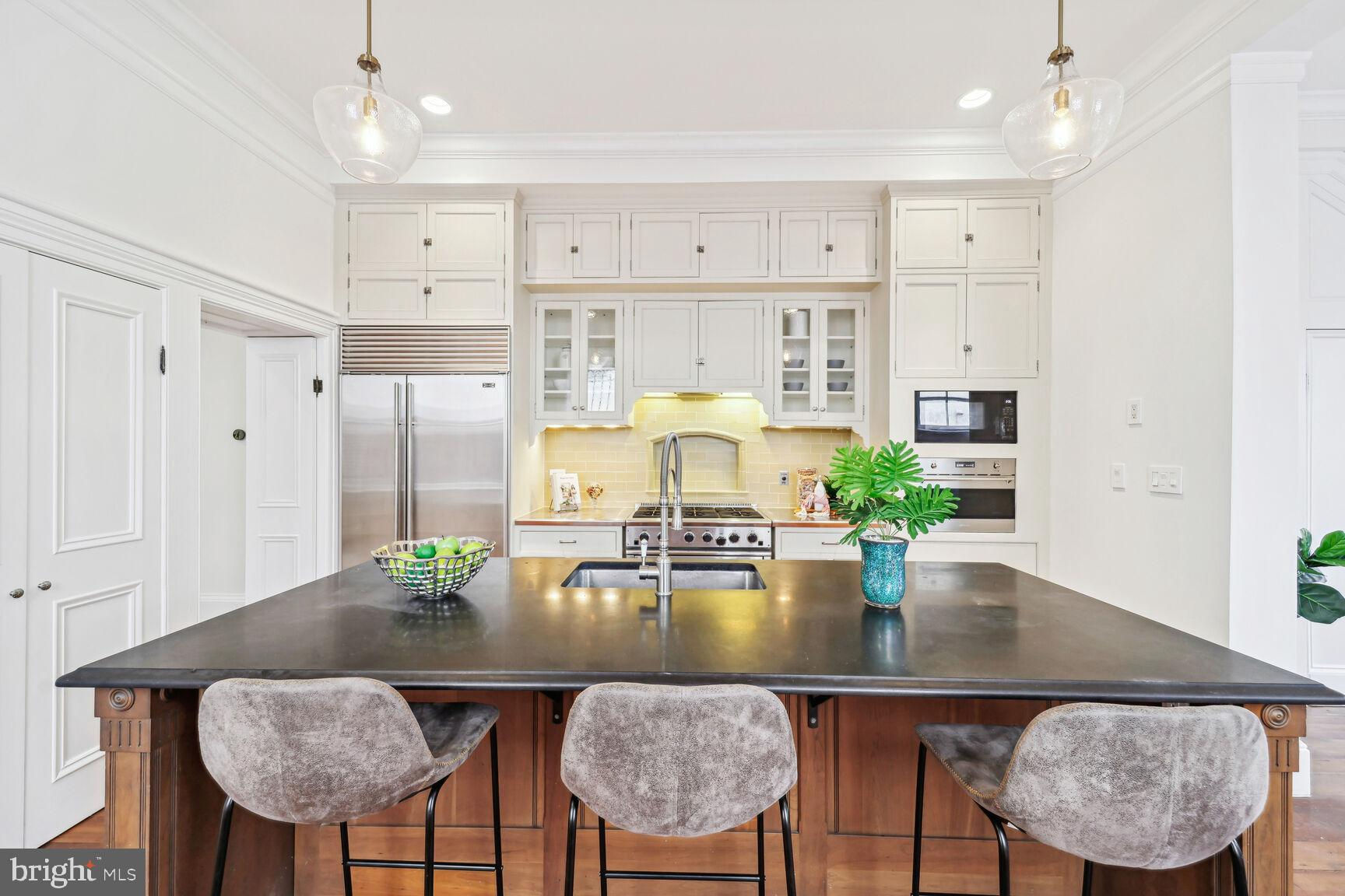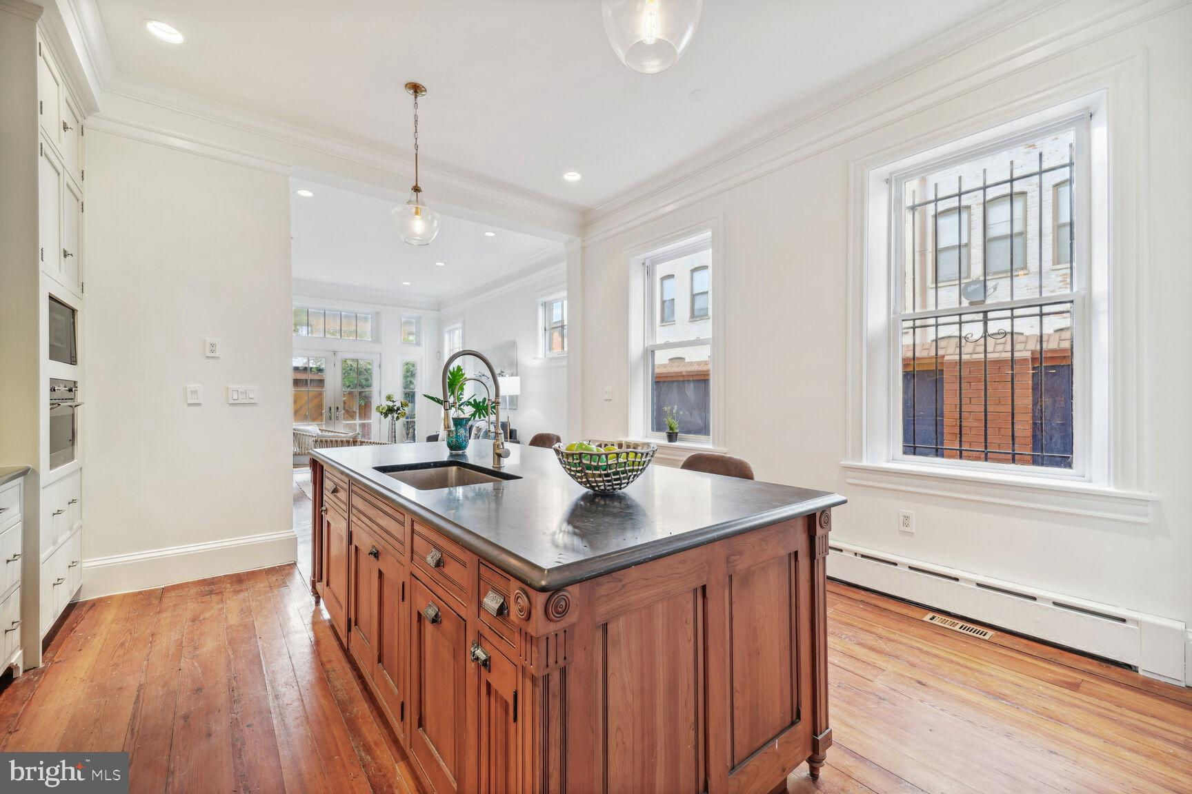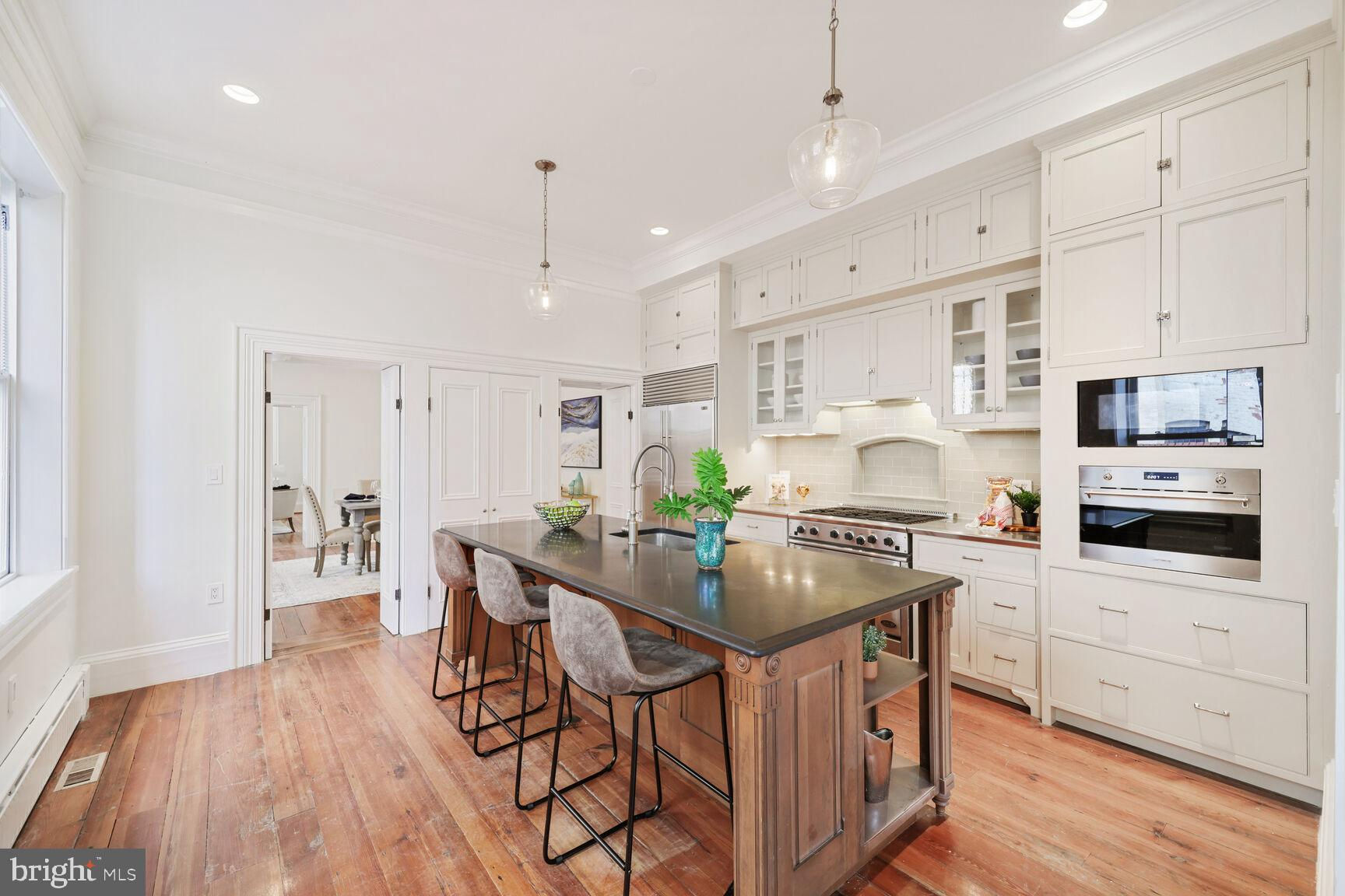 Discover the perfect blend of historic allure and contemporary comfort in this exceptional Second Empire-style gem, now available for sale. This home exudes the unique character of the Victorian era, captured in its high ceilings, spacious formal rooms, deep-set windows, and elegant heart pine flooring. On N St, with rear backing to Naylor Court. Inside, French doors open onto a large, private garden that also serves as additional parking, secured by remote-controlled mahogany doors. At the heart of the home is a spacious gourmet kitchen, equipped with top-of-the-line Subzero and Smeg appliances. This culinary haven flows seamlessly into an expansive open family room, providing an ideal space for relaxed entertaining. Added contemporary comforts include heating and cooling systems managed by smart Nest thermostats. The rear staircase ascends to the generous living quarters. The primary suite, offering ample space and privacy, features two walk-in closets, providing an opulent retreat. A luxurious en-suite guest room boasts its own balcony, providing an extra touch of elegance to the modern amenities. The third level unfolds into a versatile space, perfect for additional bedrooms or offices, while an exterior-accessed, unfinished basement offers potential for customization – envision an in-law suite, a wine cellar, or a spacious storage area. Situated on a generous 2940 SF lot on the coveted Naylor Court, this semi-detached row house offers a remarkable balance of indoor and outdoor living space. Recent enhancements include new systems, professional landscaping, and various necessary repairs and replacements, ensuring the home is in exceptional condition. With nearly 3200 SF of living space, plus a basement, this rental home provides excellent value. For those seeking a distinctive residence that harmoniously melds the charm of Victorian architecture with modern conveniences and spacious living, this property stands as an extraordinary opportunity.