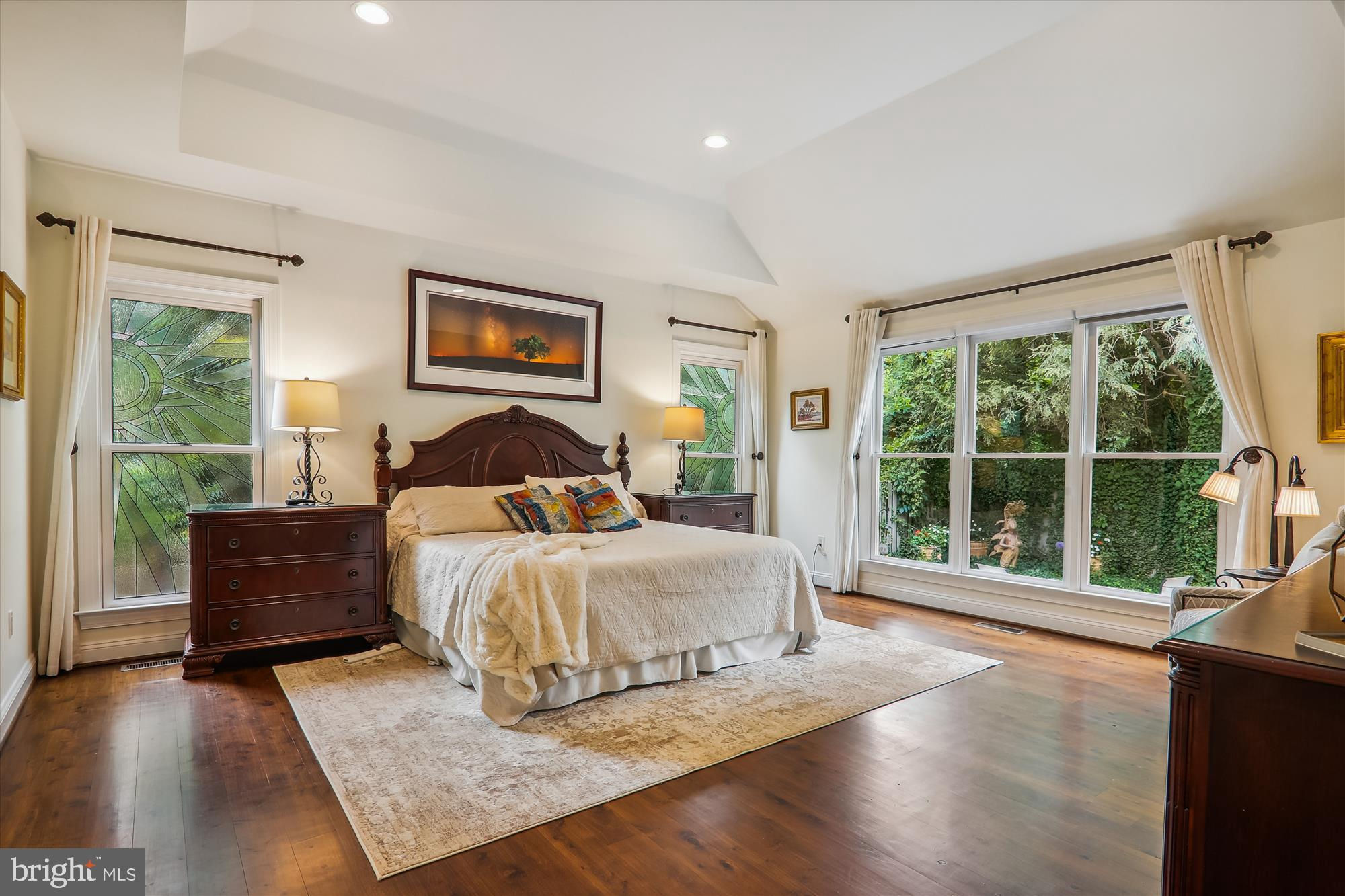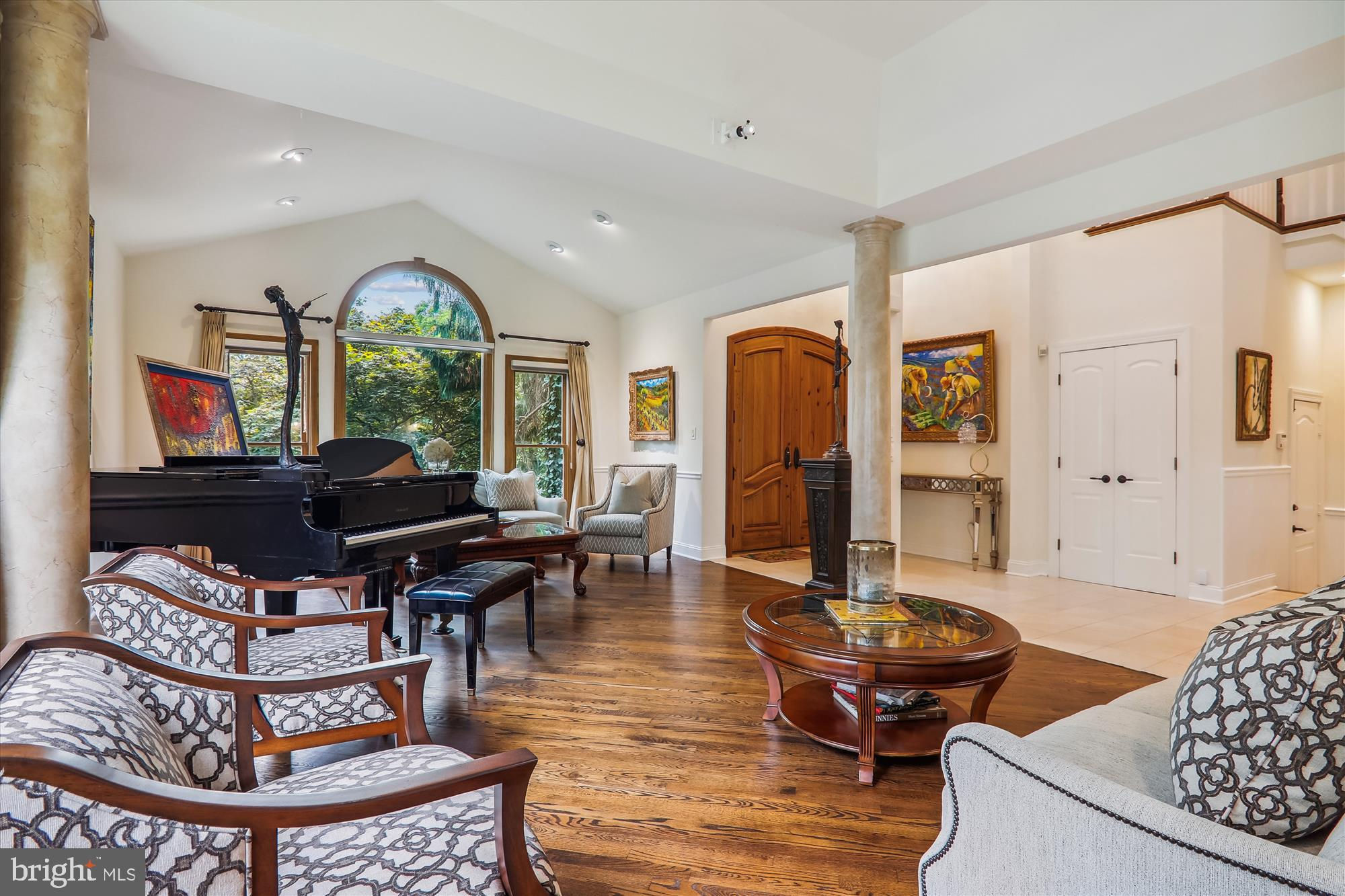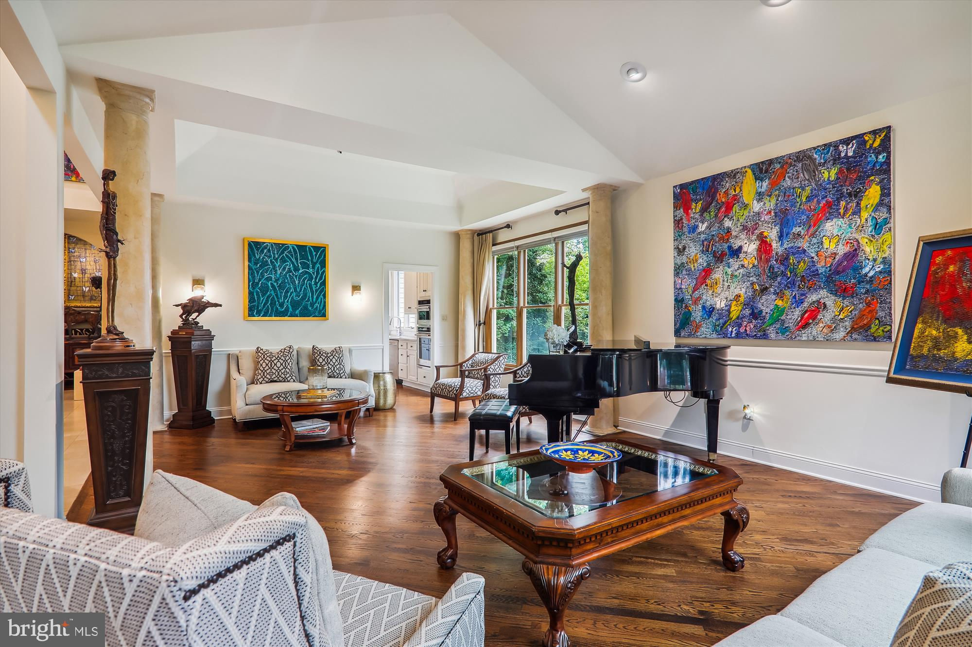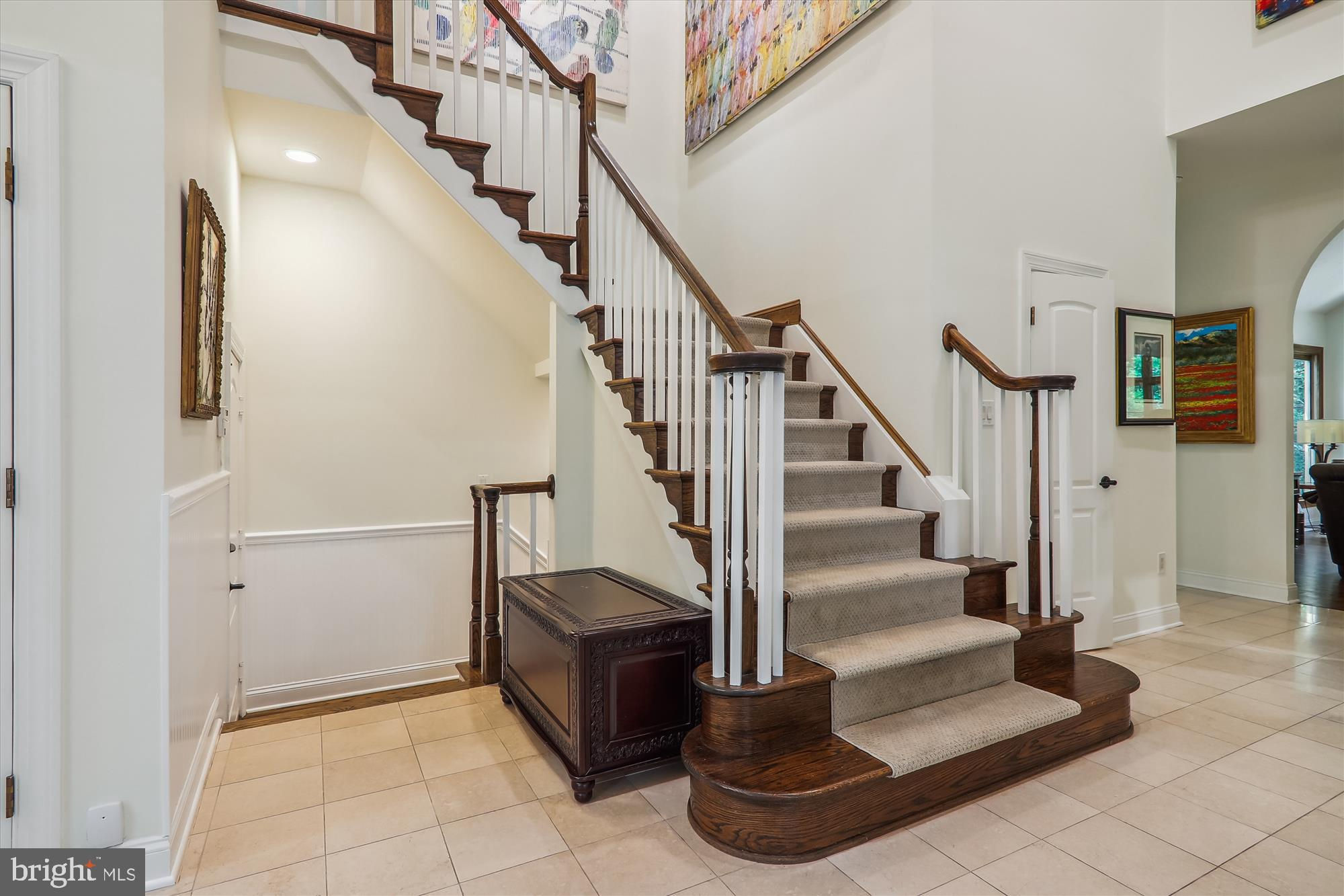 Discover the perfect blend of luxury and comfort in this artful newer build located off Spruce Tree Circle. This stunning home offers 6 bedrooms and 4.5 bathrooms, set in a private and beautifully landscaped setting. As you approach, the beautifully landscaped front yard invites you towards the curved wooden double front doors. Step into the grand foyer, where a stunning chandelier and soaring 2-story ceilings welcome you. The lovely columns and hardwood floors lead you into spacious rooms filled with character. The living room boasts raised coffered ceilings, large decorative windows, and stunning flooring, creating an elegant yet inviting atmosphere. The cozy family room features a cathedral-style ceiling, a magnificent stone fireplace, and detailed windows on either side, perfect for family gatherings or quiet evenings. Adjacent to the family room, the large formal dining room is beautifully finished with exposed wood beams and surrounded by windows that bathe the space in natural light. The dining room seamlessly flows into the open-concept kitchen, equipped with stainless steel appliances, all-white cabinetry, and a convenient island that makes cooking a breeze. The first-floor primary bedroom suite is a true retreat, designed with stunning stained-glass windows and a raised ceiling that adds character. The luxury bathroom is outfitted with a large soaking tub, an oversized beautifully tiled shower, and a double vanity, offering a spa-like experience. Upstairs, you’ll find three additional bedrooms and two full bathrooms, providing ample space for family or guests. The spacious lower level is wonderfully finished with workout areas, a huge office, a wine cellar, and an additional family room, catering to all your lifestyle needs. The cozy and tranquil backyard is your private oasis, backing to the trees of the Bethesda Trolley Trail. Enjoy evenings by the fire pit or relaxing on the flagstone patio, surrounded by nature. Don't miss the chance to make this spectacular home yours. Schedule an appointment today and experience all that this home has to offer. This property won’t stay on the market for long—act now!