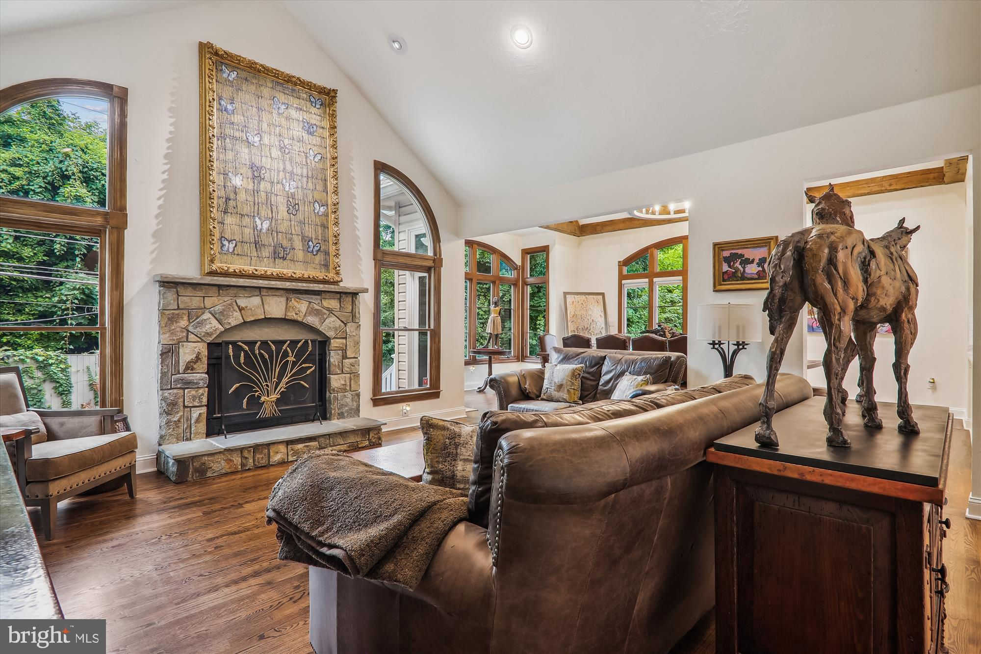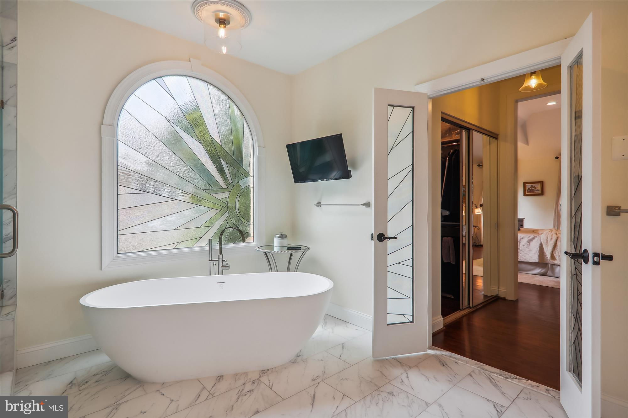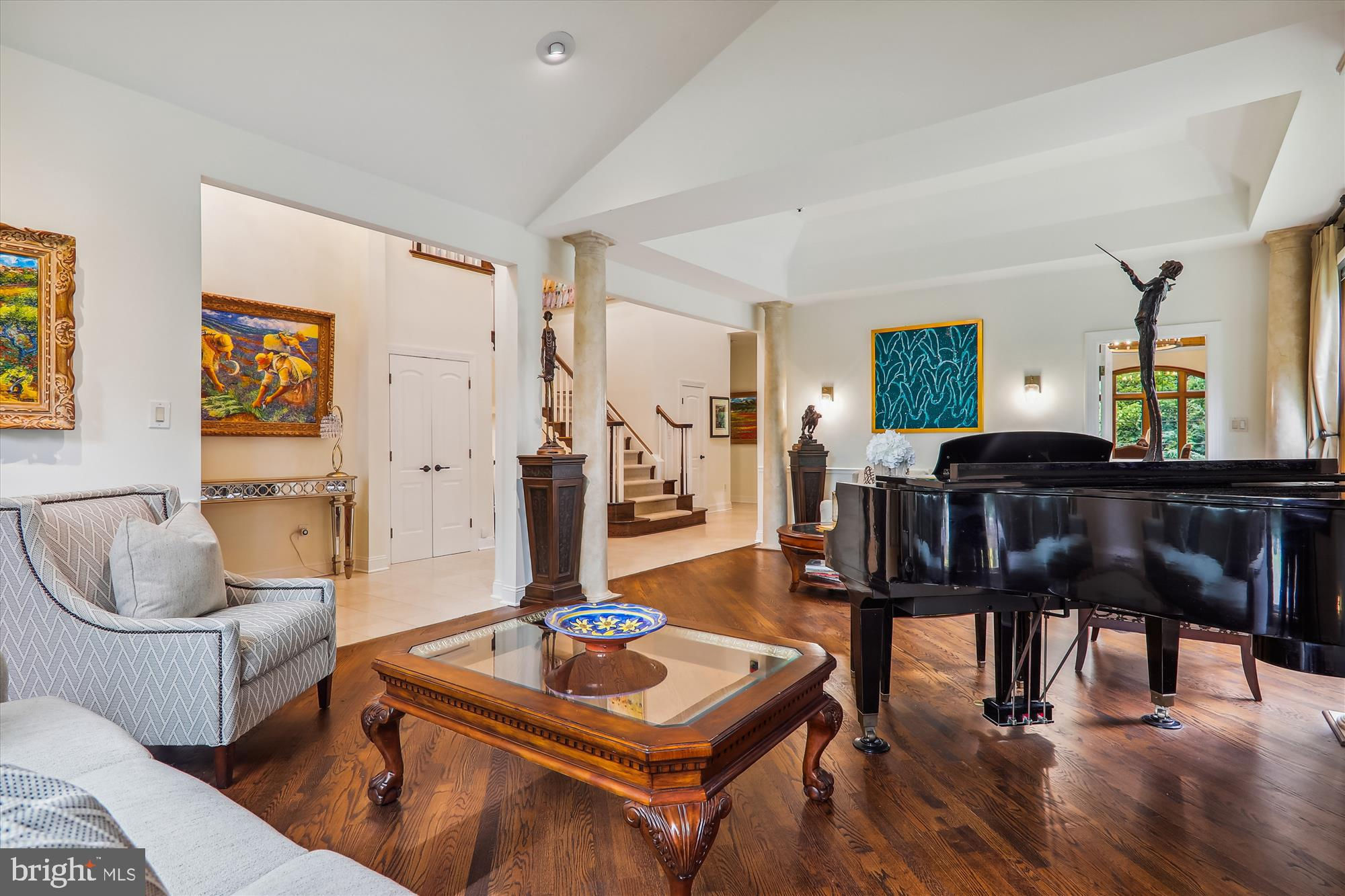 Discover the perfect blend of luxury and comfort in this artful newer build located off Spruce Tree Circle. This stunning home offers 6 bedrooms and 4.5 bathrooms, set in a private and beautifully landscaped setting. As you approach, the beautifully landscaped front yard invites you towards the curved wooden double front doors. Step into the grand foyer, where a stunning chandelier and soaring 2-story ceilings welcome you. The lovely columns and hardwood floors lead you into spacious rooms filled with character. The living room boasts raised coffered ceilings, large decorative windows, and stunning flooring, creating an elegant yet inviting atmosphere. The cozy family room features a cathedral-style ceiling, a magnificent stone fireplace, and detailed windows on either side, perfect for family gatherings or quiet evenings. Adjacent to the family room, the large formal dining room is beautifully finished with exposed wood beams and surrounded by windows that bathe the space in natural light. The dining room seamlessly flows into the open-concept kitchen, equipped with stainless steel appliances, all-white cabinetry, and a convenient island that makes cooking a breeze. The first-floor primary bedroom suite is a true retreat, designed with stunning stained-glass windows and a raised ceiling that adds character. The luxury bathroom is outfitted with a large soaking tub, an oversized beautifully tiled shower, and a double vanity, offering a spa-like experience. Upstairs, you’ll find three additional bedrooms and two full bathrooms, providing ample space for family or guests. The spacious lower level is wonderfully finished with workout areas, a huge office, a wine cellar, and an additional family room, catering to all your lifestyle needs. The cozy and tranquil backyard is your private oasis, backing to the trees of the Bethesda Trolley Trail. Enjoy evenings by the fire pit or relaxing on the flagstone patio, surrounded by nature. Don't miss the chance to make this spectacular home yours. Schedule an appointment today and experience all that this home has to offer. This property won’t stay on the market for long—act now!