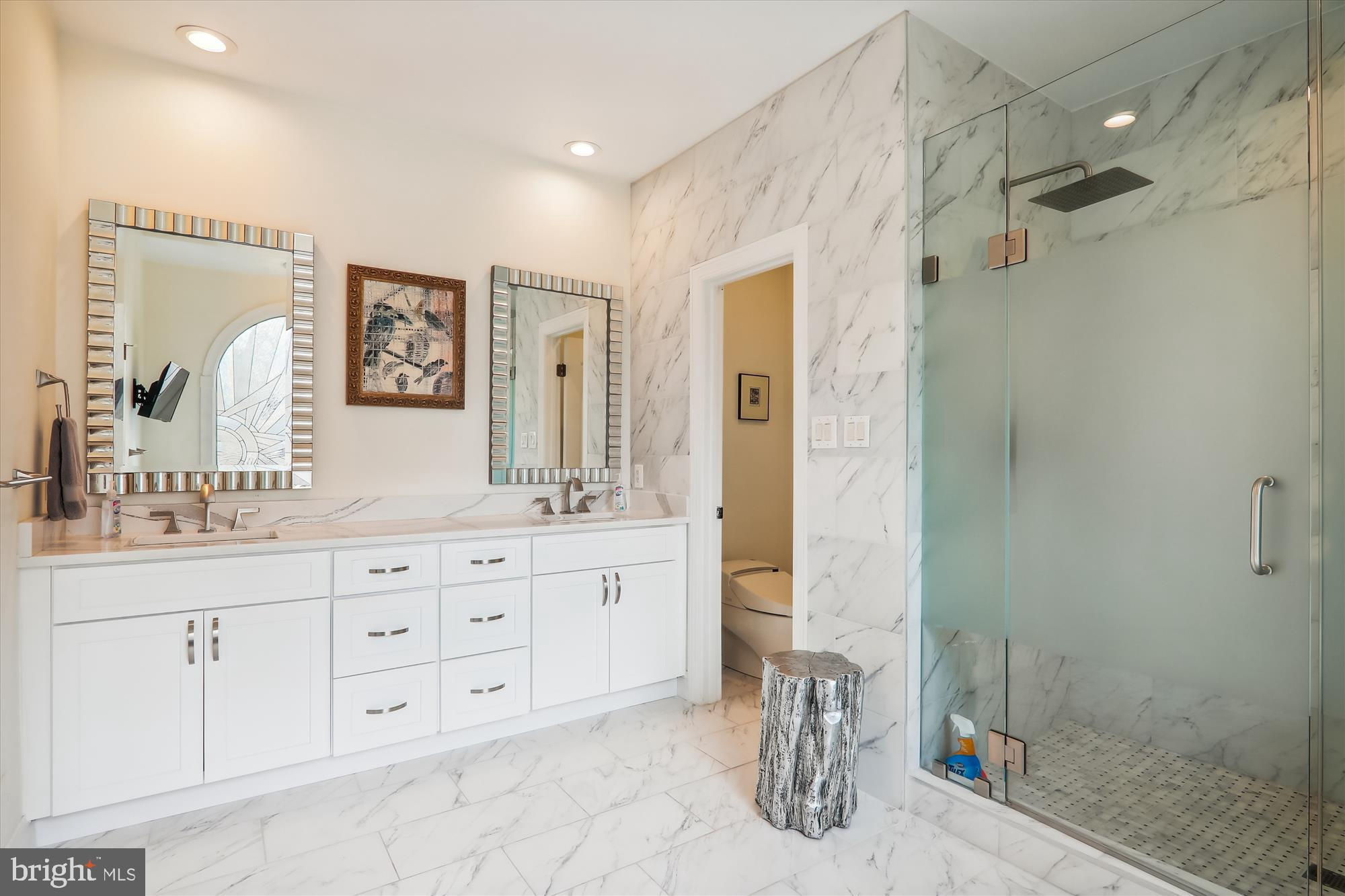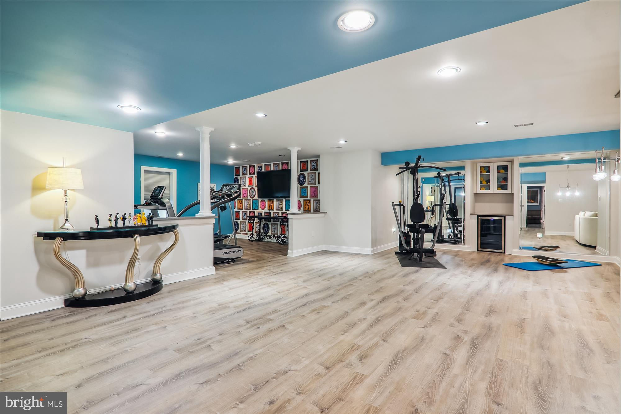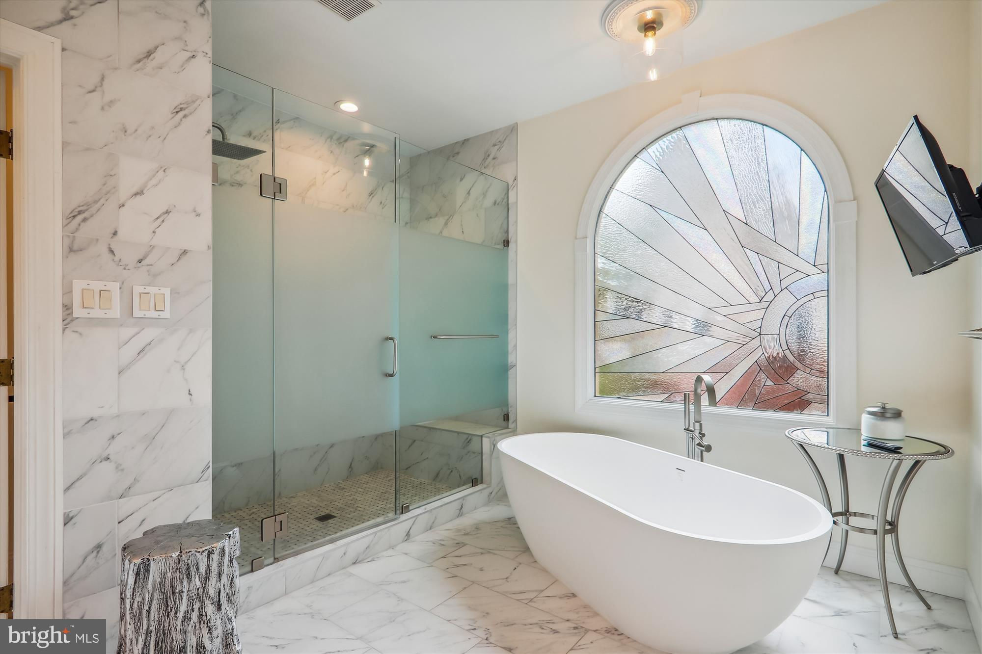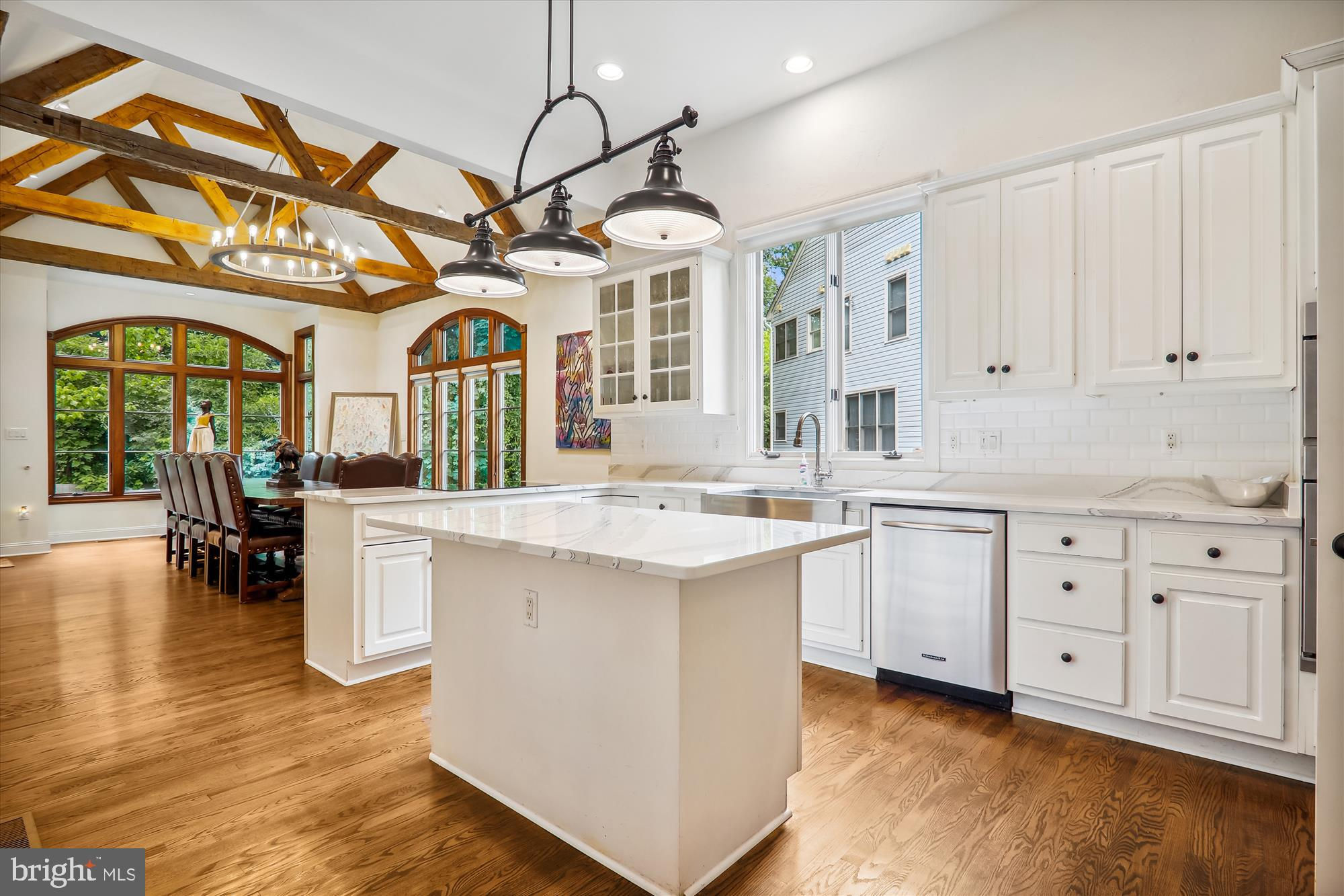 Discover the perfect blend of luxury and comfort in this artful newer build located off Spruce Tree Circle. This stunning home offers 6 bedrooms and 4.5 bathrooms, set in a private and beautifully landscaped setting. As you approach, the beautifully landscaped front yard invites you towards the curved wooden double front doors. Step into the grand foyer, where a stunning chandelier and soaring 2-story ceilings welcome you. The lovely columns and hardwood floors lead you into spacious rooms filled with character. The living room boasts raised coffered ceilings, large decorative windows, and stunning flooring, creating an elegant yet inviting atmosphere. The cozy family room features a cathedral-style ceiling, a magnificent stone fireplace, and detailed windows on either side, perfect for family gatherings or quiet evenings. Adjacent to the family room, the large formal dining room is beautifully finished with exposed wood beams and surrounded by windows that bathe the space in natural light. The dining room seamlessly flows into the open-concept kitchen, equipped with stainless steel appliances, all-white cabinetry, and a convenient island that makes cooking a breeze. The first-floor primary bedroom suite is a true retreat, designed with stunning stained-glass windows and a raised ceiling that adds character. The luxury bathroom is outfitted with a large soaking tub, an oversized beautifully tiled shower, and a double vanity, offering a spa-like experience. Upstairs, you’ll find three additional bedrooms and two full bathrooms, providing ample space for family or guests. The spacious lower level is wonderfully finished with workout areas, a huge office, a wine cellar, and an additional family room, catering to all your lifestyle needs. The cozy and tranquil backyard is your private oasis, backing to the trees of the Bethesda Trolley Trail. Enjoy evenings by the fire pit or relaxing on the flagstone patio, surrounded by nature. Don't miss the chance to make this spectacular home yours. Schedule an appointment today and experience all that this home has to offer. This property won’t stay on the market for long—act now!