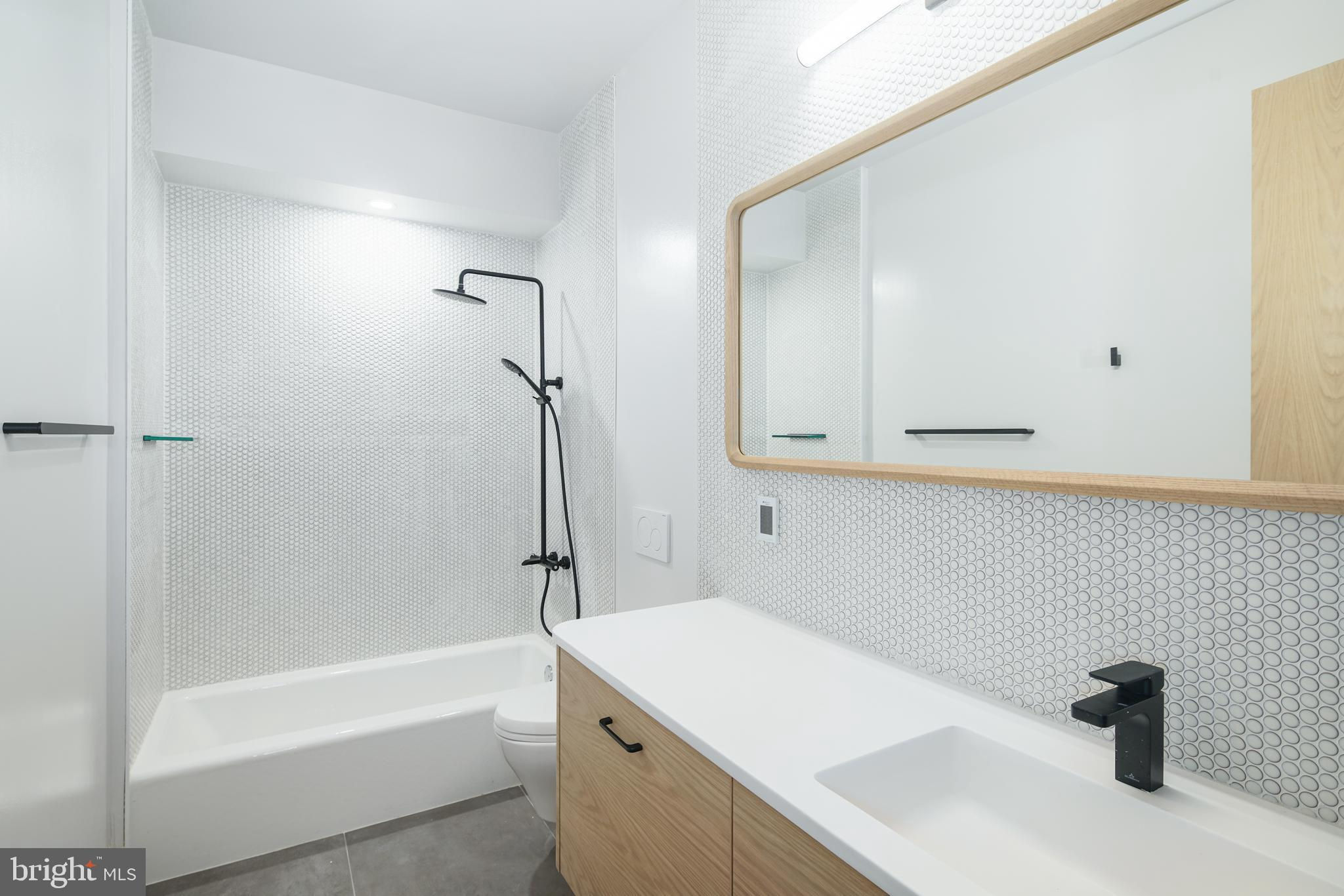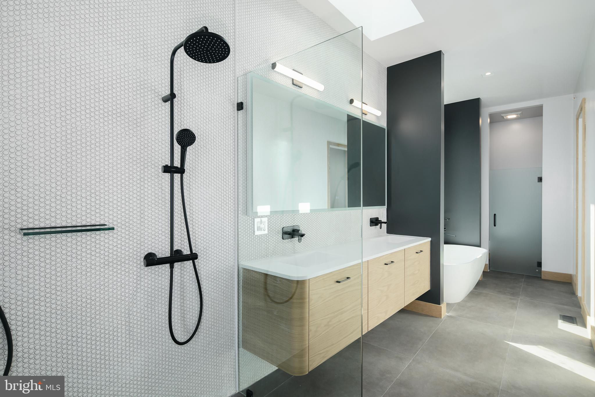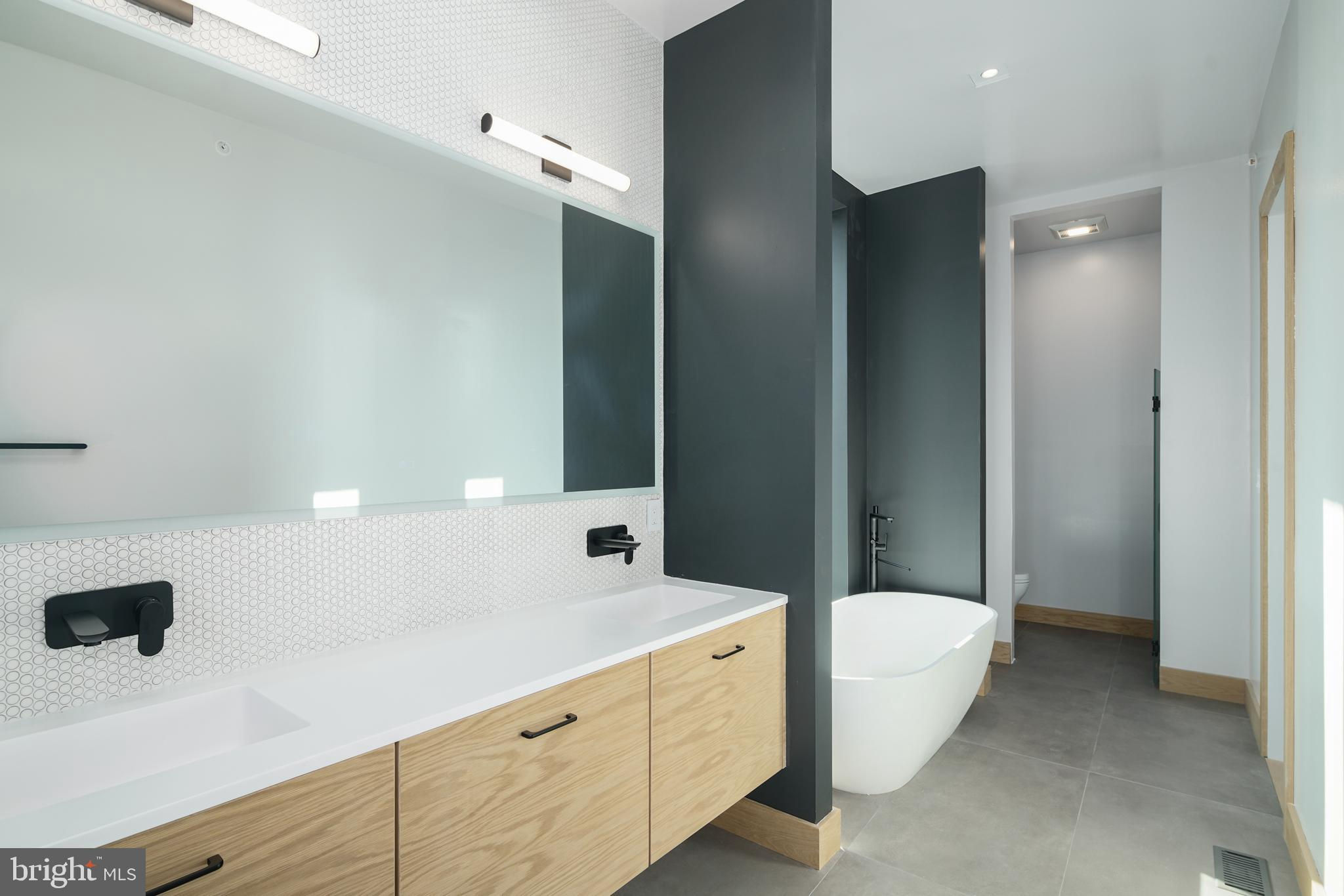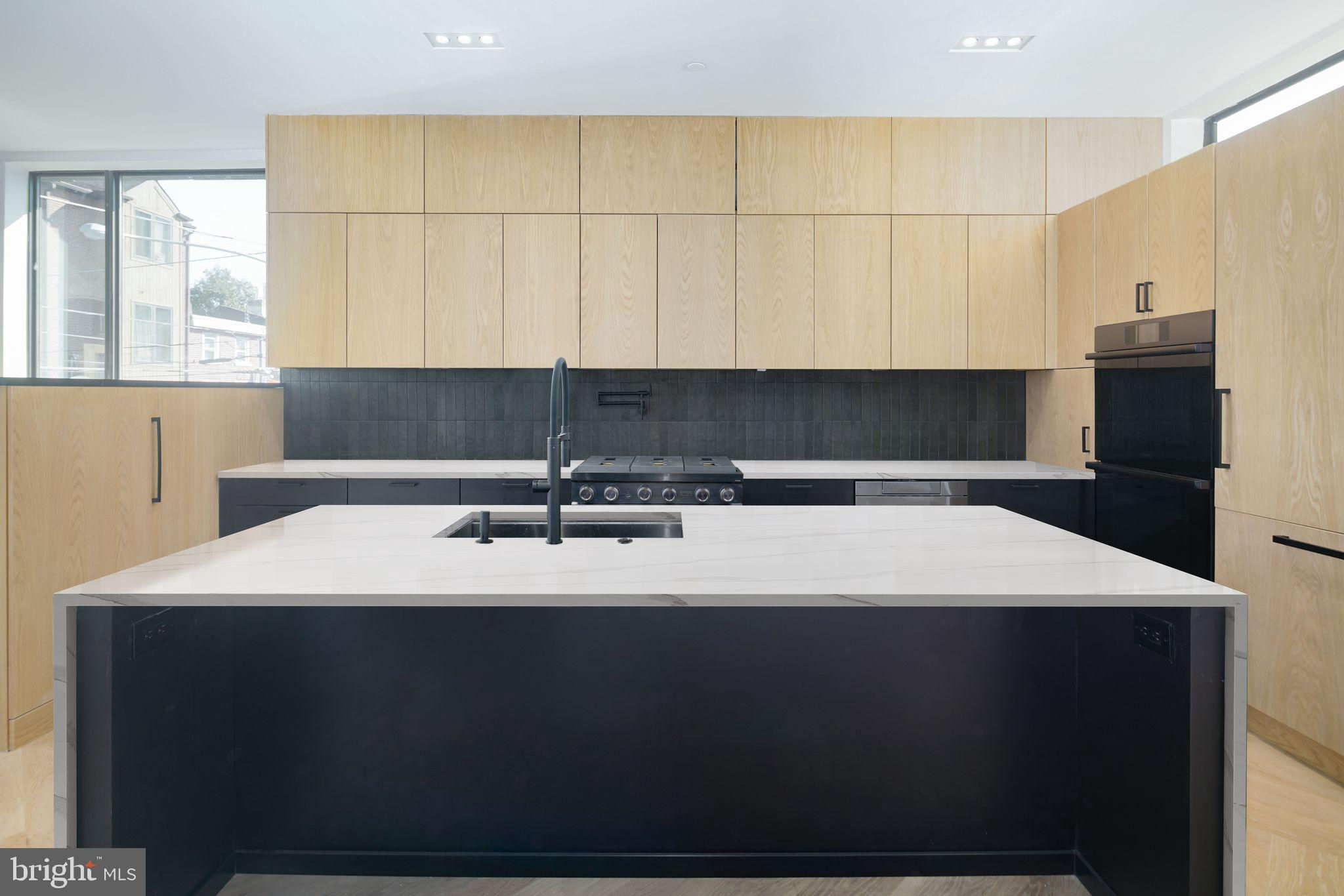 This new construction masterpiece isn't just a home; it's a statement. A rare opportunity to own a piece of architectural excellence designed by award winning architect, Moto DesignShop, that seamlessly blends high-end luxury with everyday comfort, PLUS a full 10 year tax abatement. (the old one!) As you walk up the front stairs & through the stately front door, you'll be greeted by the grandeur of this 32 ft wide residence. The warm, natural tones of the oak floors & trim, mixed with matte black accents create an inviting atmosphere through every corner of this stunning residence. Pass the sunken foyer & you’ll find yourself in the sleek & sultry kitchen. White oak upper cabinets & matte black lower cabinets are a classic pairing that won’t go out of style. High end appliances are hidden behind matching oak cabinetry, for that ultimate high end feel. With seating at the island, the kitchen seamlessly flows into the dining & living area. The open, yet distinct spaces on the first floor are a showcase of sophistication. The living room starts with 10 ft floor to ceilings windows. Light floods the room. This inviting room with gas fireplace will become the heart of the home. Beyond the living room is the dining room. A patio with sliding glass door is the perfect spot to grill & get some fresh air. A large walk in pantry & powder room finish off this floor. As you explore, you'll notice that every detail has been meticulously considered. White oak hardwood floors paired with white oak baseboard & door trim & 8ft solid core white oak doors give the entire residence a warm & inviting feeling. Custom built staircase detail is a real showpiece. 28 degree handles are something you knew you never had to have until now. Dimmable, trimless recessed lights offer an interesting detail. All bathrooms feature penny round tiles, matte black fixtures, floating toilets, one piece matte white vanities, rounded white oak vanities with matching trimmed mirrors, cement look tiles & whisper quiet exhaust fans. 4 zone HVAC so you can easily control the temperature in the house. This home doesn't just offer luxury, it offers ease & convenience. The 2 car garage ensures your vehicles are safe. The laundry room is on the 2nd floor & has side by side Samsung washer & dryer. The 5 stop elevator connects all levels, from the basement to the roof deck. The top floor, the primary suite level is your own private oasis to start & end each day. The expansive bedroom is flooded with light with its 10 ft floor to ceiling windows. This bathroom is a retreat where you can relax & rejuvenate. A spacious walk-in shower with dual shower heads & a glass door, provides a seamless transition from the rest of the bathroom. Prefer a bath? Unwind in the deep soaking tub as you look out into the city. An oversized dual vanity with ample counter space, elegant rounded cabinet, backlight mirror, & skylight making getting ready a joy. Enjoy privacy & functionality with a separate toilet room. You will find plenty of storage space for your linens with nooks strategically placed throughout. Between the bathroom & bedroom is a spacious walk-in closet with skylight. Build the closet of your dreams! A bonus space on this level with powder room & wet bar option has endless possibilities. With five bedrooms in total, this home offers flexibility to fit everyone’s needs. The second floor has 3 generously sized bedrooms, each with ample closet space & 2 bathrooms. The basement of the home has the 5th bedroom suite, with attached bathroom.The roof deck is where you'll be mesmerized by sweeping views of the surrounding area. You are on top of the city in this space. Nestled in the heart of Northern Liberties, local amenities & parks within just blocks, everything you need is just moments away. **Countertops virtually staged with Marble countertops to show alternate option if you do not like the soapstone. Seller will replace countertops with acceptable offer.