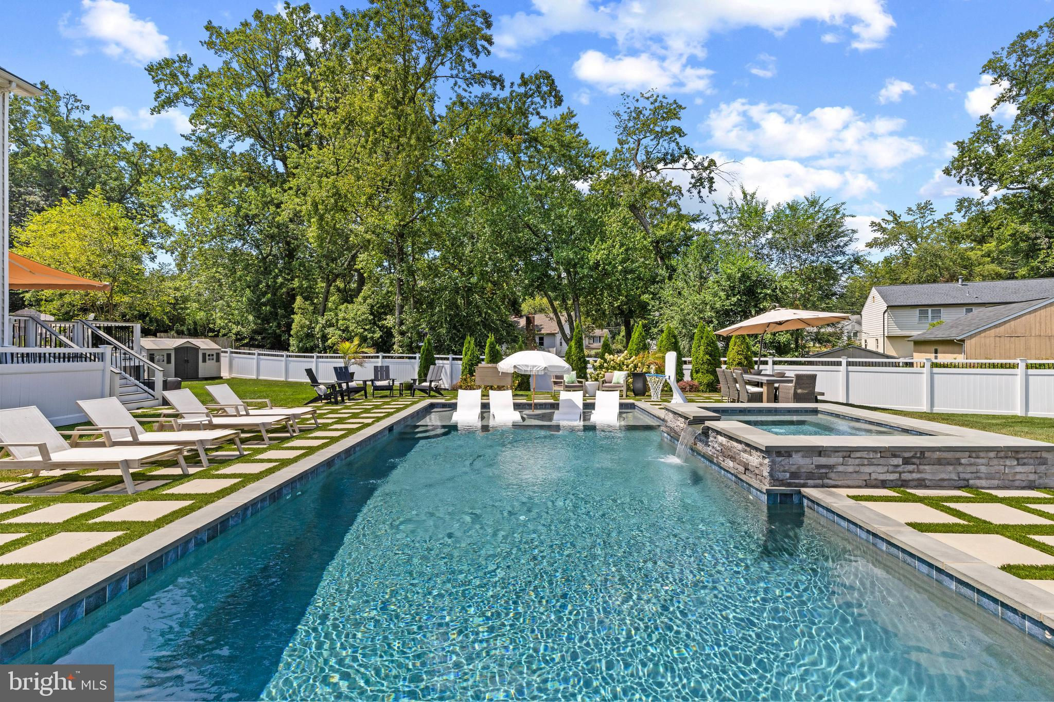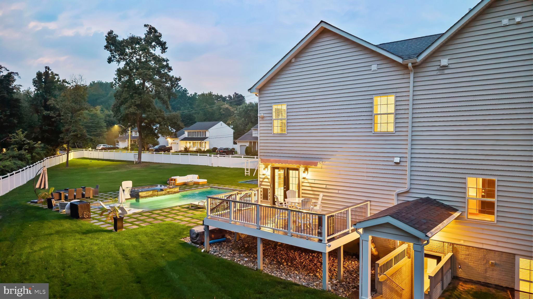 Experience timeless elegance in this exceptional colonial home, built in 2018 and sited on over two-thirds of an acre with protected conservation land ensuring lasting privacy. Thoughtfully and tastefully updated to reflect modern styles, every detail of this residence exudes sophistication, from its open floor plan to its refined finishes and light-filled interiors. The main level showcases a stunning great room with fireplace, a chef’s kitchen designed for culinary excellence with a quartz-topped island, custom cabinetry, generous eat-in space, a powder room, and a beautifully designed custom bar area perfect for entertaining. Upstairs, the lavish primary suite is a true retreat with a spa-inspired bath featuring a large shower and soaking tub, dual vanities, and two expansive custom walk-in closets. Three additional bedrooms and two full baths complete the level. The finished lower level offers a private guest suite with full bath and an expansive recreation space ideal for gatherings. Step outside to a resort-style sanctuary: a heated gunite saltwater pool with tanning ledge, integrated spa with cascading waterfall, retractable awning over the deck, and extensive hardscaping and landscaping. Additional features include an in-ground trampoline, playground, a large fully fenced and irrigated lawn, and a sizable custom shed for extra storage. An oversized attached two-car garage provides both practicality and convenience. Perfectly located - just a three-minute walk to Hillsmere Elementary, three miles from Historic Downtown Annapolis, and offering effortless access to Route 50, I-97, BWI, Fort Meade, and Washington, DC - this property seamlessly combines elegance, privacy, and convenience. Welcome Home!