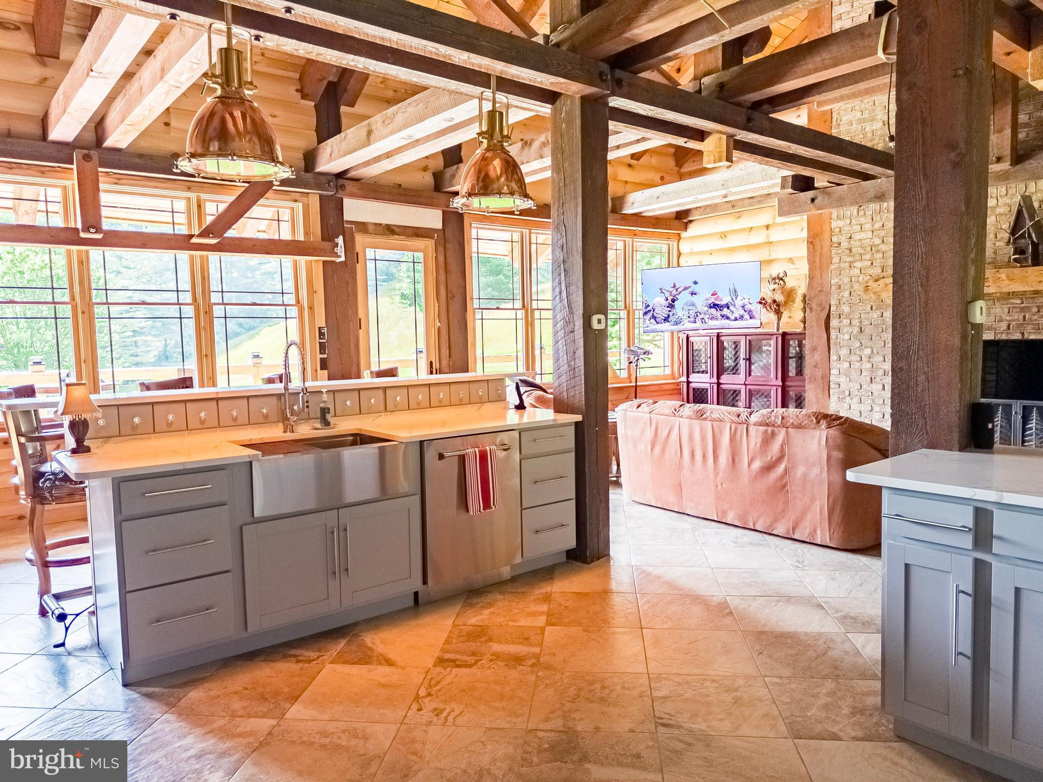 This stunning custom-built timber frame home offers the perfect blend of elegance, comfort, and seclusion on 113± acres surrounded by thousands of acres of the Monongahela National Forest. Designed for both relaxation and entertaining, this property provides unmatched privacy, abundant wildlife, and high-end finishes throughout. Boasting over 3,300 sq. ft. of living space, the home includes 3 bedrooms—two of which are spacious primary suites—and 2.5 baths. The newest primary suite features heated floors in both the bedroom and ensuite bath, offering year-round comfort. A recently completed addition showcases an expansive open floor plan with an exquisite chef’s kitchen and a great room anchored by a breathtaking 20-foot brick fireplace, framed by exposed timber beams. A second full kitchen provides flexibility for multi-generational living or hosting guests in style. The home’s appeal extends outdoors, where the owners have thoughtfully created year-round living spaces. A 3172 sq ft wrap-around porch with a brick fireplace allows you to take in the panoramic views in all seasons. The land itself is a recreational paradise. Bordering the Monongahela National Forest, it serves as a haven for whitetail deer, turkeys and black bear. An extensive, well-maintained ATV/UTV trail system winds through rolling hardwood ridges, making the entire property easily accessible. Additional features include a stocked pond, Lambs Run meandering through the property, and a spacious 2-car garage. Located near Snowshoe Mountain Resort and some of the best fly-fishing waters in the East, this property is an outdoorsman’s paradise—whether your passion is skiing, hunting, fishing, or simply savoring the quiet beauty of the Appalachian Mountains. This is more than a home—it’s a legacy property that offers luxury, privacy, and recreation on a truly grand scale. NOTE: See the FEMA flood plain map, which shows the flood plain and indicates the approximate location of the property. The maps indicate the property is not in the FEMA flood zone. Contact Land Specialist Bryan Thompson today to schedule your private showing.