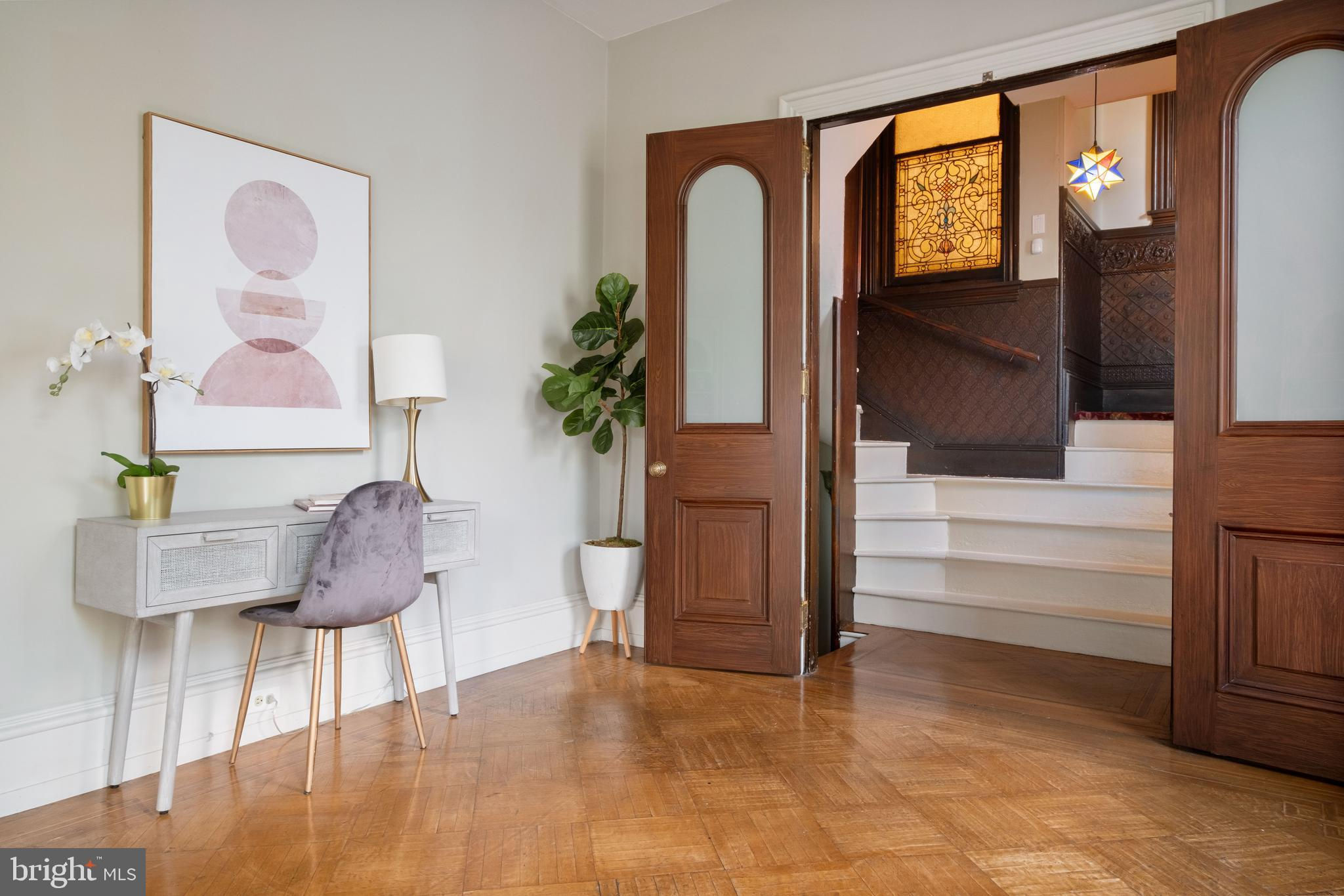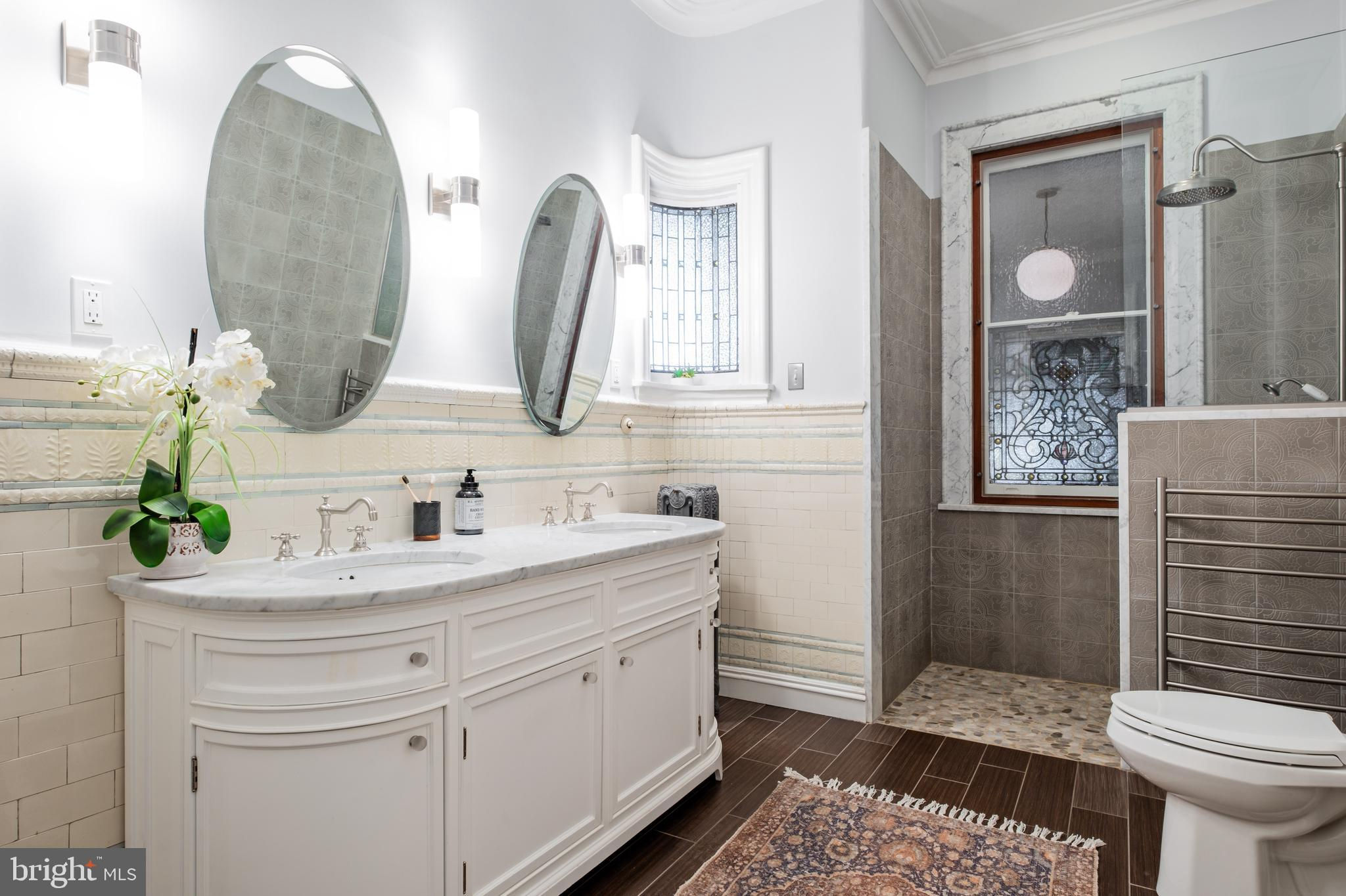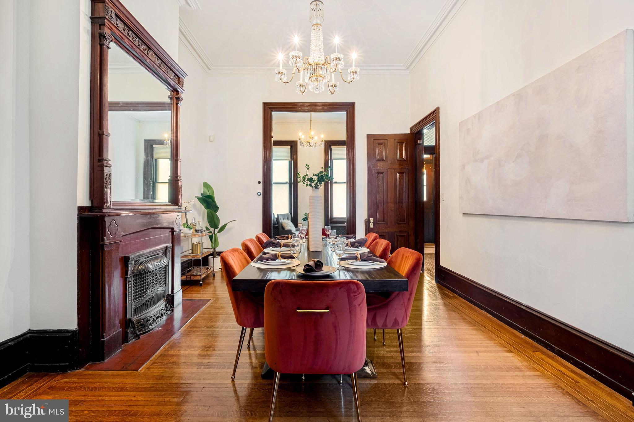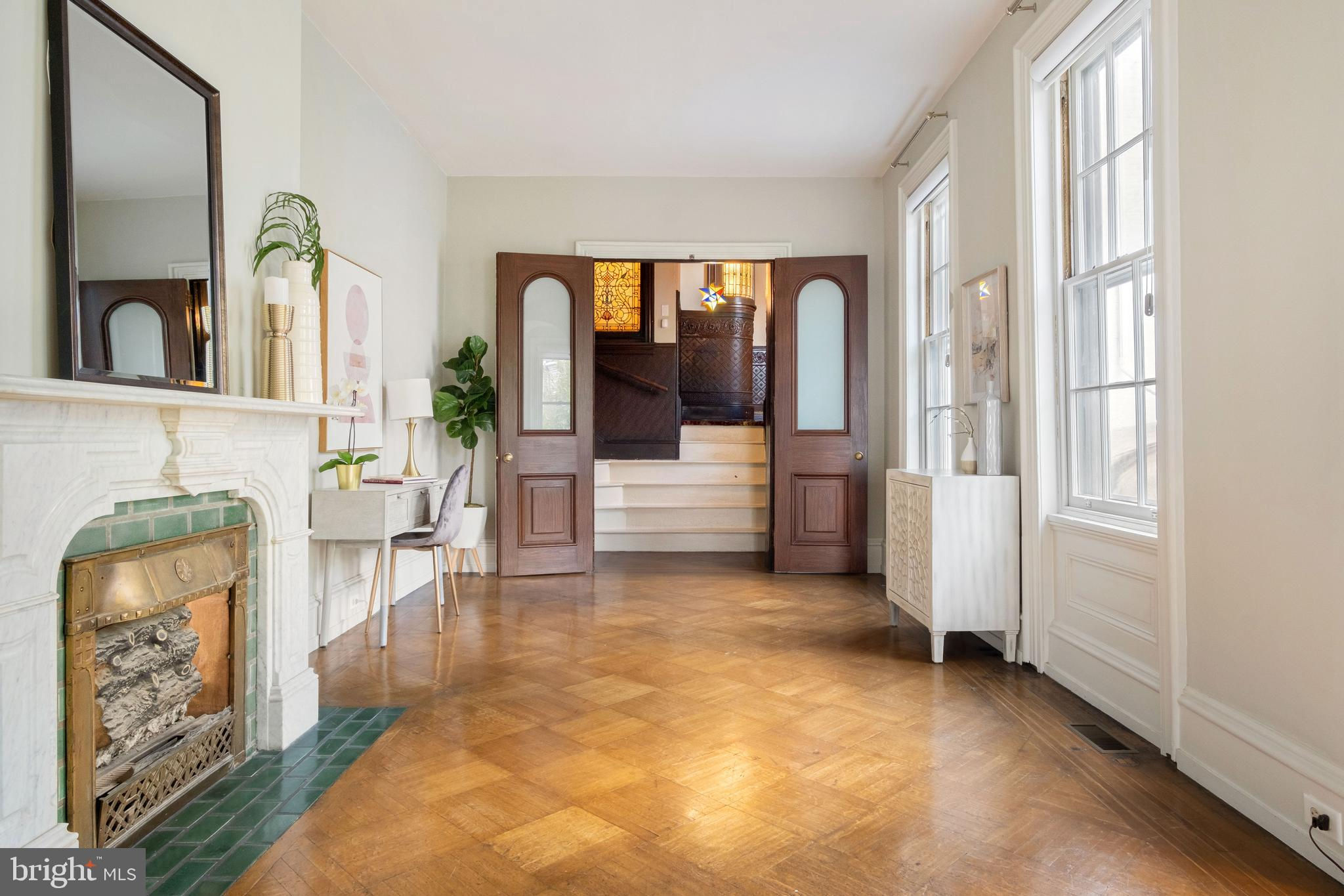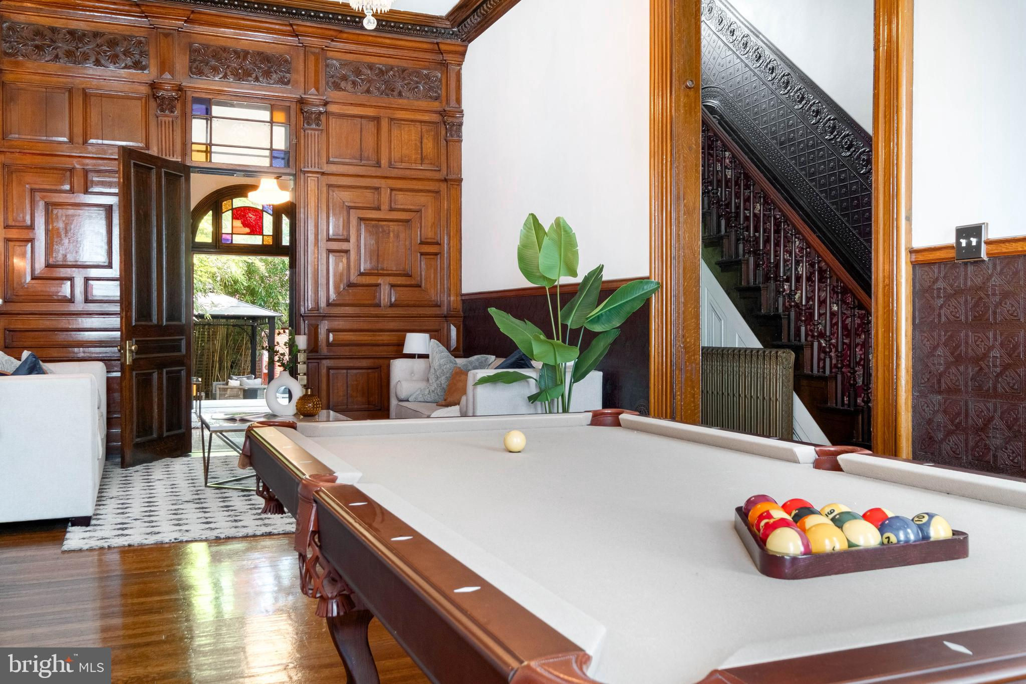 Unique opportunity to acquire the Strittmatter Estate including the historic Mansion on 999 N 6th street and the rare carriage house on 1010 Randolph. Constructed in 1885, this estate originally served as a private hospital founded by Dr. Isidor P. Strittmatter in 1887. The Main House, positioned on a 35-foot-wide lot, preserves its original architectural features while integrating modern conveniences. The entrance through double doors leads into a vestibule that opens to a grand foyer boasting over 12-foot ceilings, a majestic staircase, custom woodwork, and Lincrusta (pressed leather) walls with crown molding. Adjacent to the foyer is the spacious living room featuring a marble fireplace and access to the "Cupola Room" with heated floors, a restored stained glass skylight, wet bar, and French doors opening to a secluded garden. To the right of the foyer lies a private office and a formal dining room with an original mantelpiece and fireplace. The chef’s kitchen includes a marble farmhouse sink, custom cabinetry, a La Canche stove, and premium appliances, complemented by a butler's kitchen with additional amenities and garden access. The basement houses a temperature-controlled wine cellar and ample storage space. The second floor features the main suite with a walk-in closet and a modern Italian shower. Additional living spaces include a family room, home gym, and craft room, while the third floor offers two bedrooms, dressing rooms, a library, and a bathroom with heated floors. The fourth floor is versatile, with potential for four separate rooms, serviced by a modern bathroom. The garden is a tranquil retreat with a covered terrace and bocce court, leading to the Carriage House which offers parking for over three vehicles and a well-maintained two-bedroom guest house, currently leased. The Carriage House located on the rare at 1010 N Randolph St is deeded separately with the tax ID #057153900 and included in this offering. That property includes a 3 cars parking garage with a 2 bedrooms, 2 baths and a private backyard.